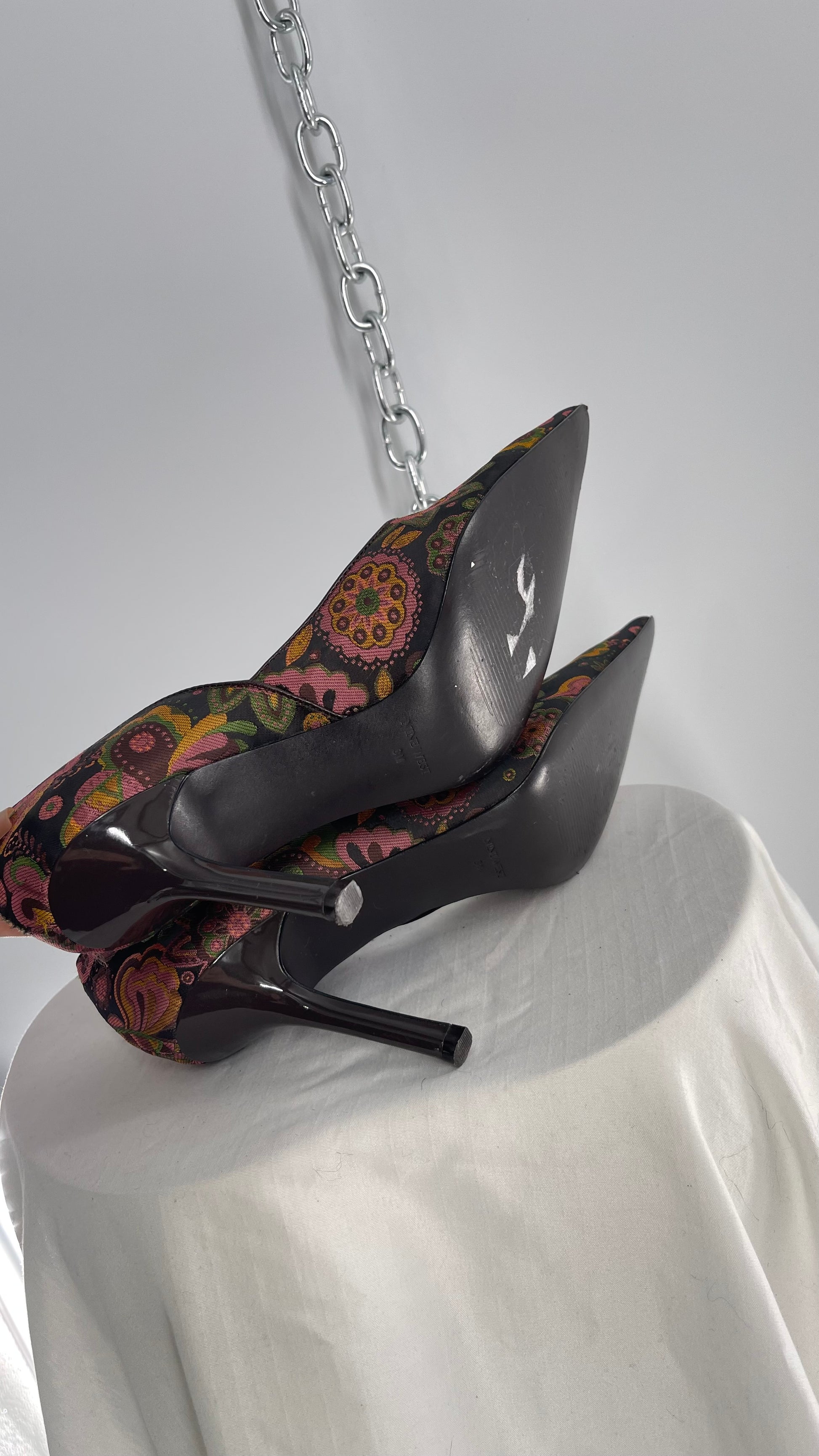 Vintage Nine West Brown Floral Patterned Pointed Toe Heel