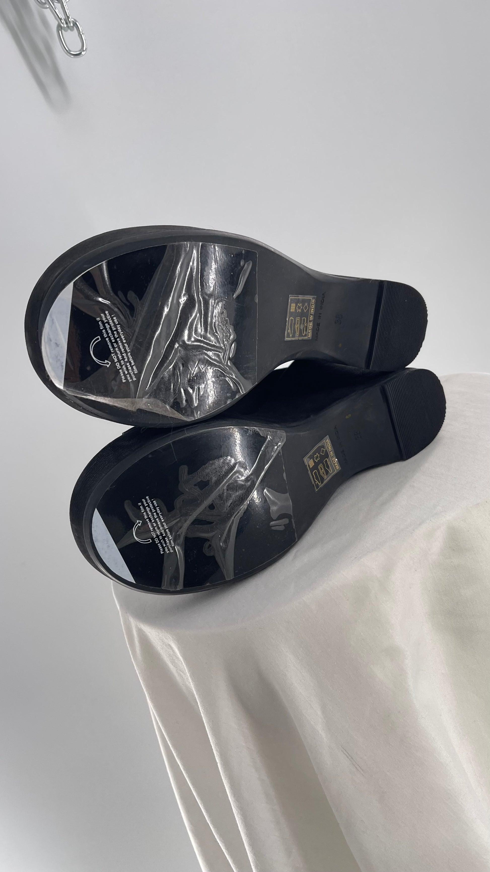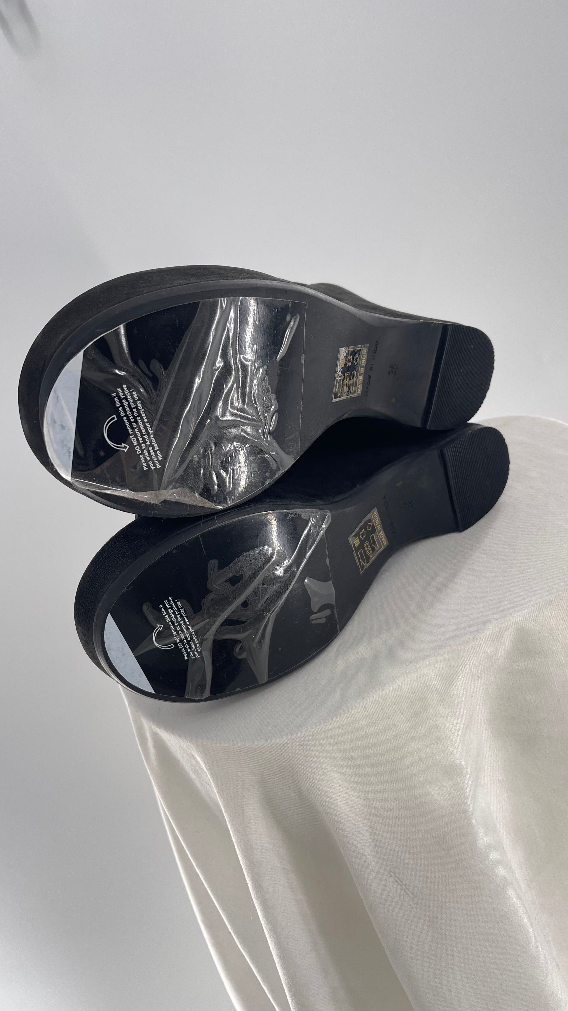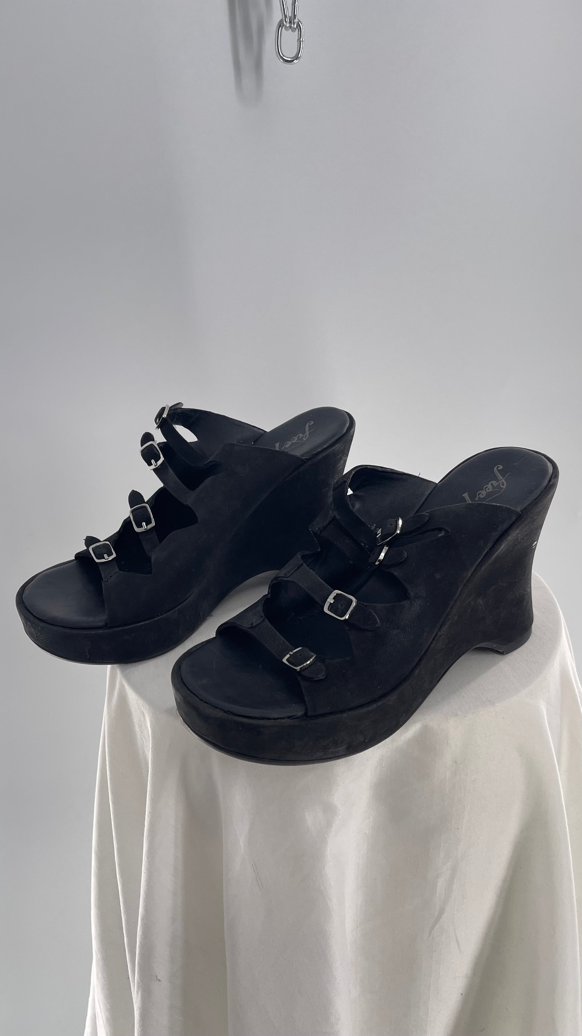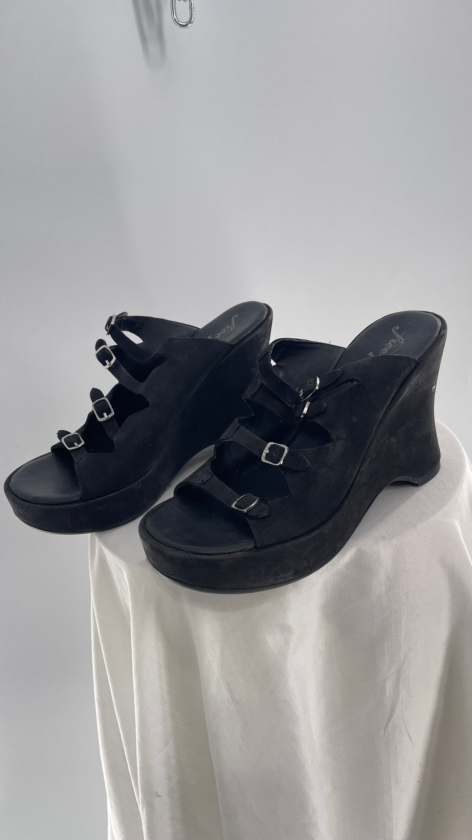 Free People Huffman Black Leather Buckle Wedge Heel (38)