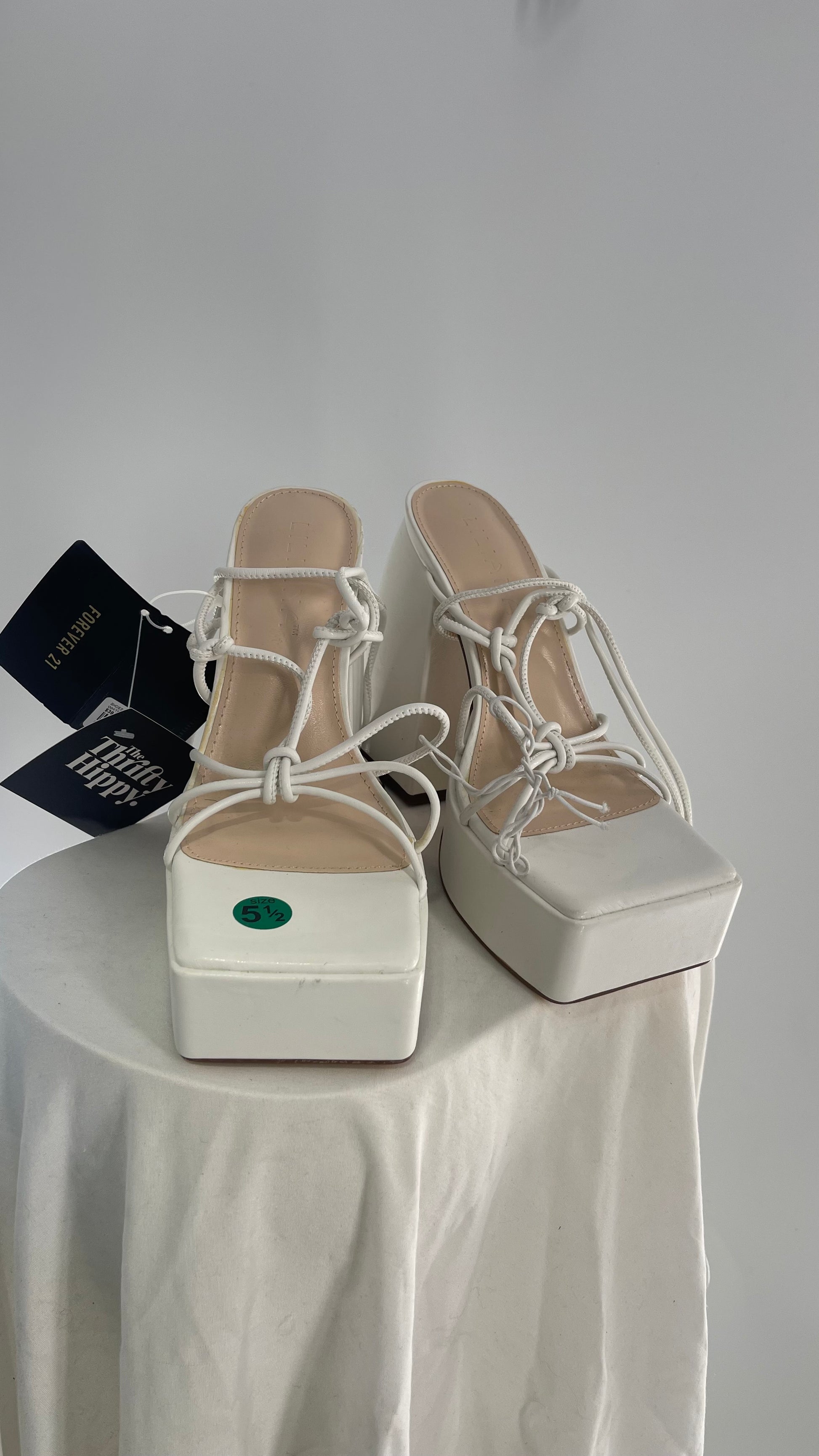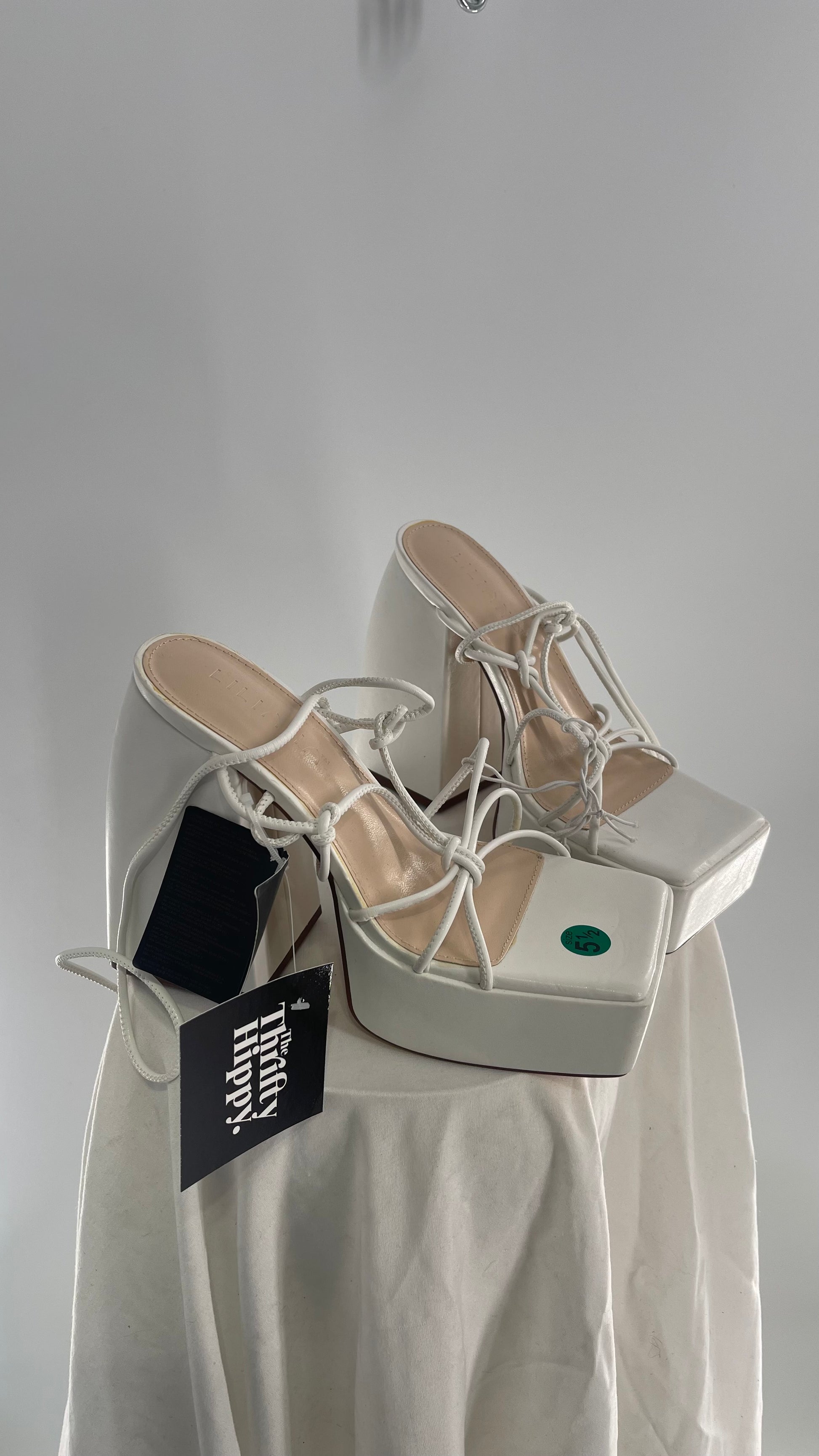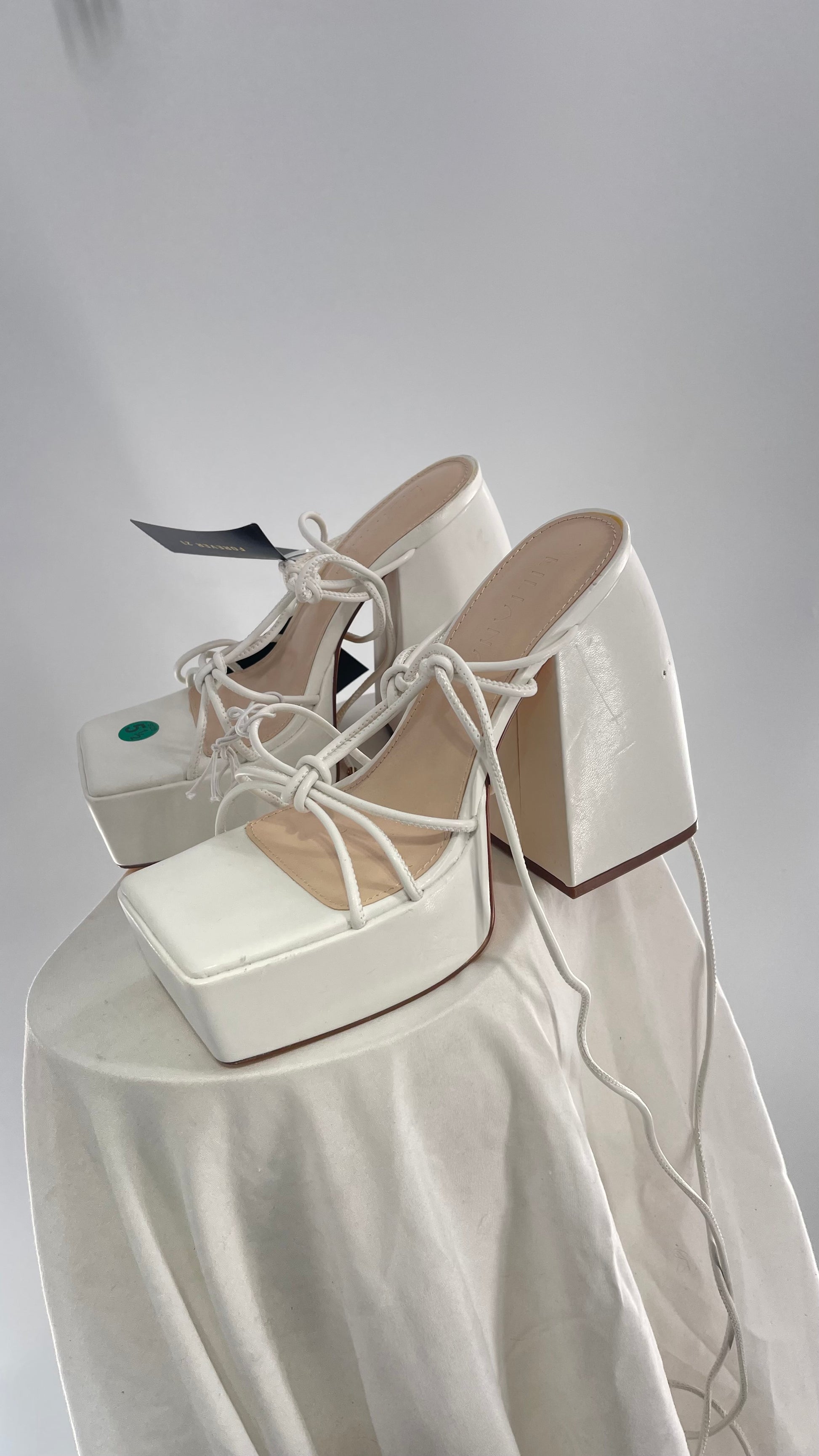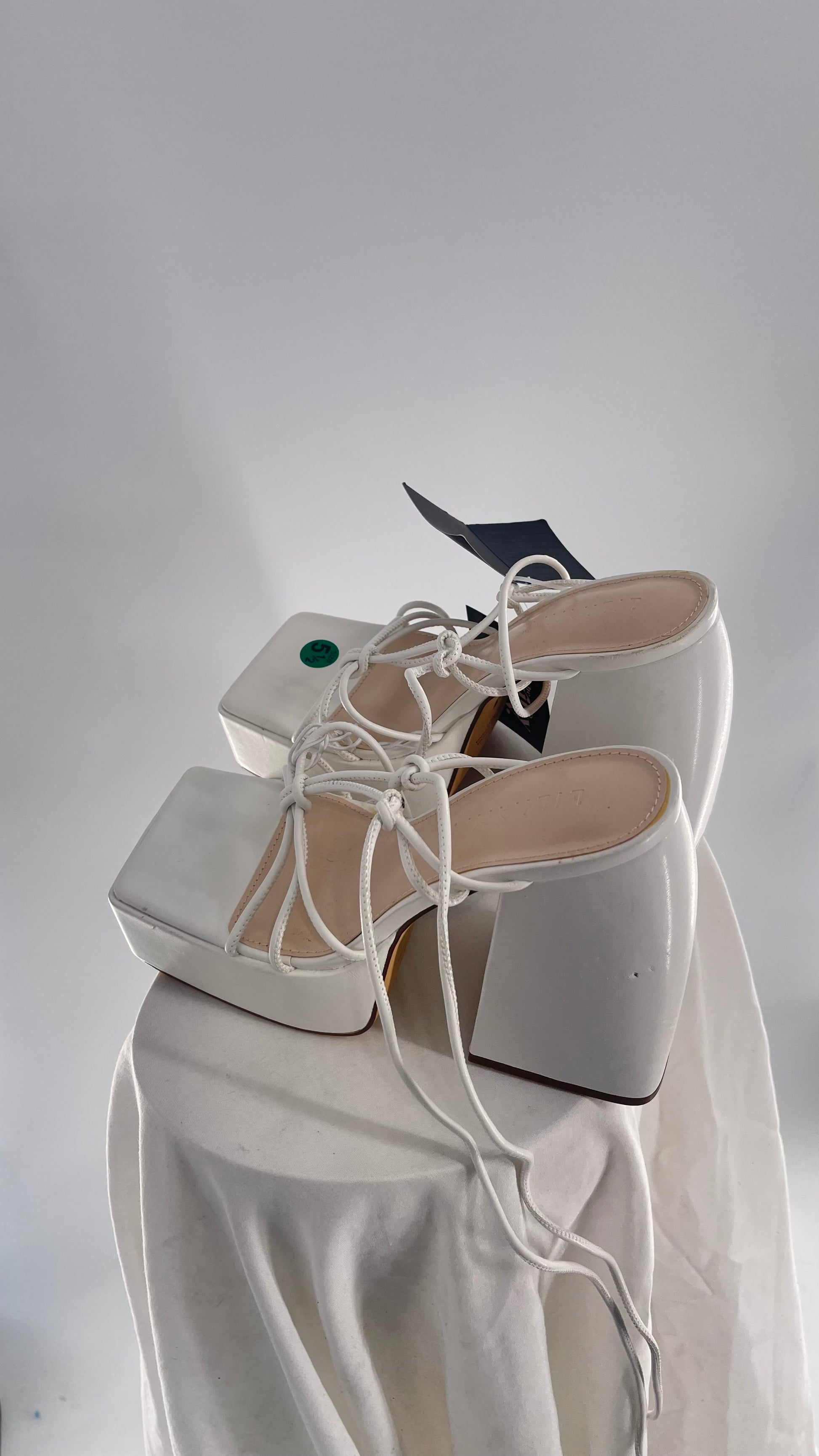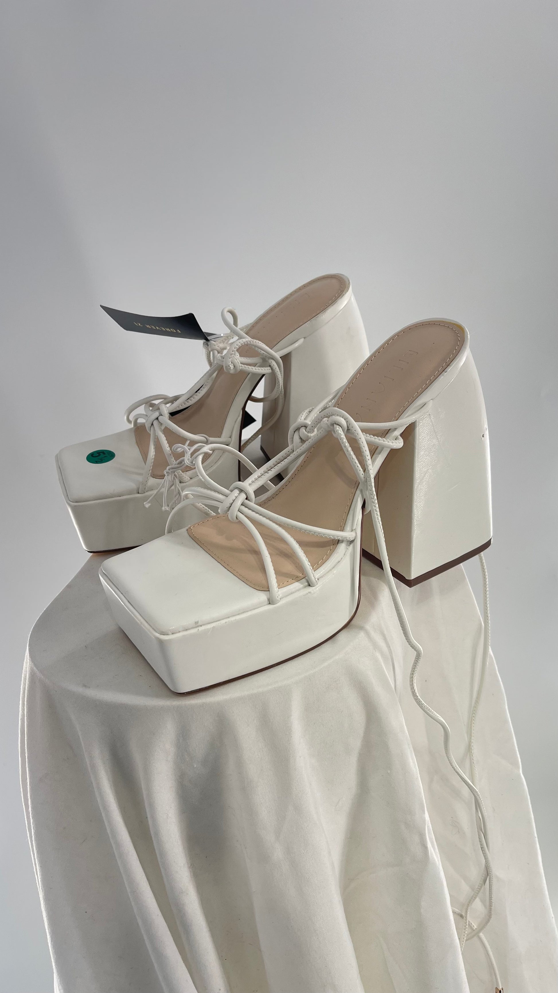 Liliana White Platform Block Heel Tie Up Heel with Tags Attached