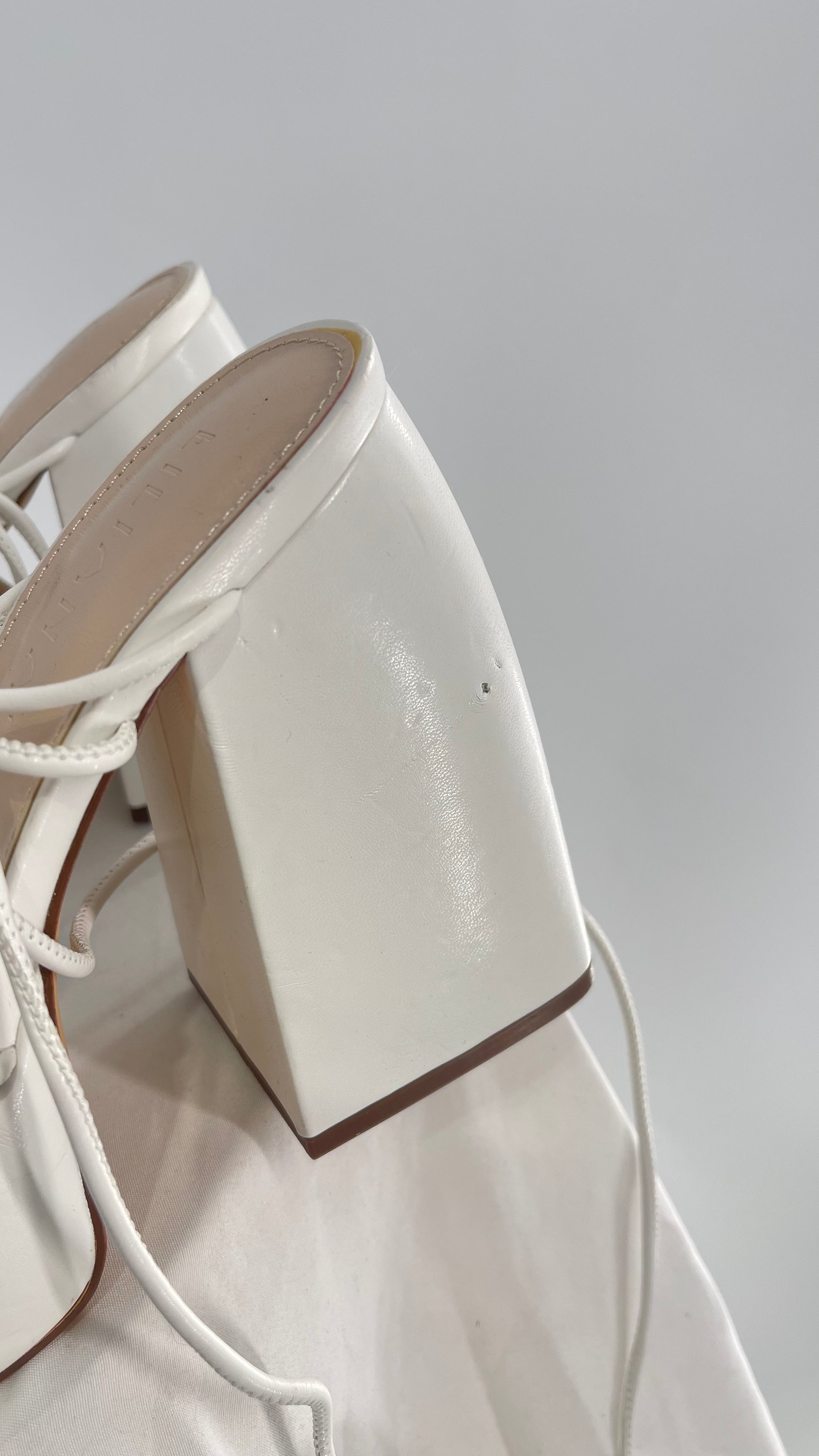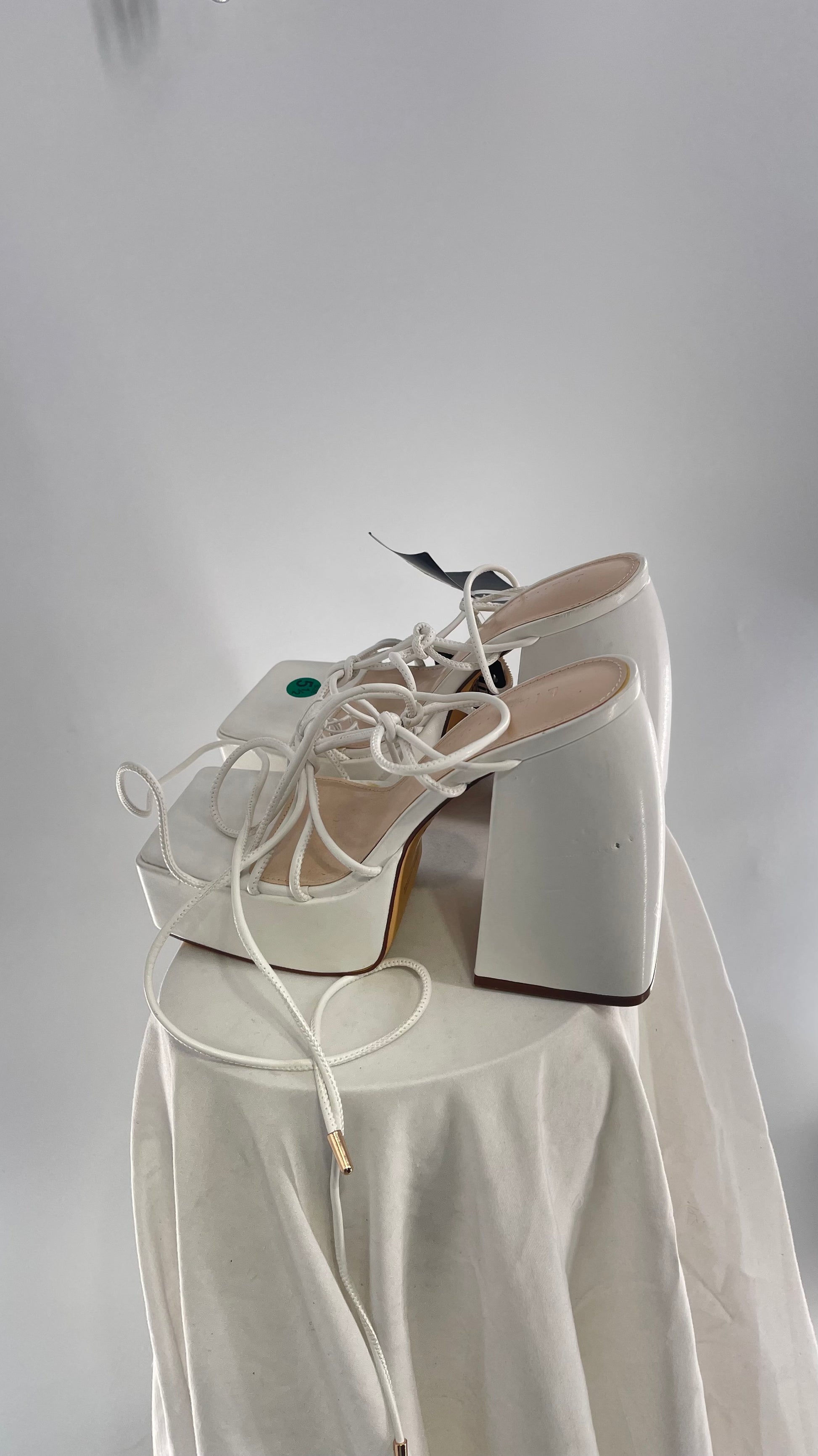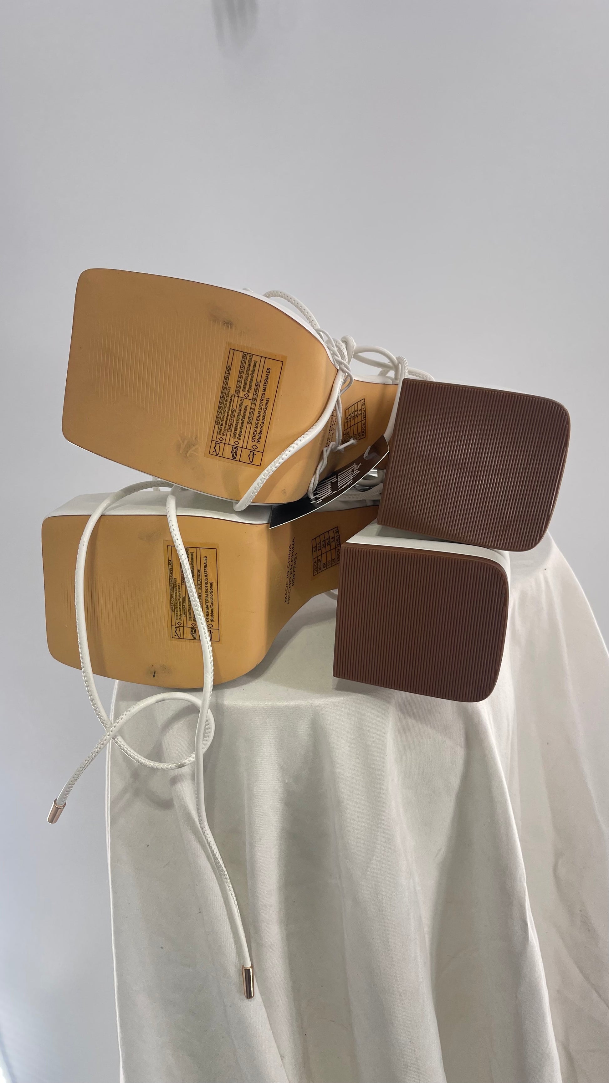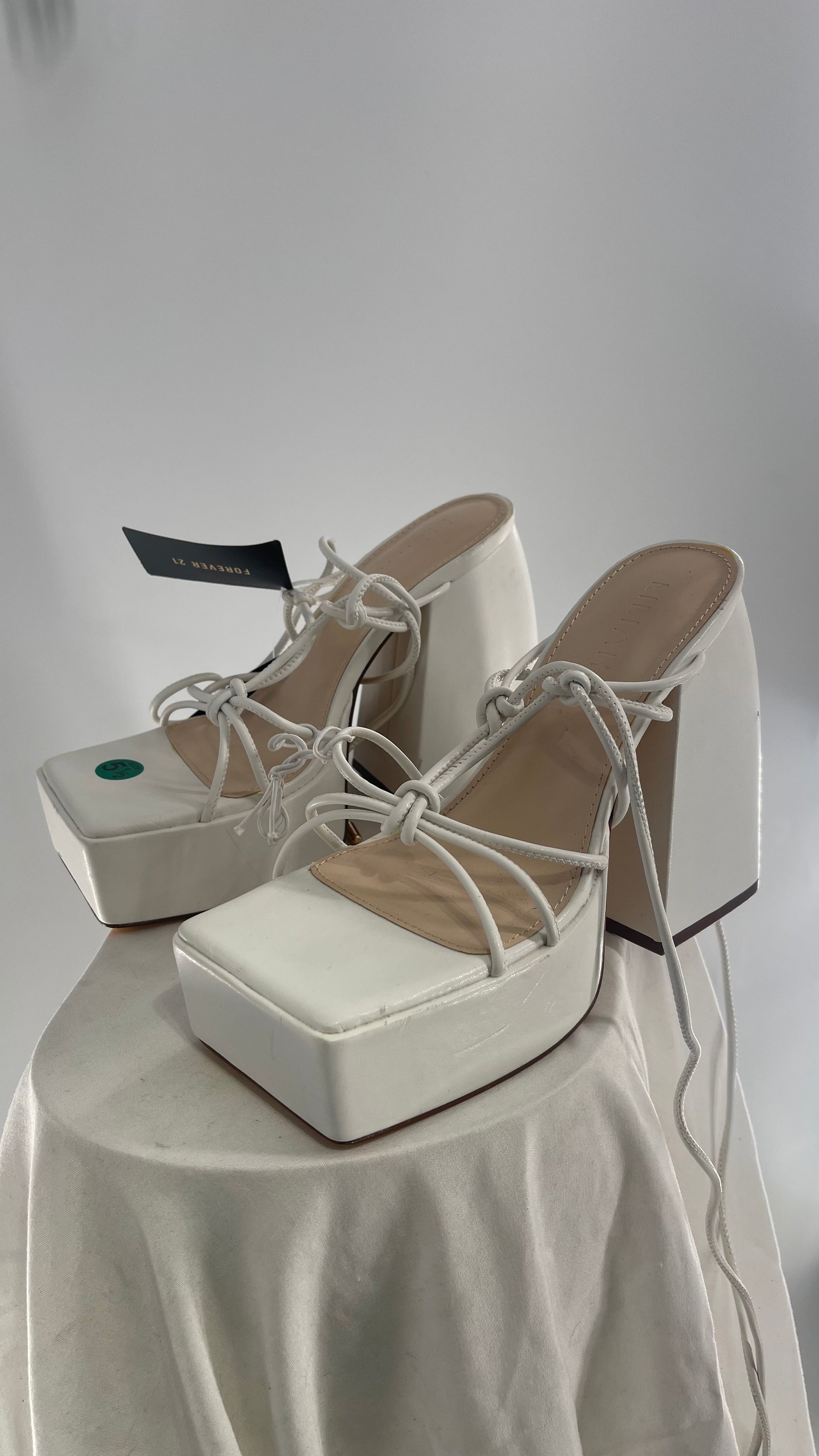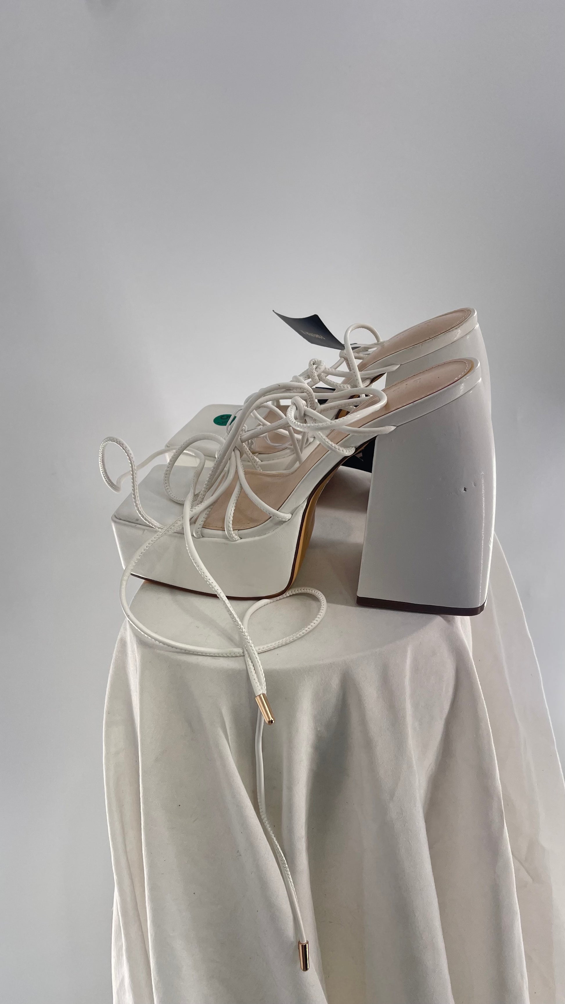 Liliana White Platform Block Heel Tie Up Heel with Tags Attached