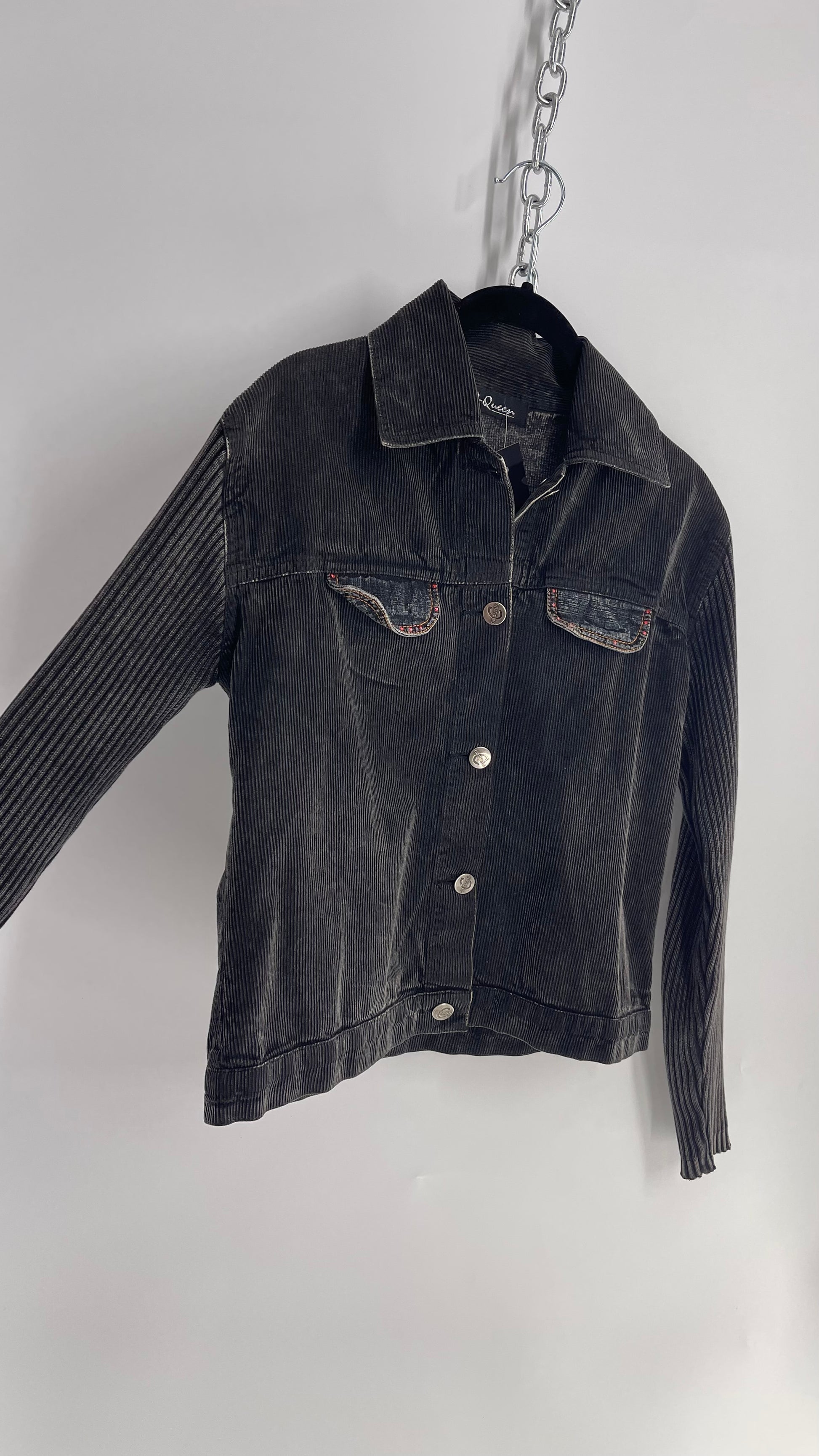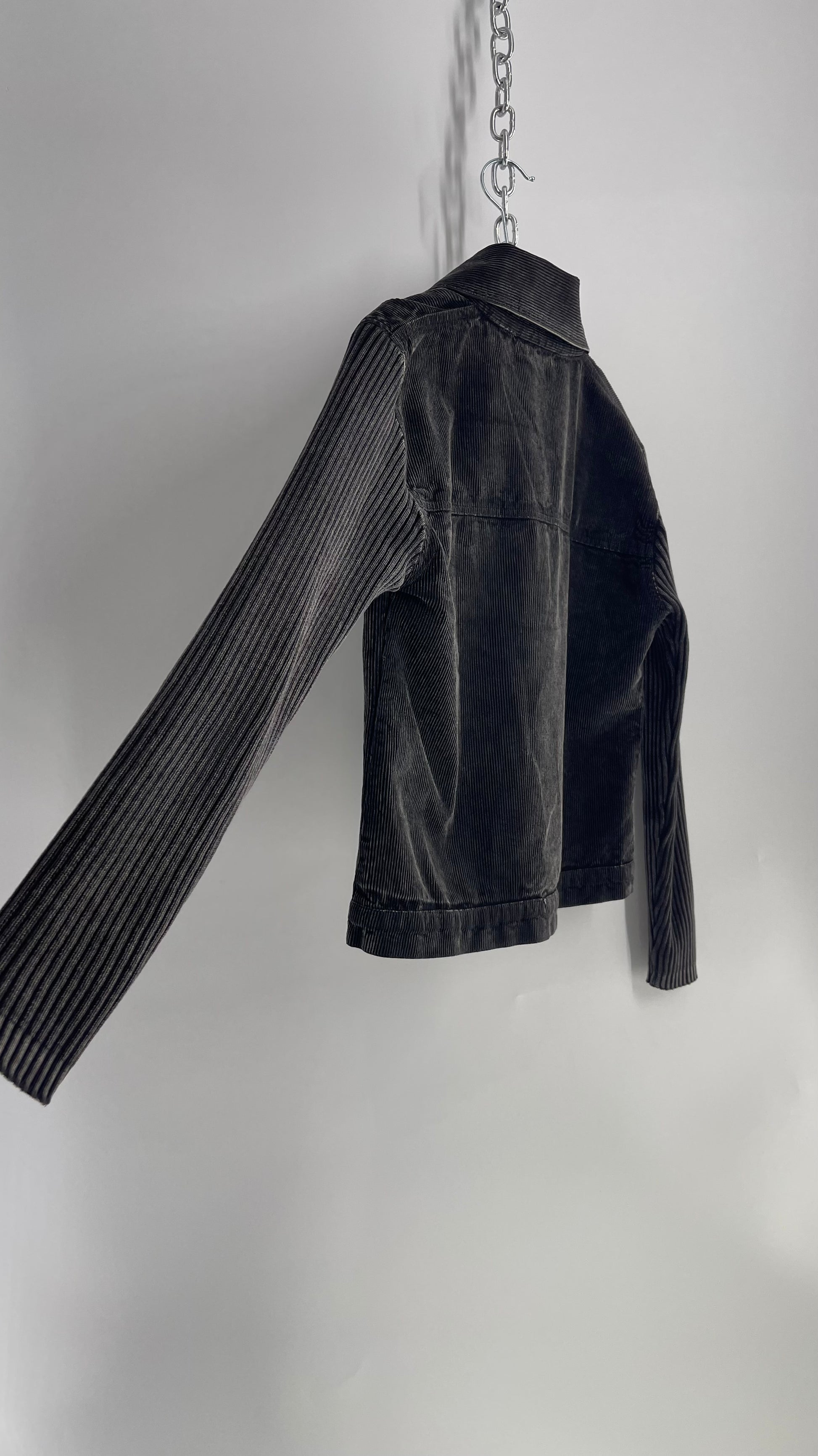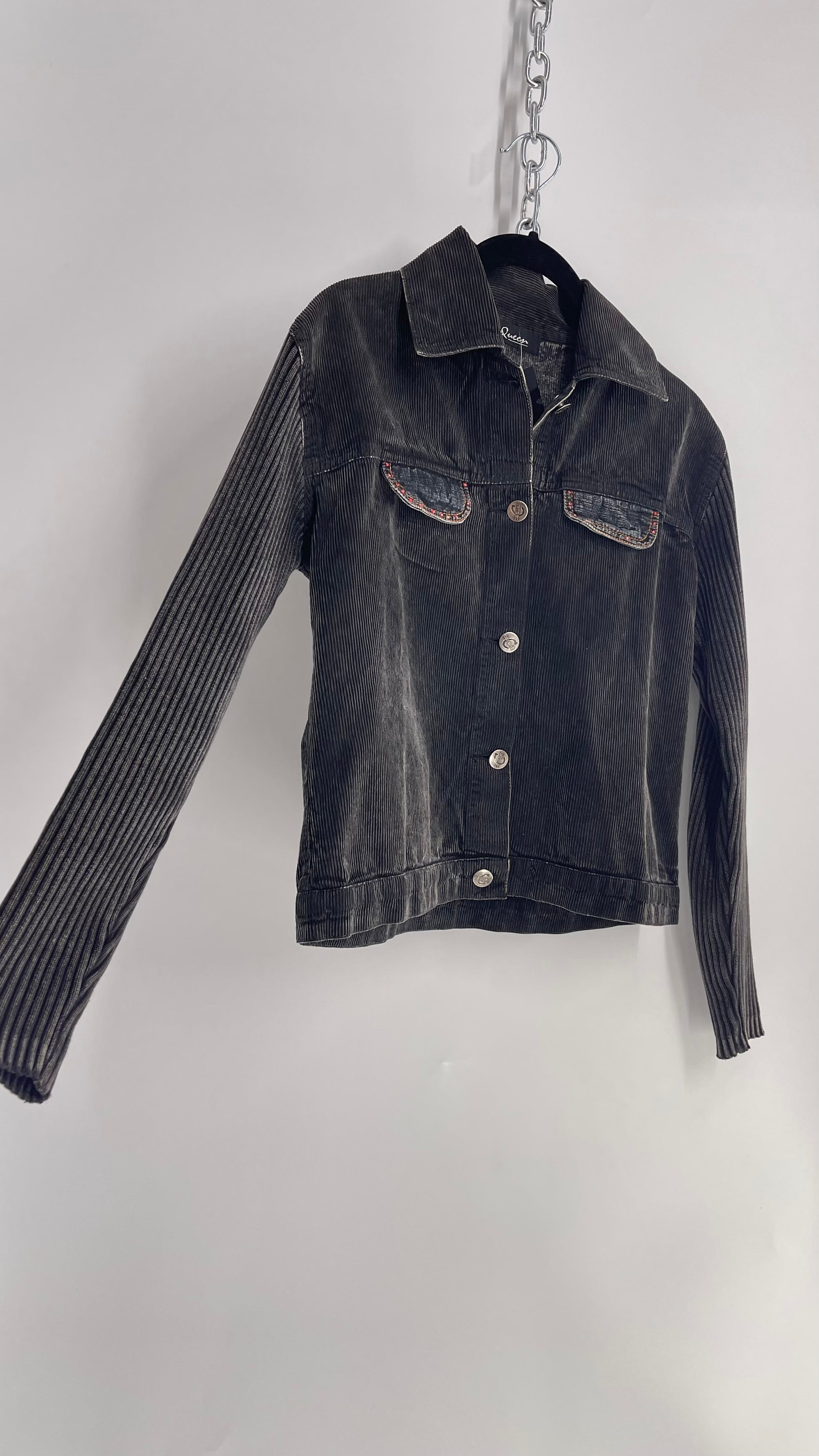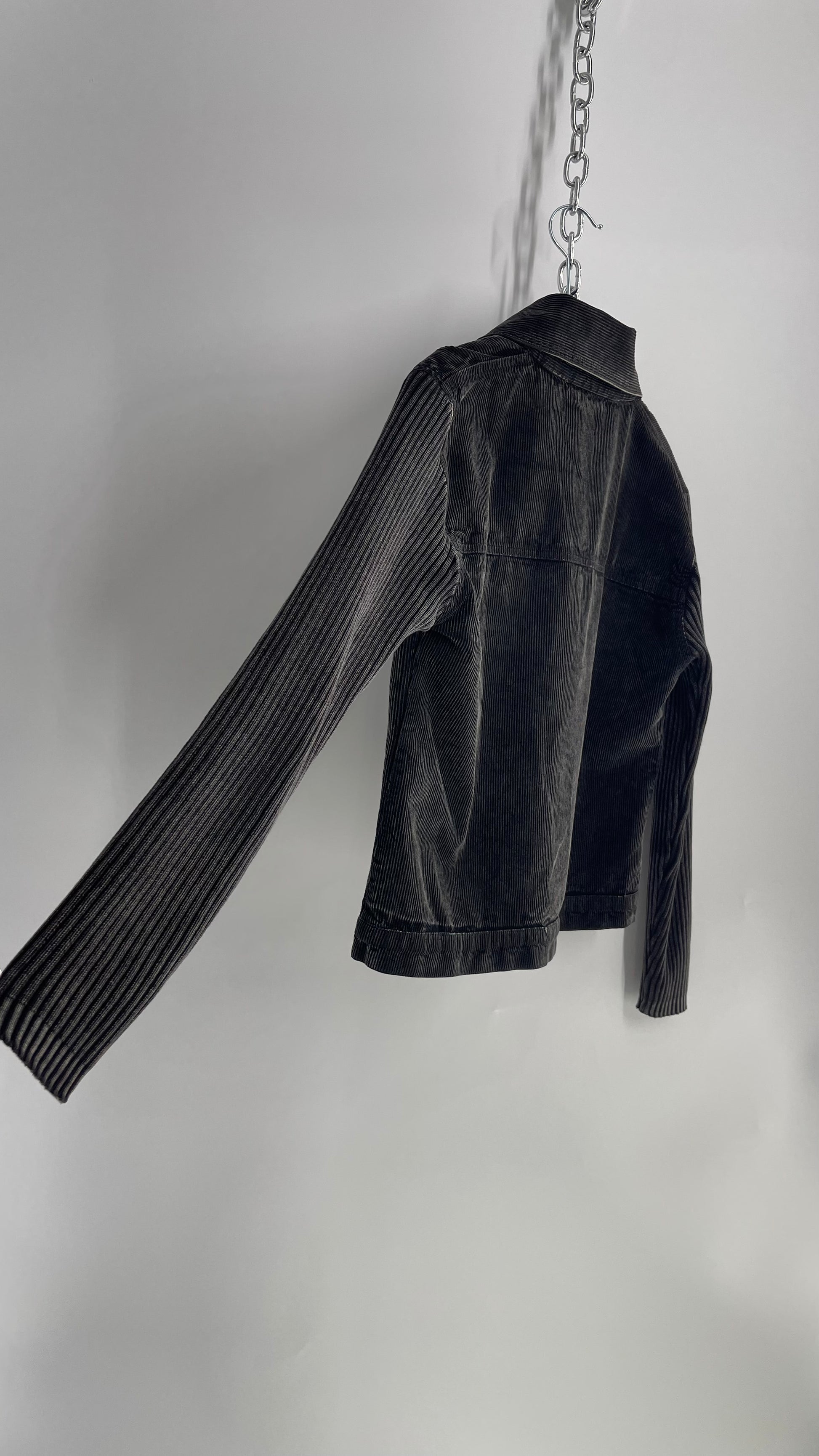 C-Queen Grey Ribbed Sleeve Corduroy Jacket with Embossed Buttons (Small)