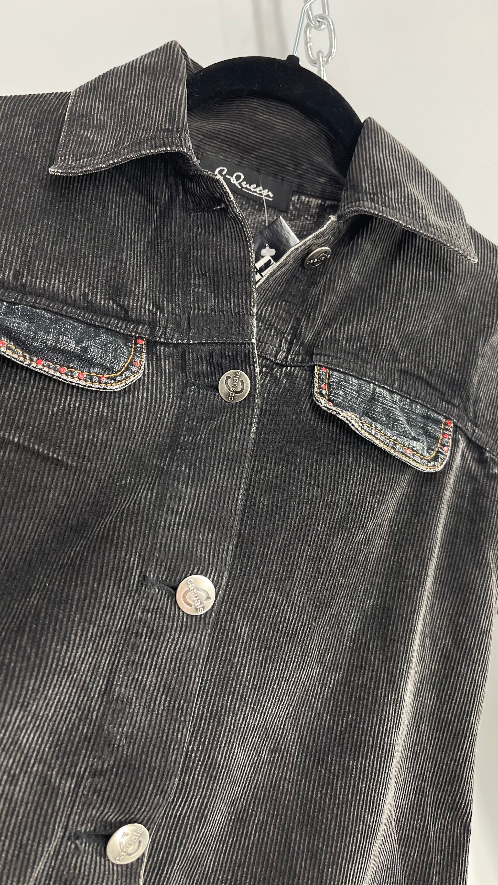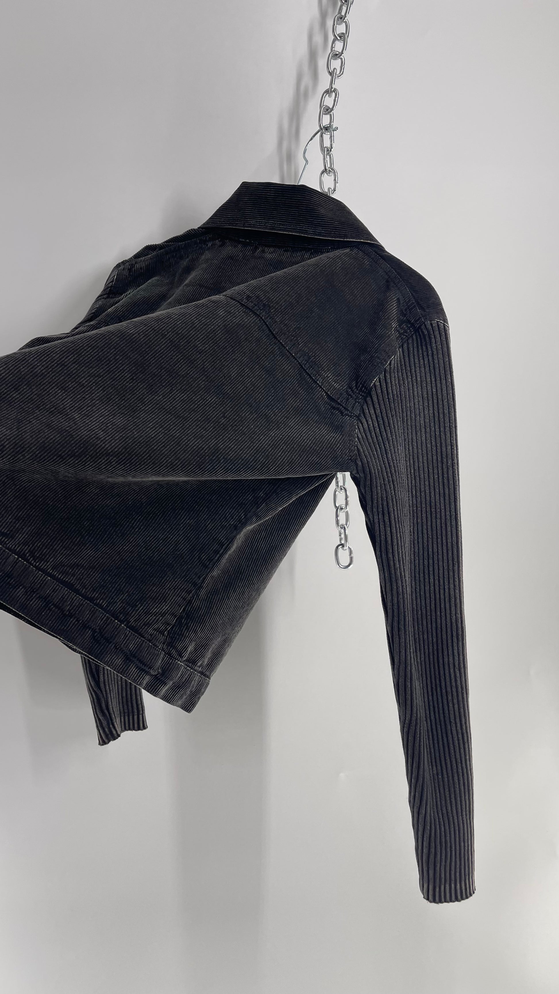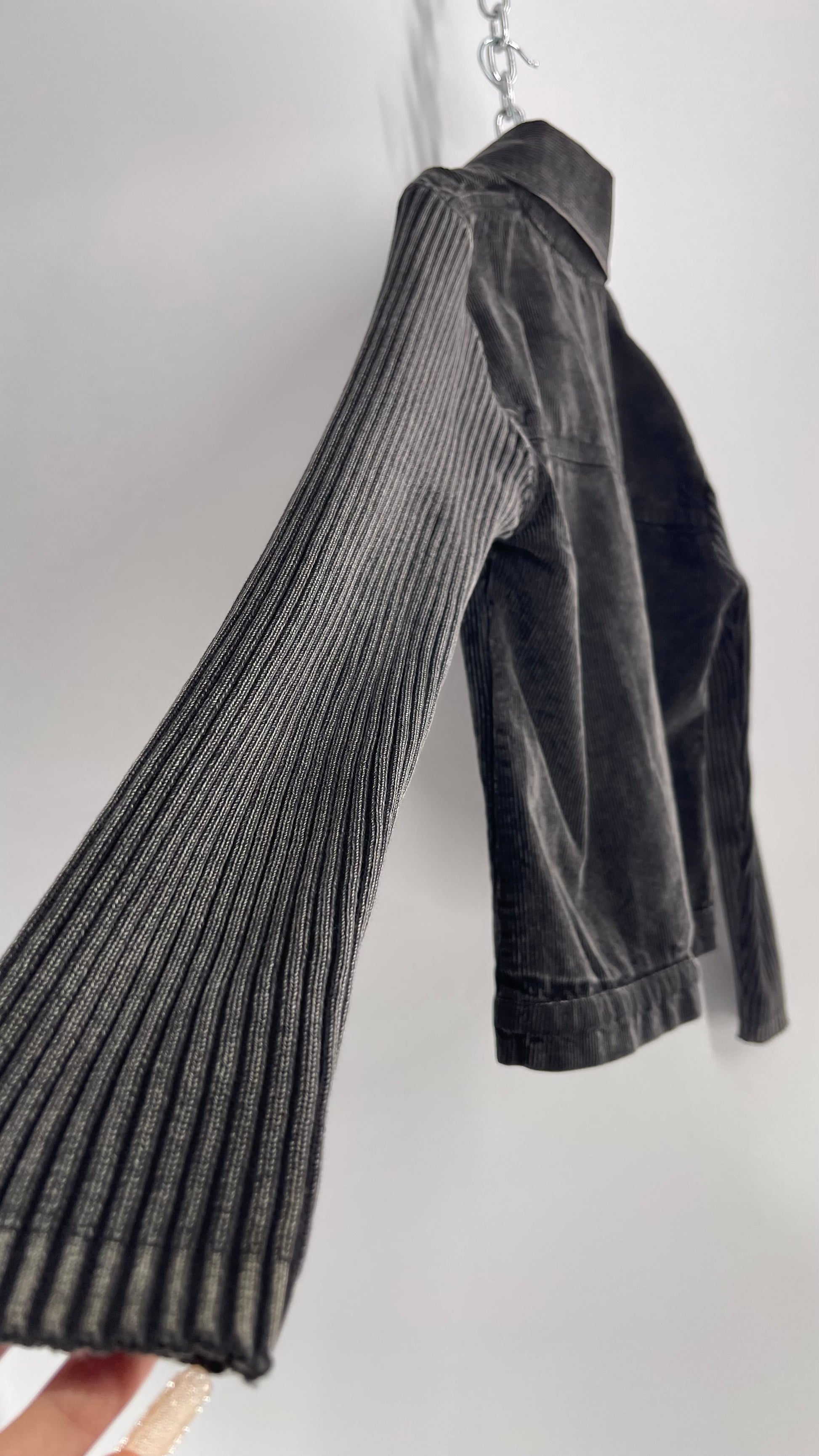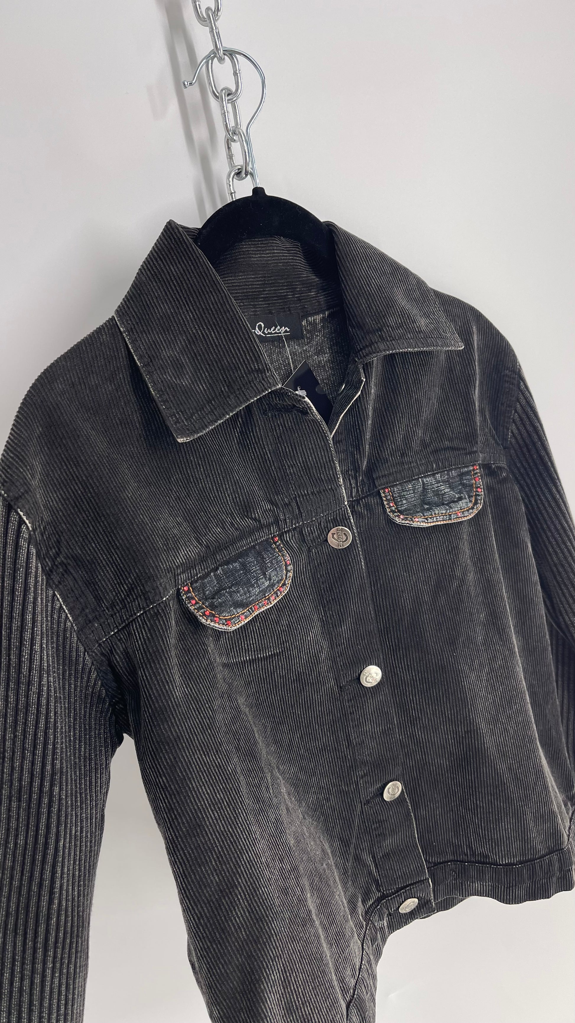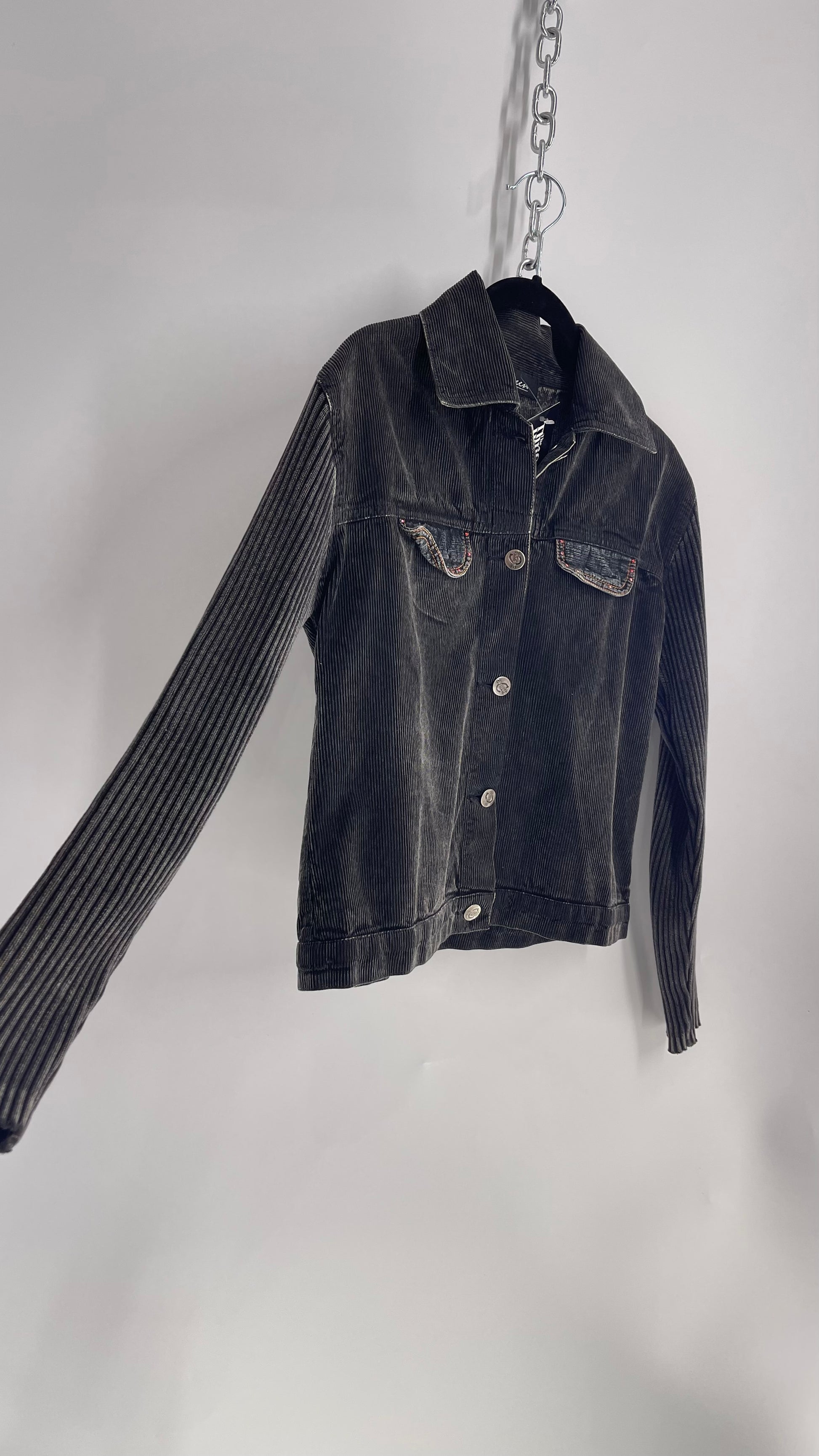 C-Queen Grey Ribbed Sleeve Corduroy Jacket with Embossed Buttons (Small)