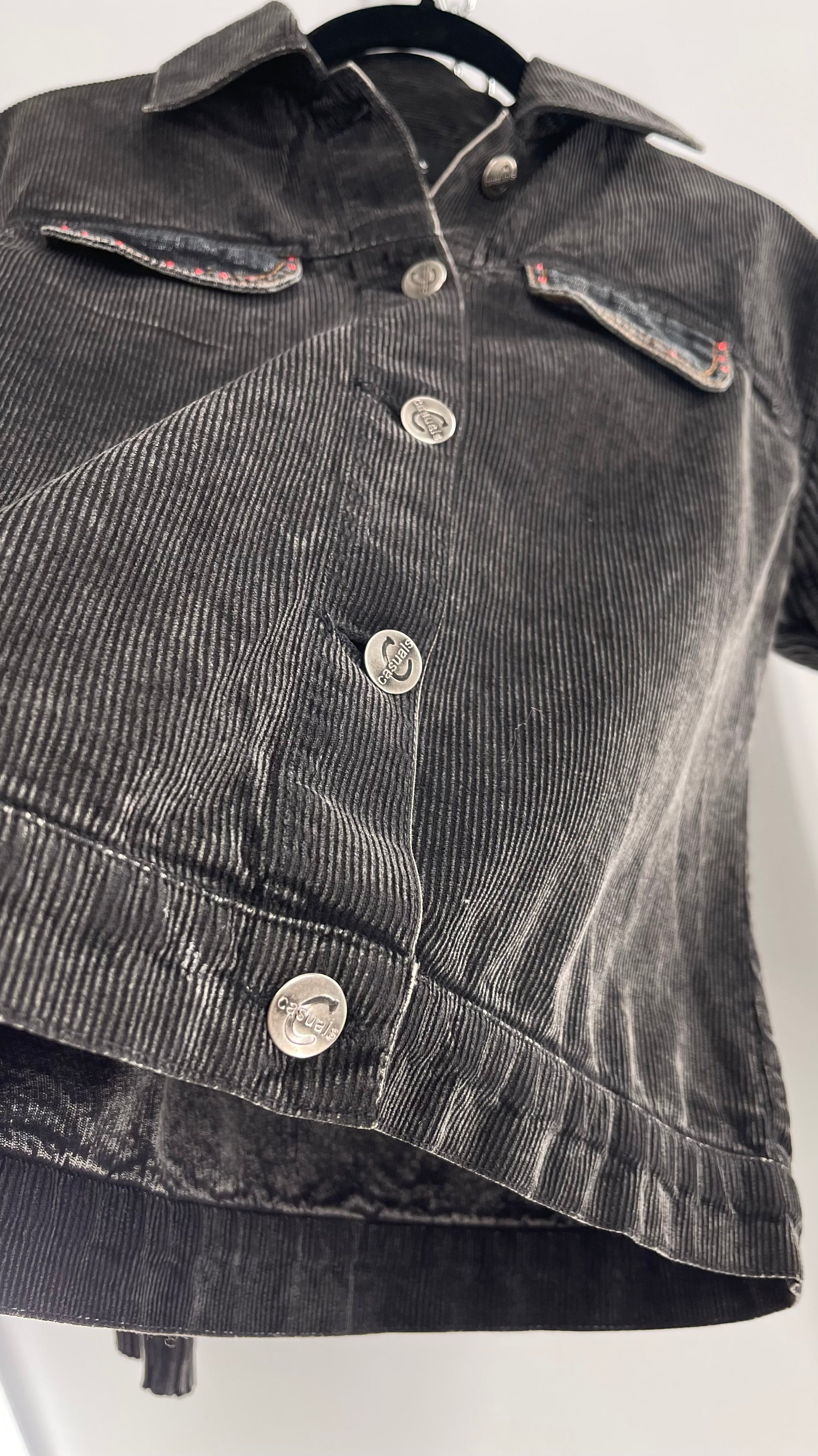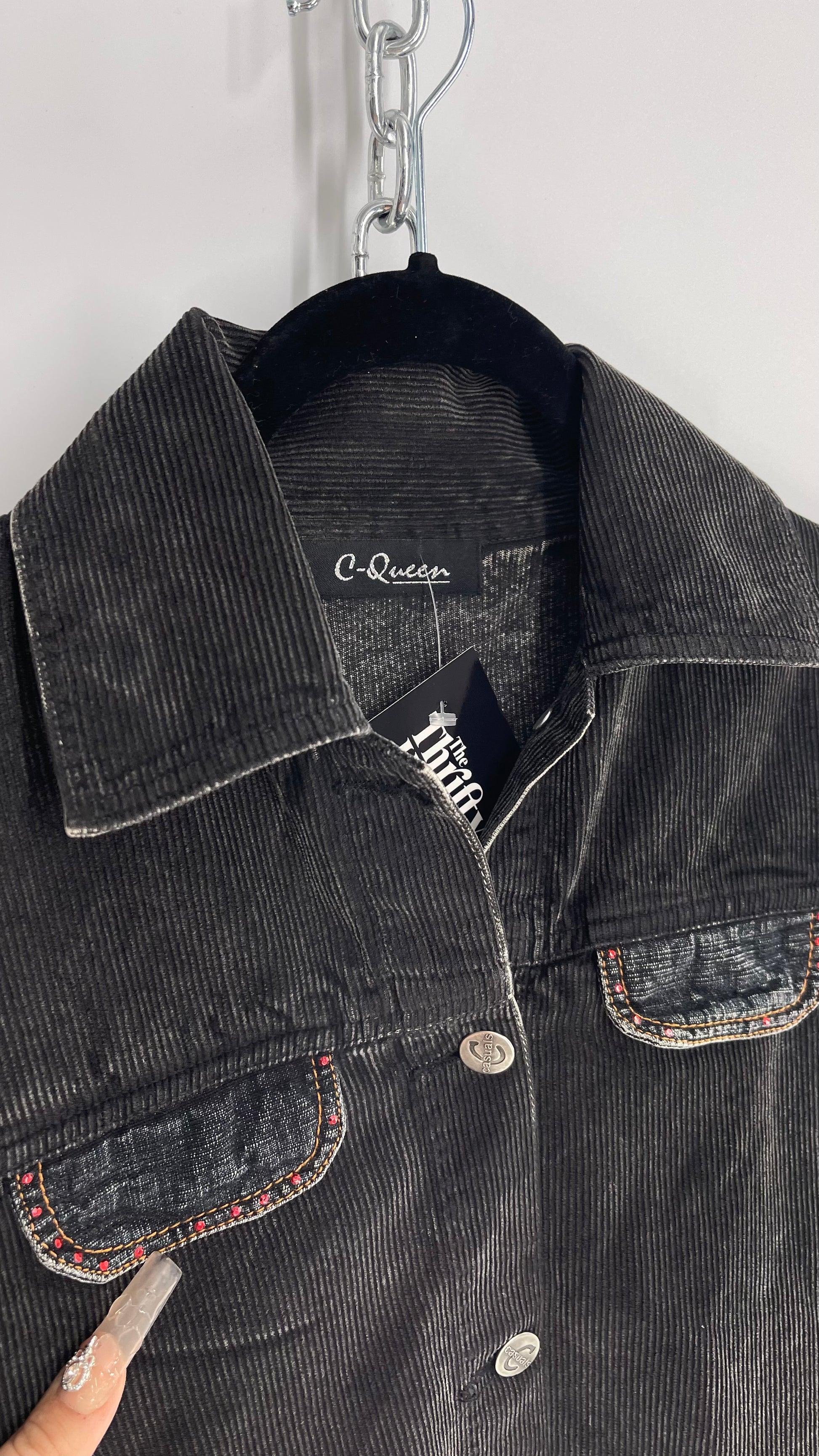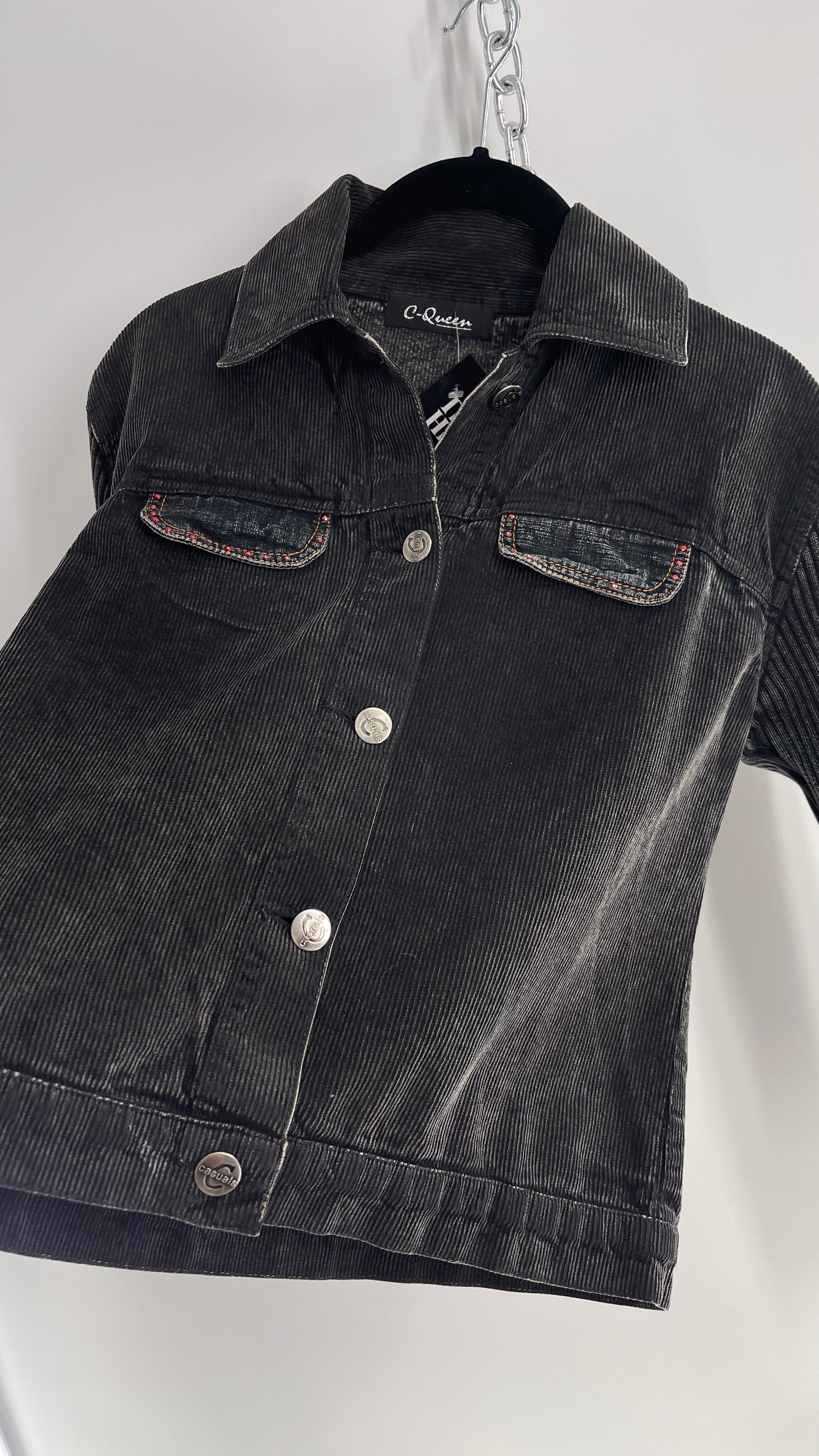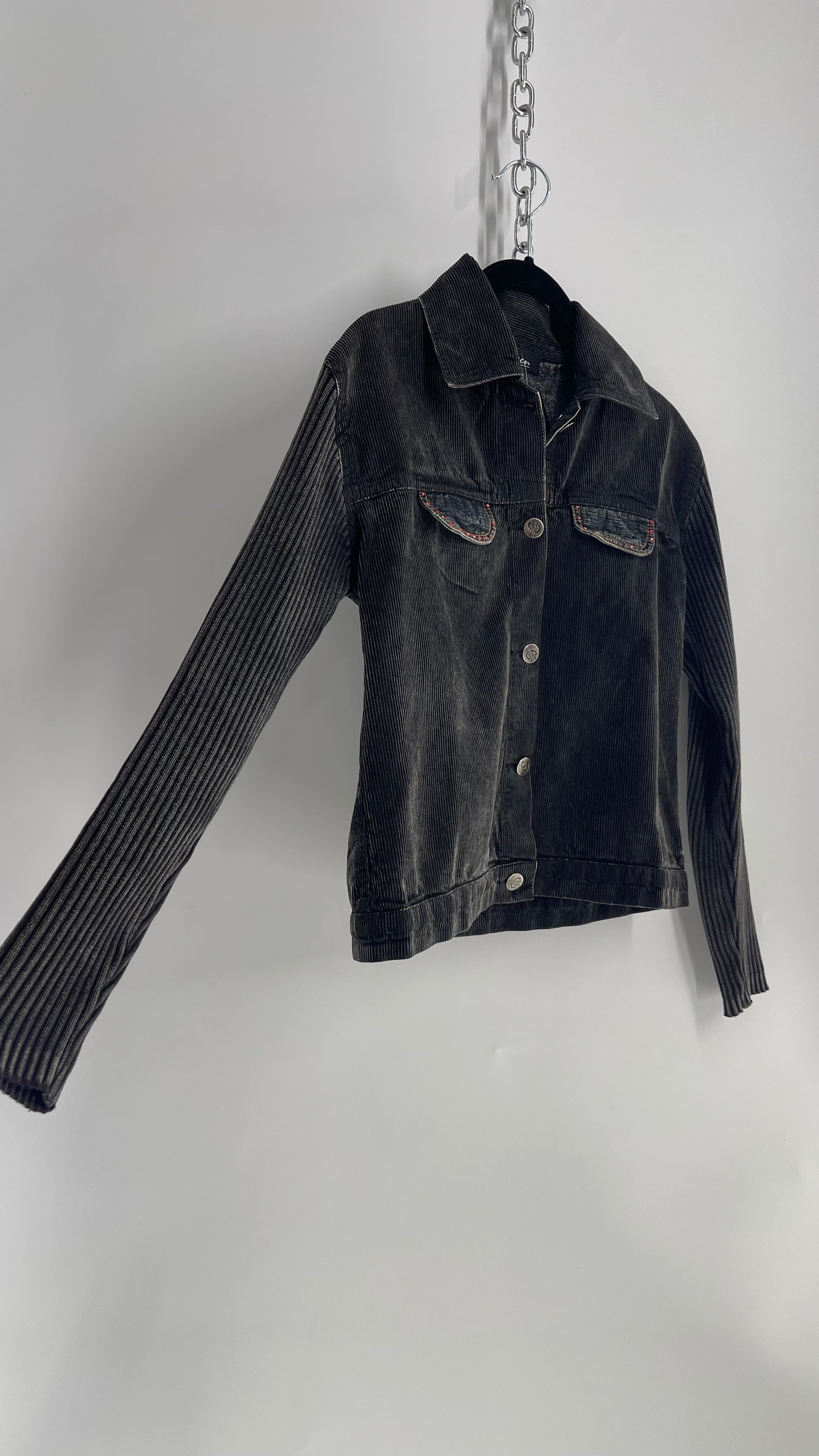 C-Queen Grey Ribbed Sleeve Corduroy Jacket with Embossed Buttons (Small)