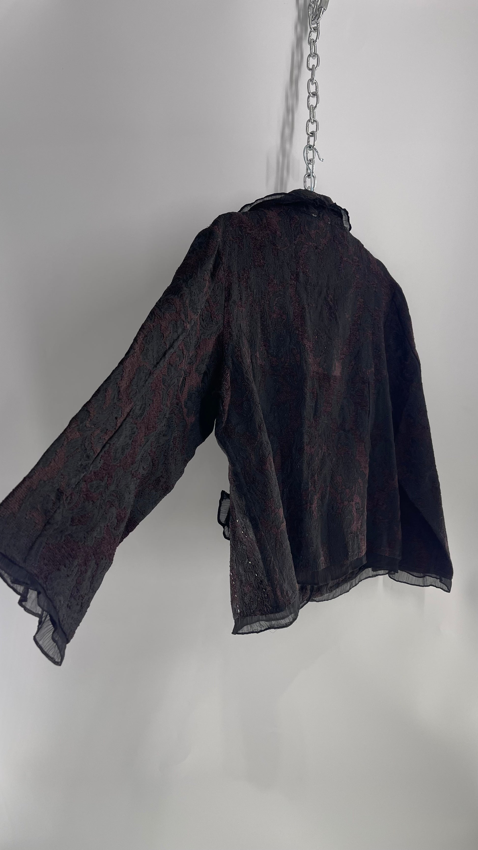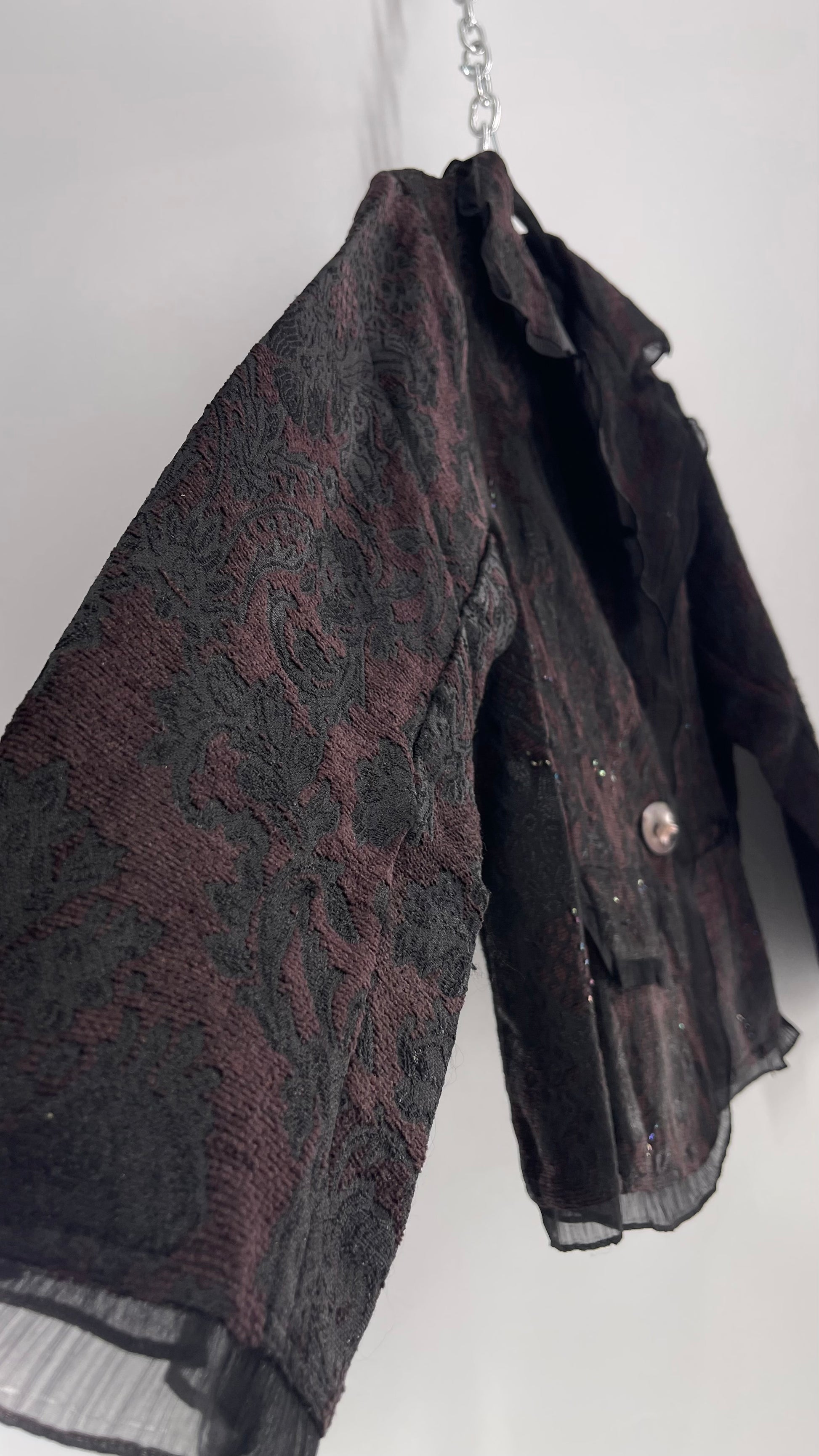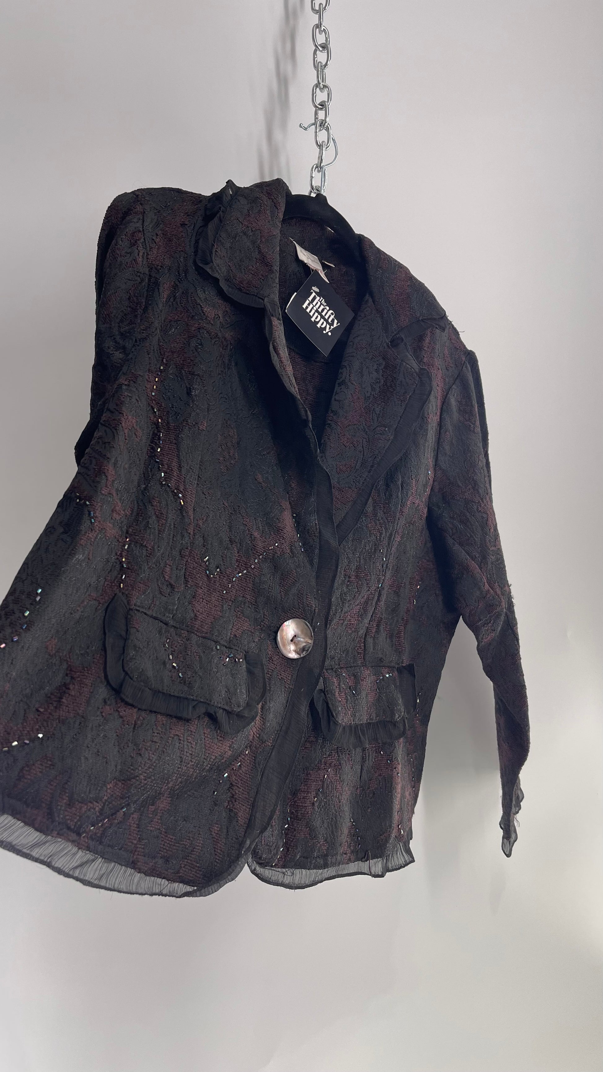 Vintage New Directions Tapestry Blazer with Sheer Trim, Beading and Shell Button(XL)
