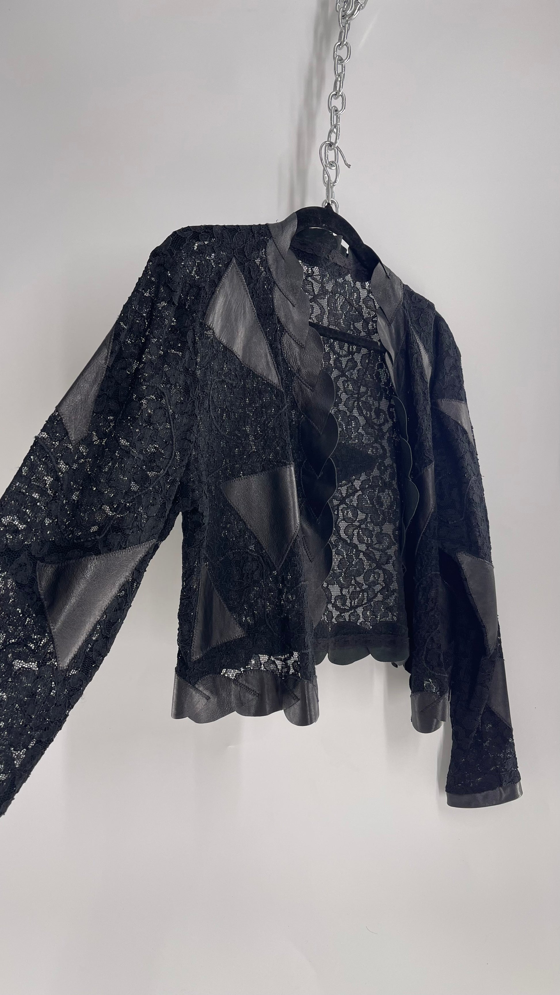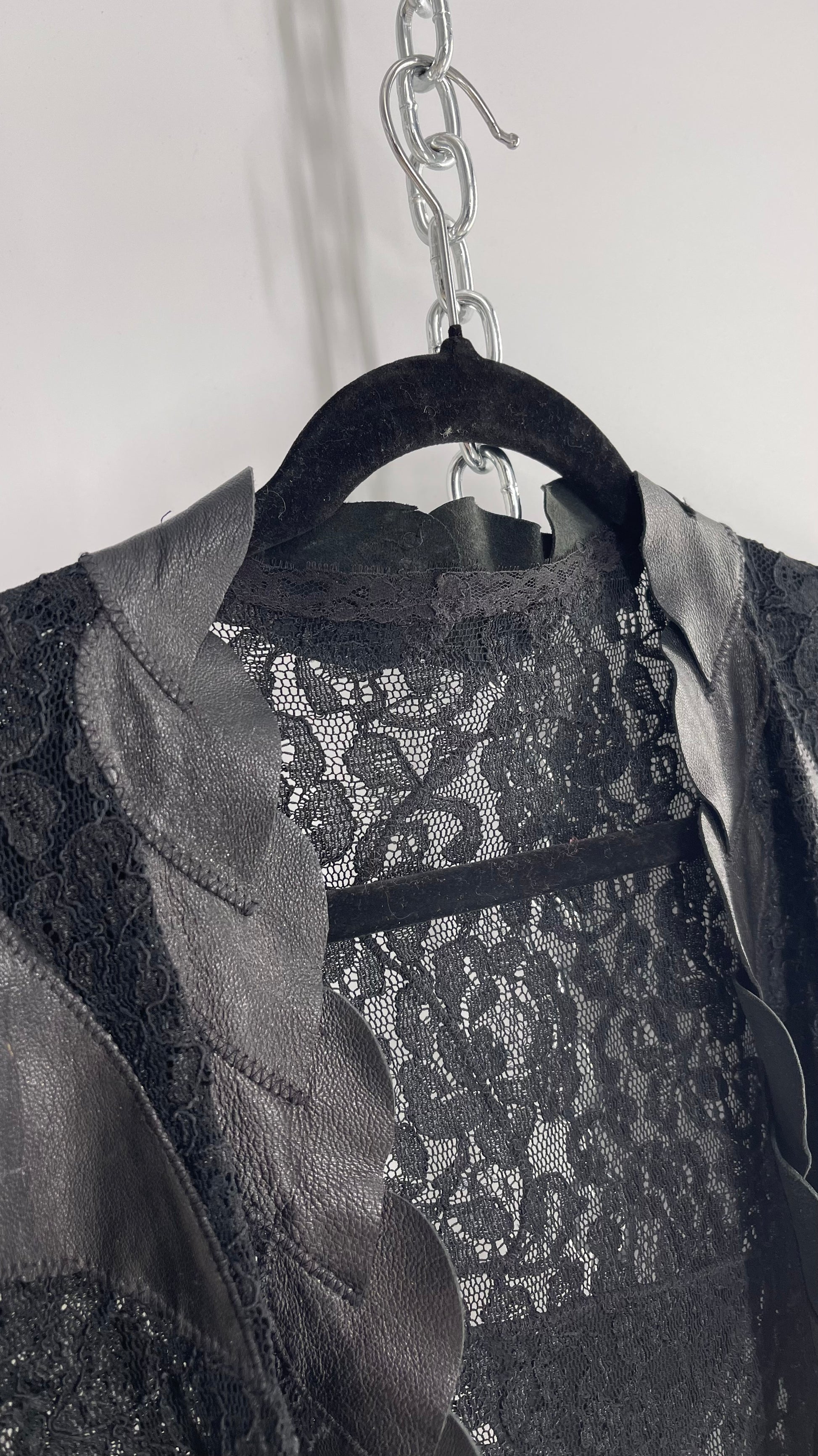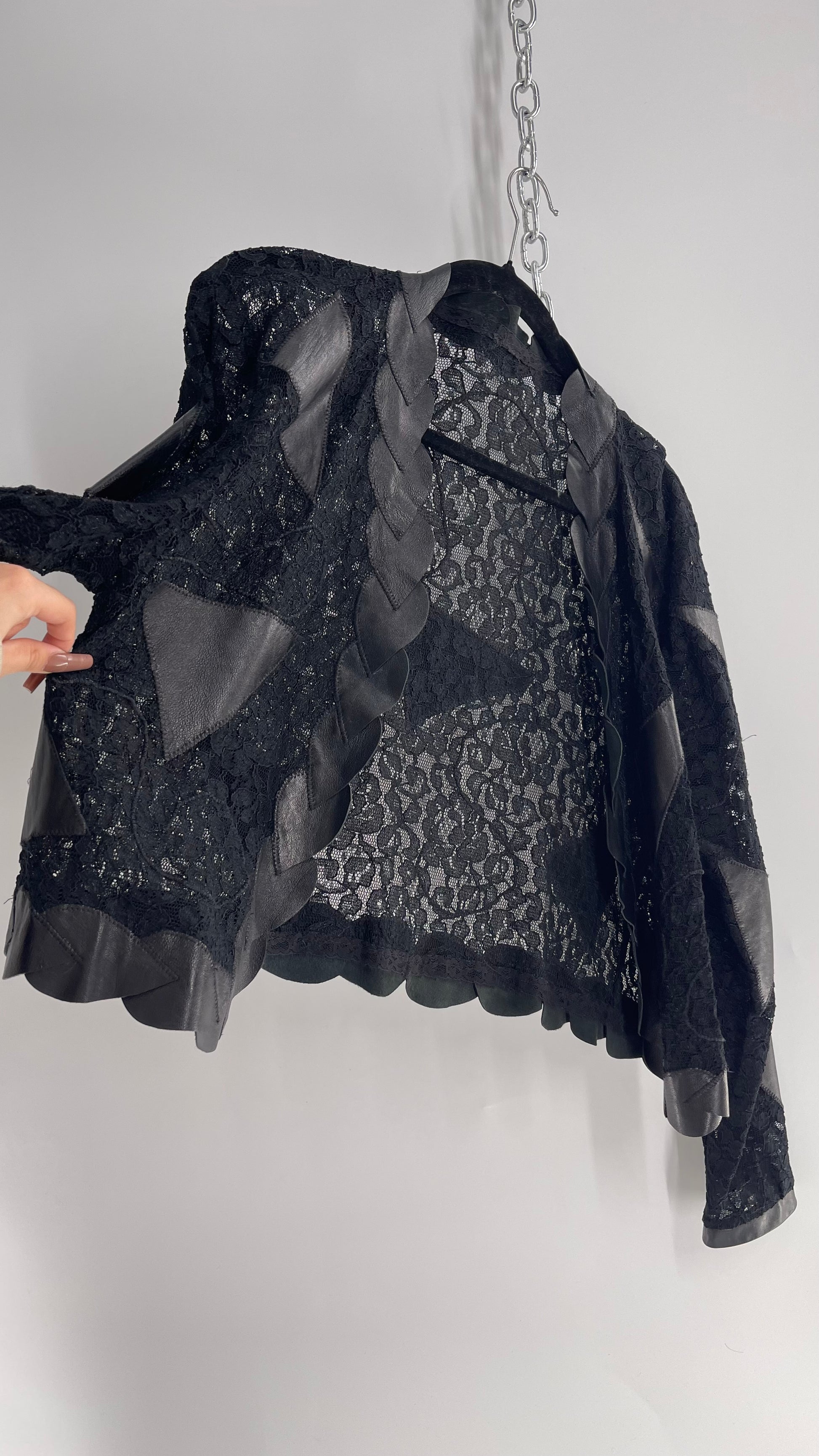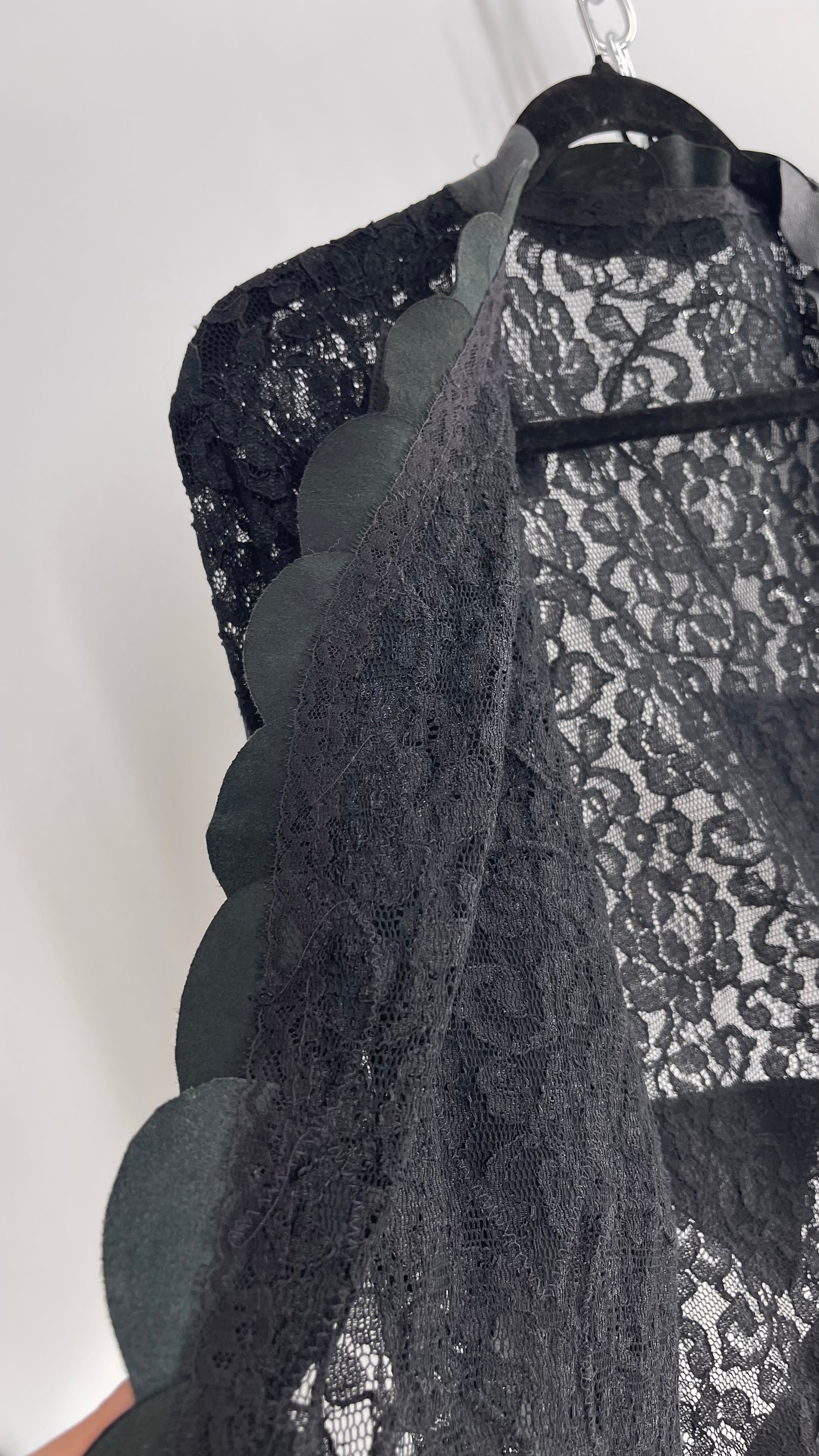 Vintage Black Lace Jacket with Genuine Black Leather Patches and Lining (M/L)