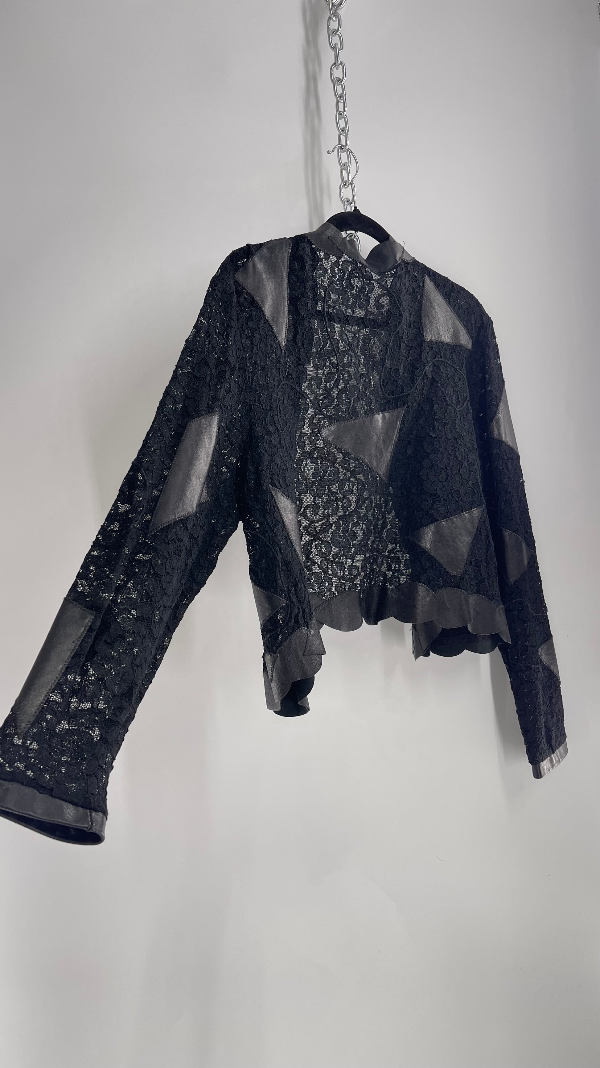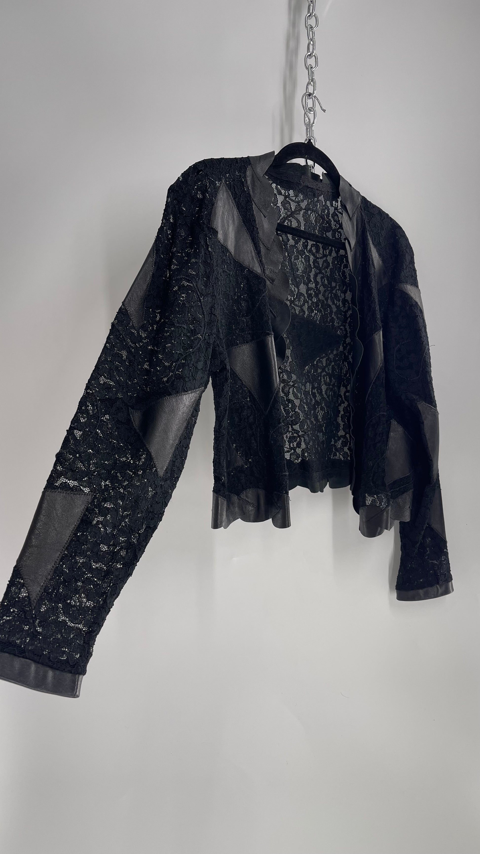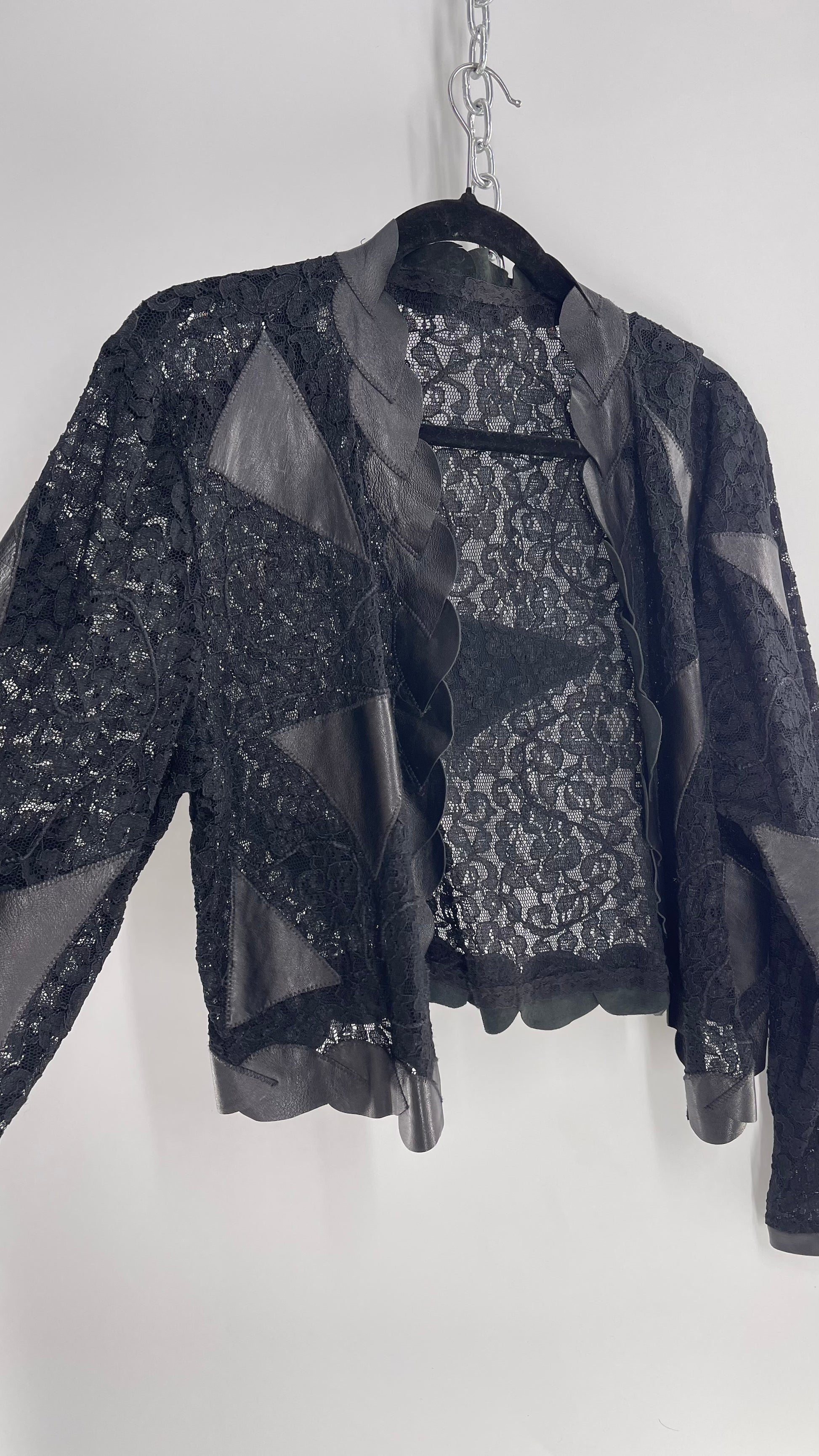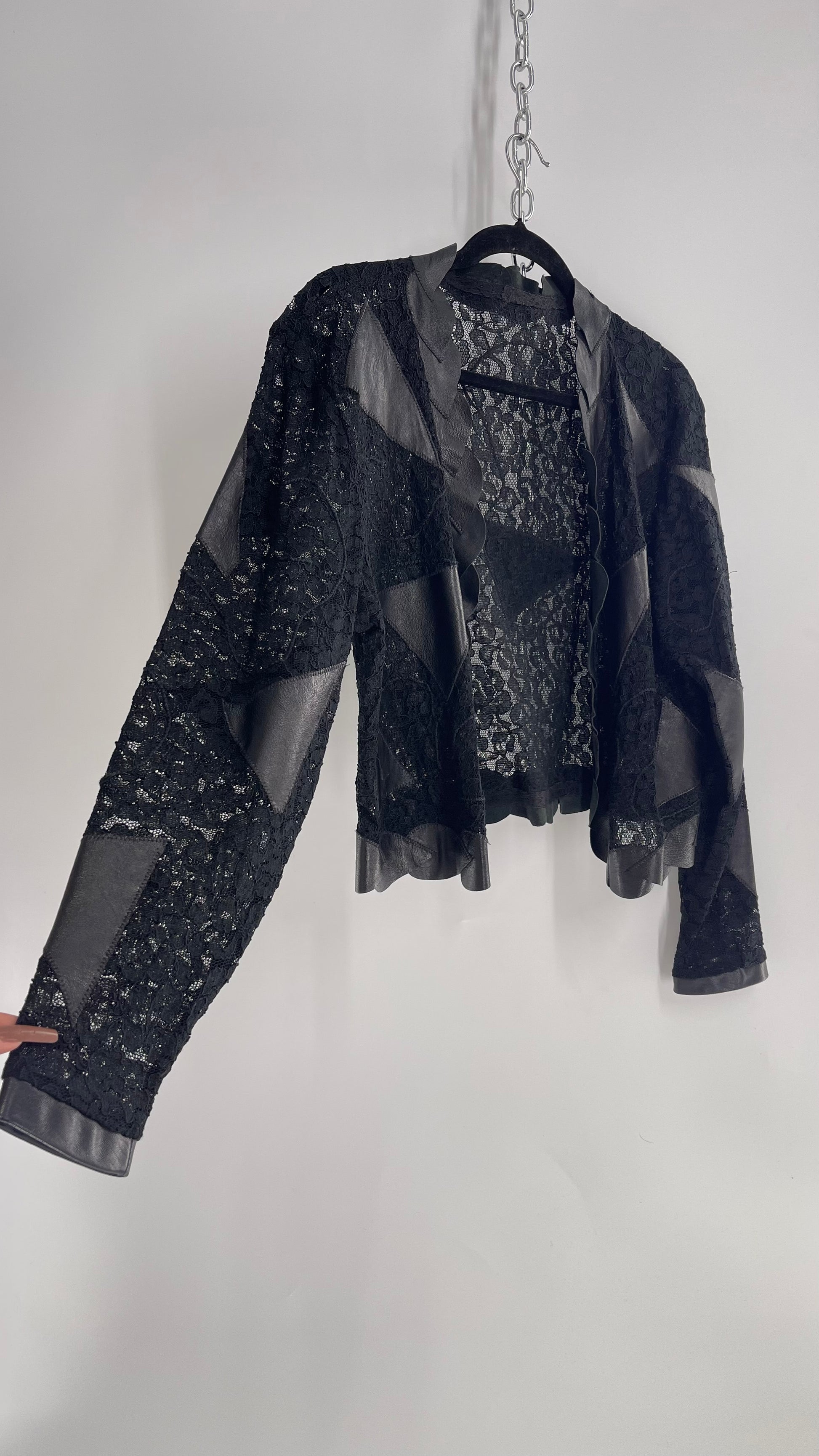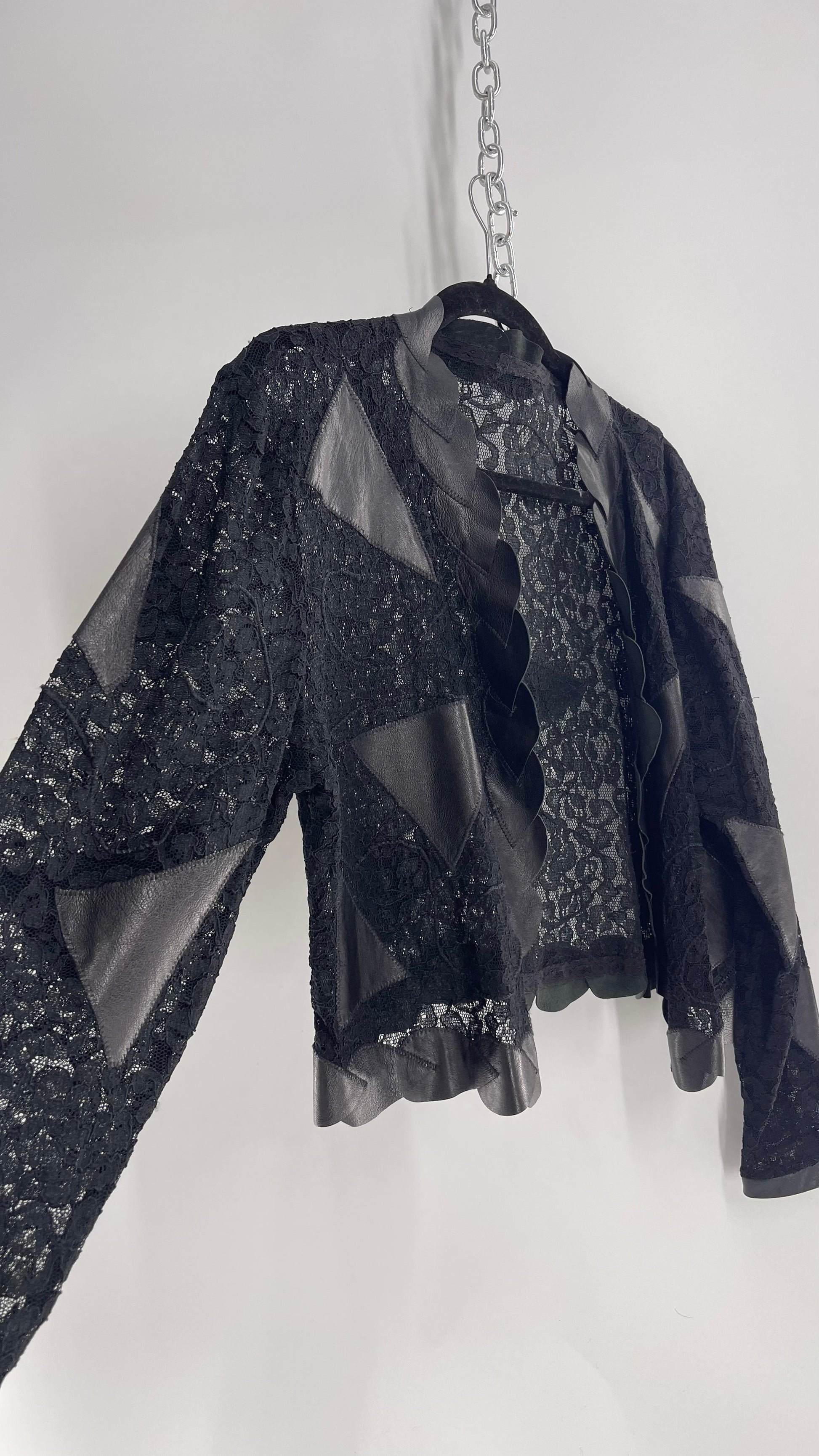 Vintage Black Lace Jacket with Genuine Black Leather Patches and Lining (M/L)