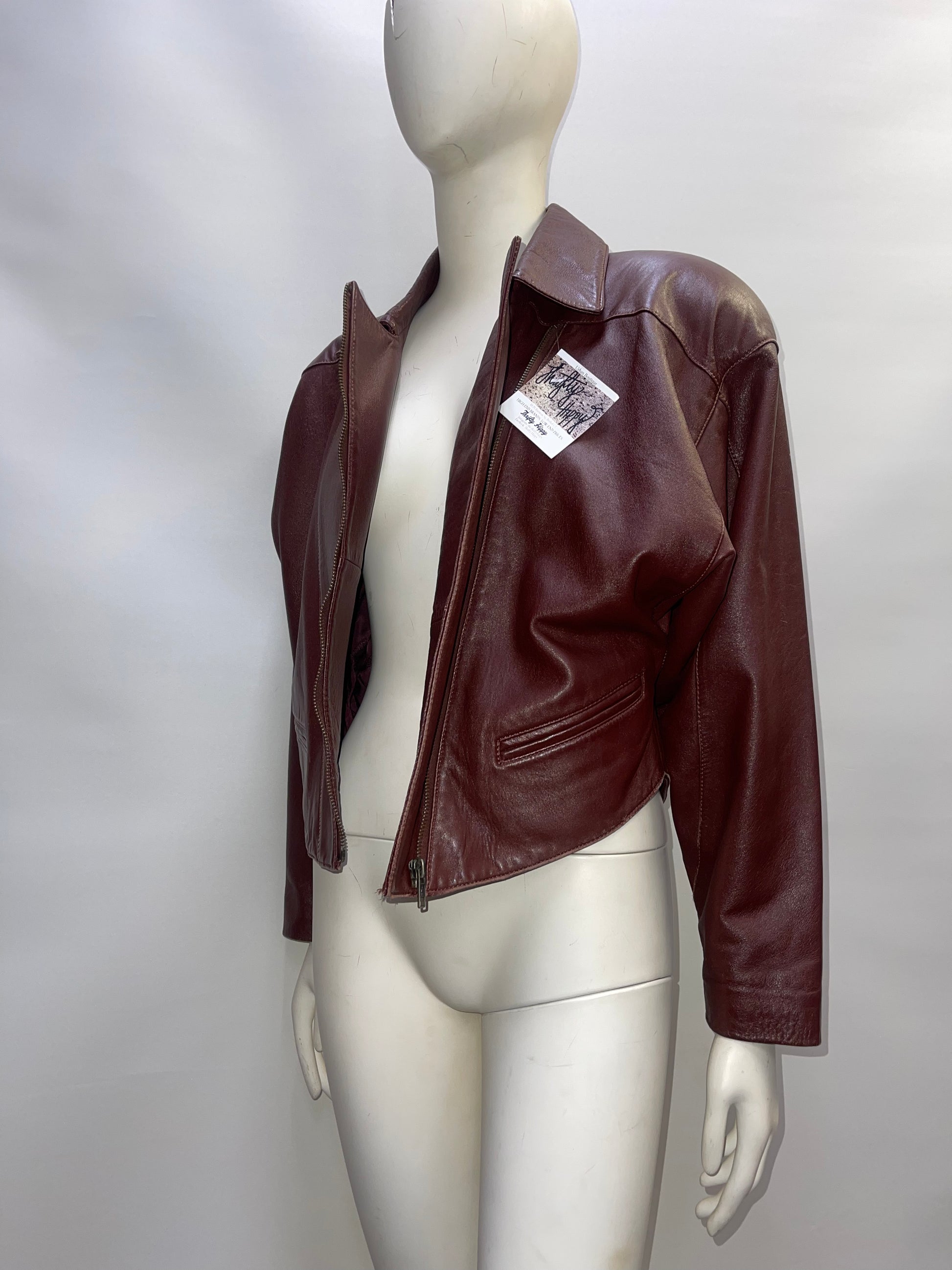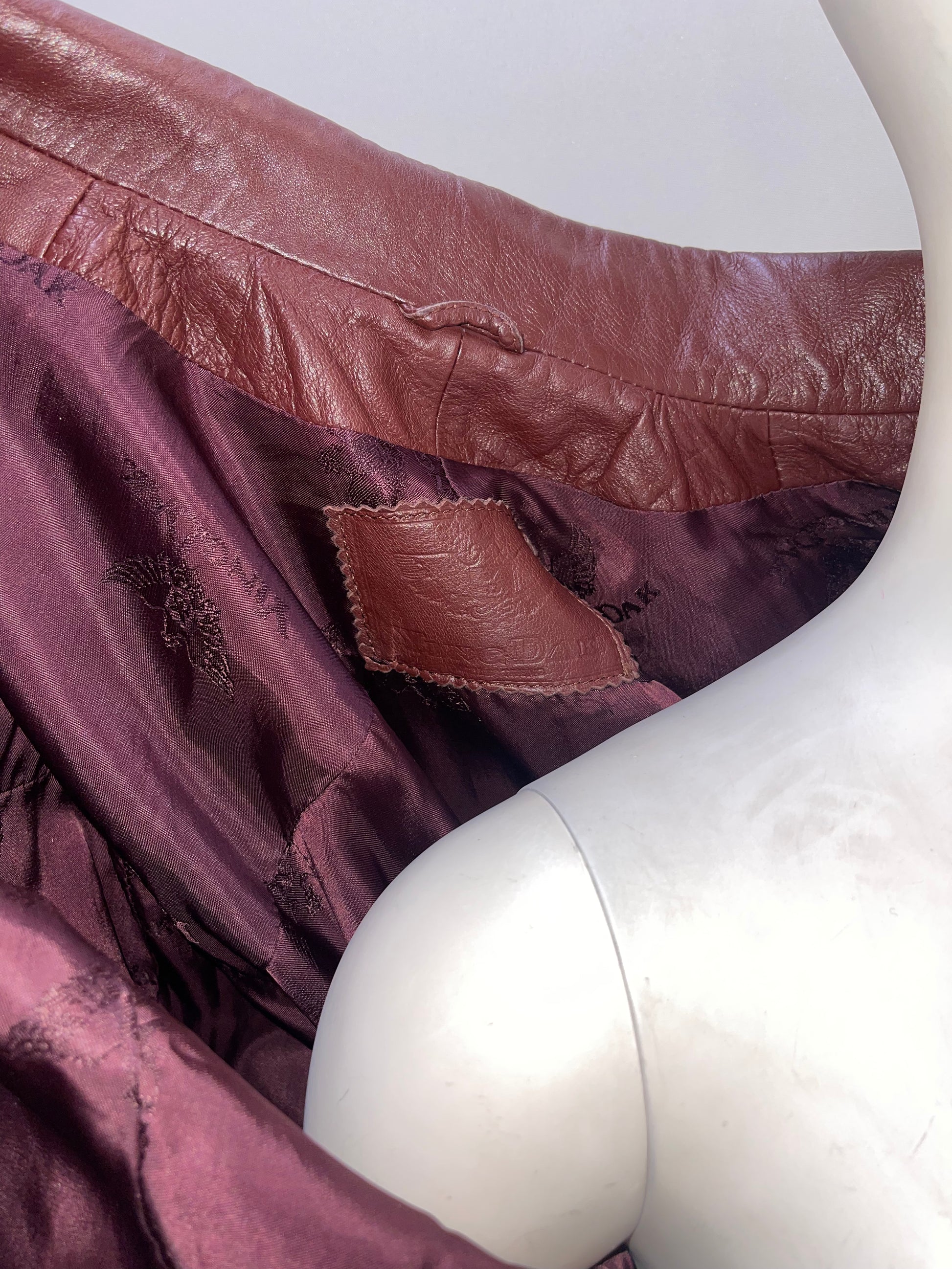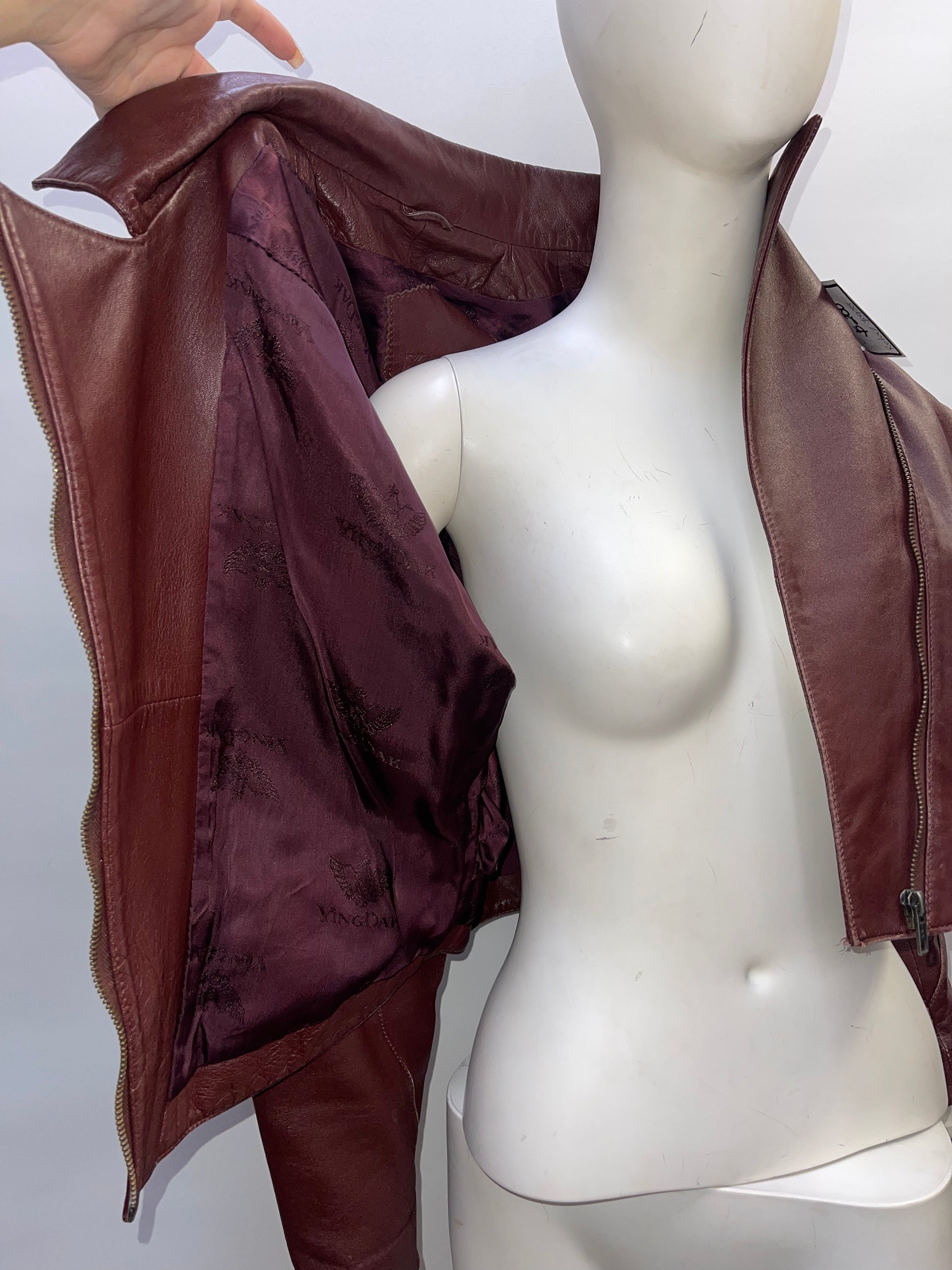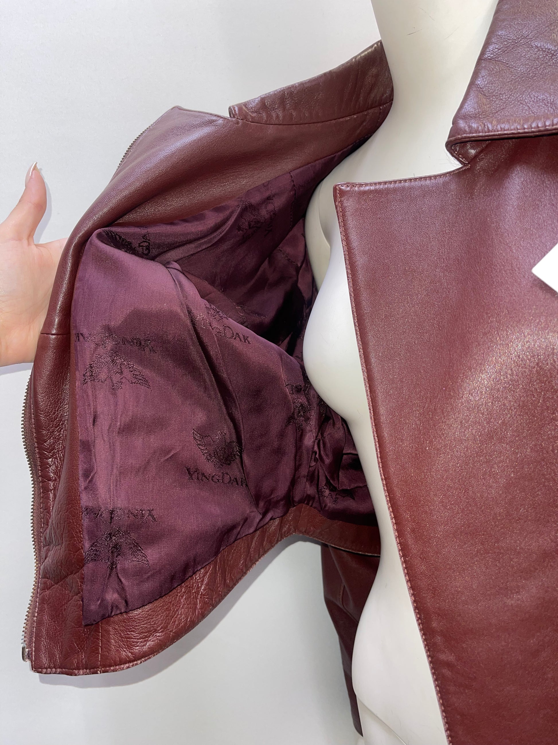 Vintage YingDak burgundy leather jacket with the softest leather, cropped yet boxy fit and iconic logo lining
