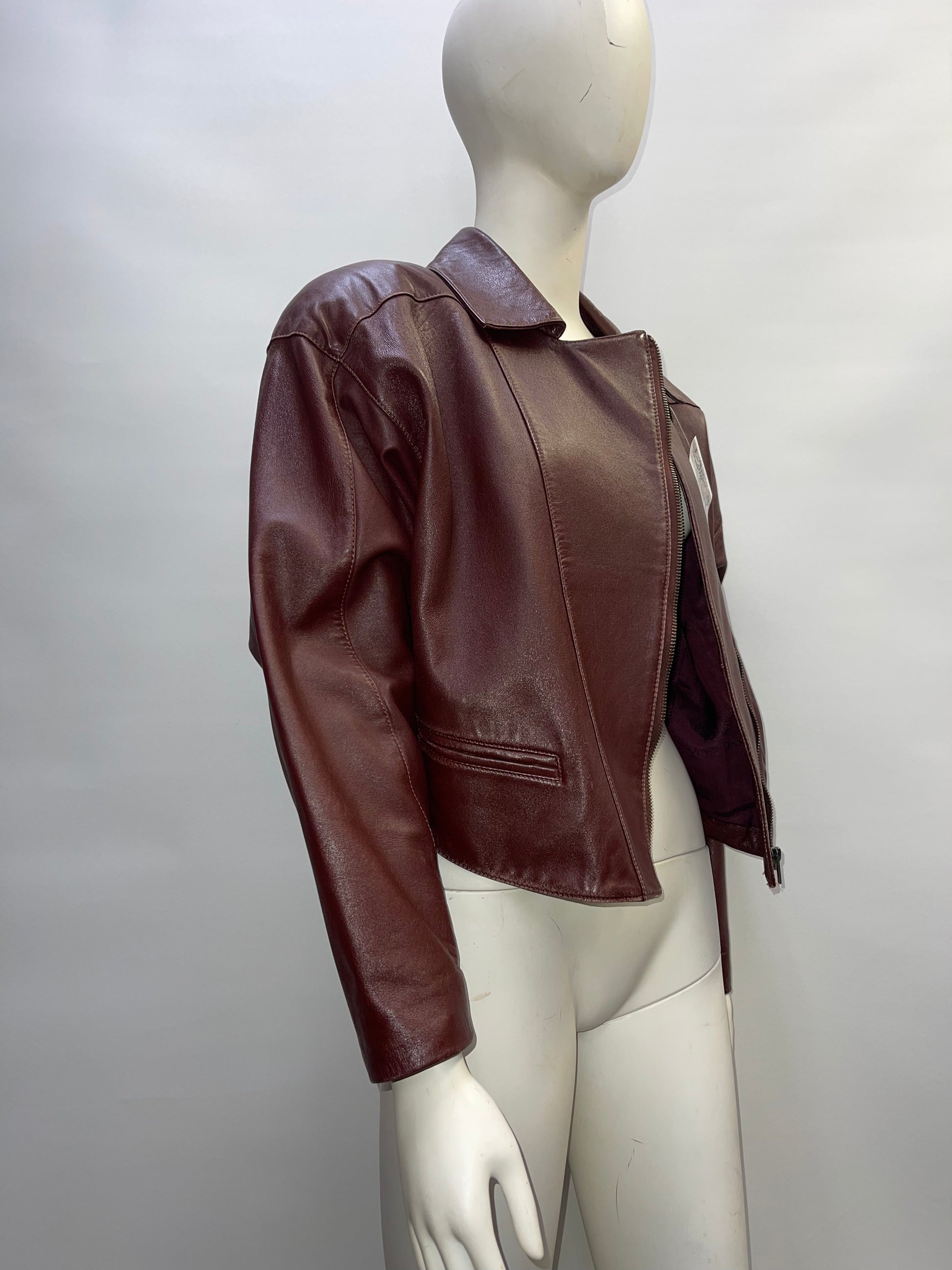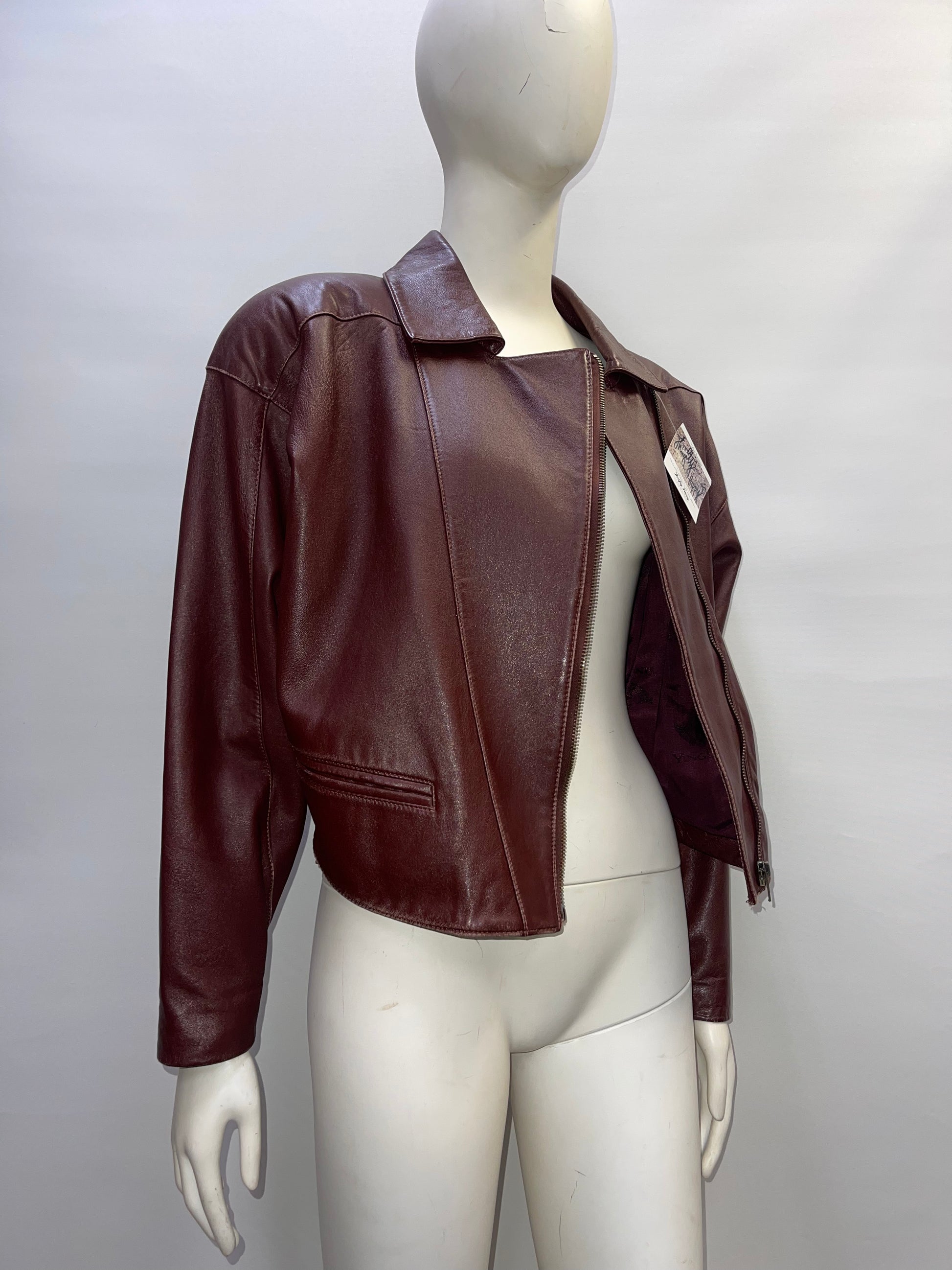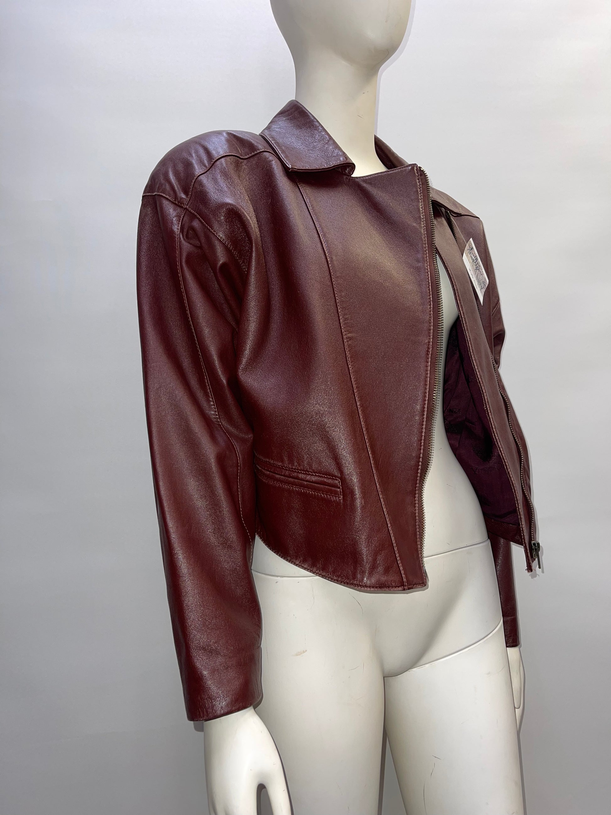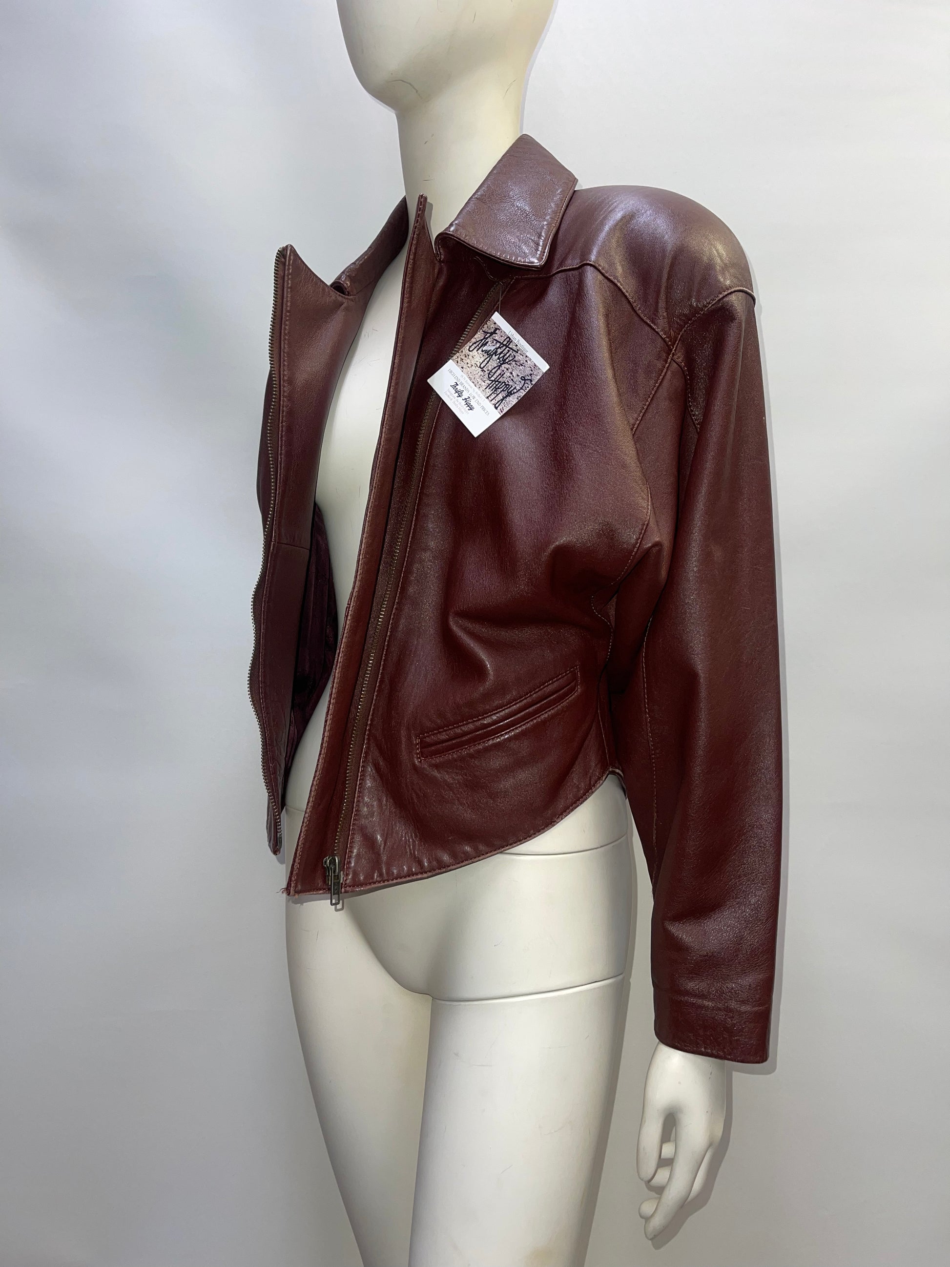 Vintage YingDak burgundy leather jacket with the softest leather, cropped yet boxy fit and iconic logo lining