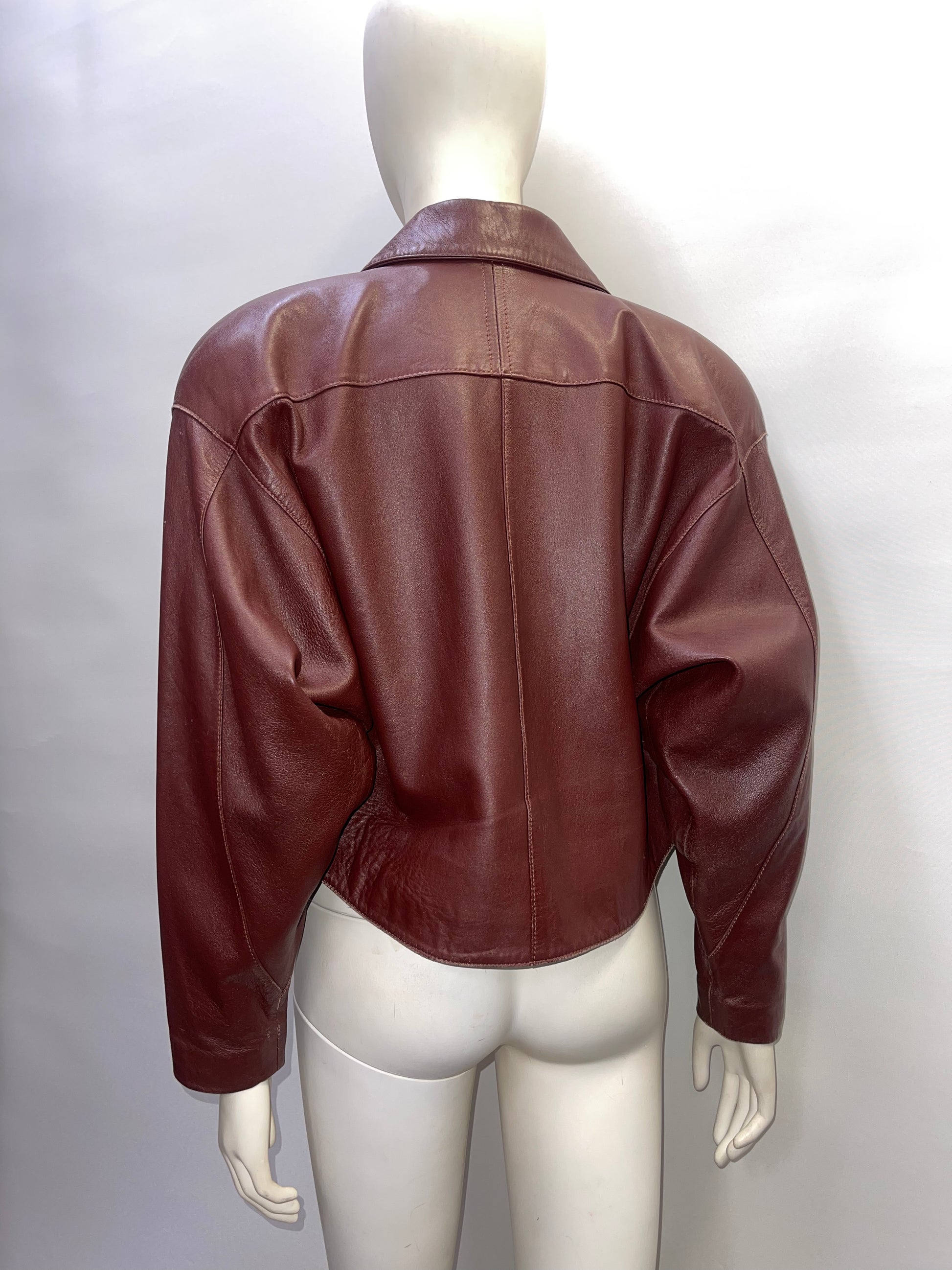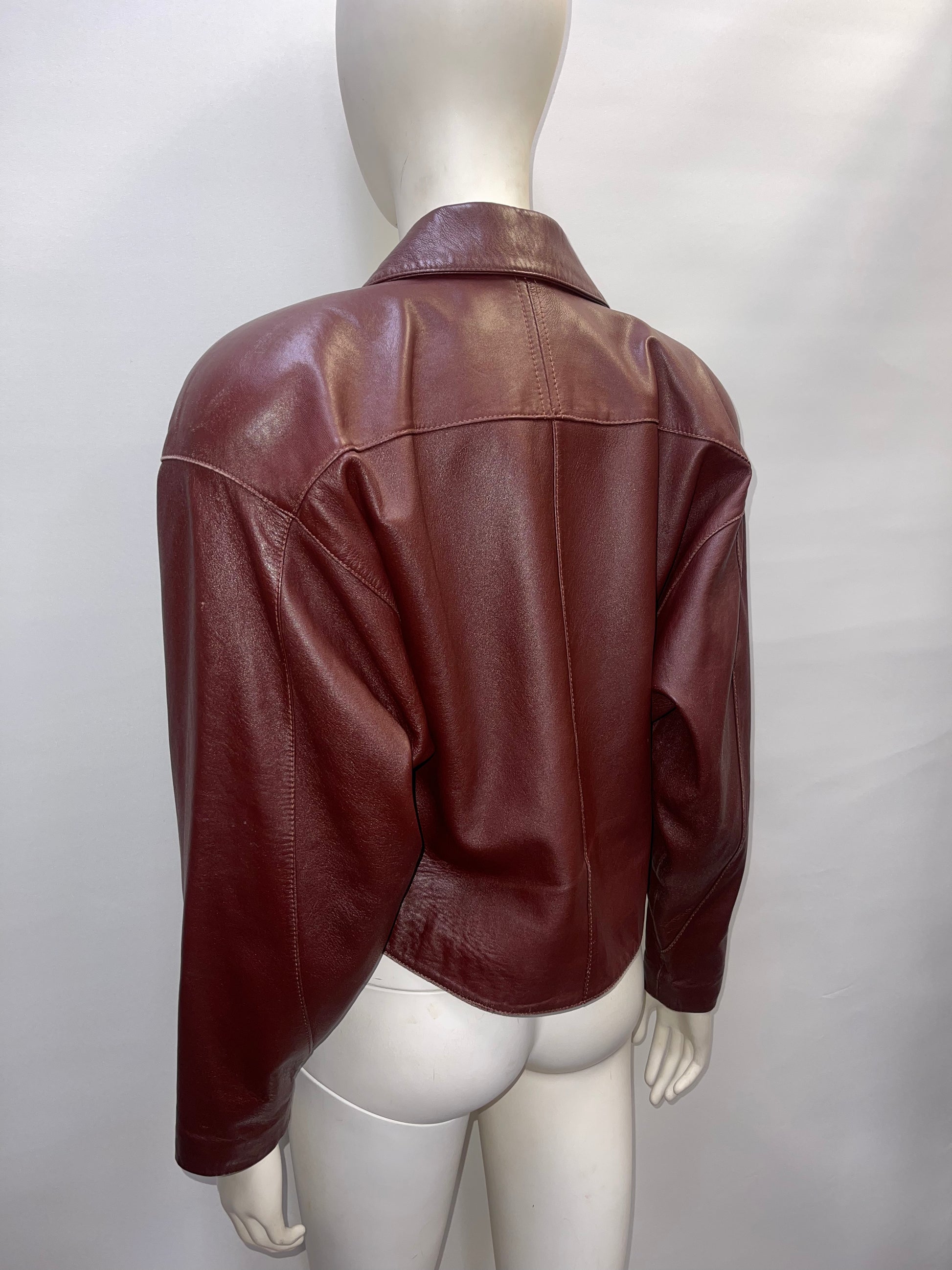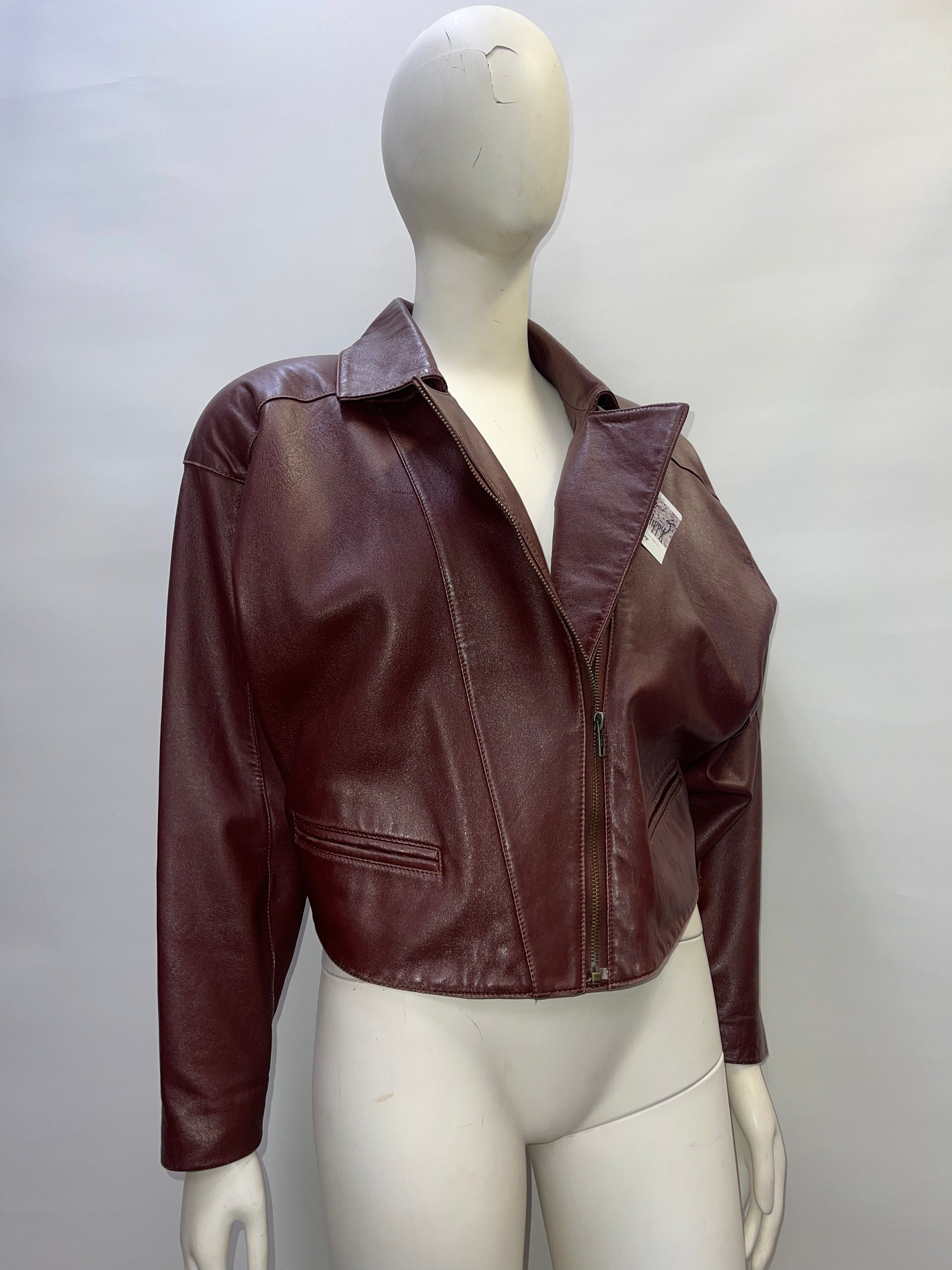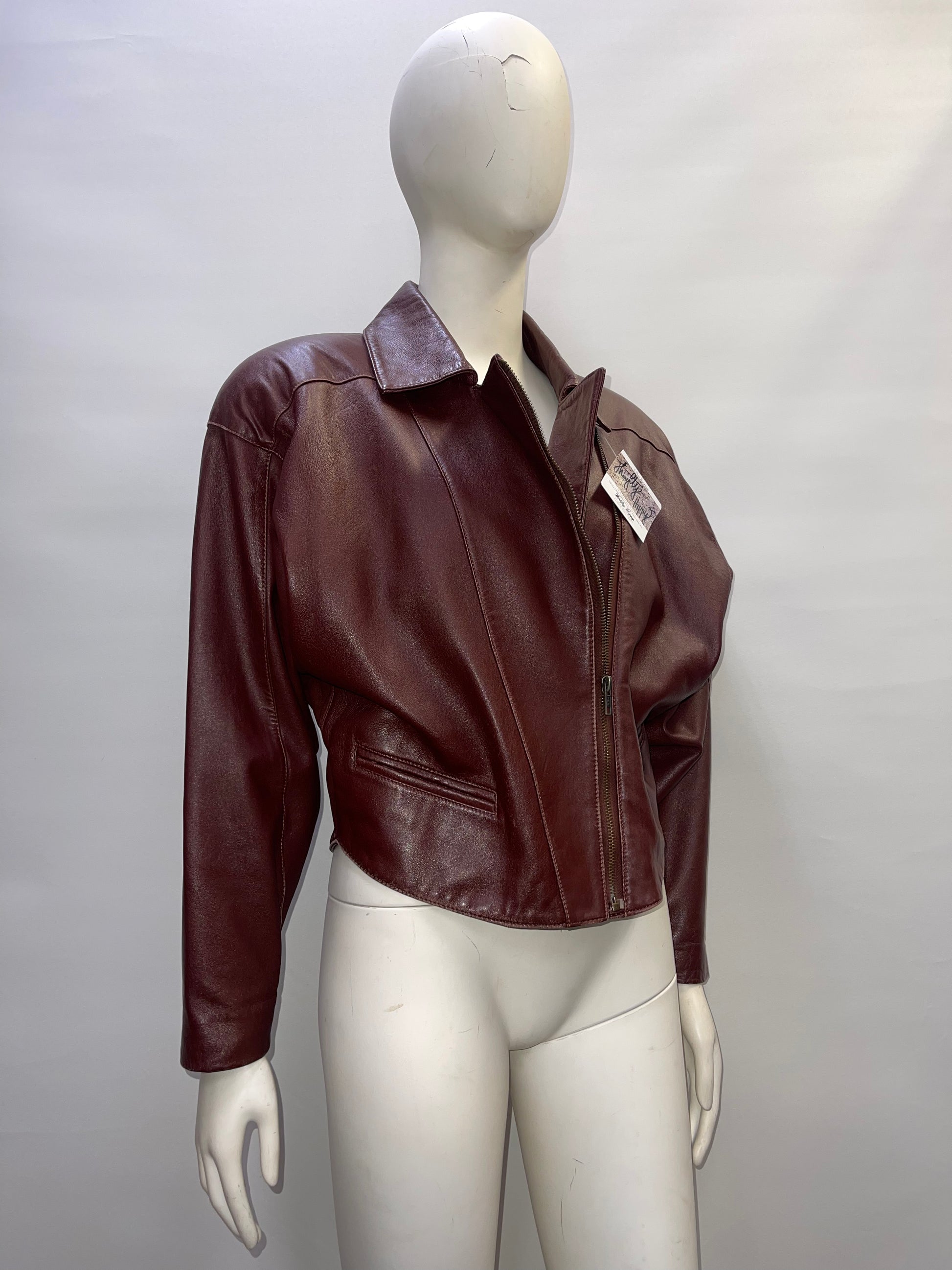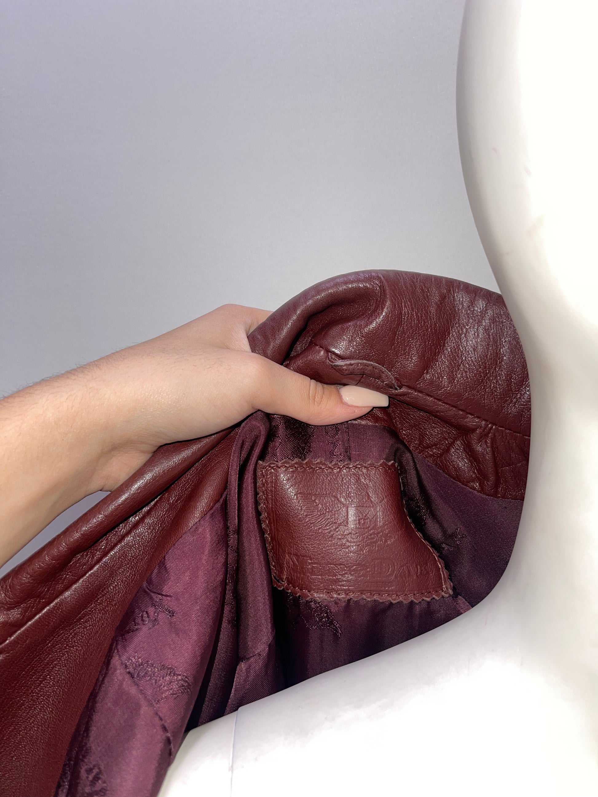 Vintage YingDak burgundy leather jacket with the softest leather, cropped yet boxy fit and iconic logo lining