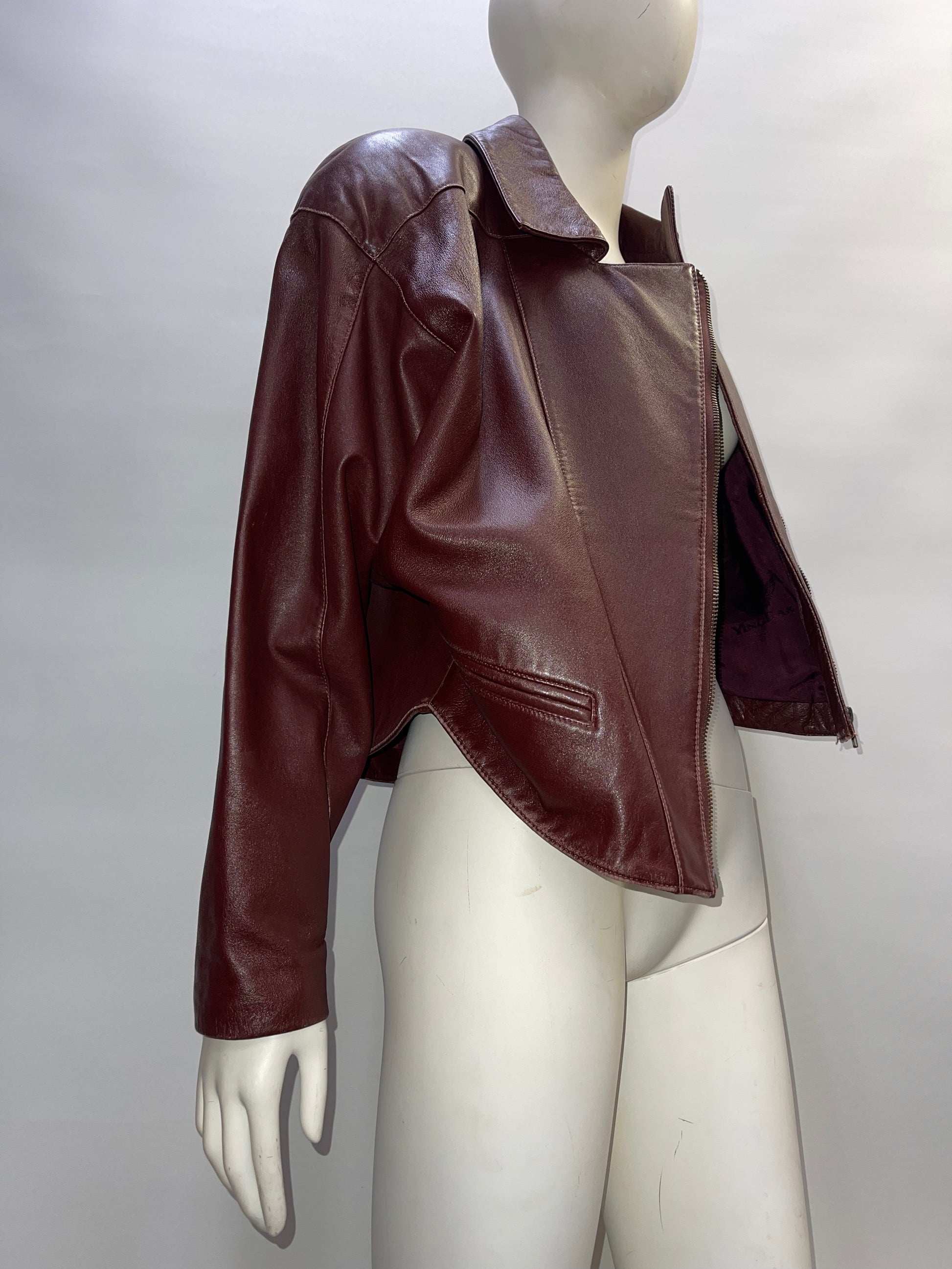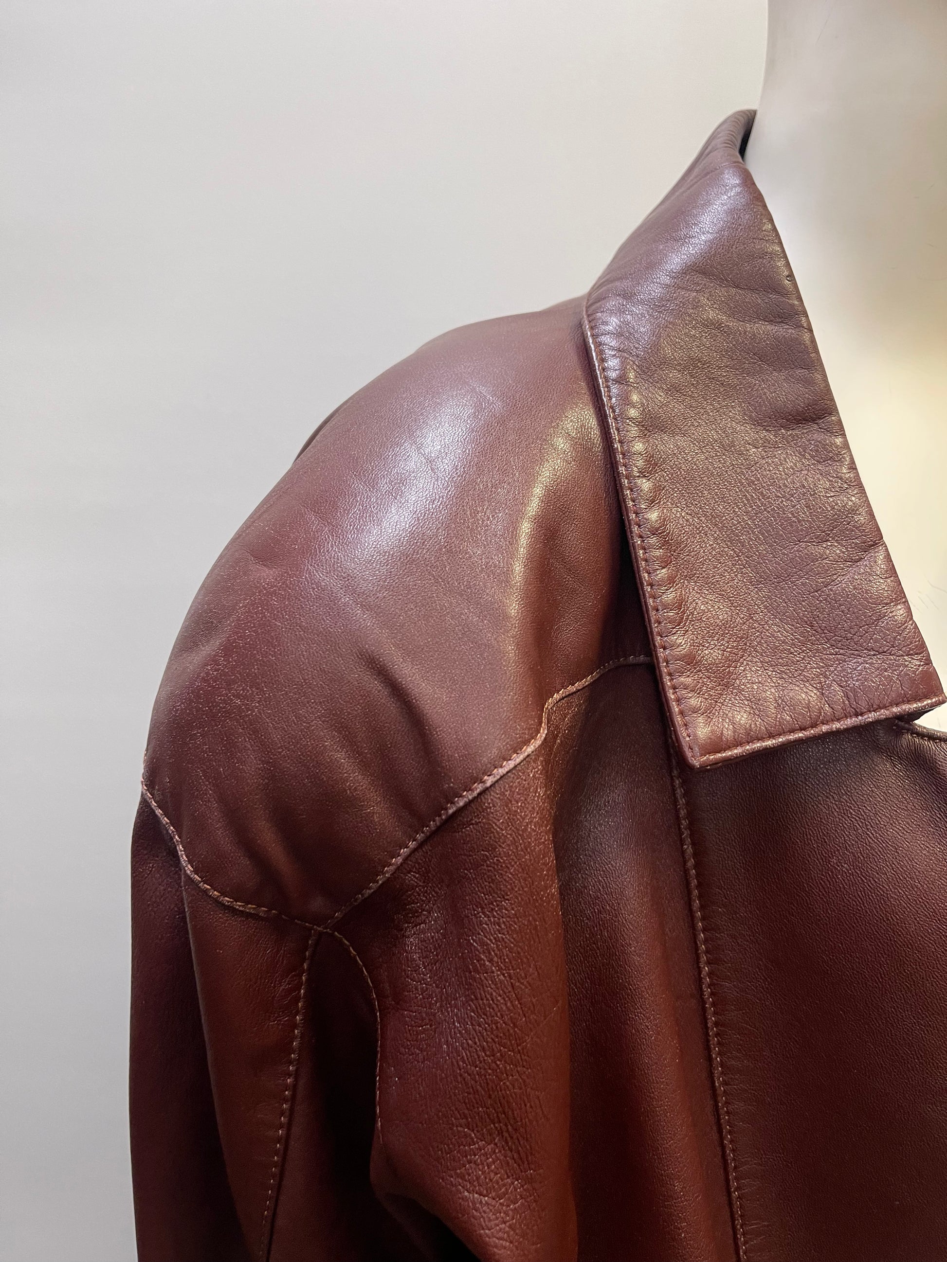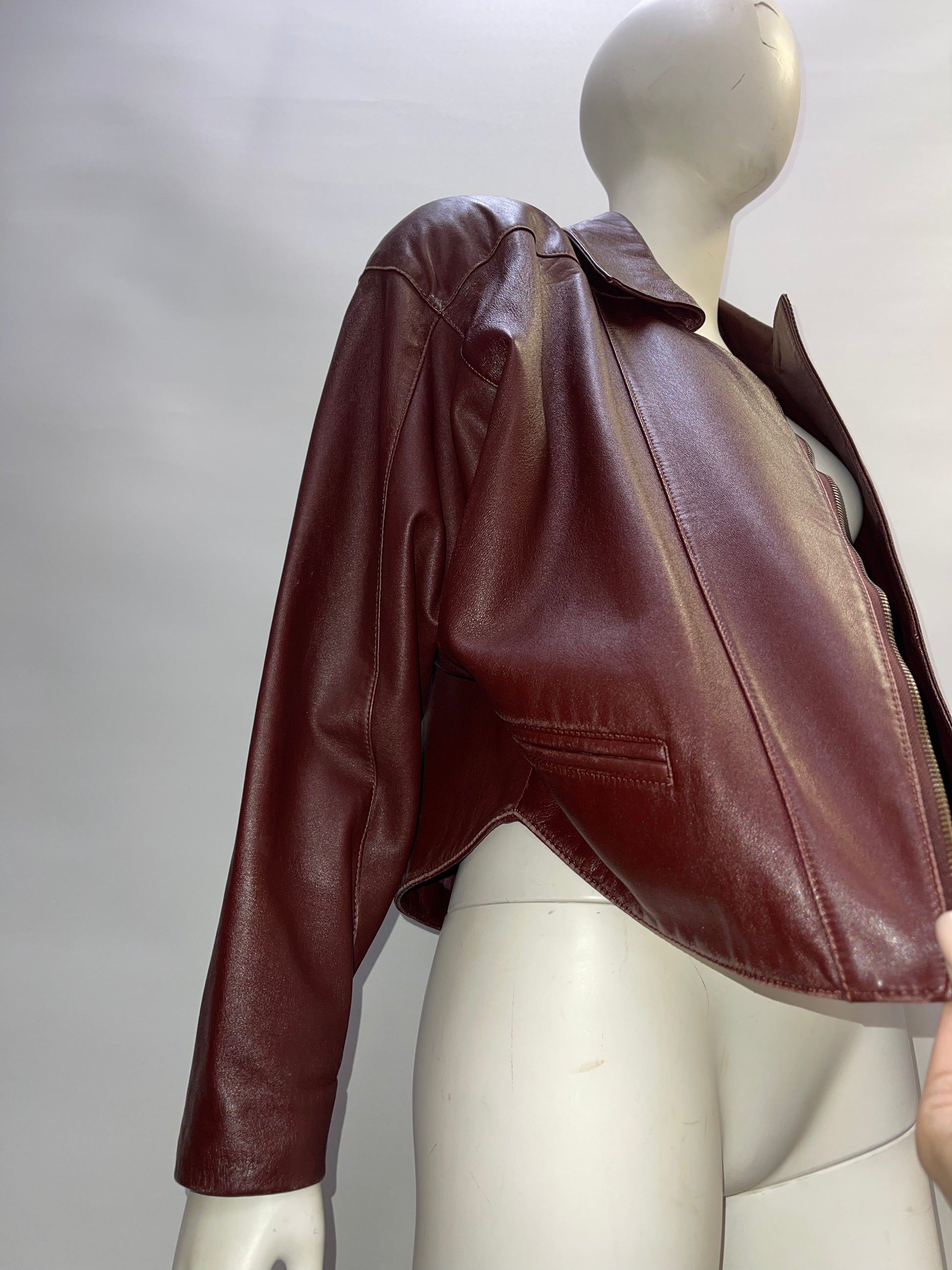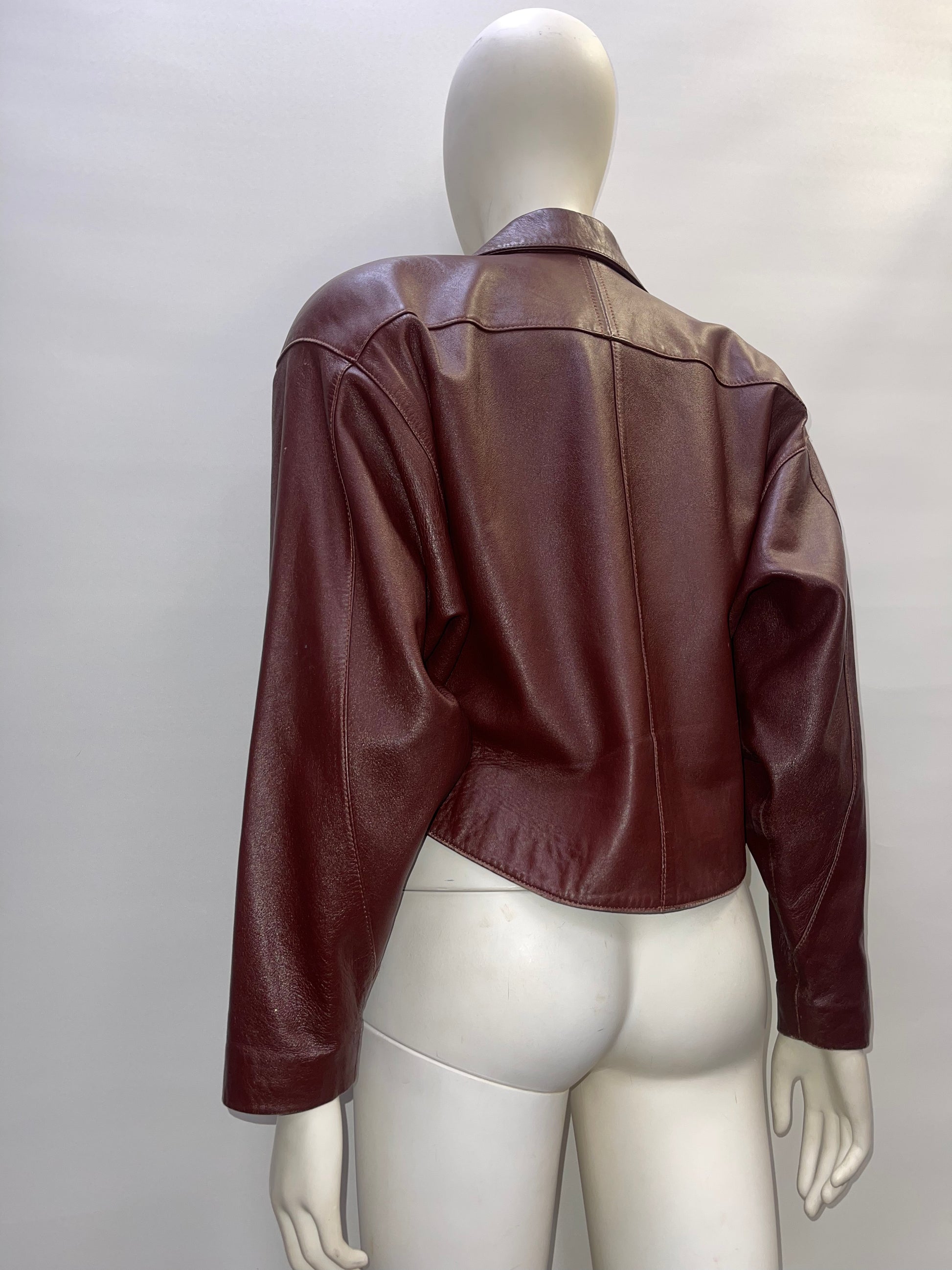 Vintage YingDak burgundy leather jacket with the softest leather, cropped yet boxy fit and iconic logo lining