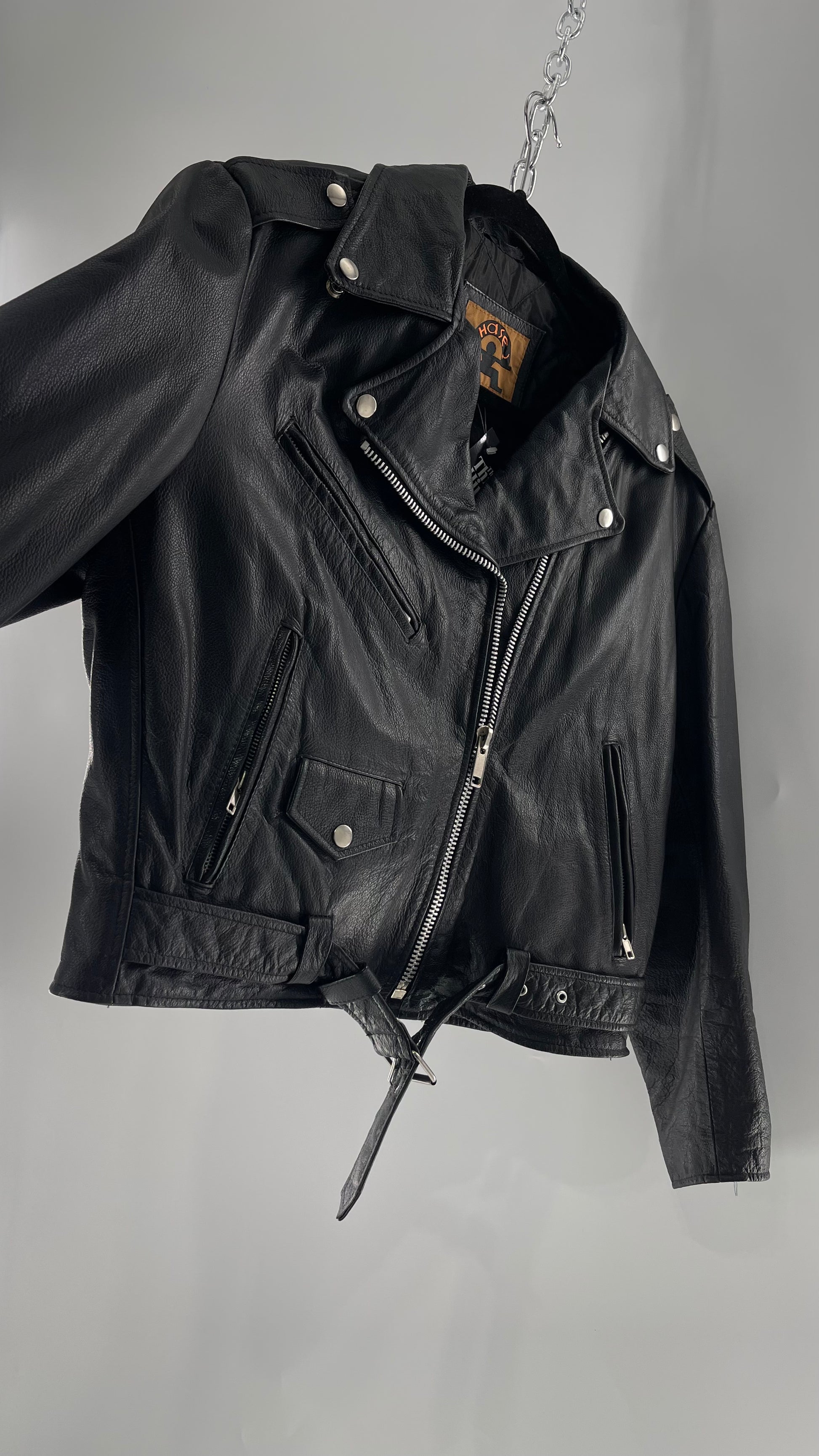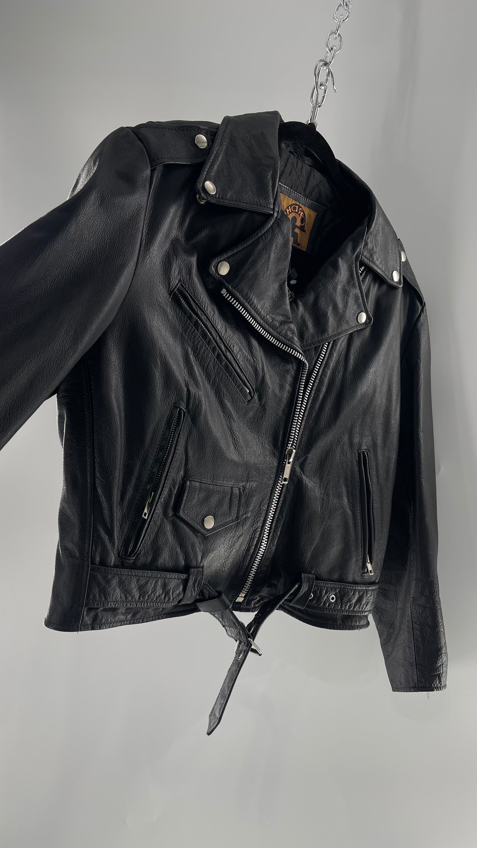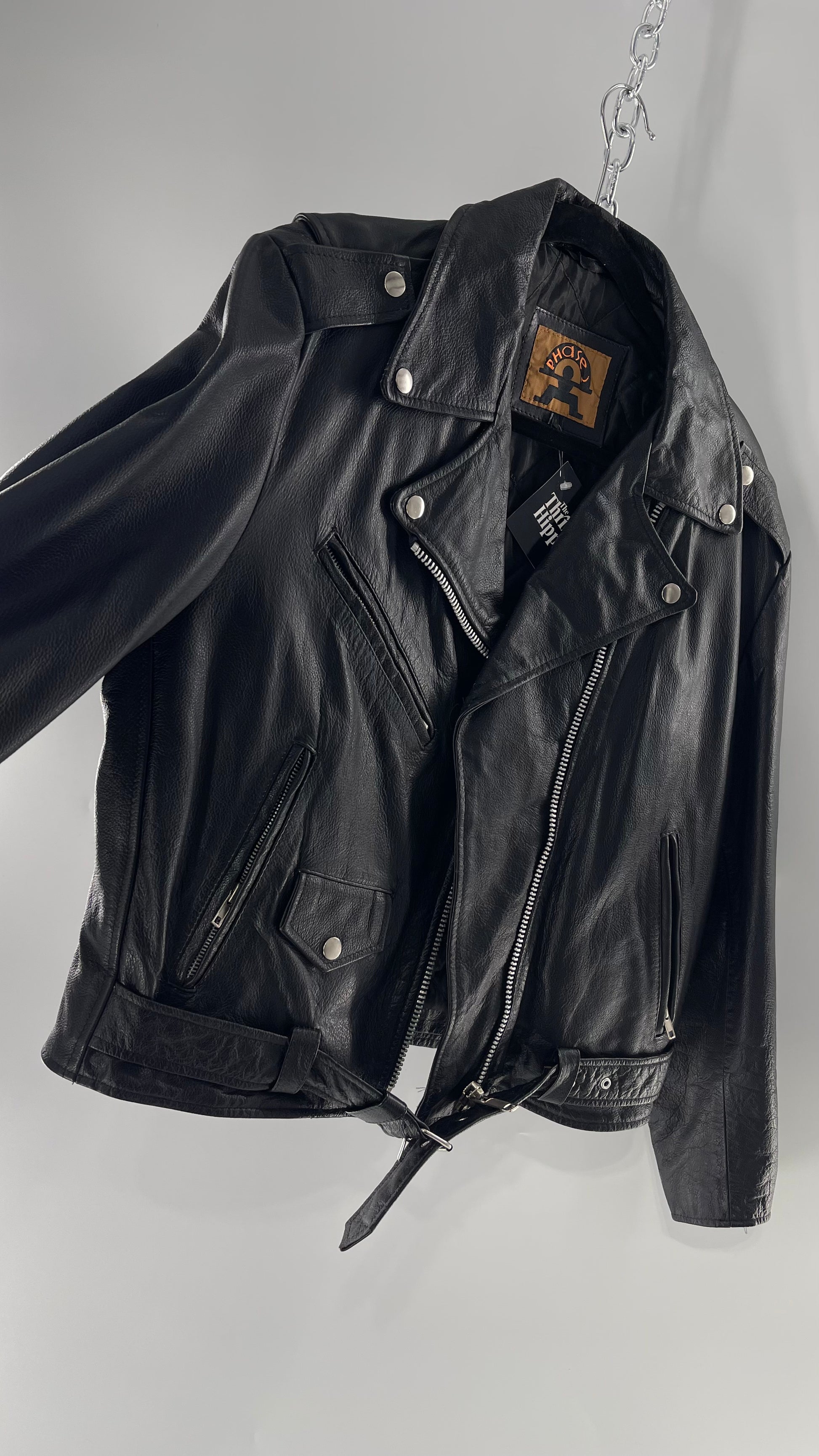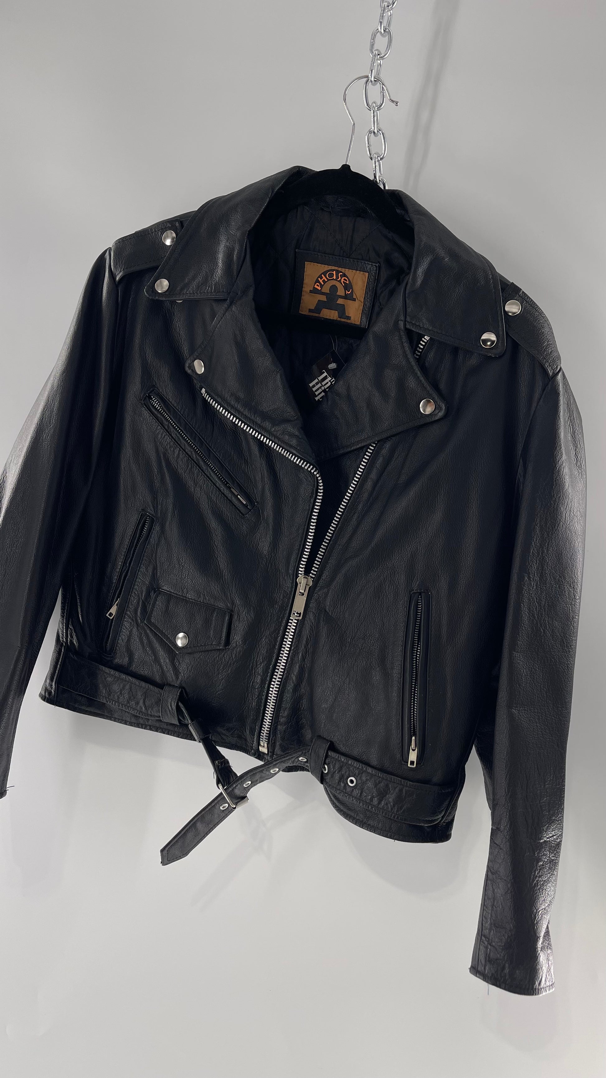 Vintage PHASE II Leather Motorcycle Jacket (Large)