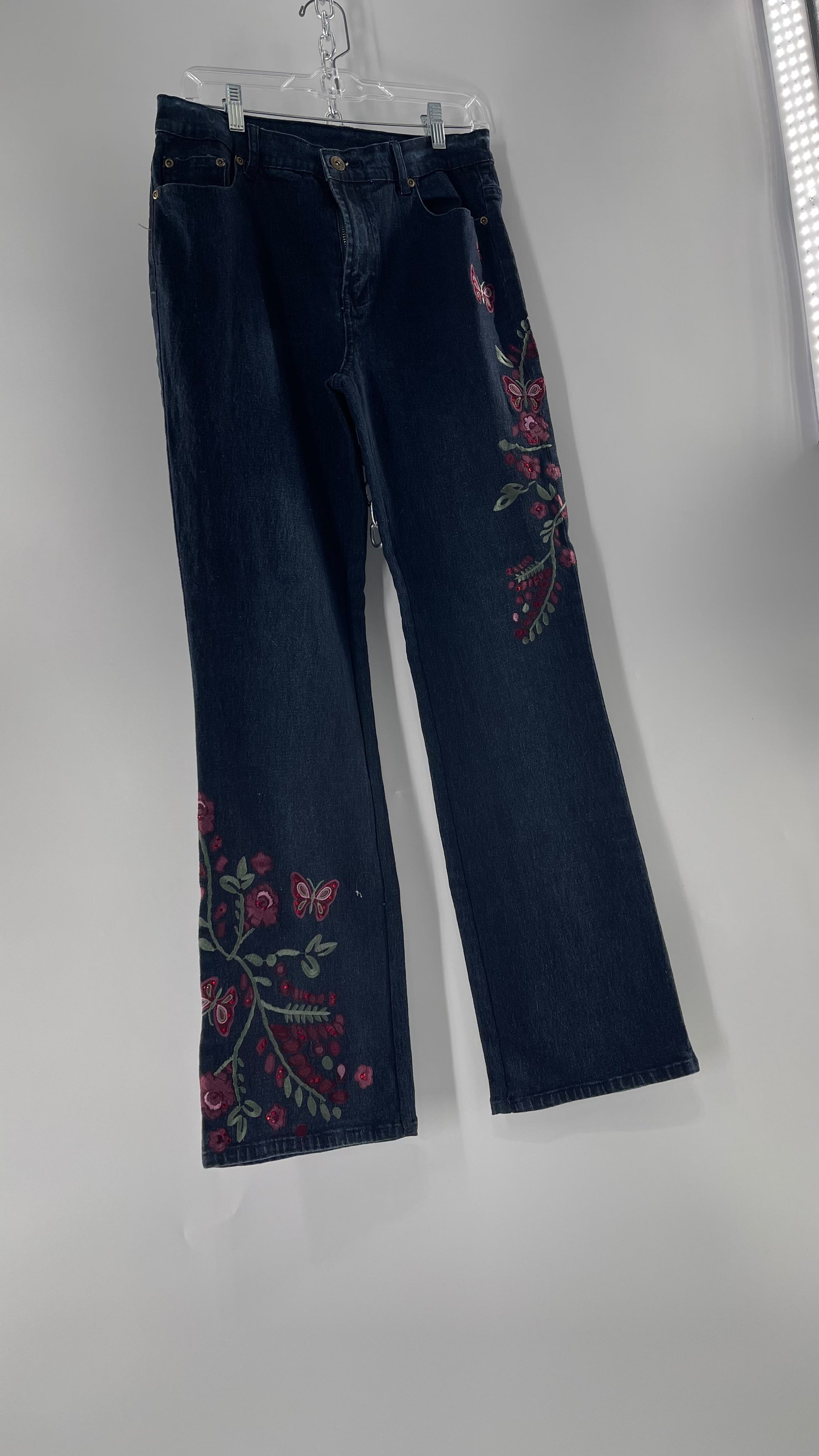 Diane Gilman Dark Wash Embroidered Embellished Butterfly Kickflare Jeans (8)