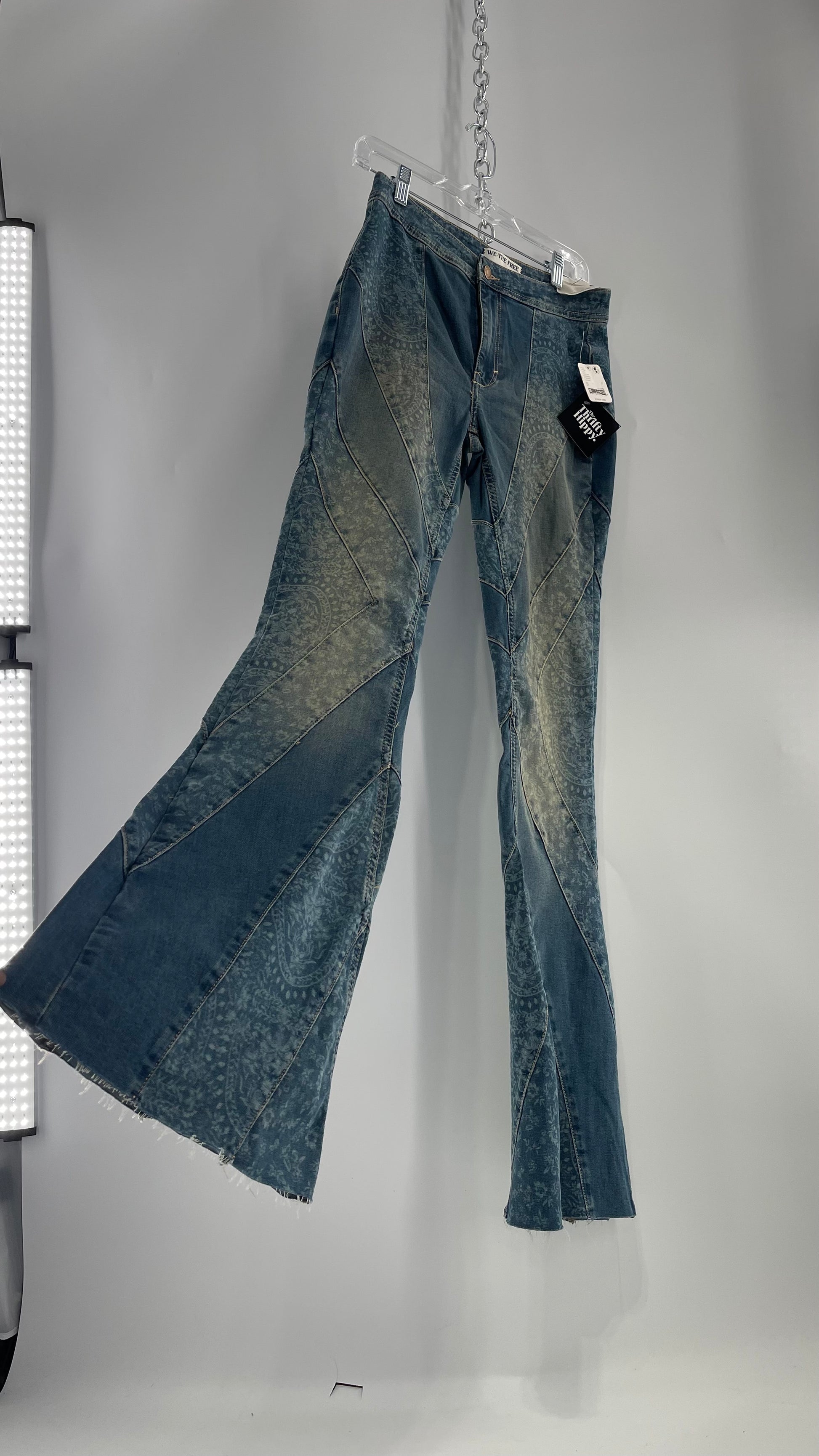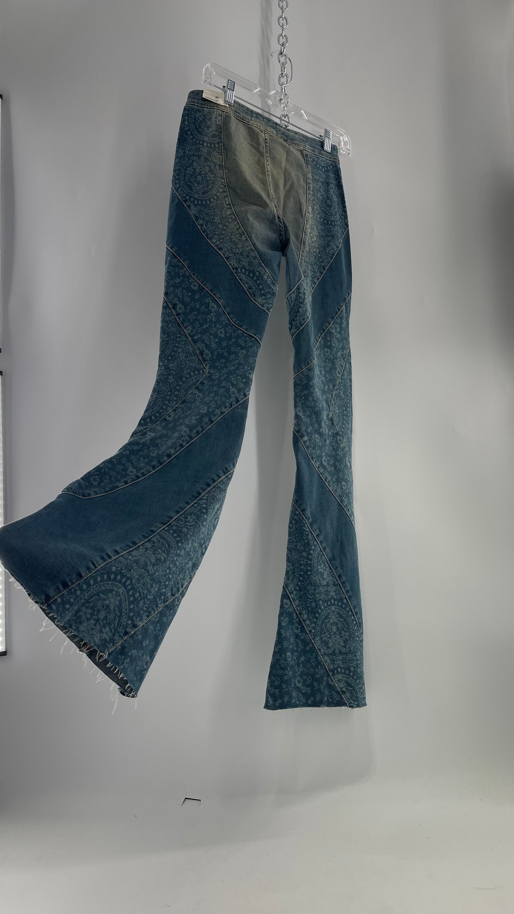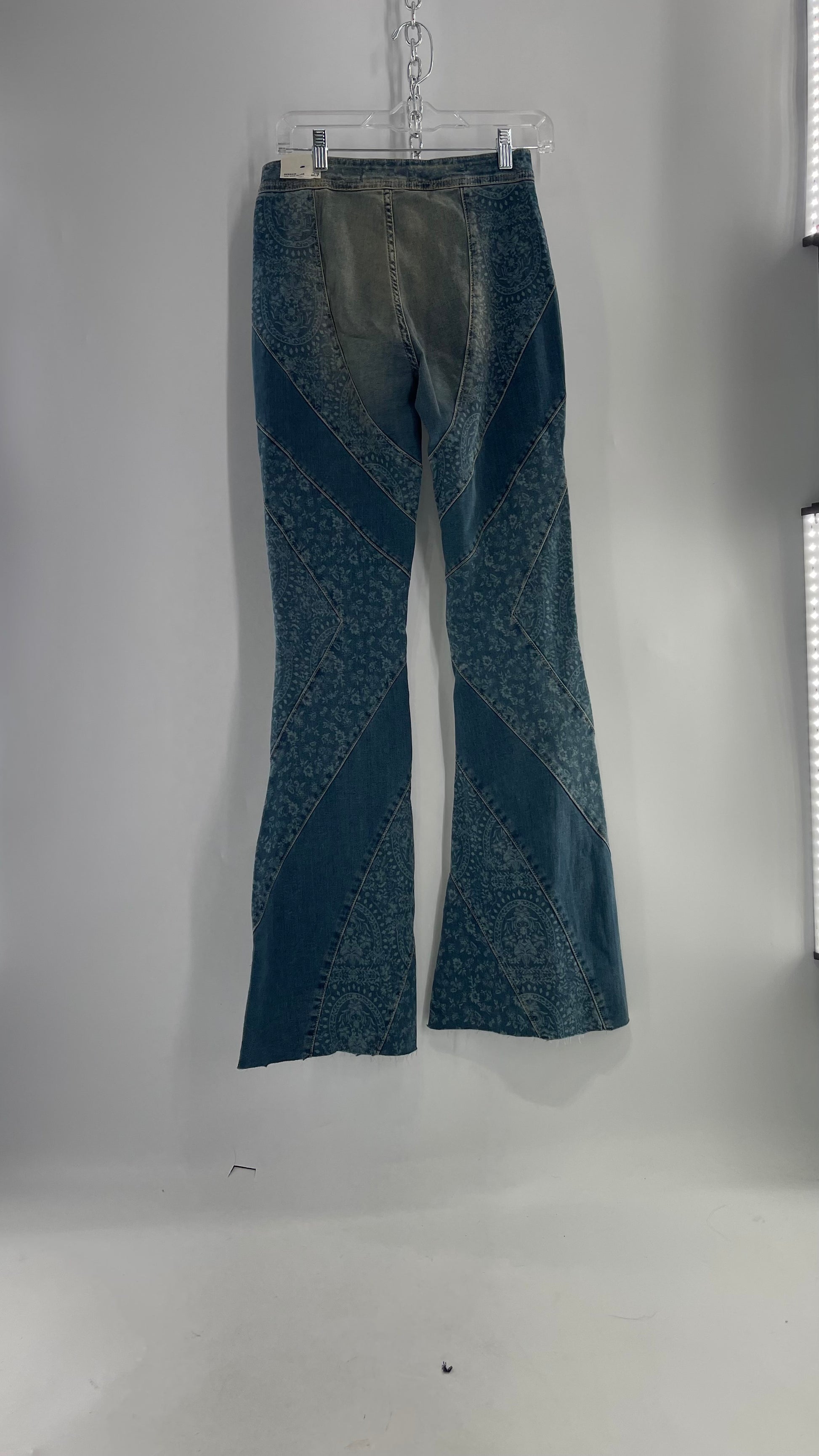 Free People Bell Bottom Kick Flare Paneled Patterned Jeans with Tags Attached (27)