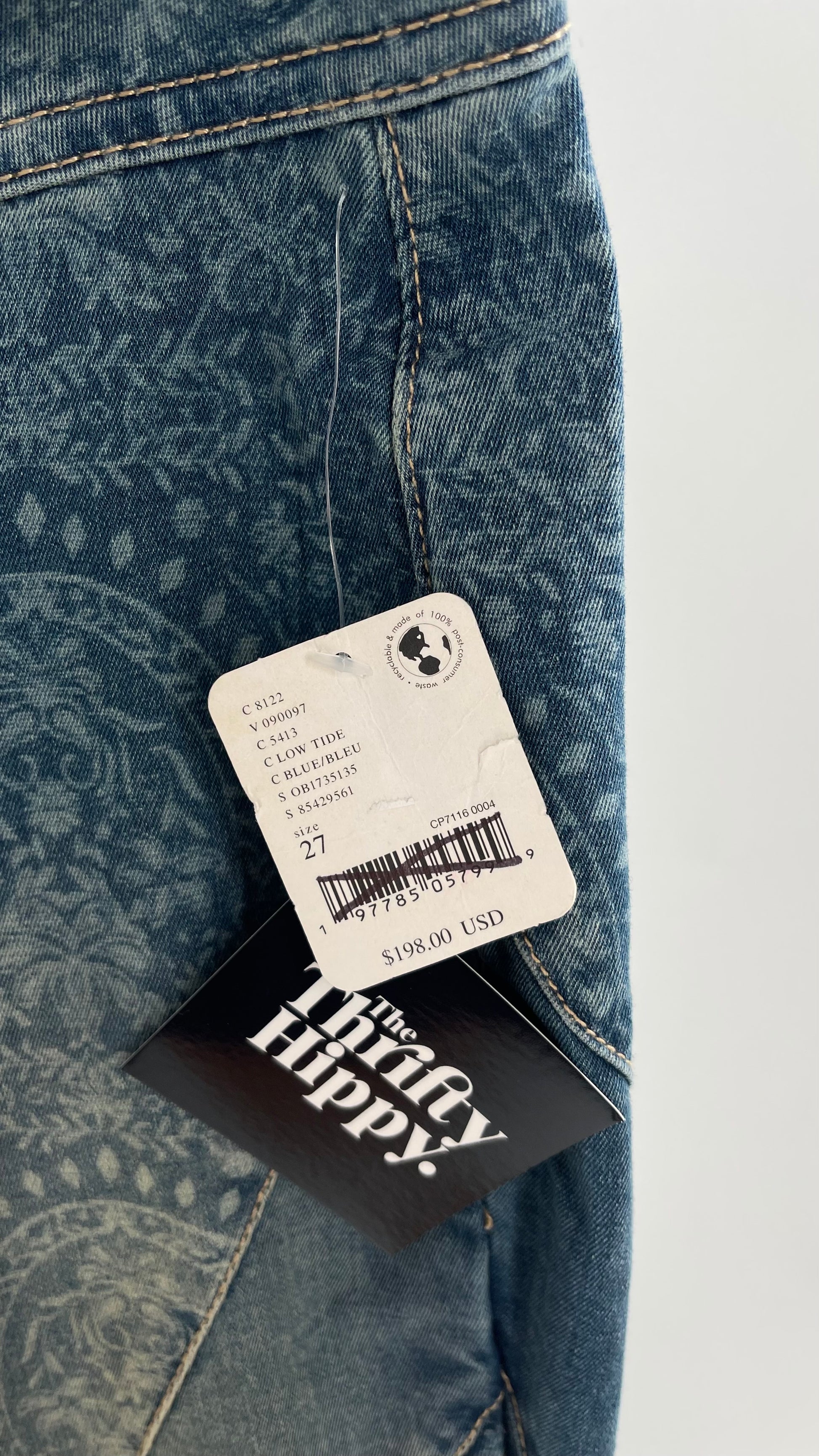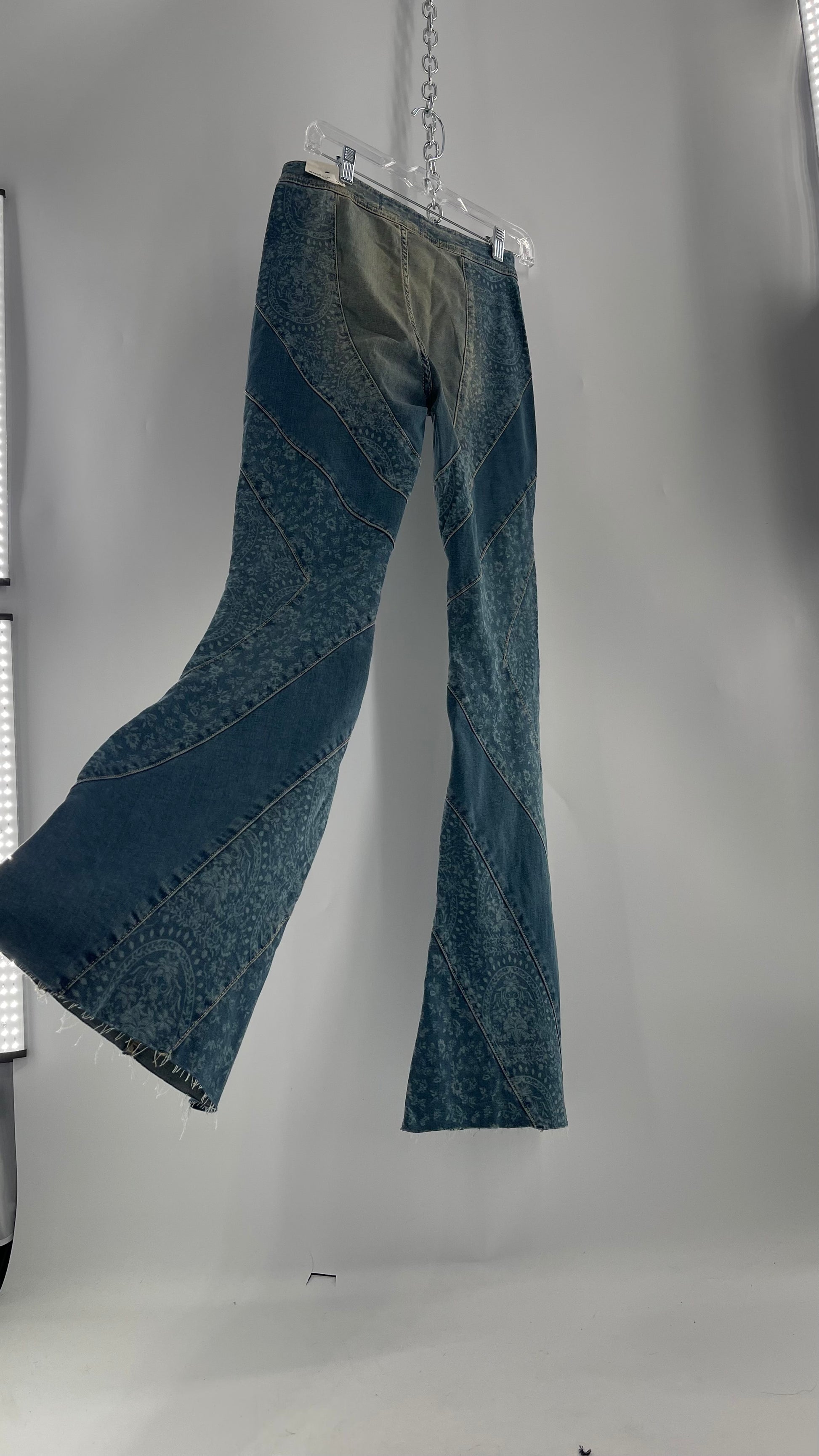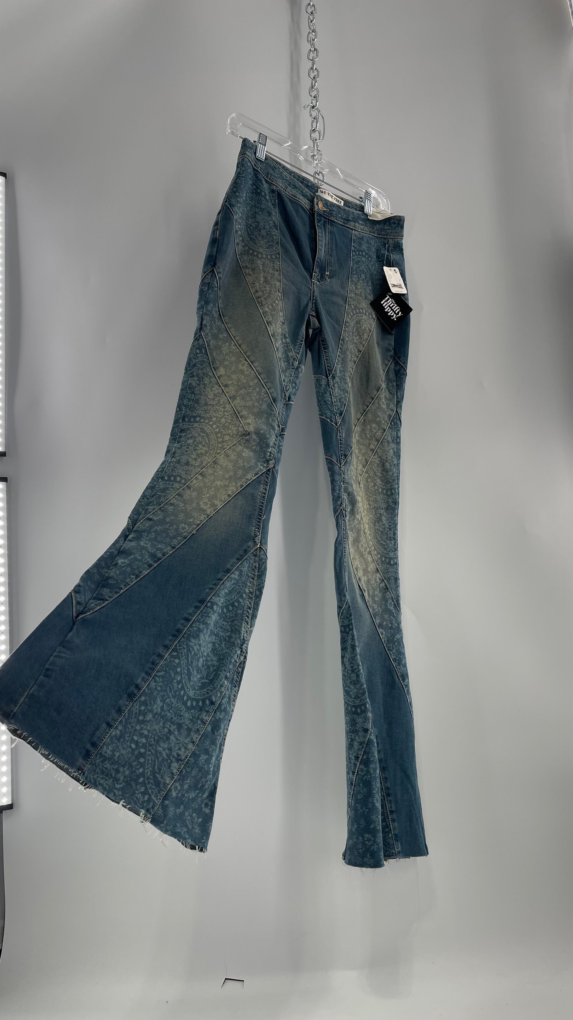 Free People Bell Bottom Kick Flare Paneled Patterned Jeans with Tags Attached (27)