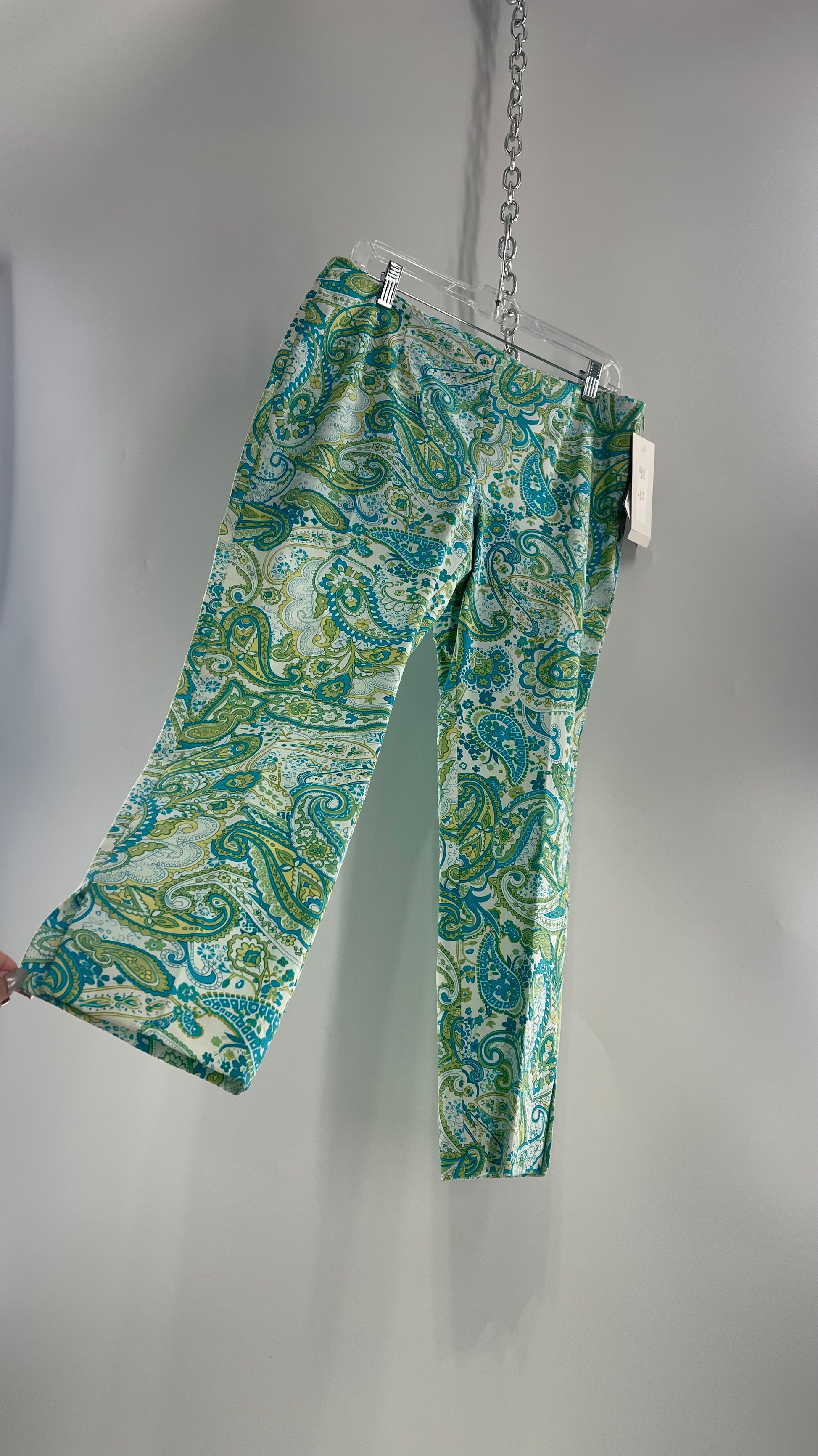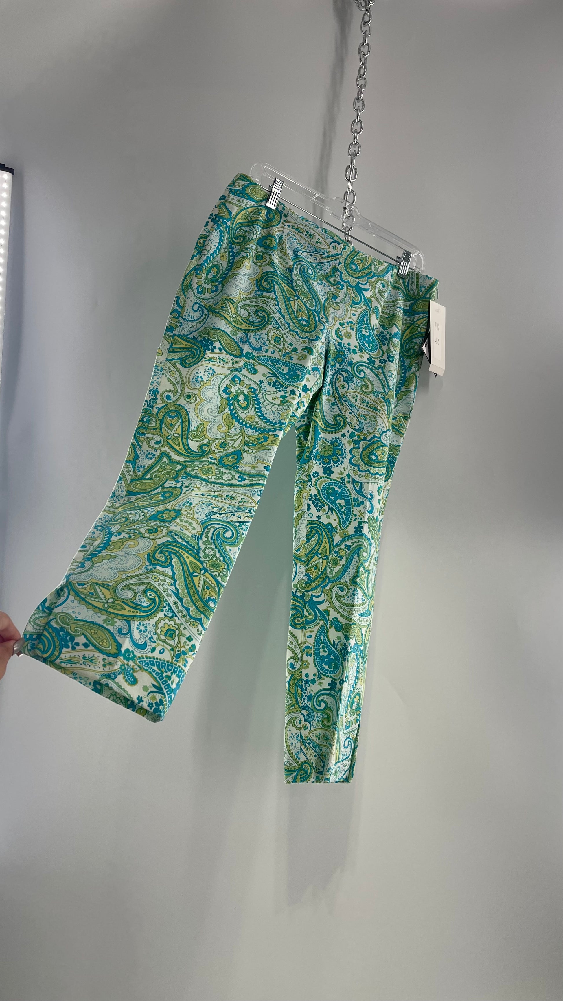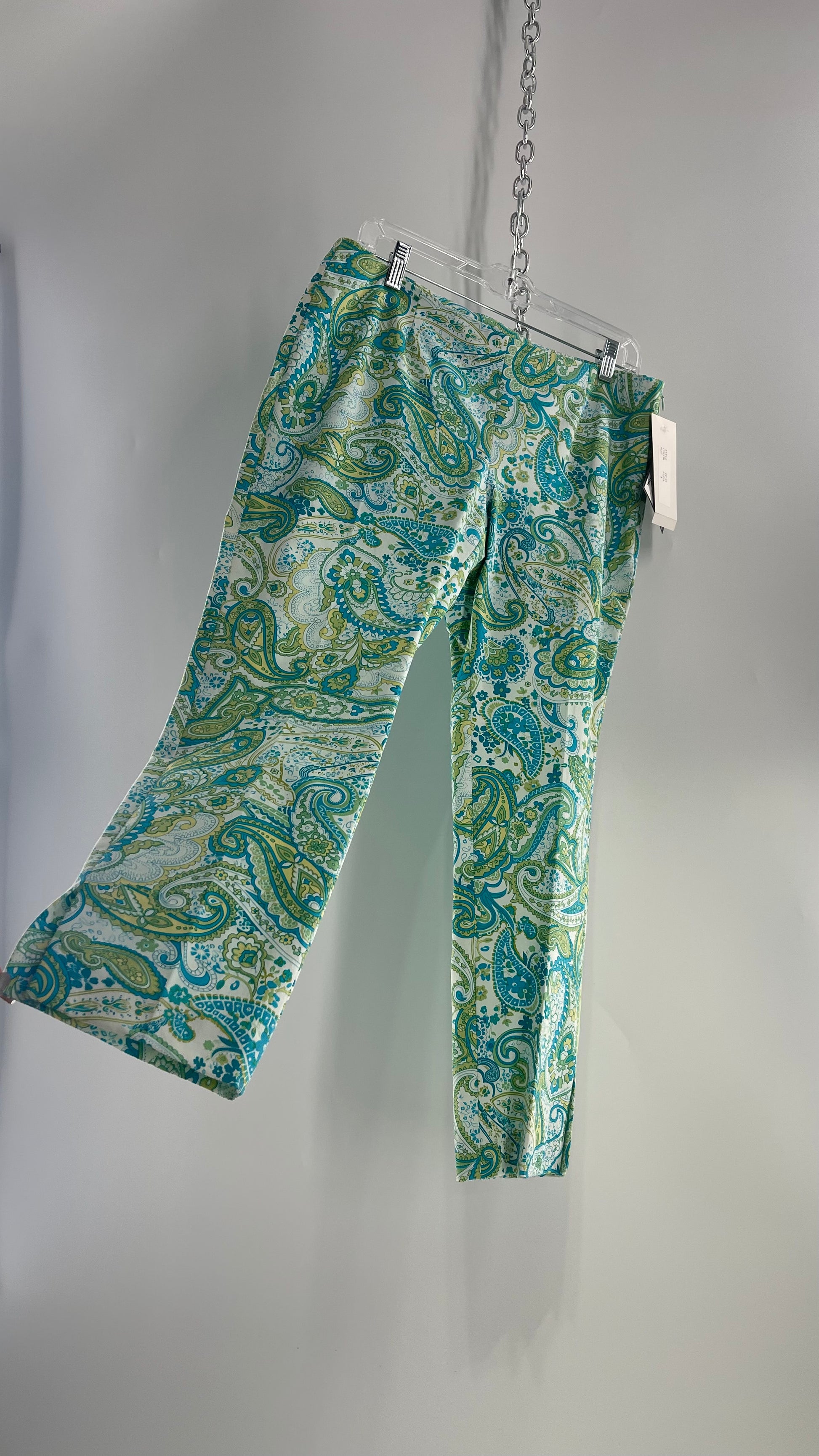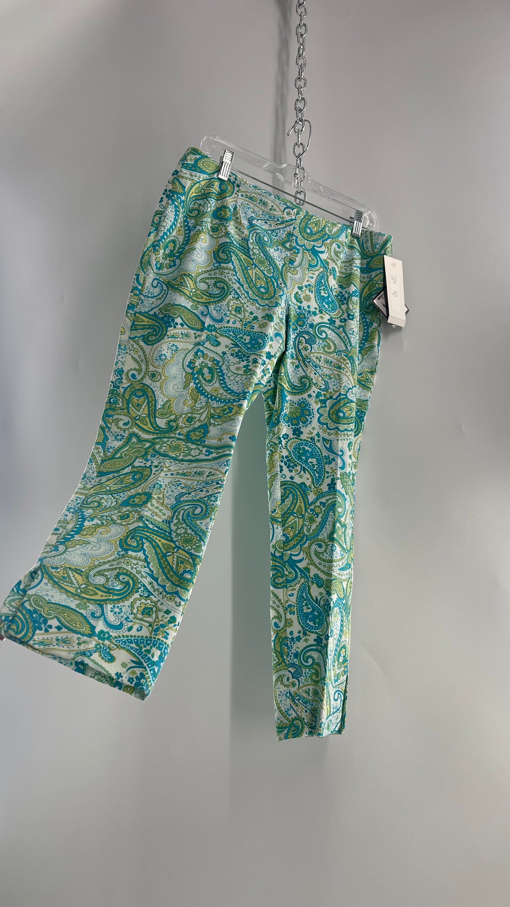 VINTAGE WOMYN Blue Green Paisley Patterned 1990s Capris with Tags Attached (12)
