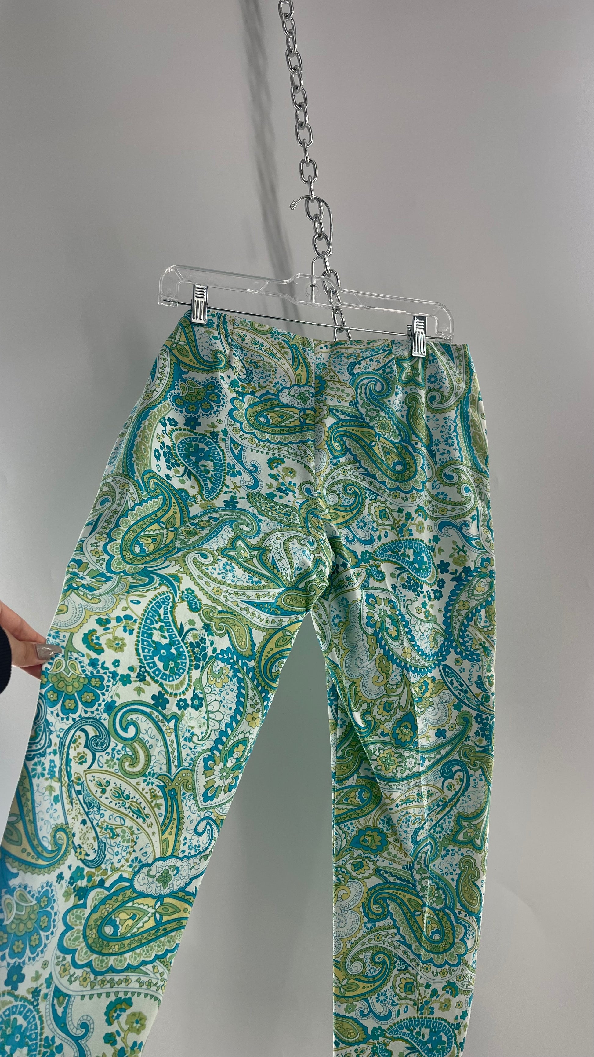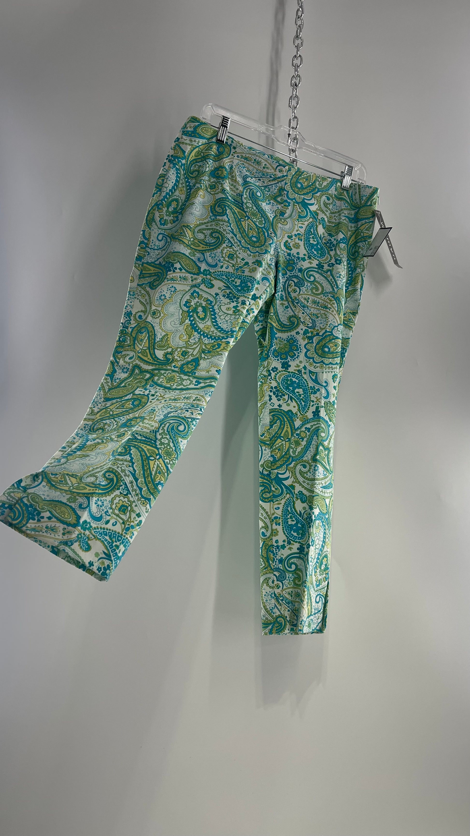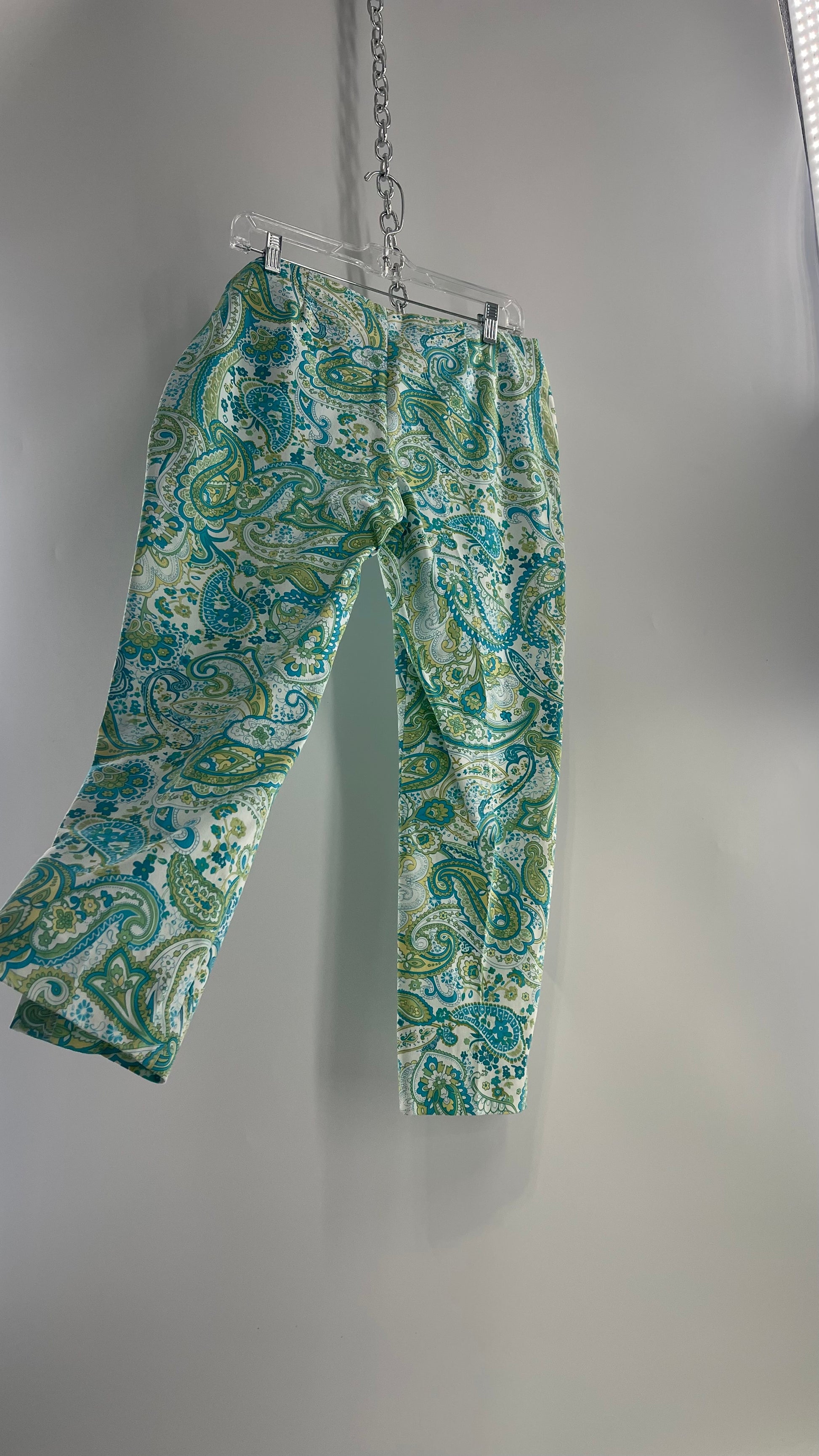 VINTAGE WOMYN Blue Green Paisley Patterned 1990s Capris with Tags Attached (12)