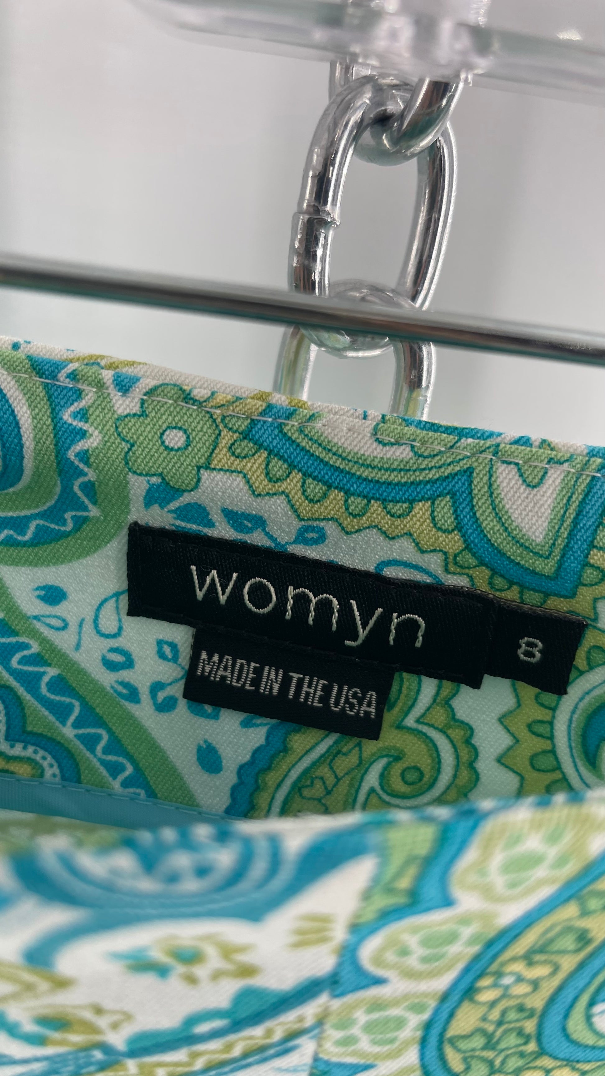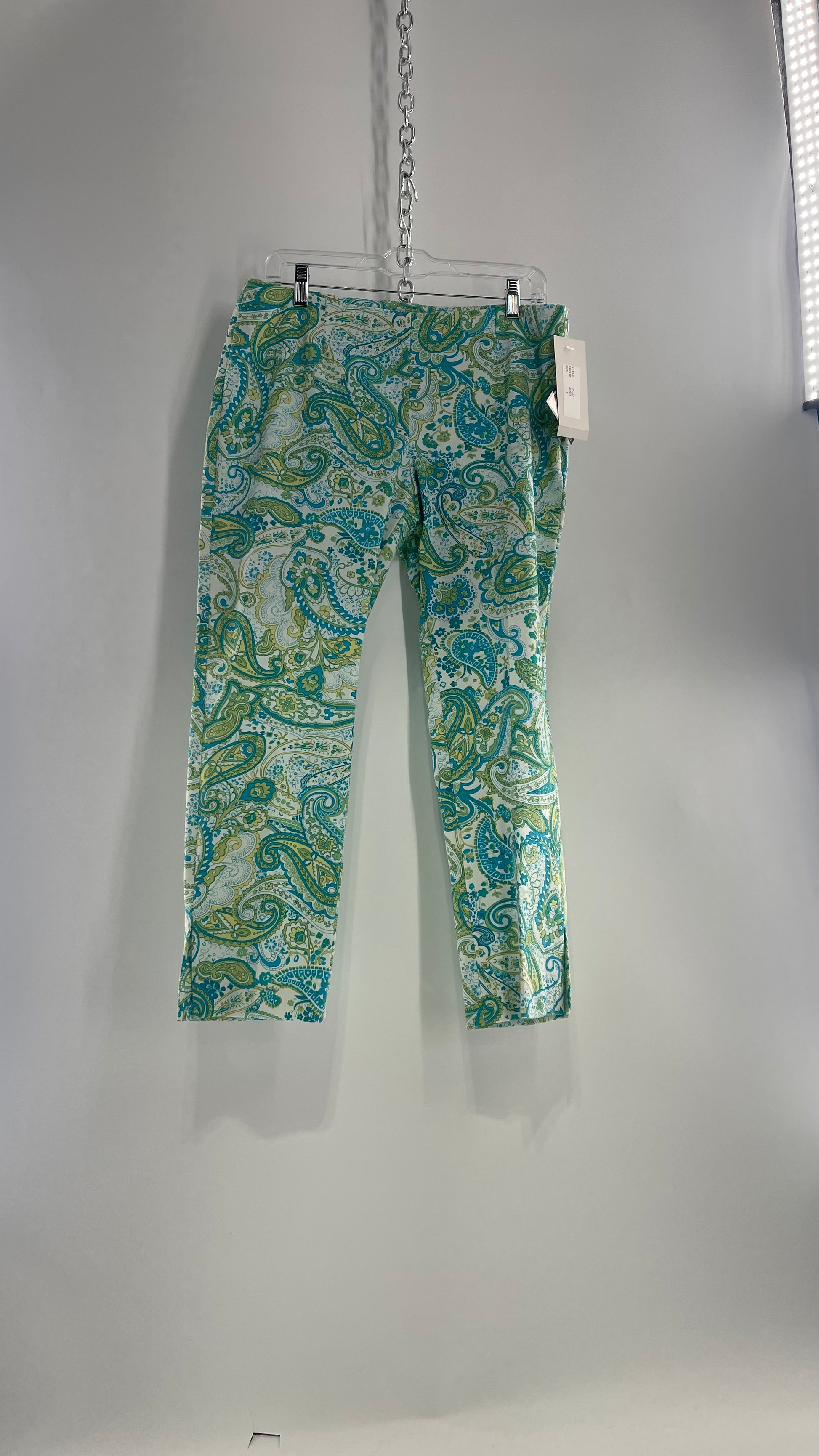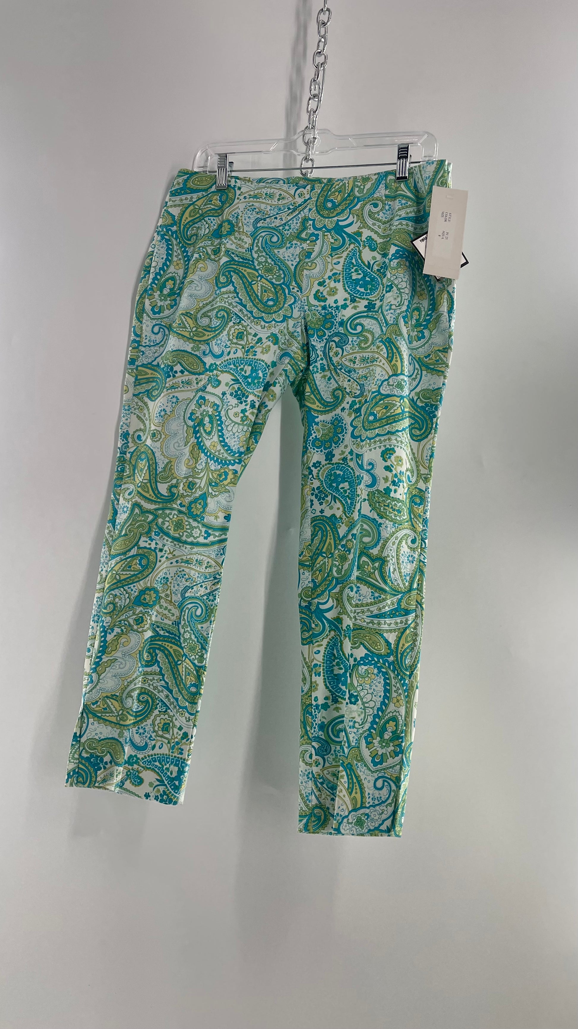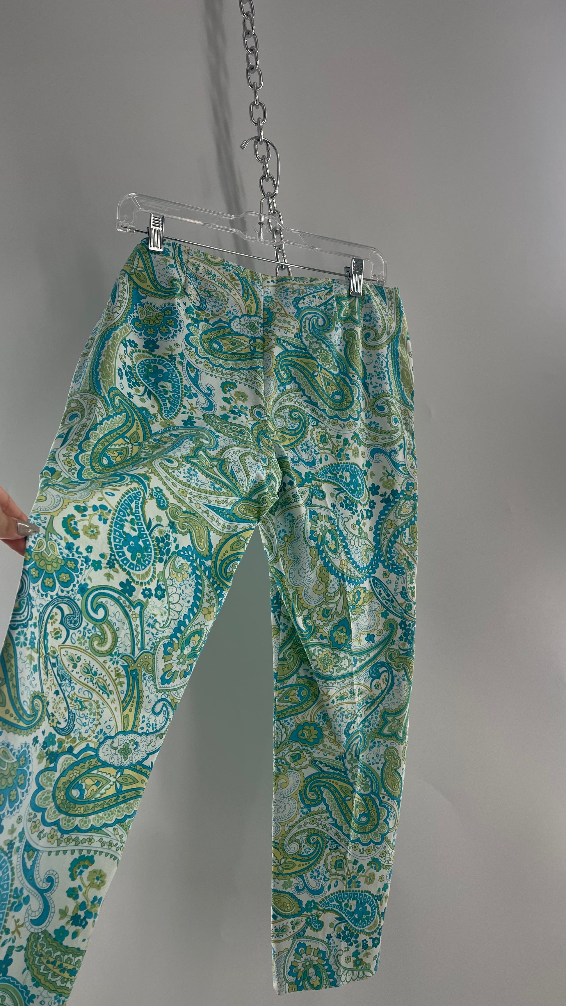VINTAGE WOMYN Blue Green Paisley Patterned 1990s Capris with Tags Attached (12)