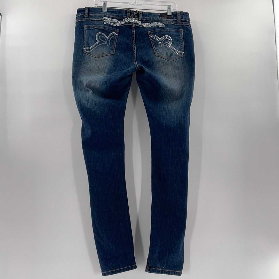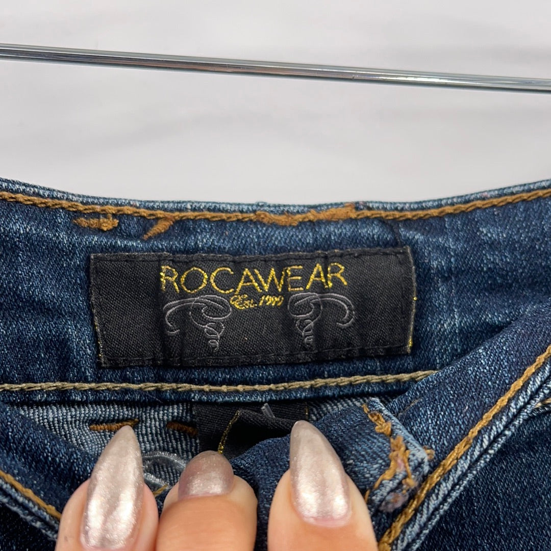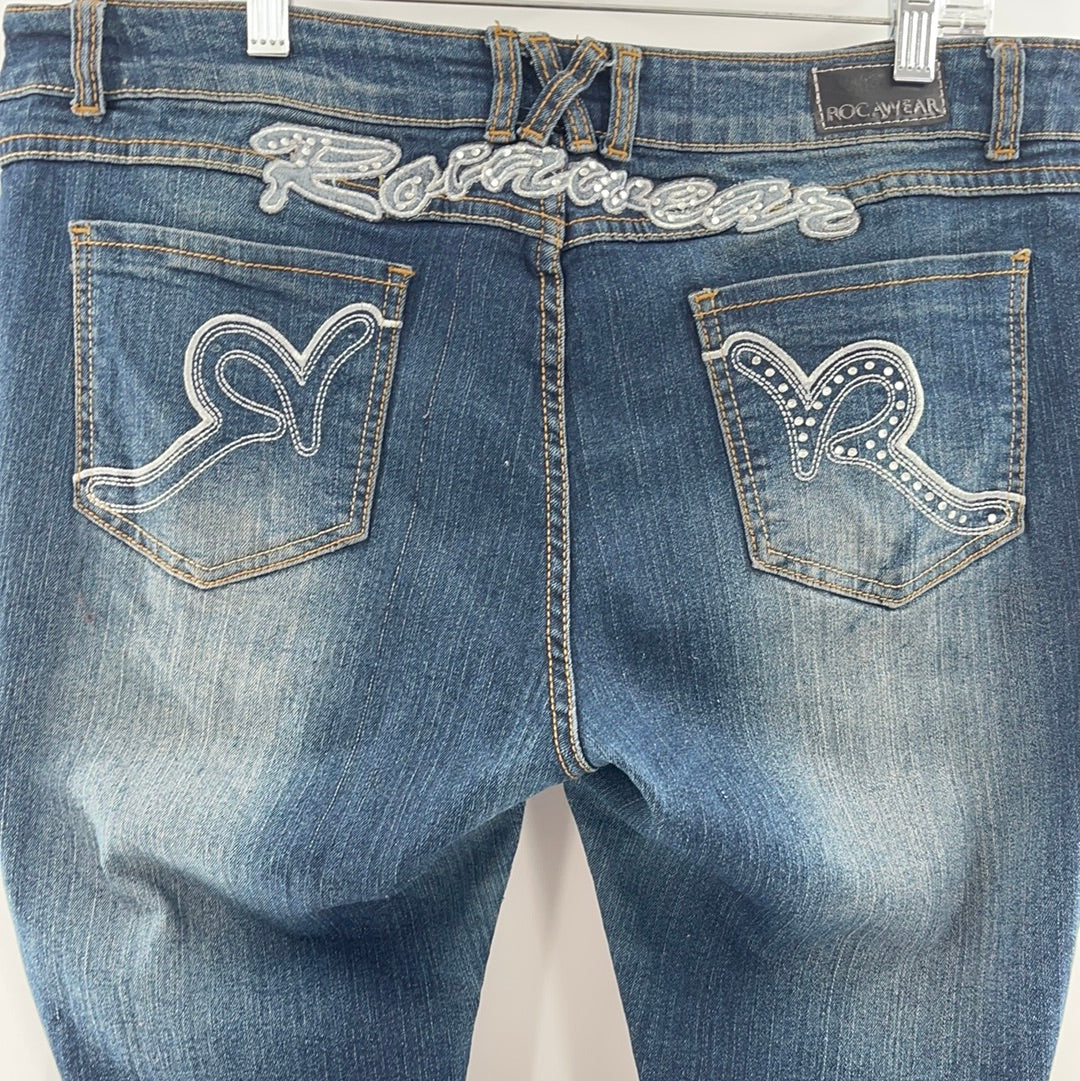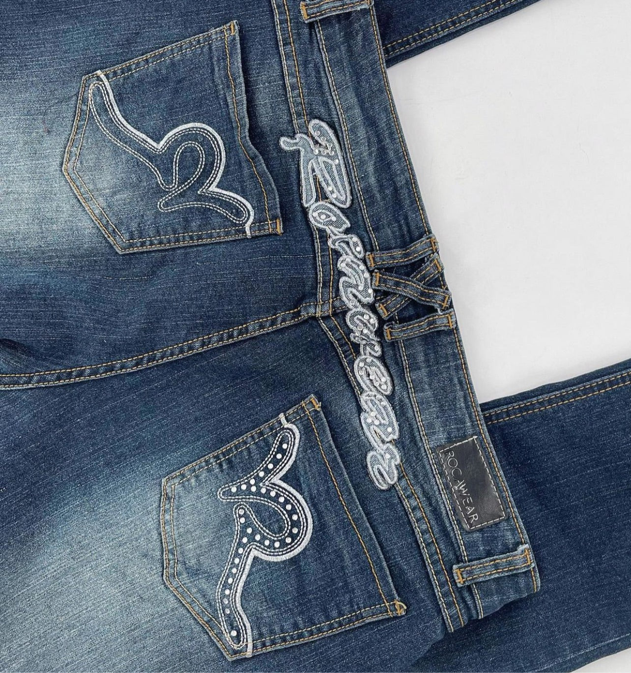 🤍💎A relic of the 2000s. These Rocawears are everything! The blinged out “rocawear” logo right below the waistline!!! The iconic R’s on both pockets!! With a straight leg, and light wash, these babies are killer💎🤍