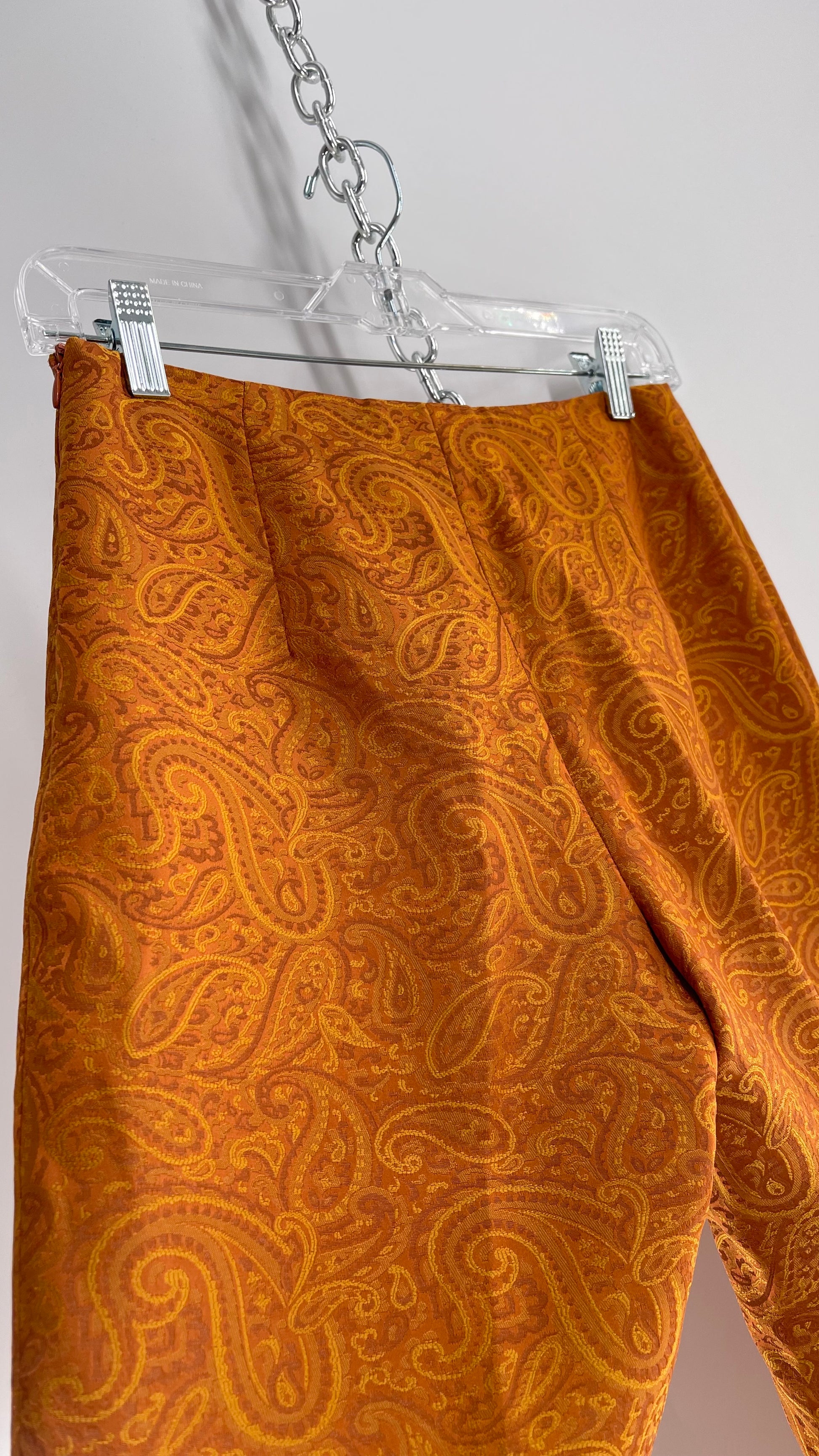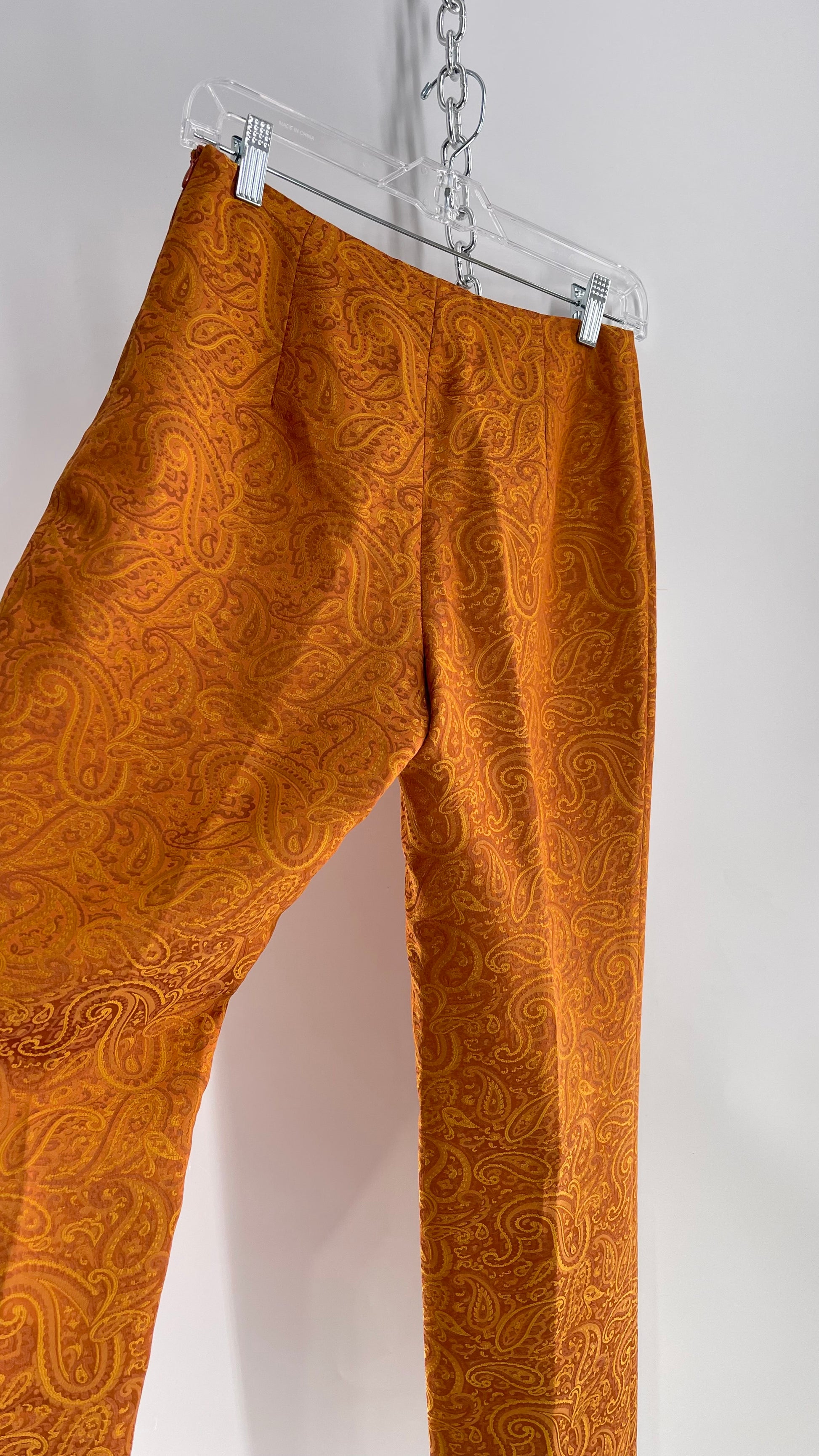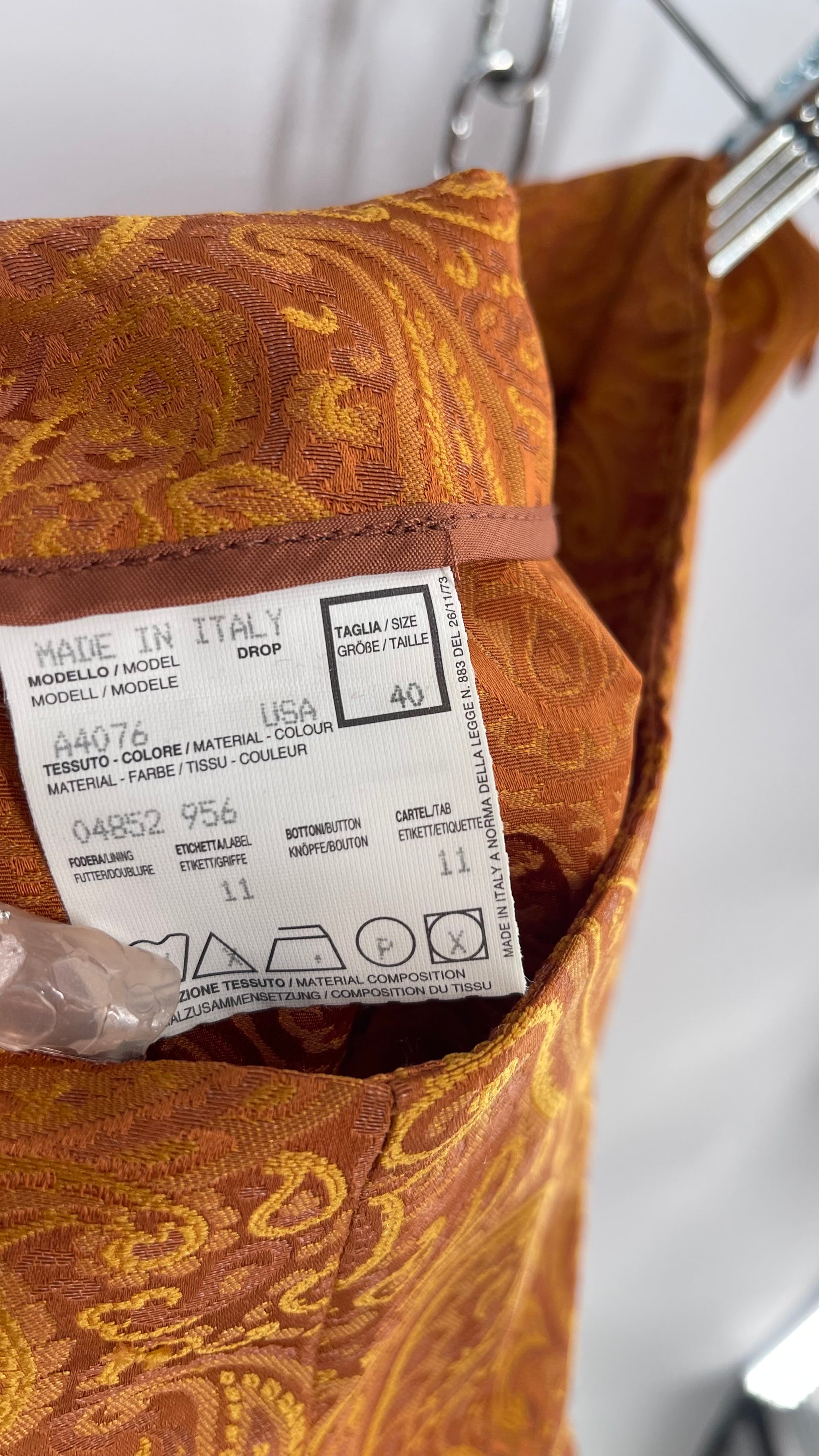 Peserico Italian Vintage Gold/Mustard Orange Paisley Patterned 56% Acetate Trouser (40)