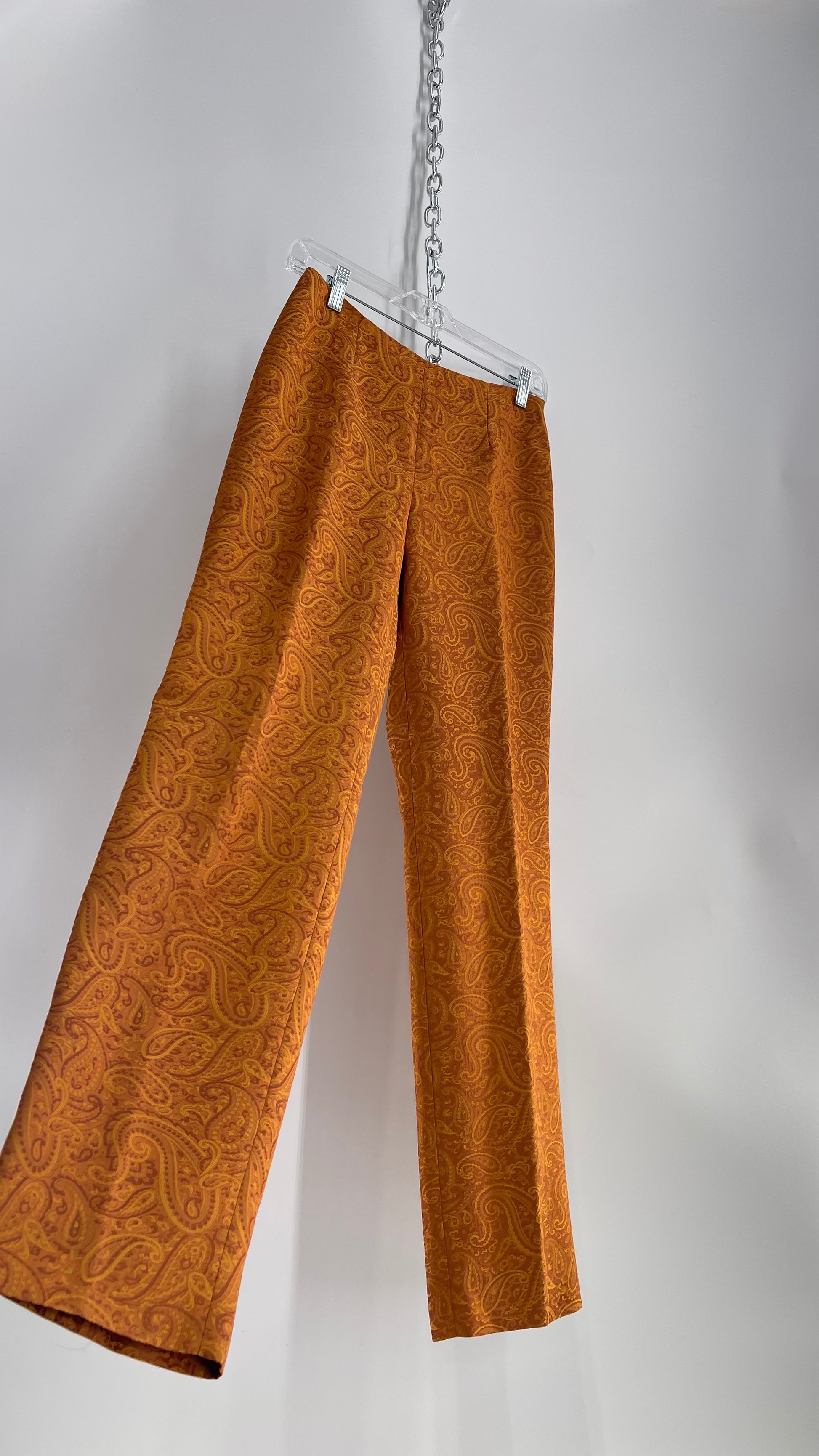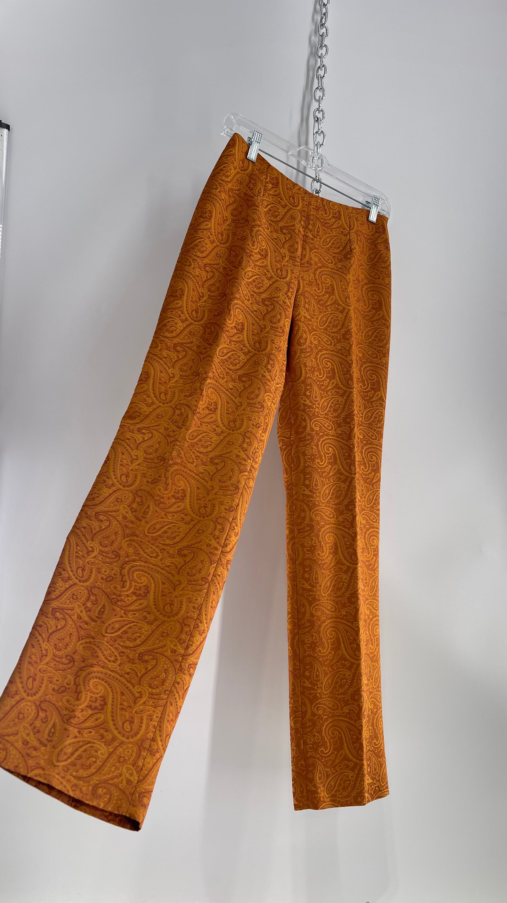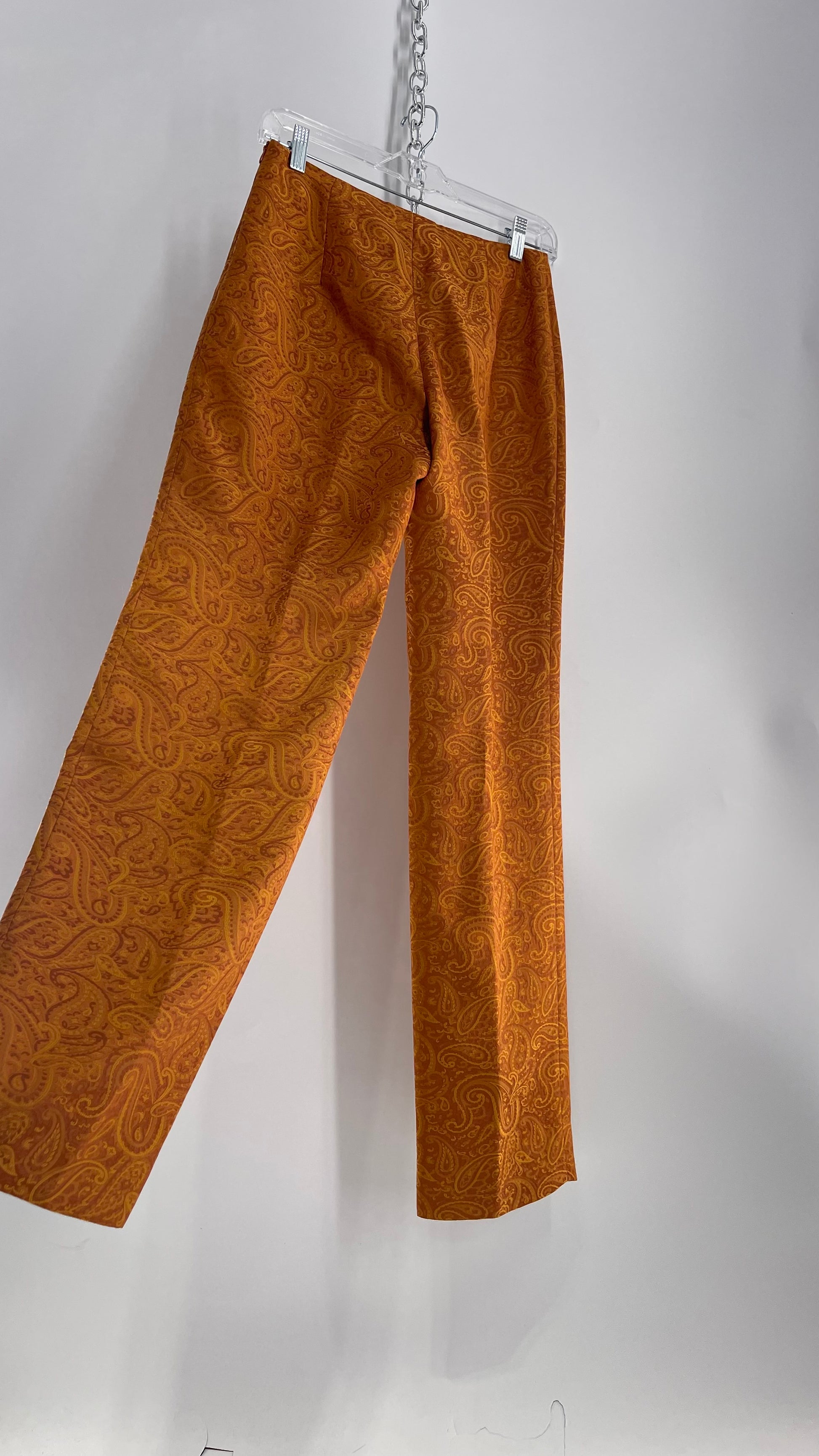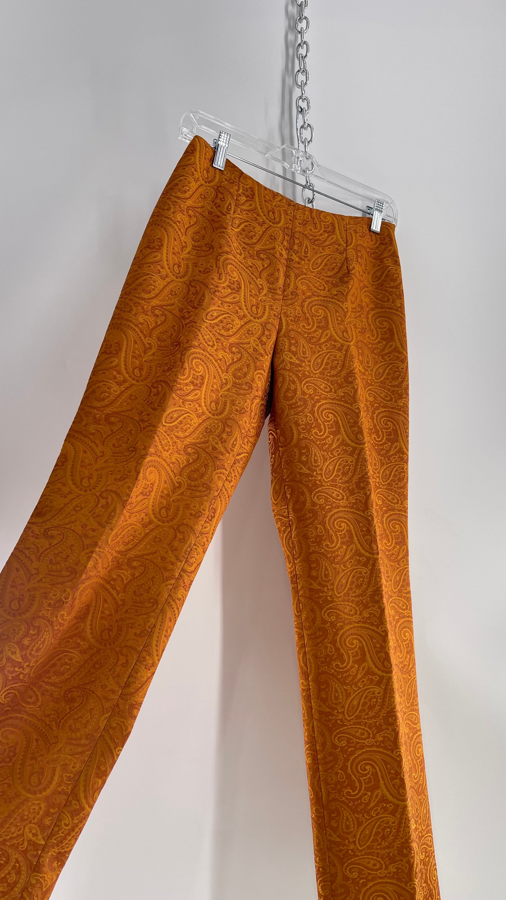 Peserico Italian Vintage Gold/Mustard Orange Paisley Patterned 56% Acetate Trouser (40)