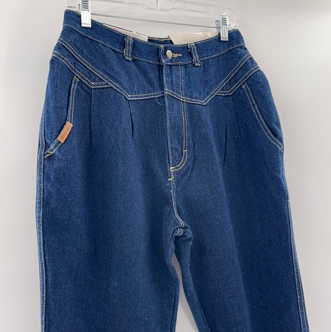 Deadstock vintage dark wash, high rise jeans from the 80s with western style stitching