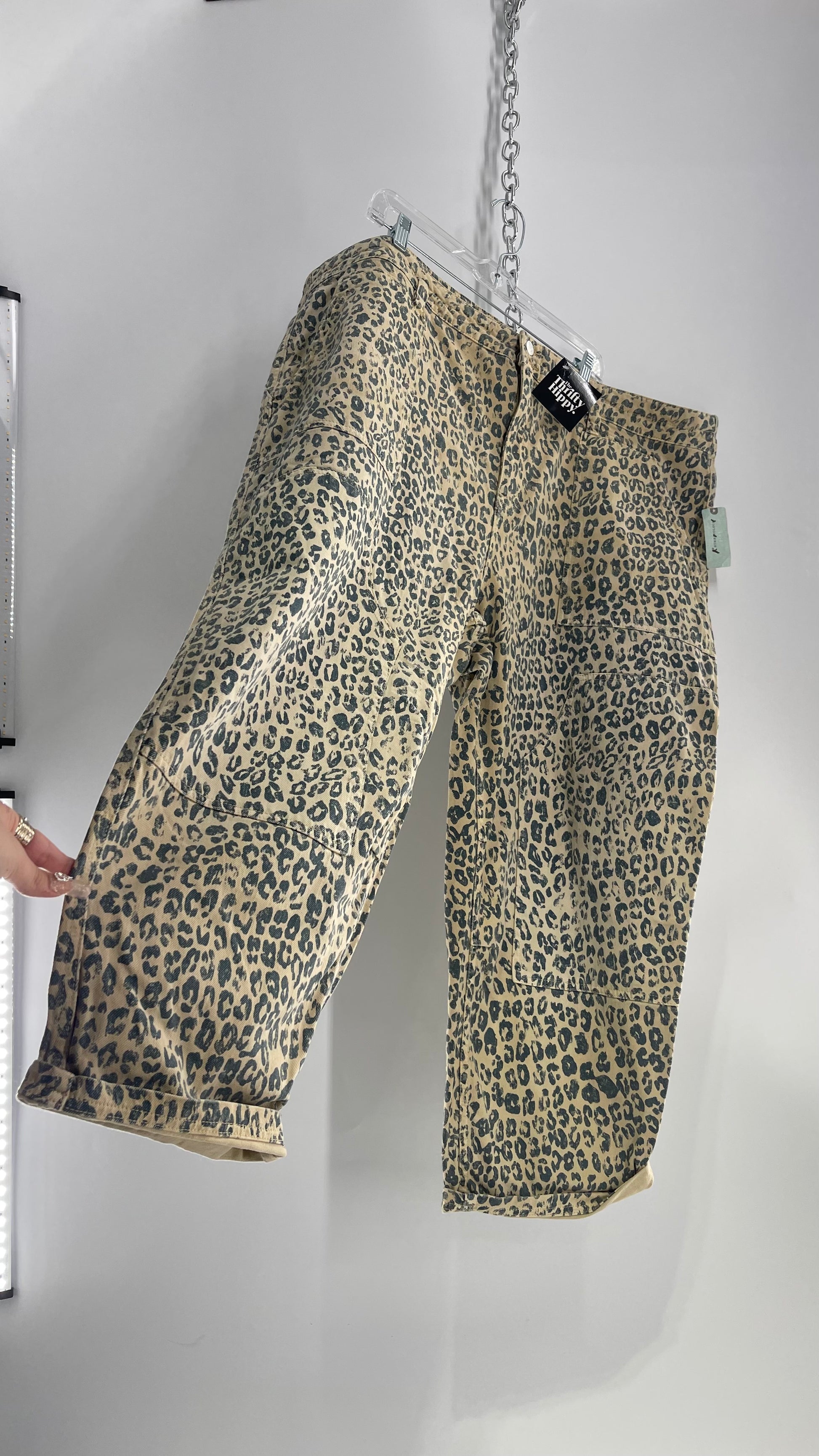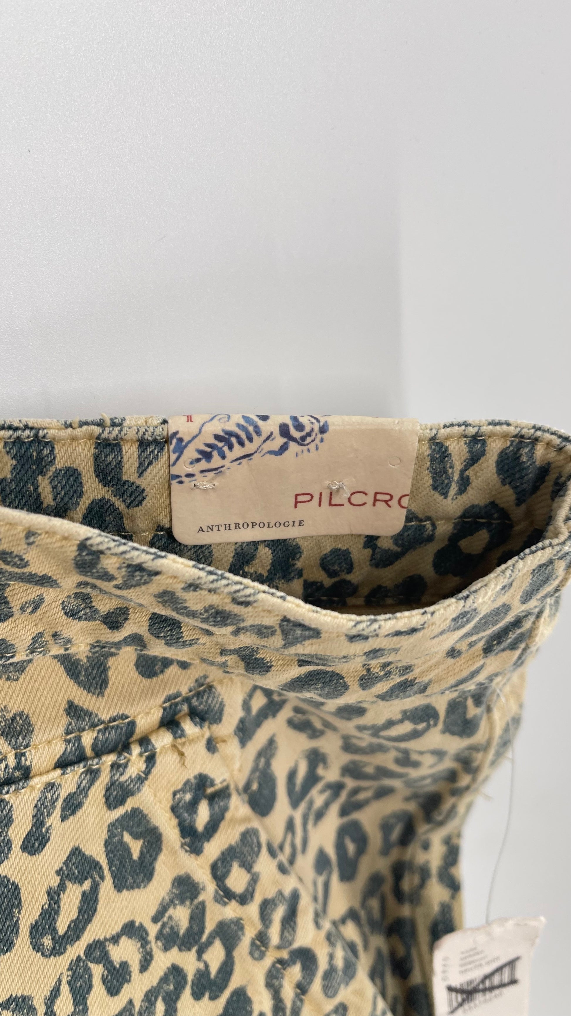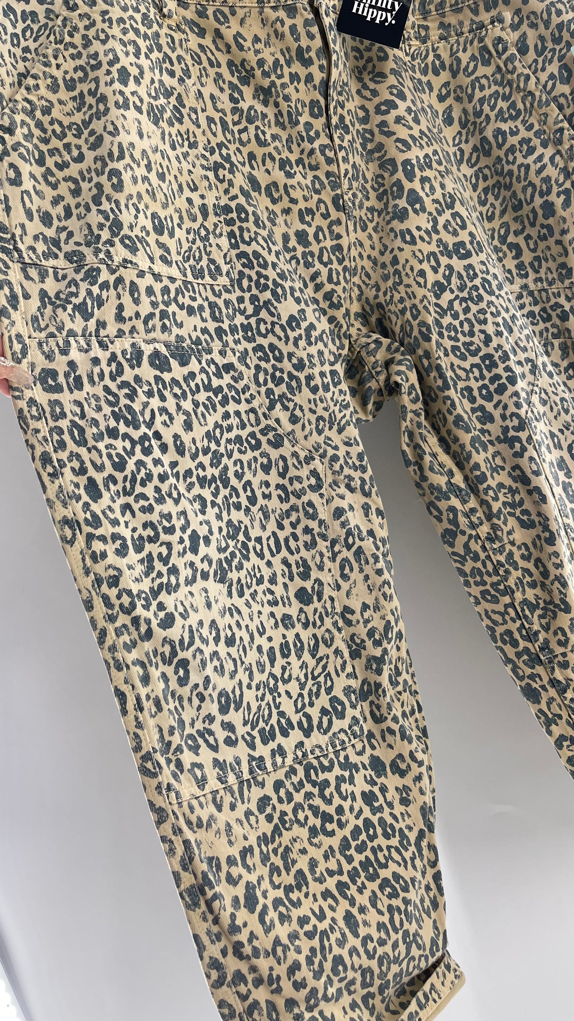 Pilcro Anthropologie Beige Blue Faded Leopard Carpenter Pant with Tags (24W)
