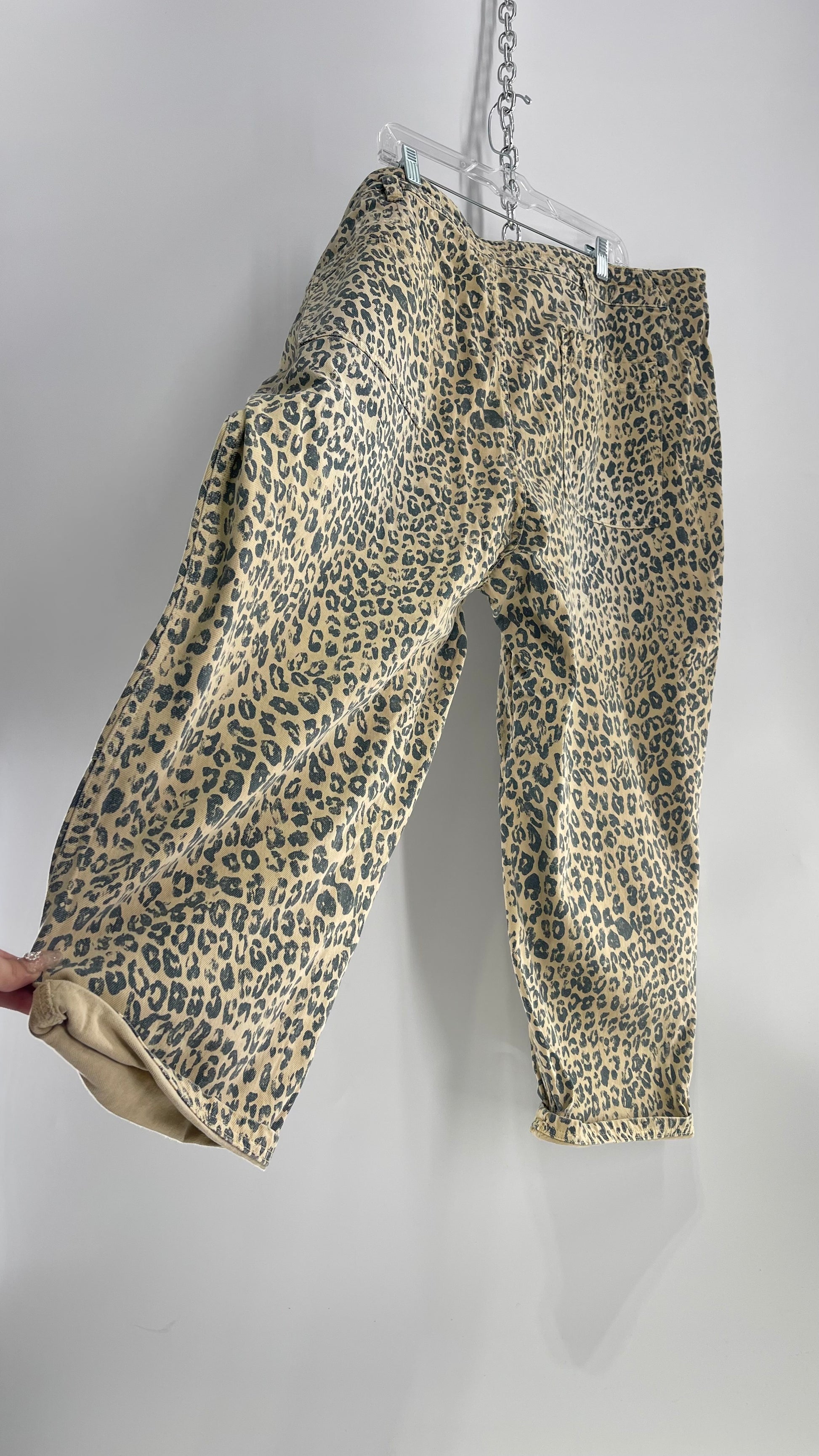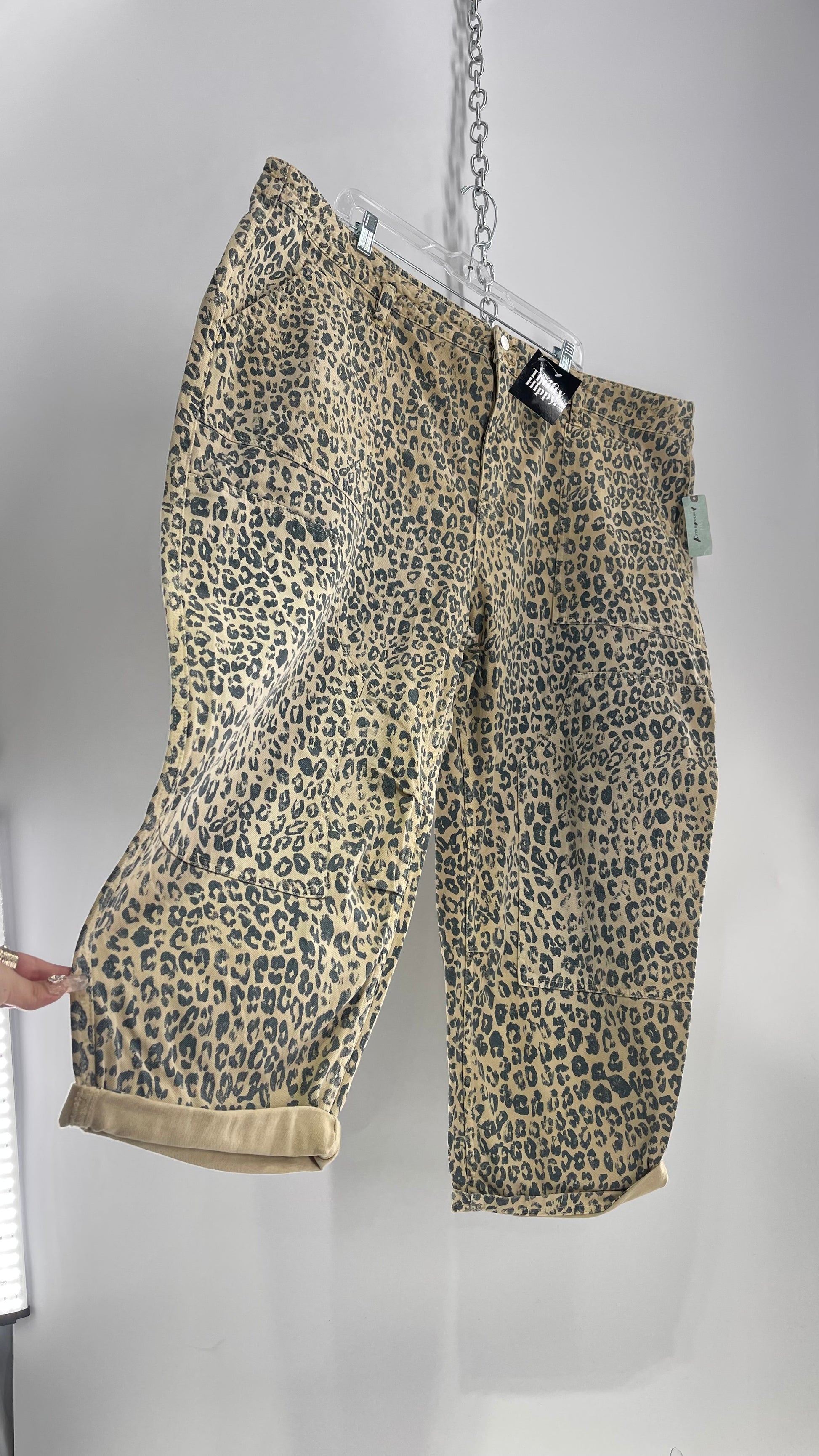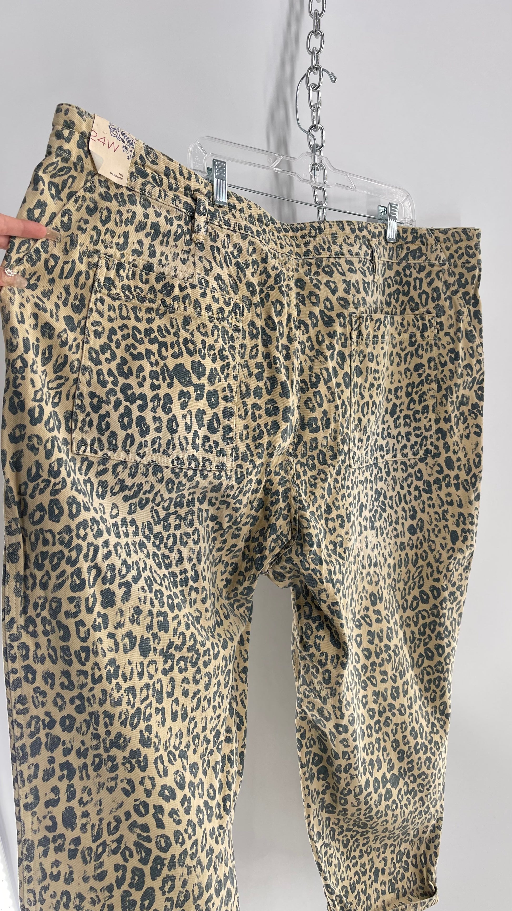 Pilcro Anthropologie Beige Blue Faded Leopard Carpenter Pant with Tags (24W)