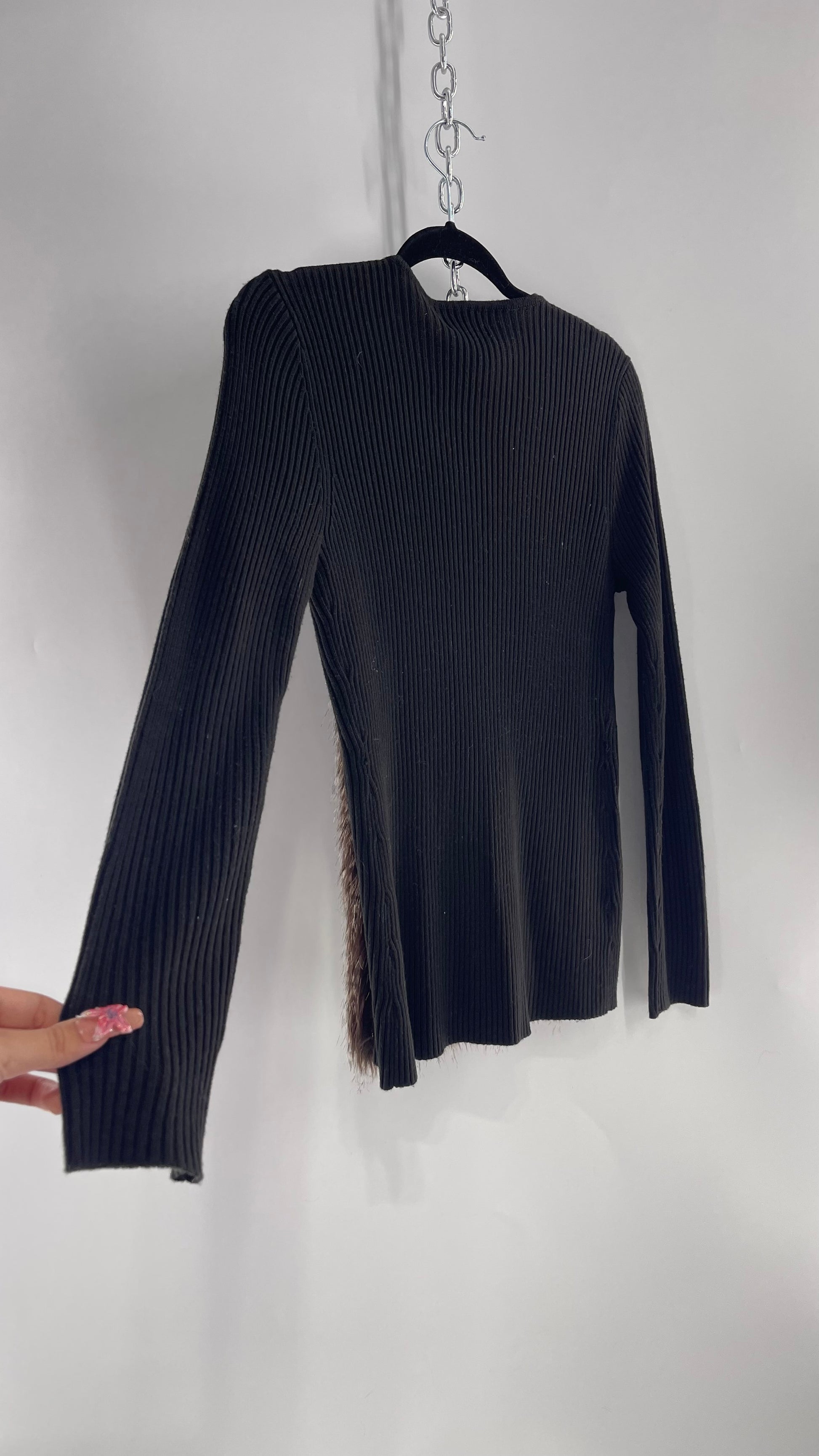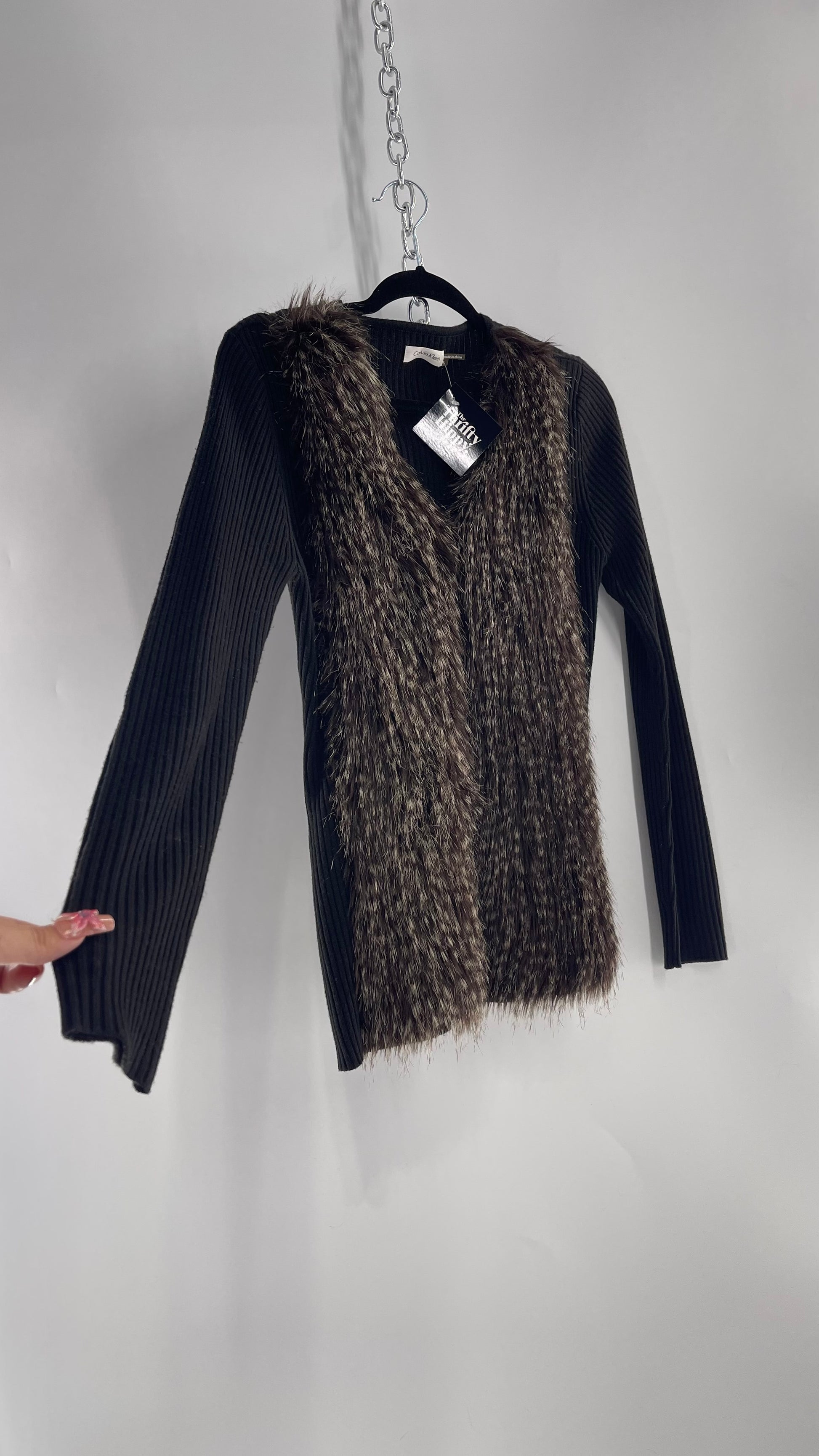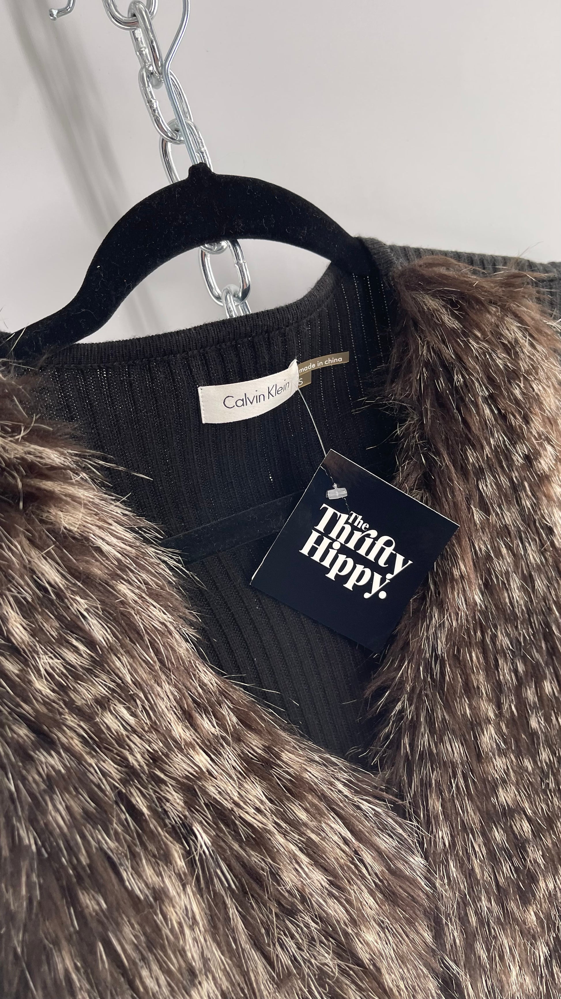 Vintage Calvin Klein Faux Fur Feather Ribbed Sweater (Small)