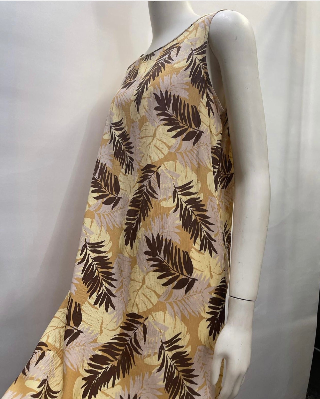 Leaf Pattern | Yellow + Brown | Sleeveless | Wrinkle