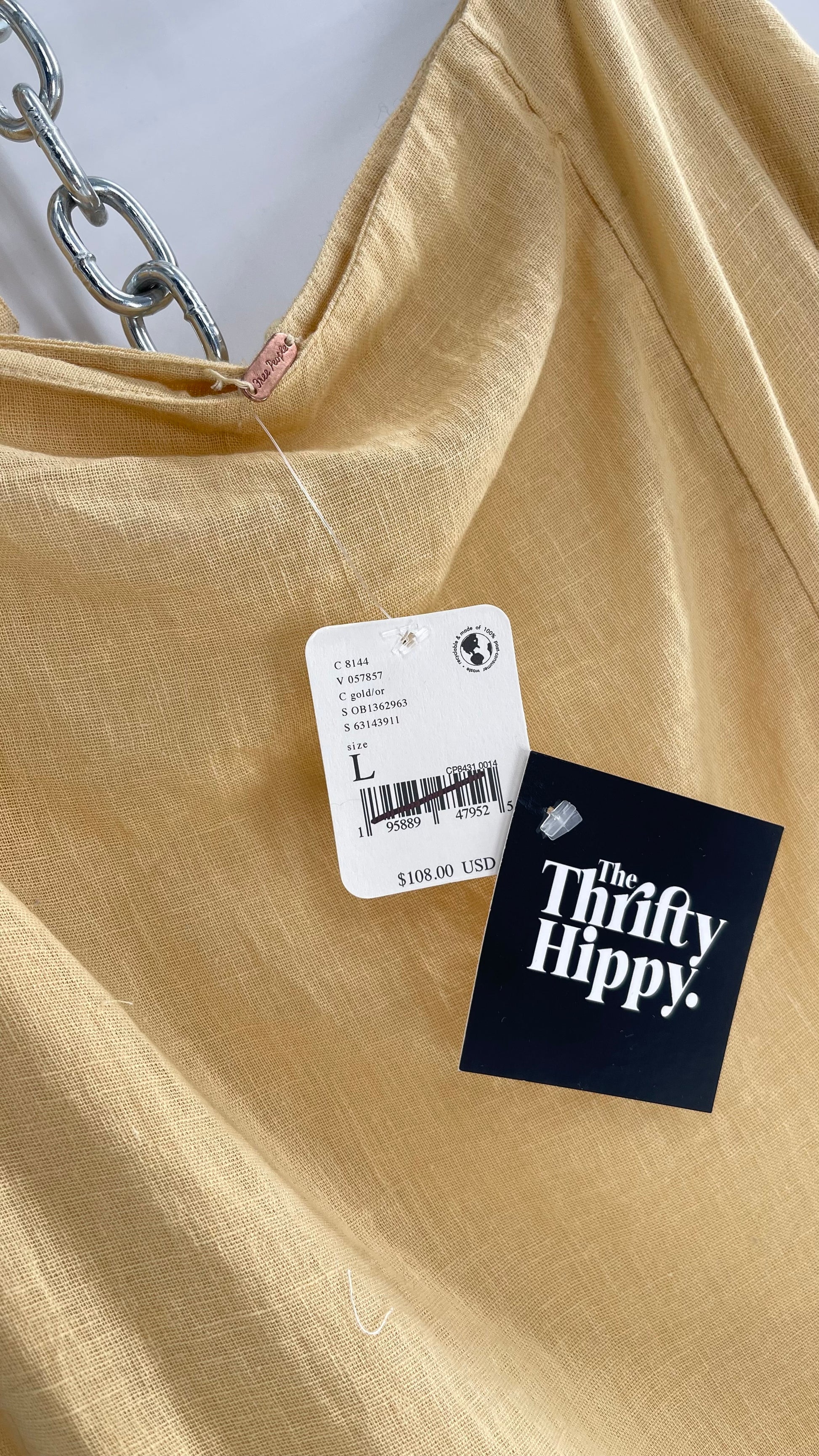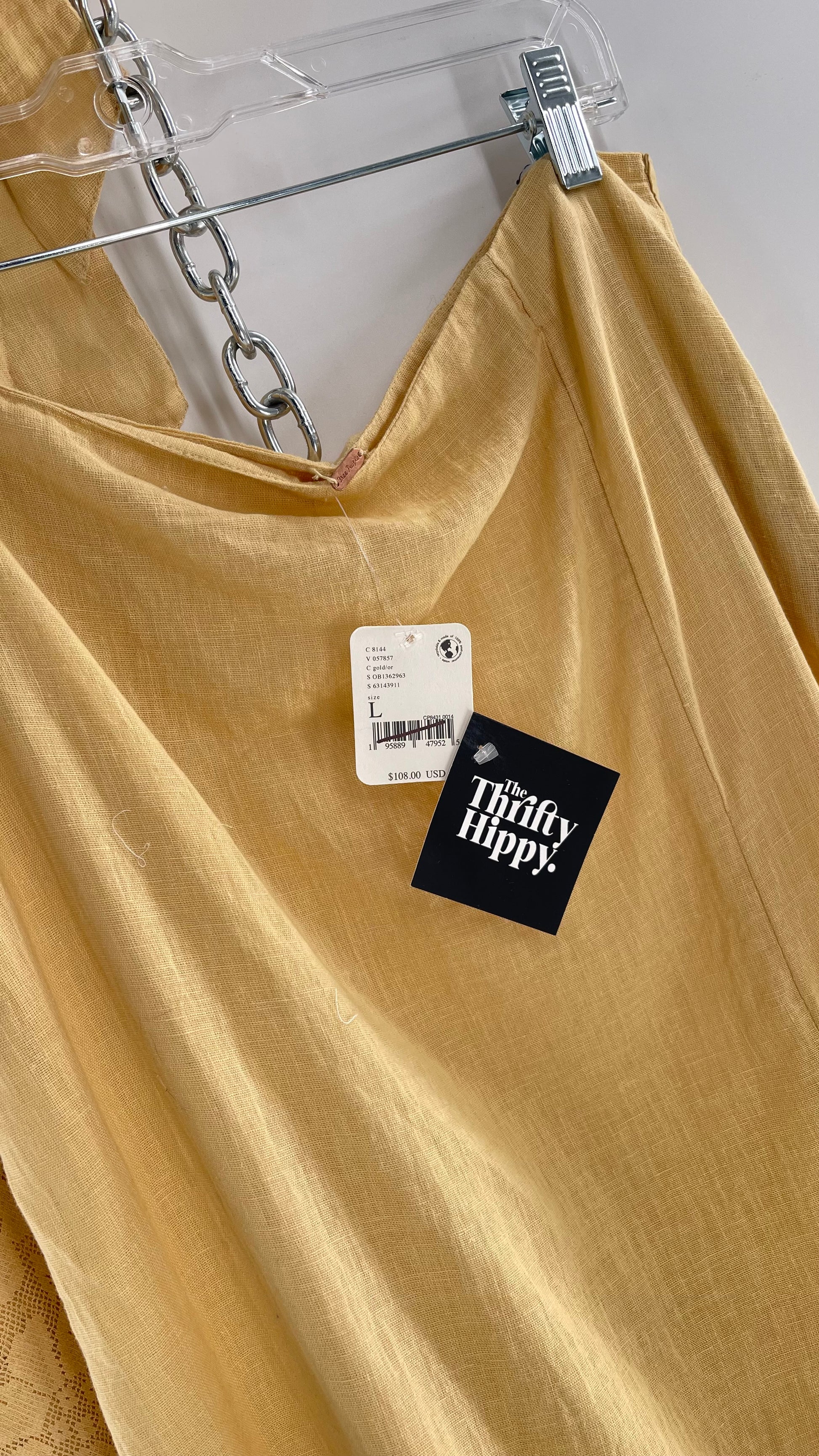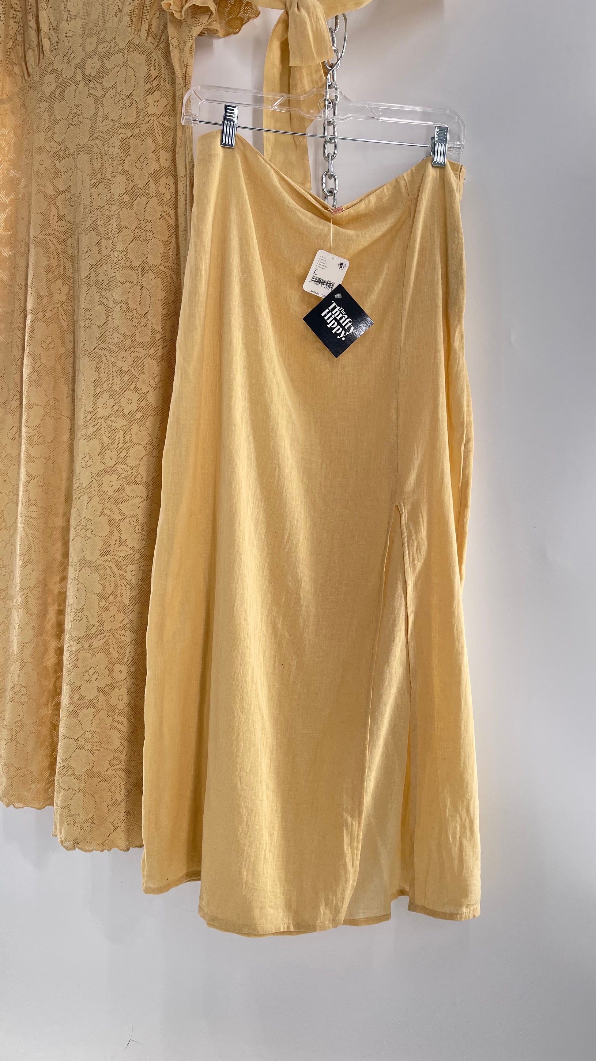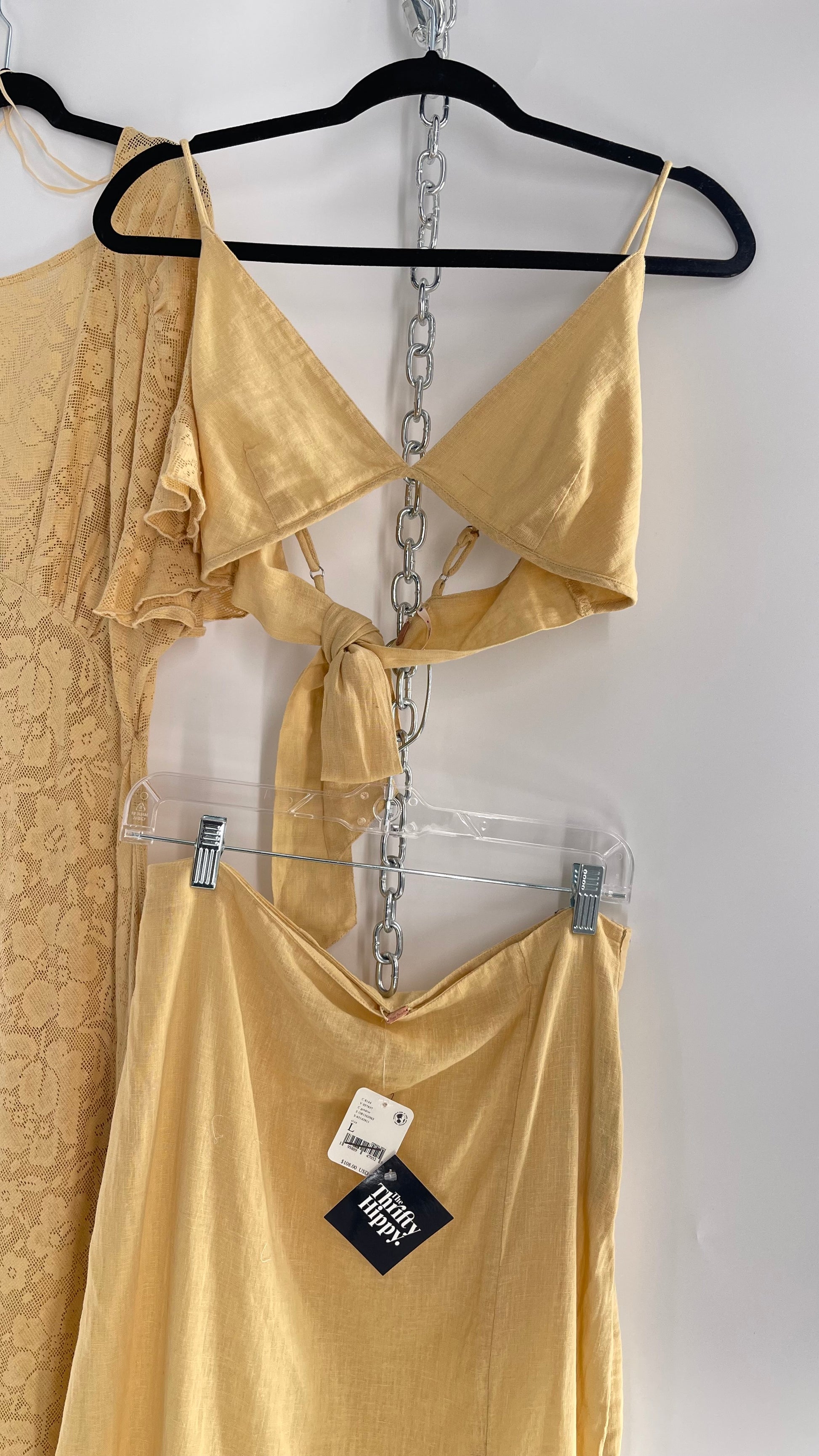 Free People Yellow Lace Gauze Maxi Dress Set with Bralette and Side Grommet Skirt (Large)