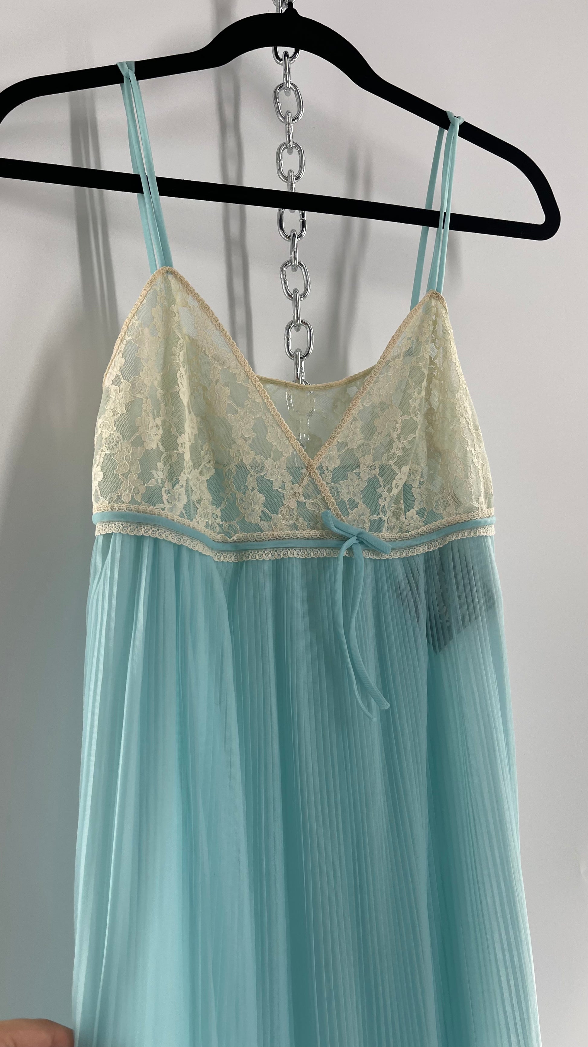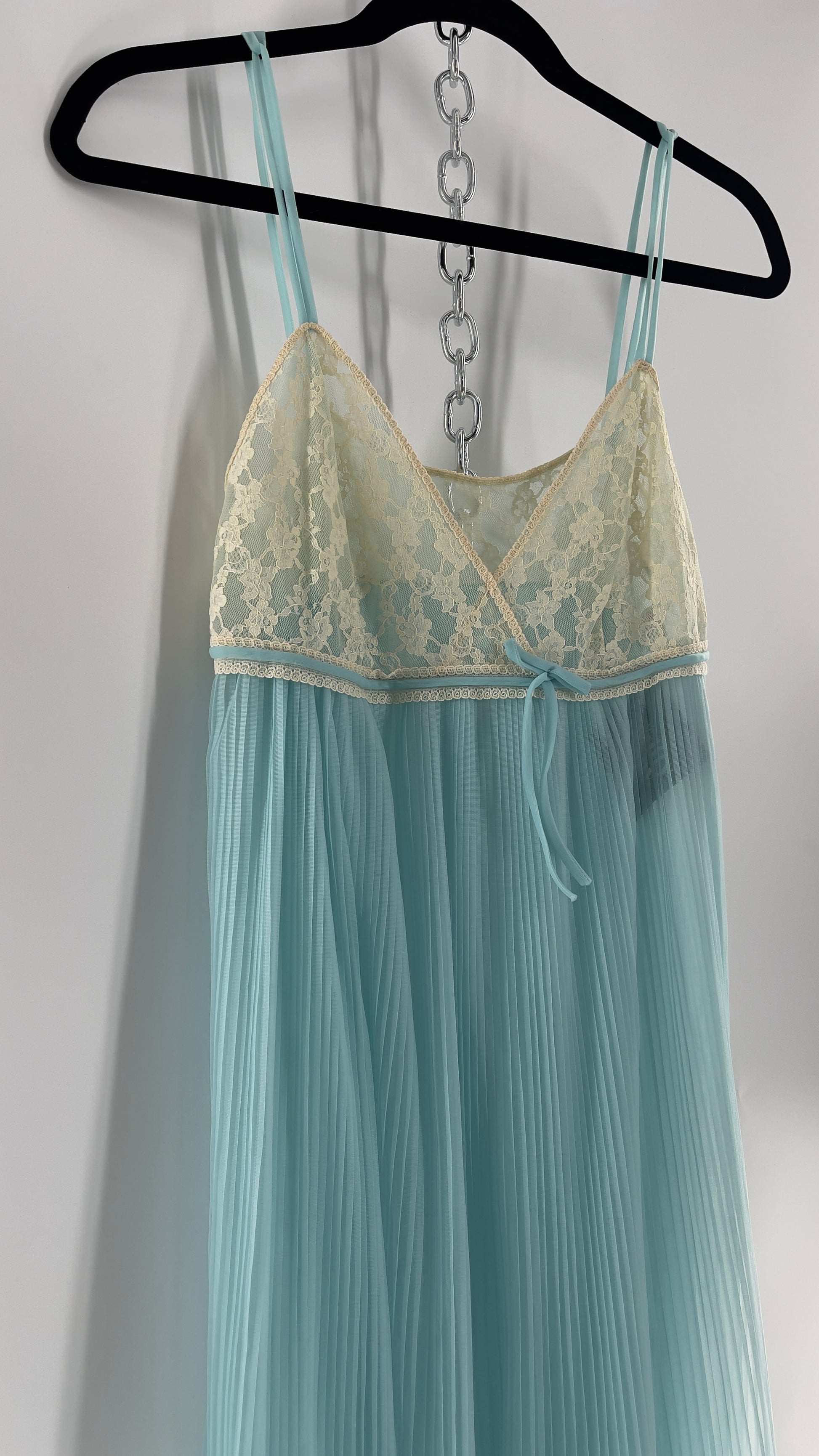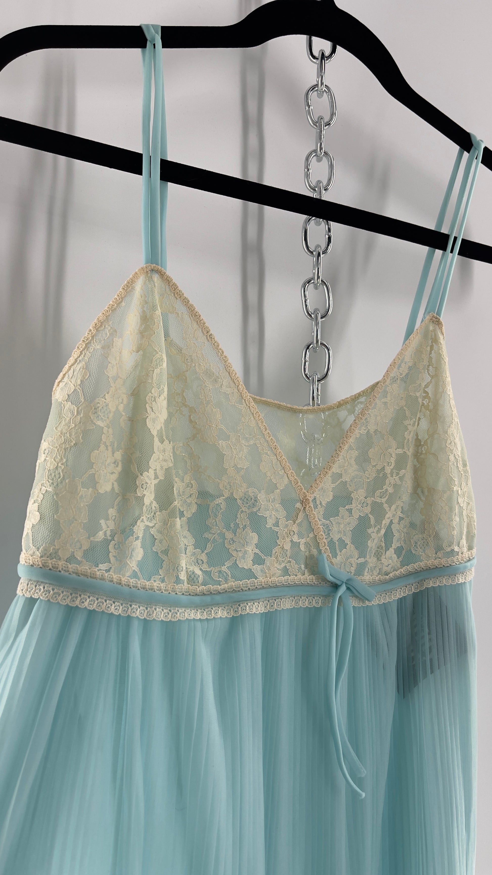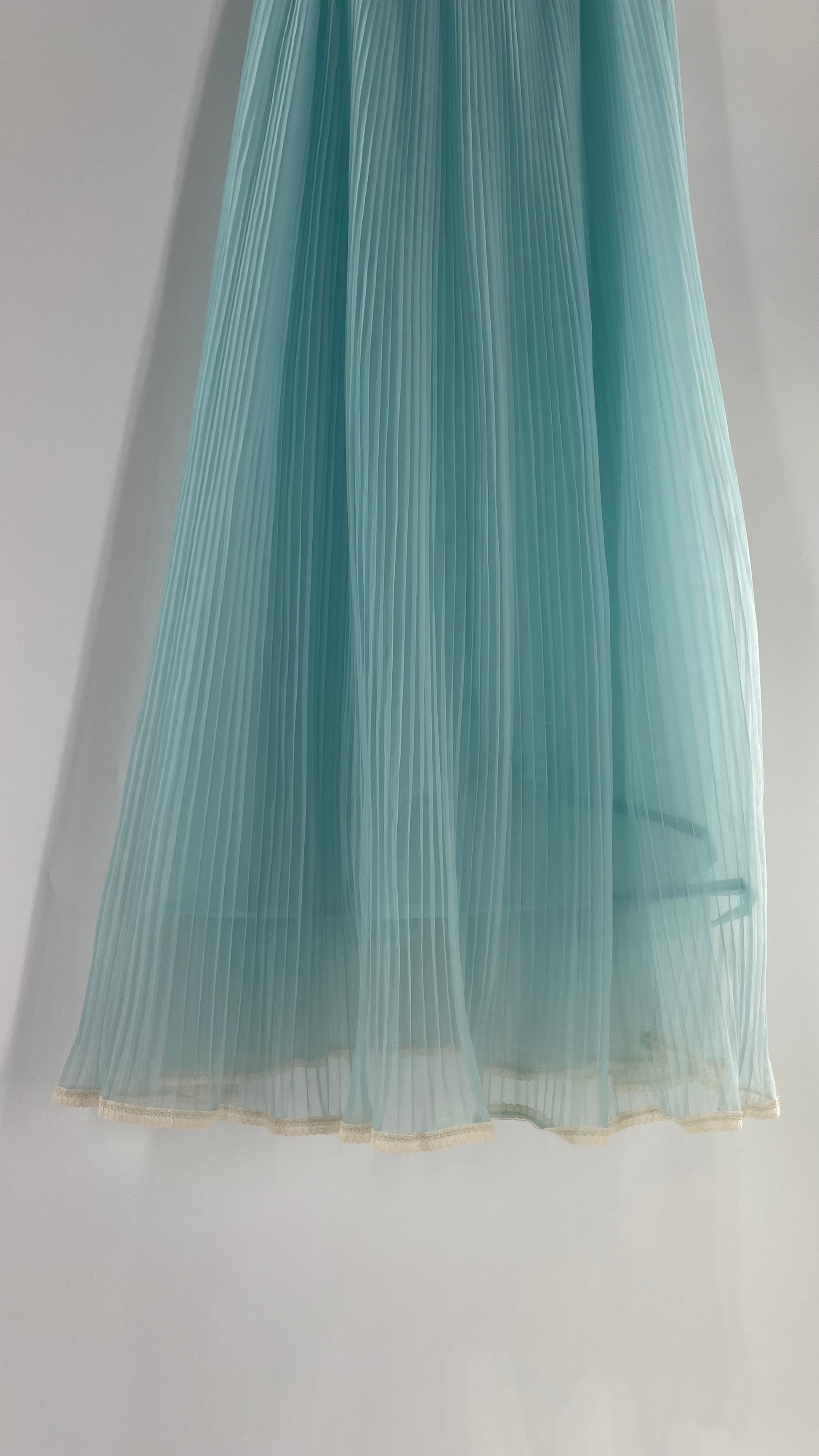 Vintage 1960s baby blue nightgown maxi dress with lace bust and pleated body