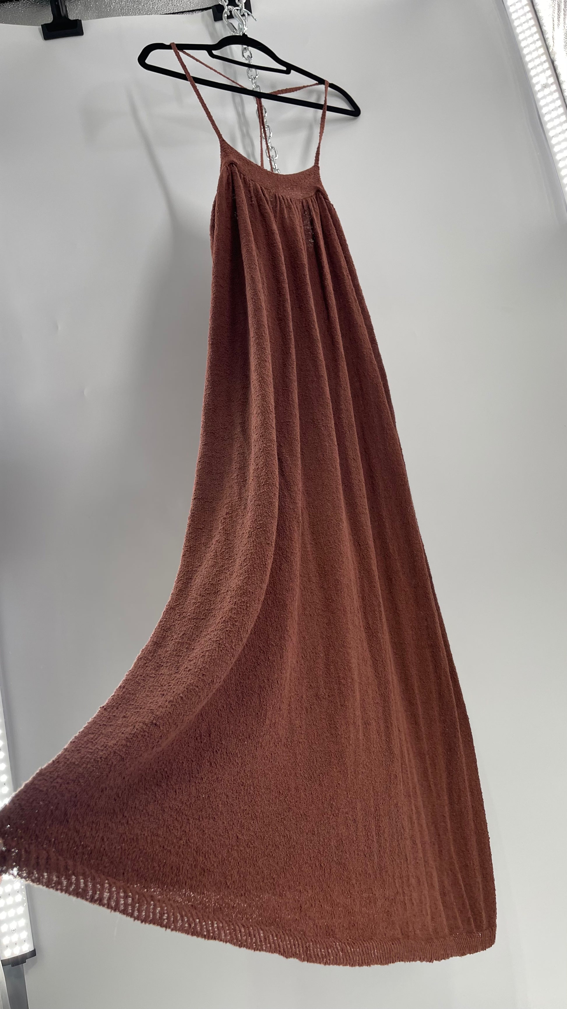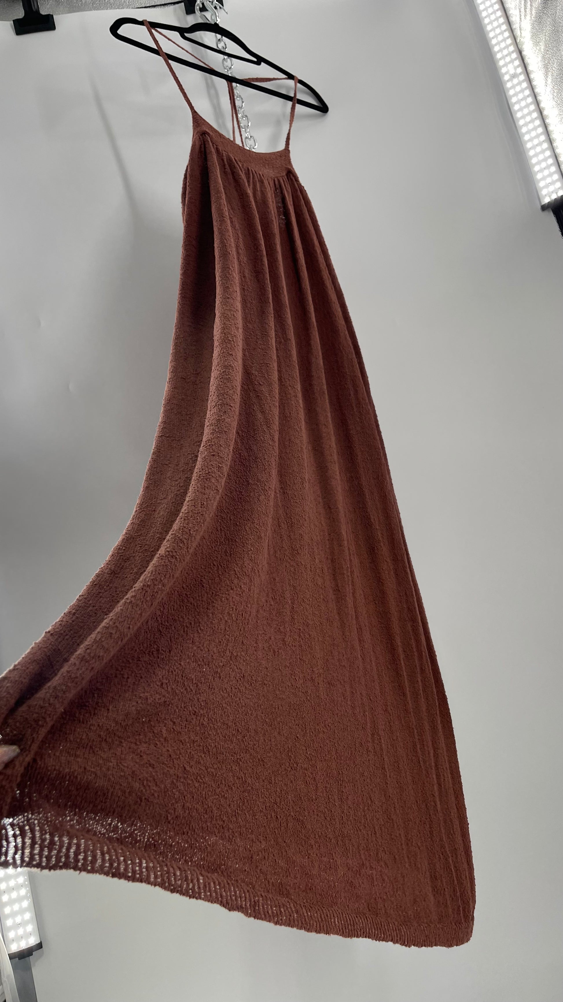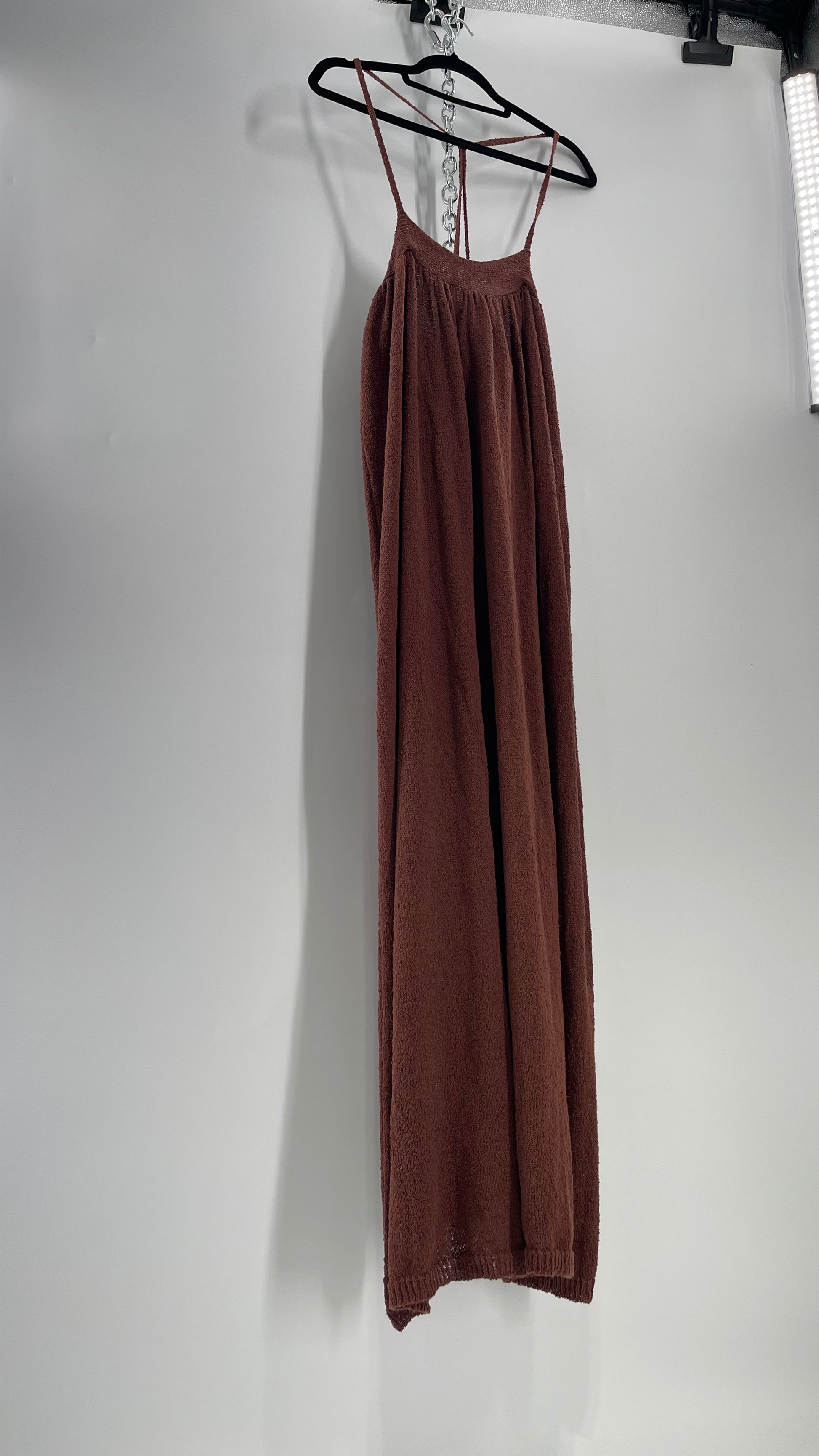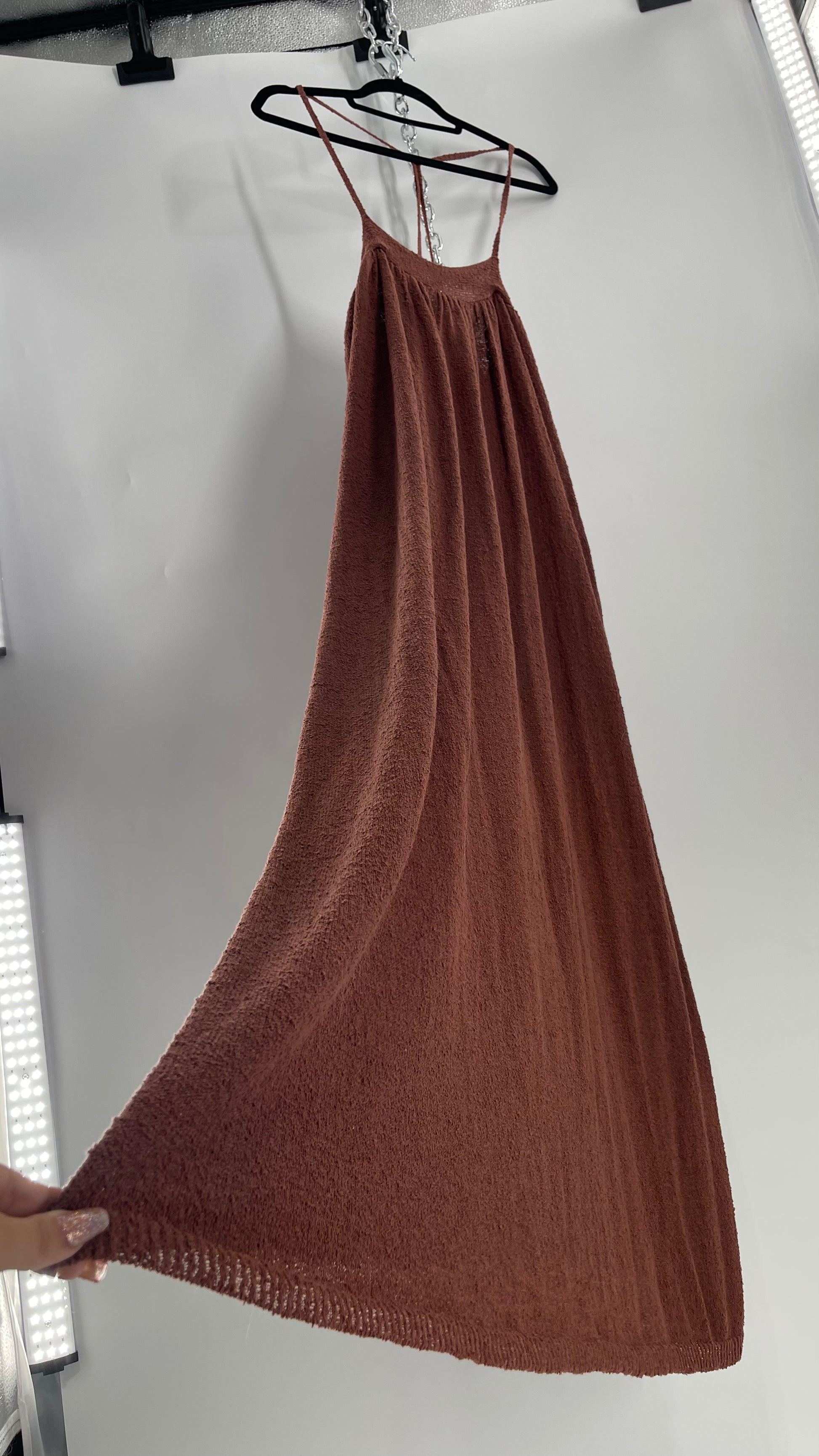 Free People Slinky Textured Brown Knit Full Length Dress (Small)