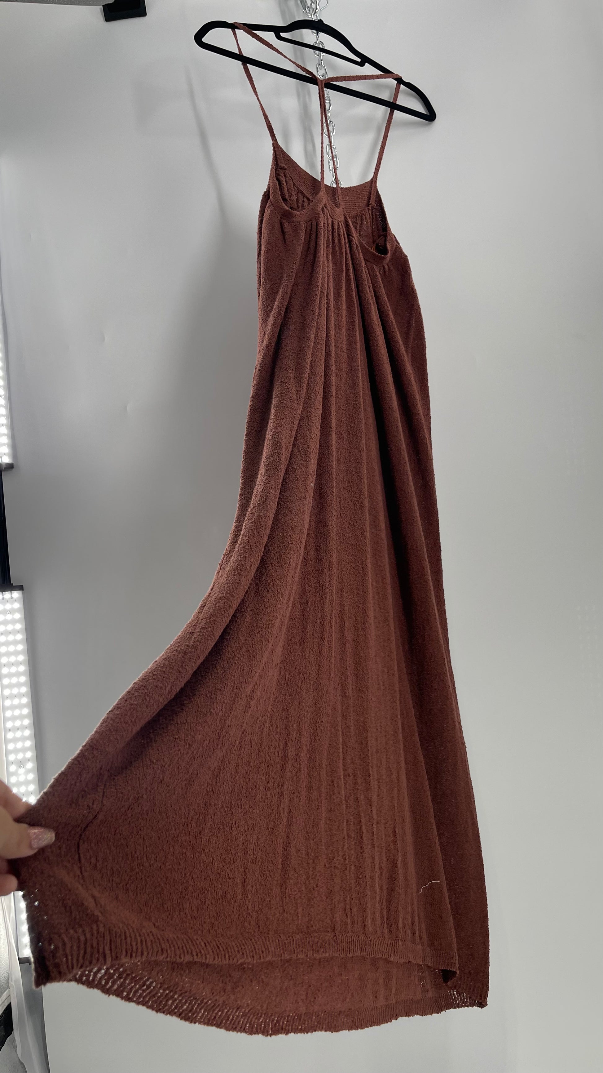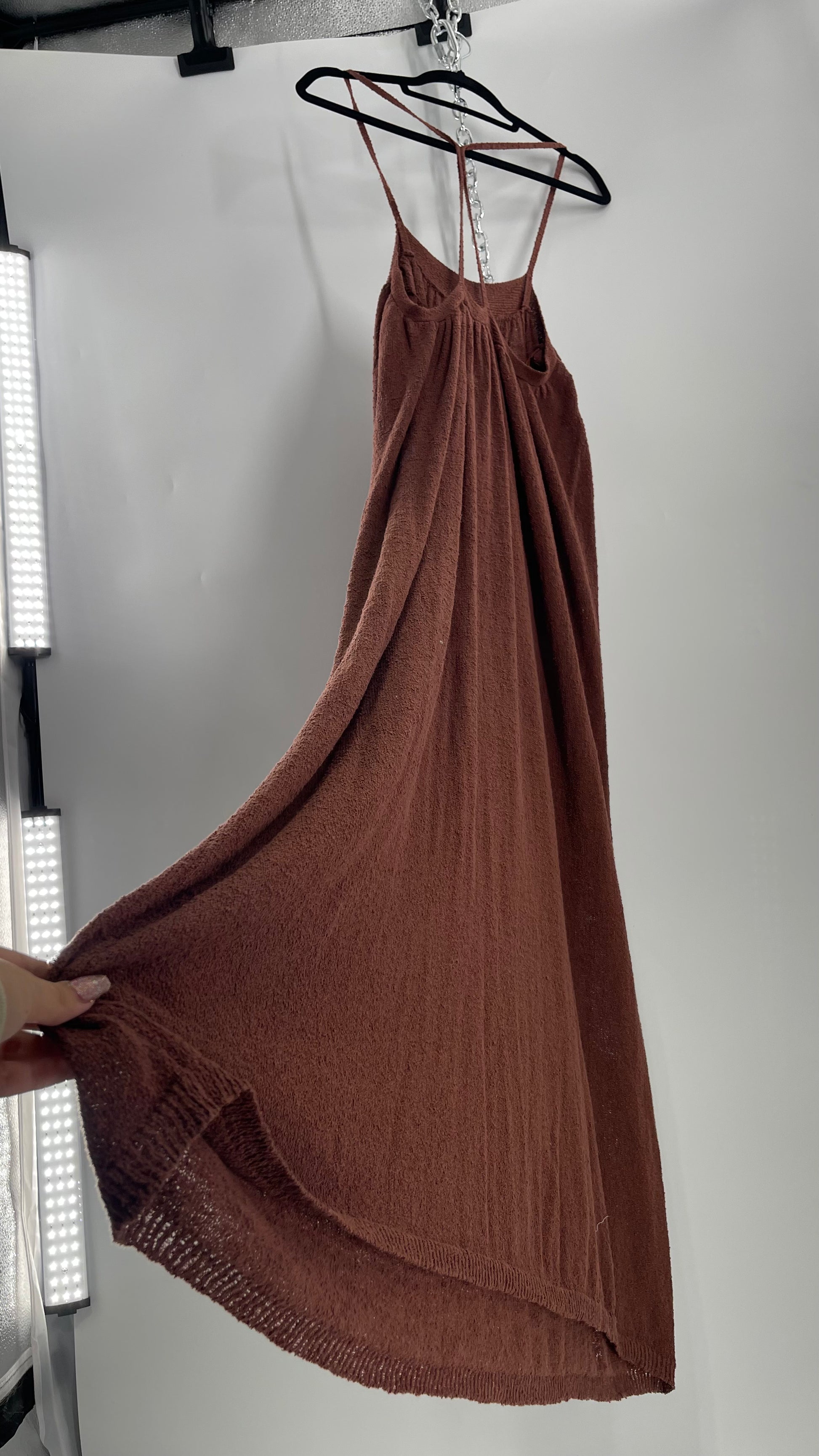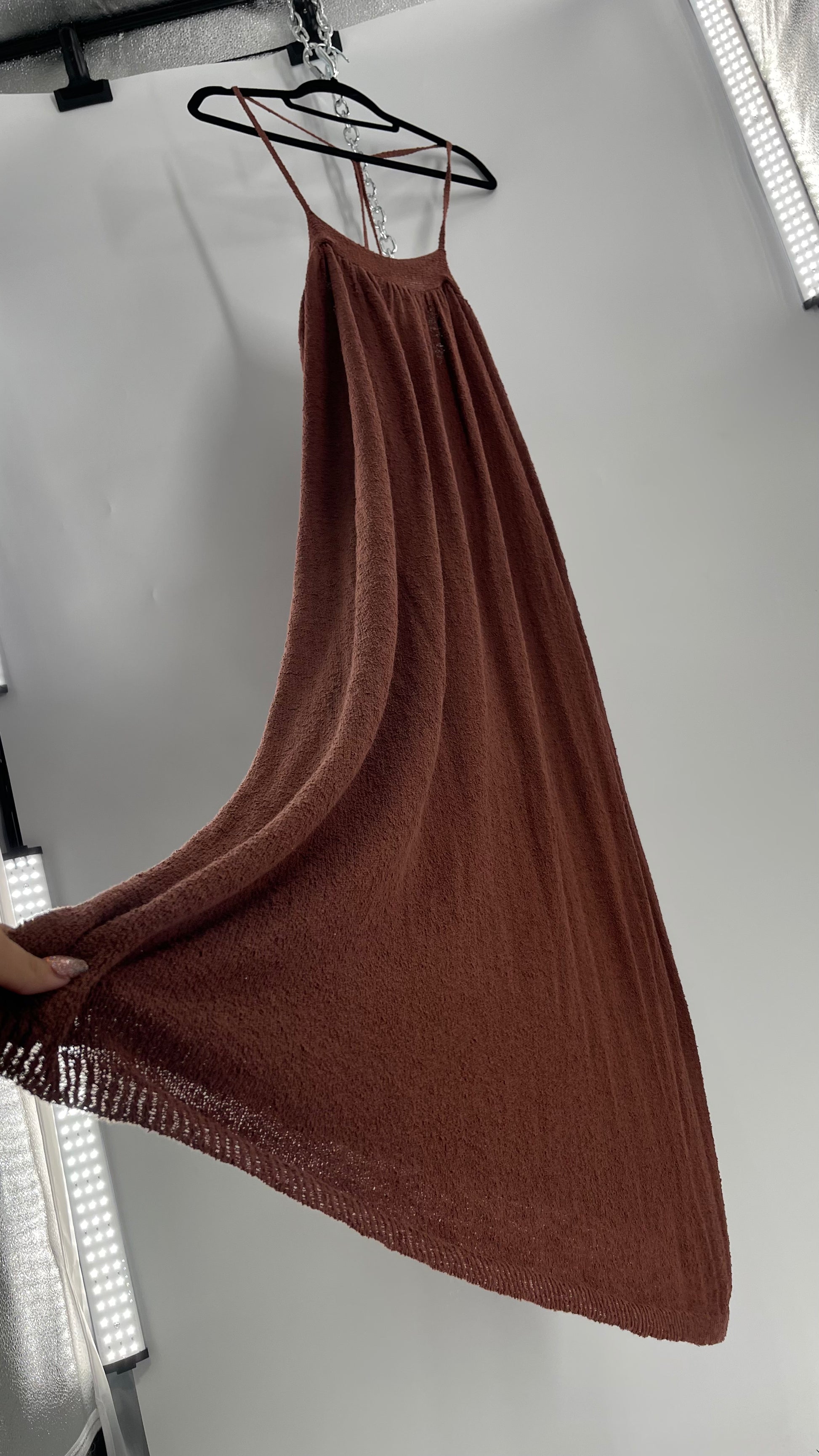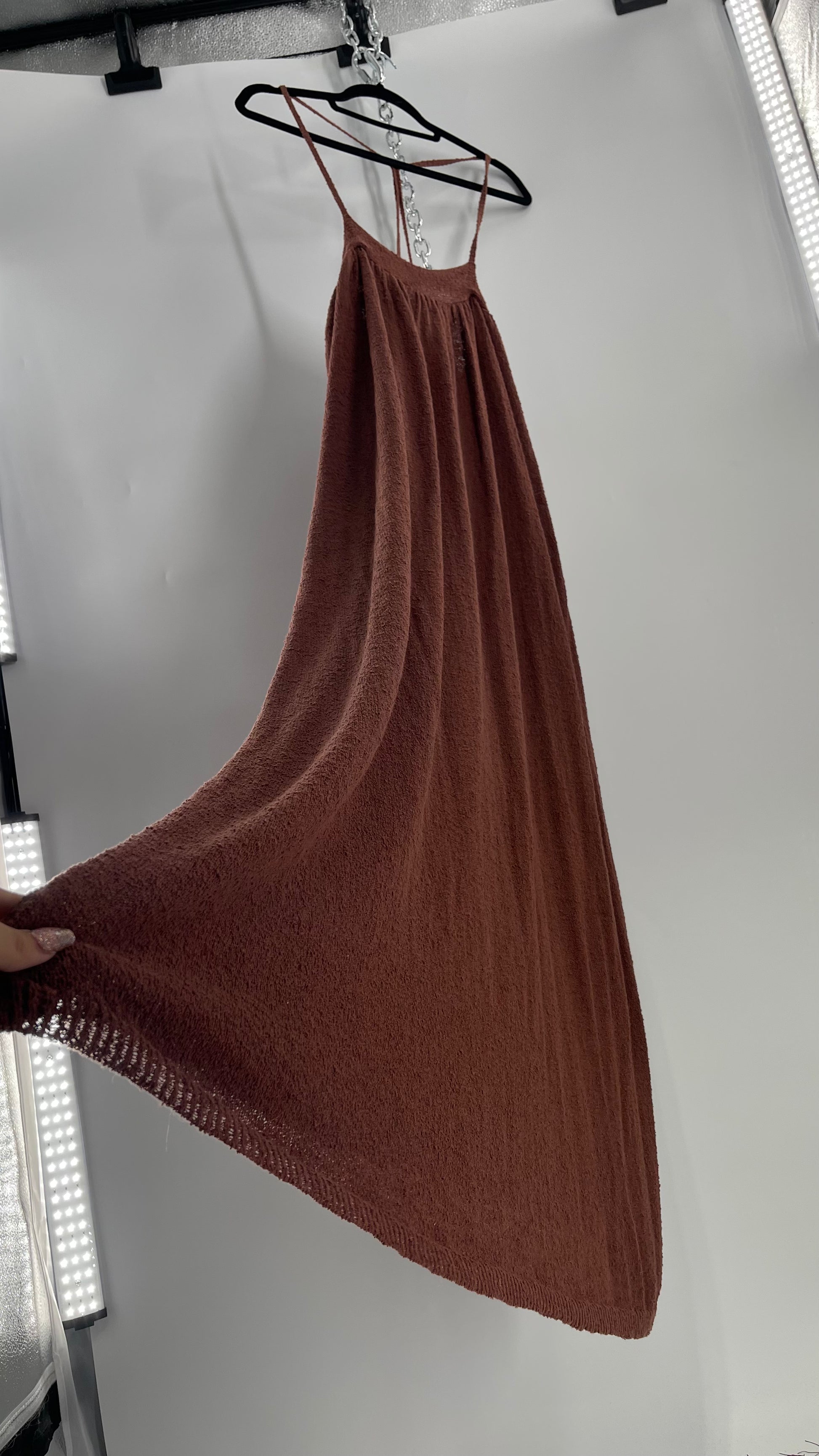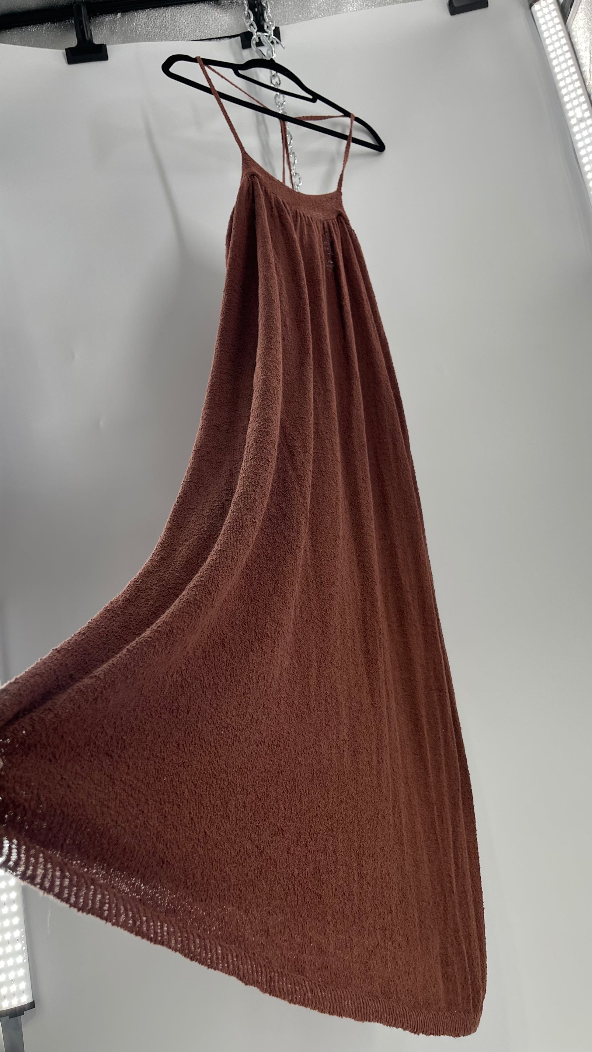 Free People Slinky Textured Brown Knit Full Length Dress (Small)