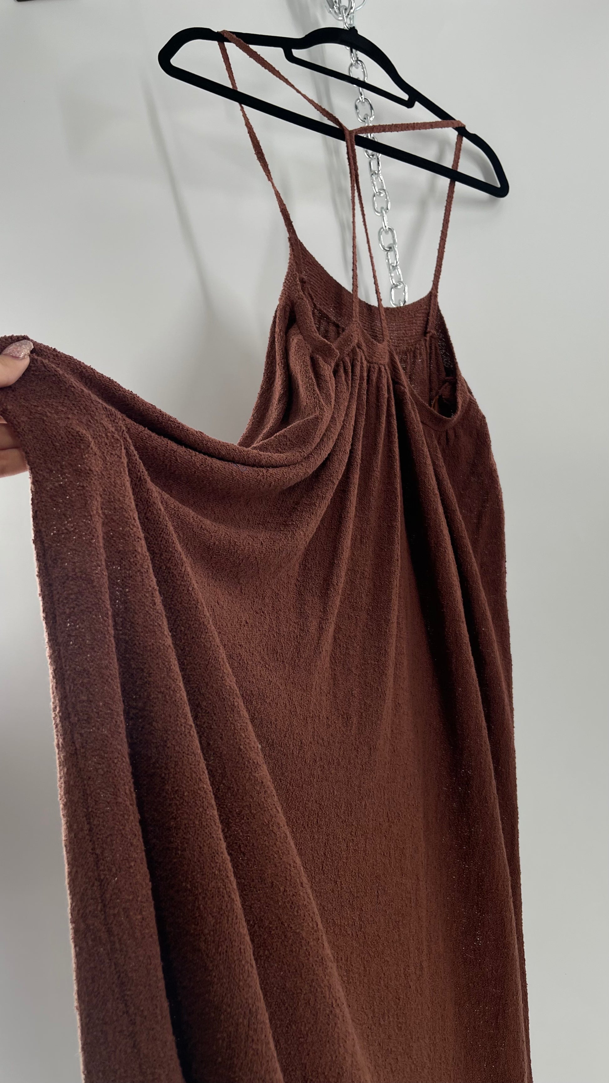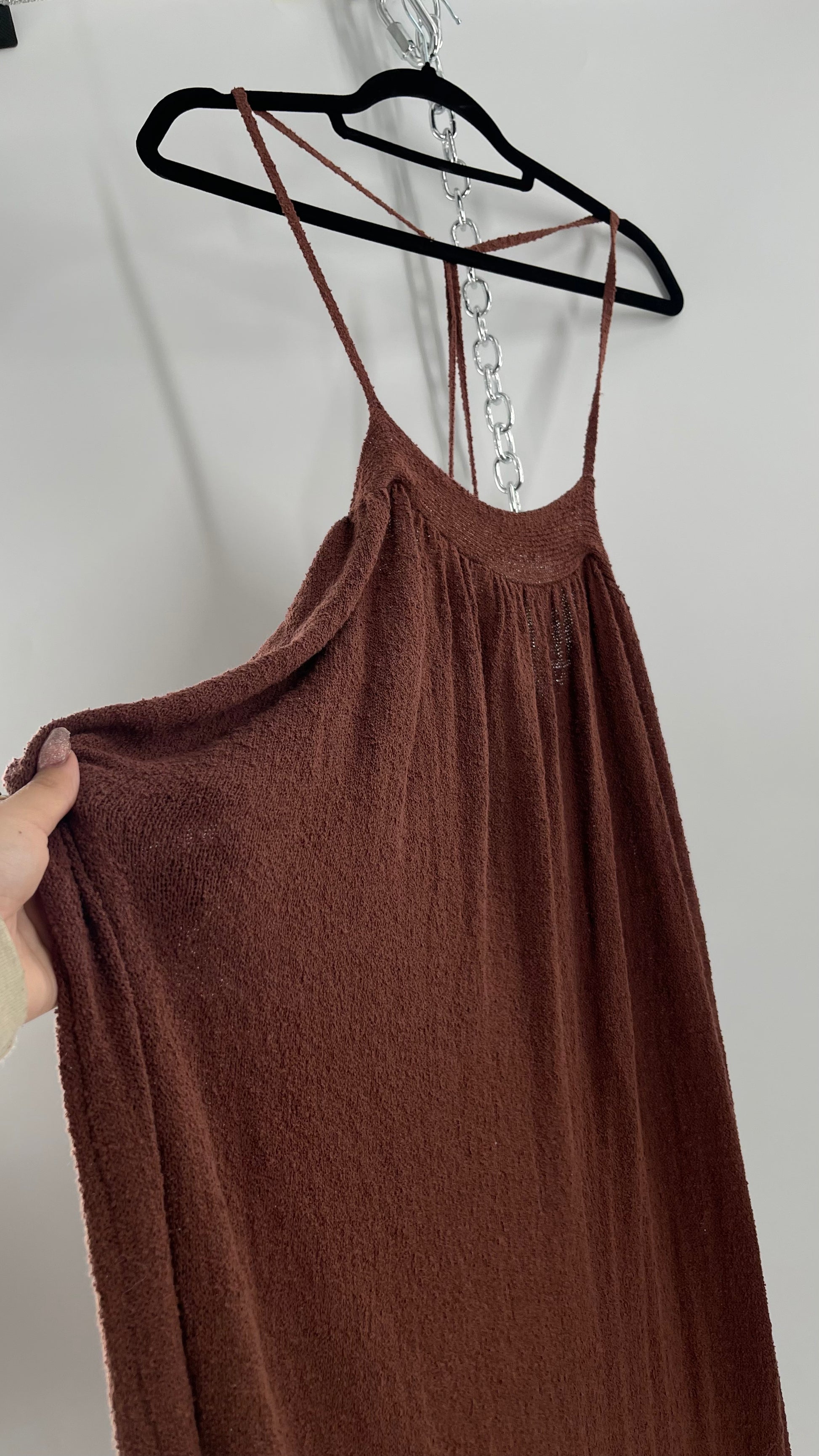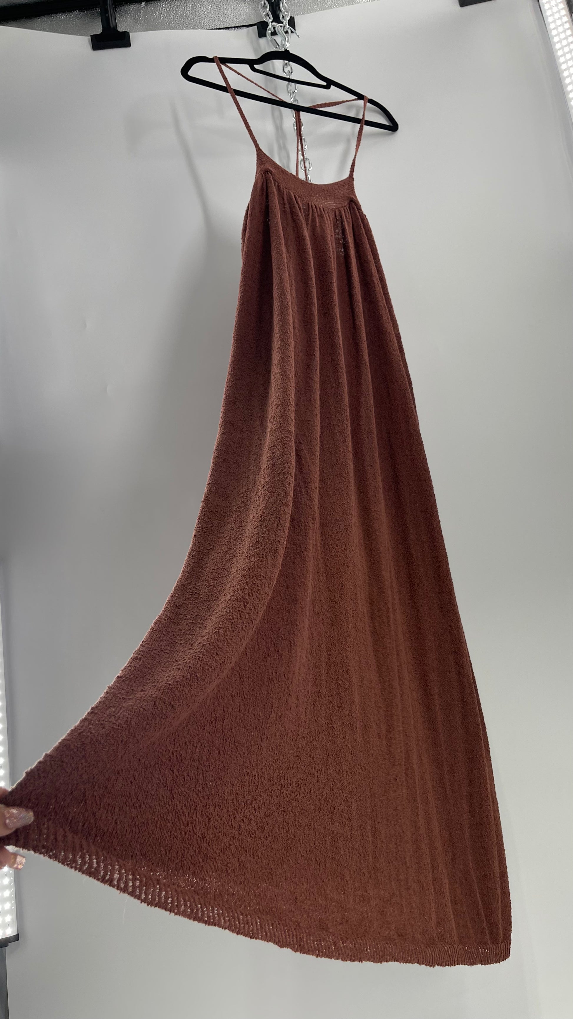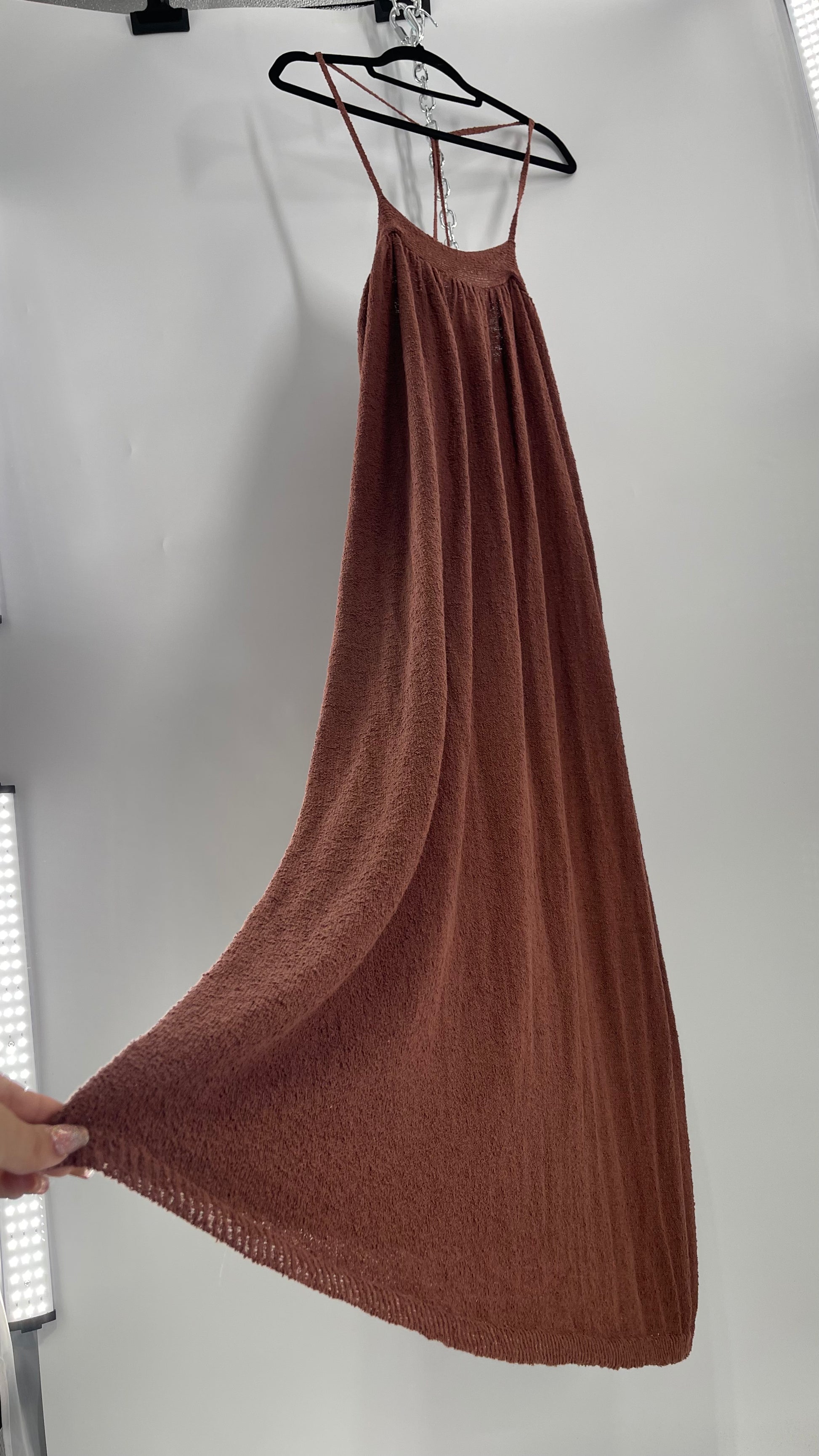 Free People Slinky Textured Brown Knit Full Length Dress (Small)