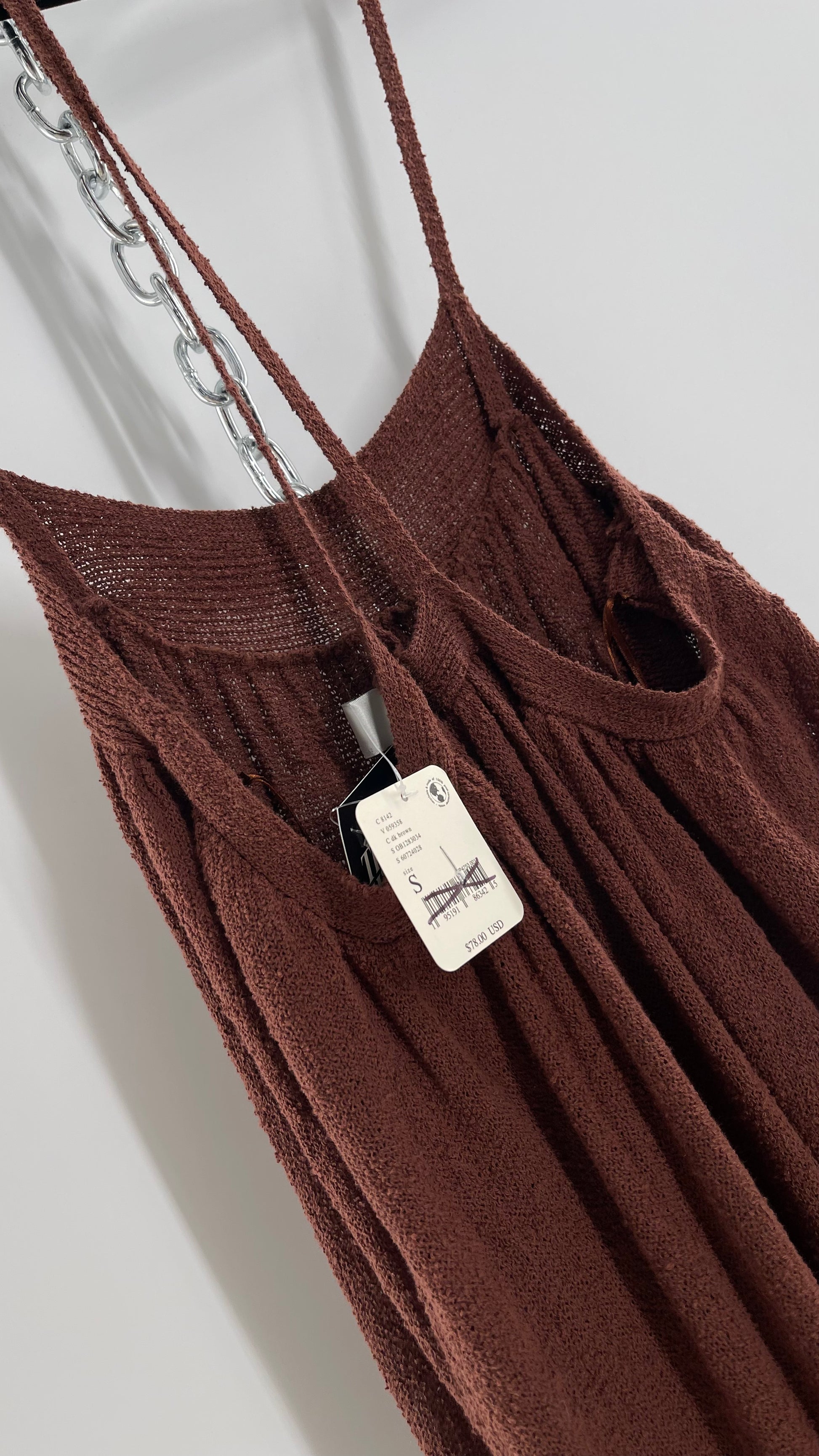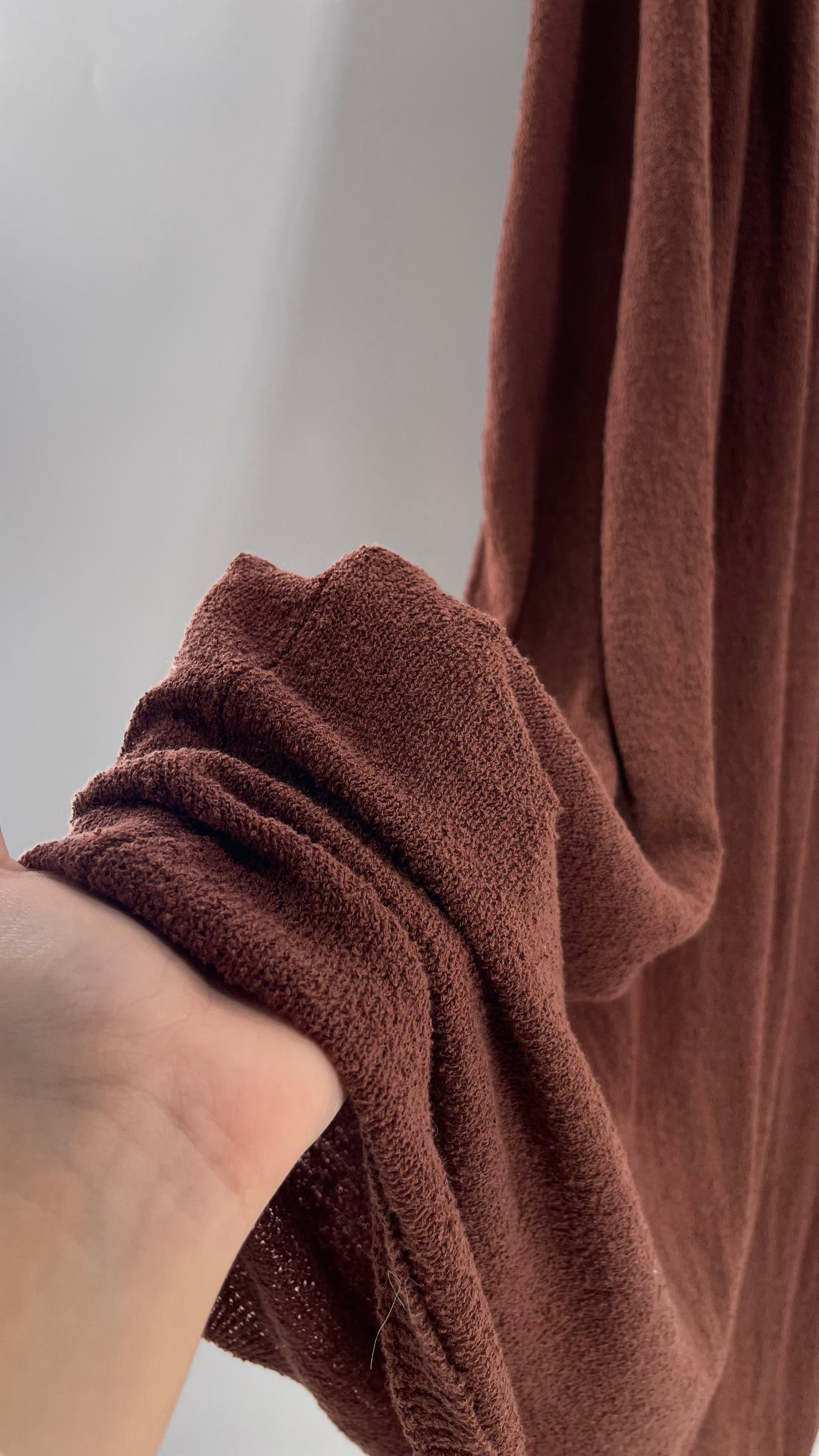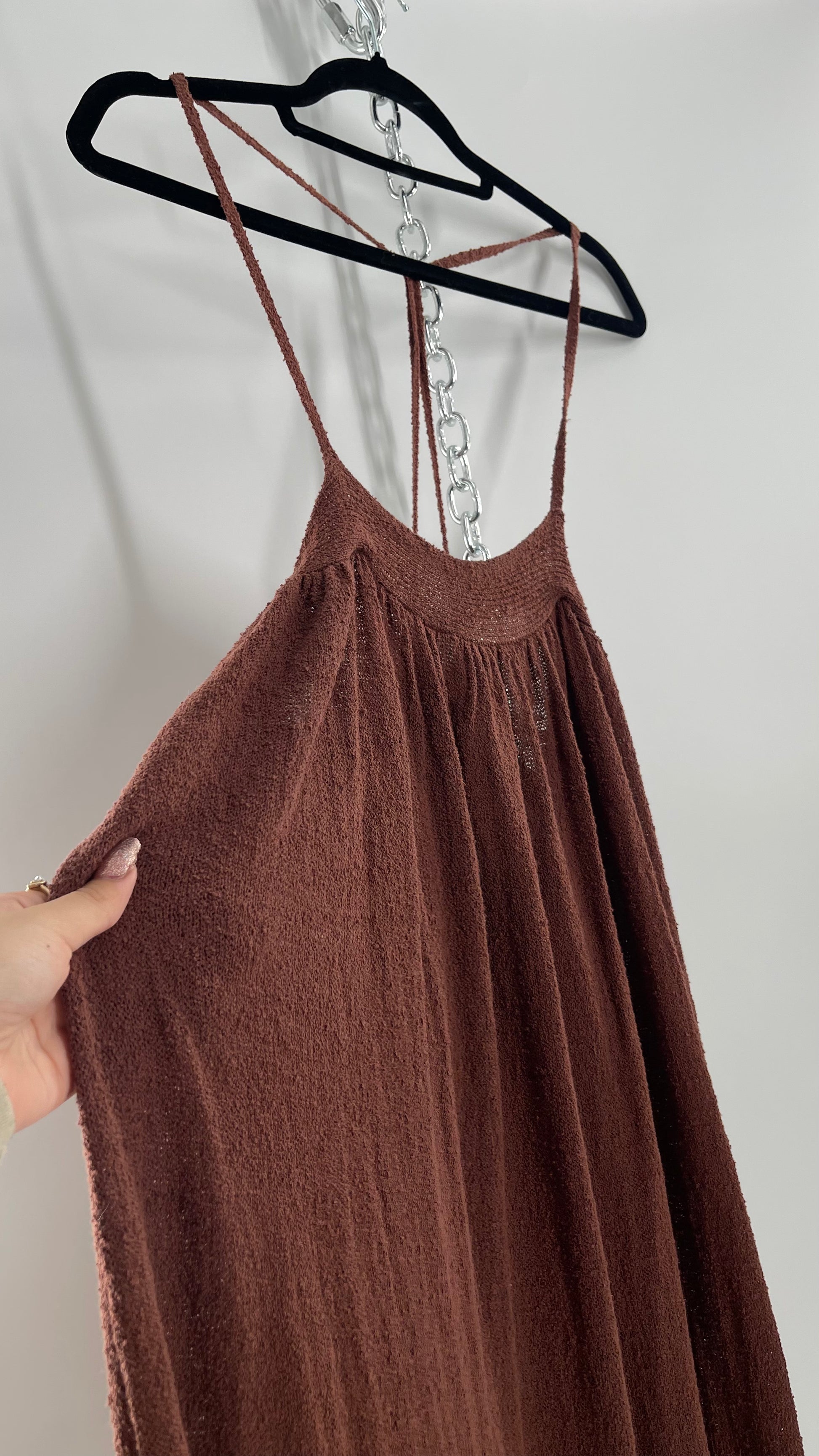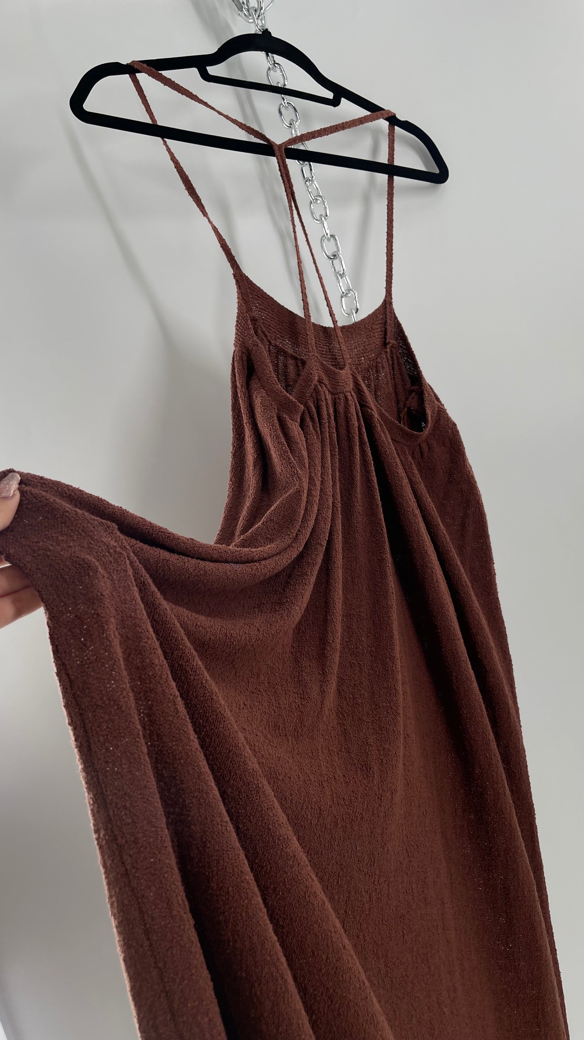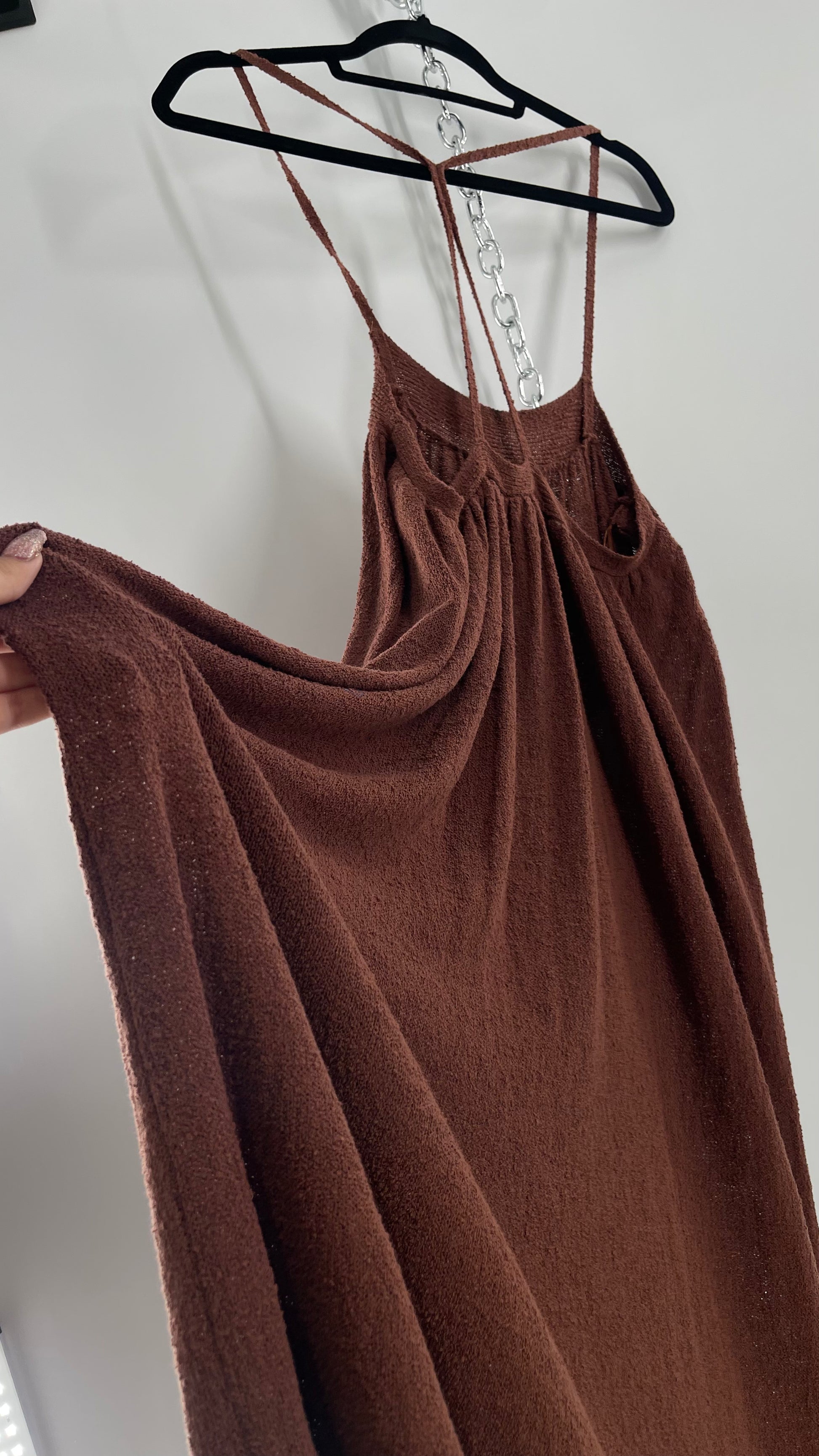 Free People Slinky Textured Brown Knit Full Length Dress (Small)