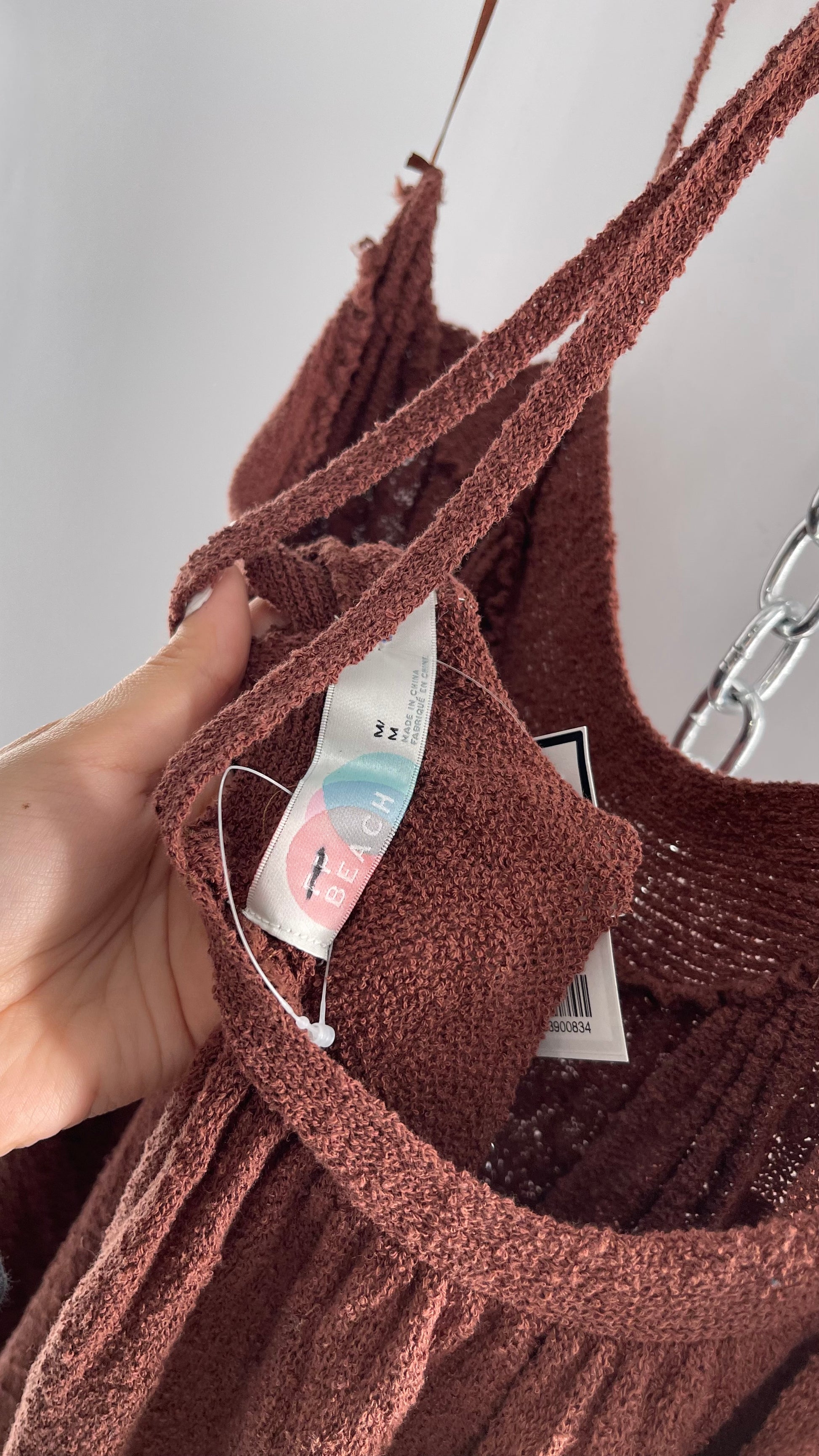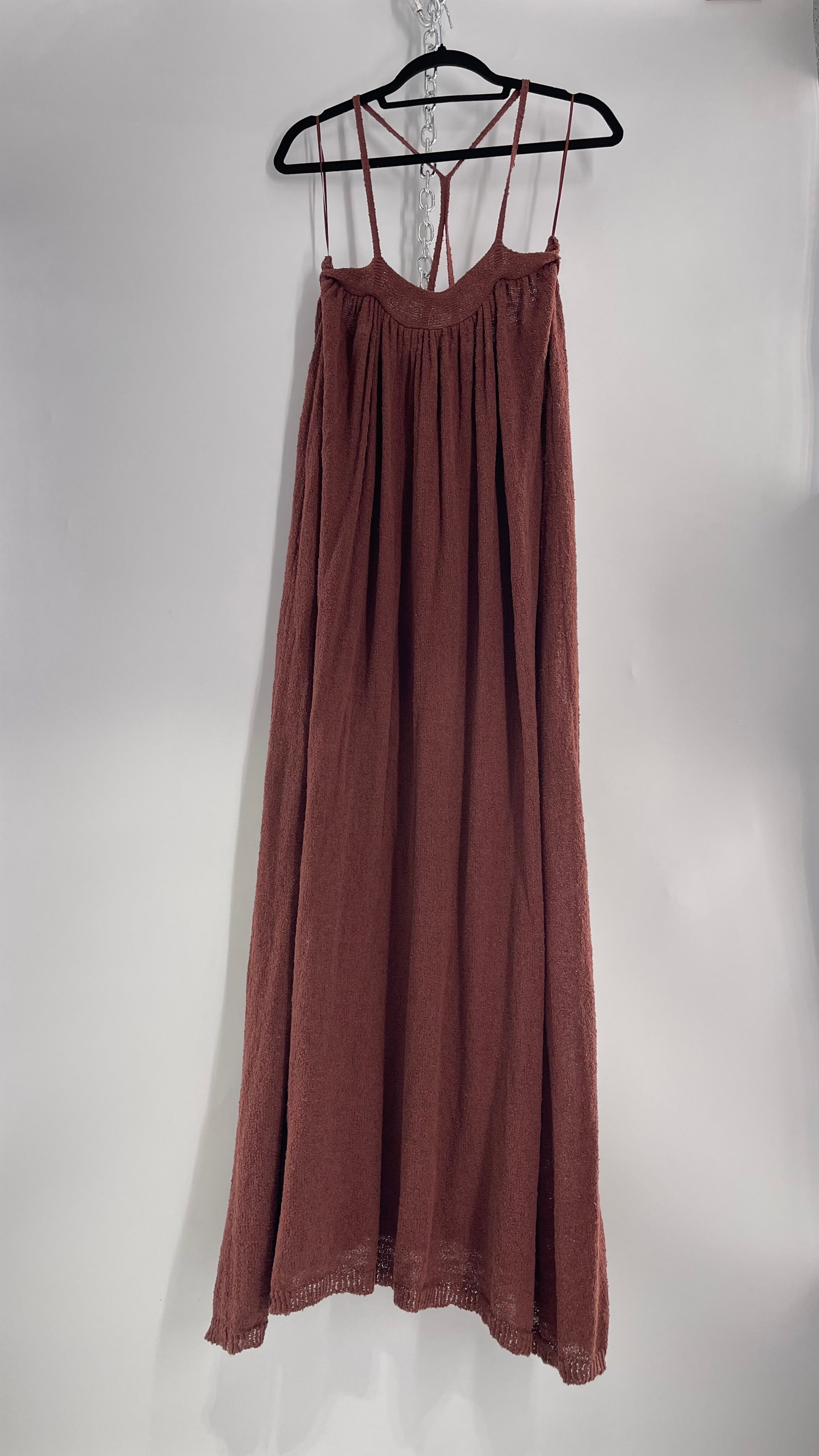 Free People Under the Stars Textured Brown Heavy Knit Maxi Dress BEACH