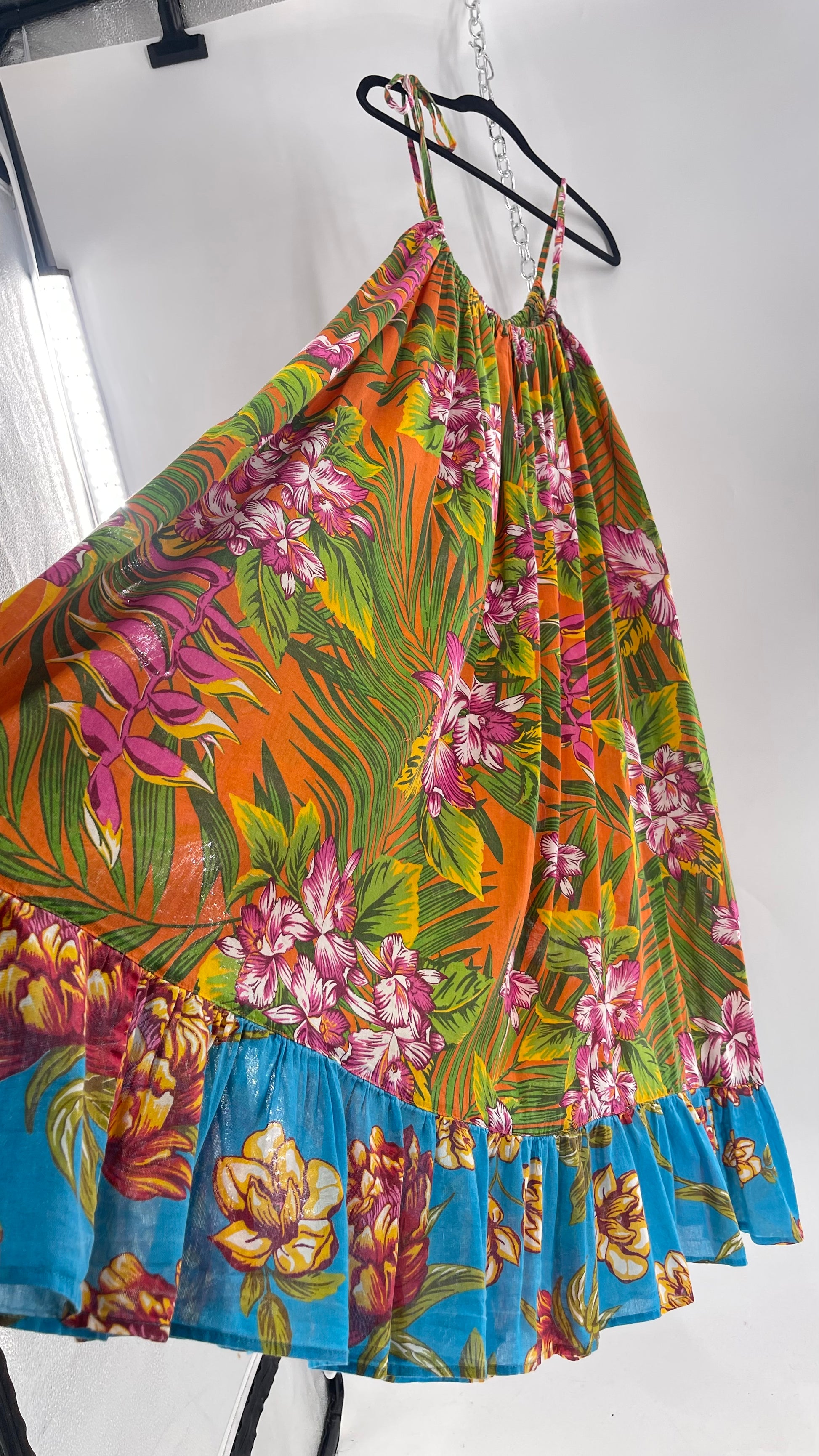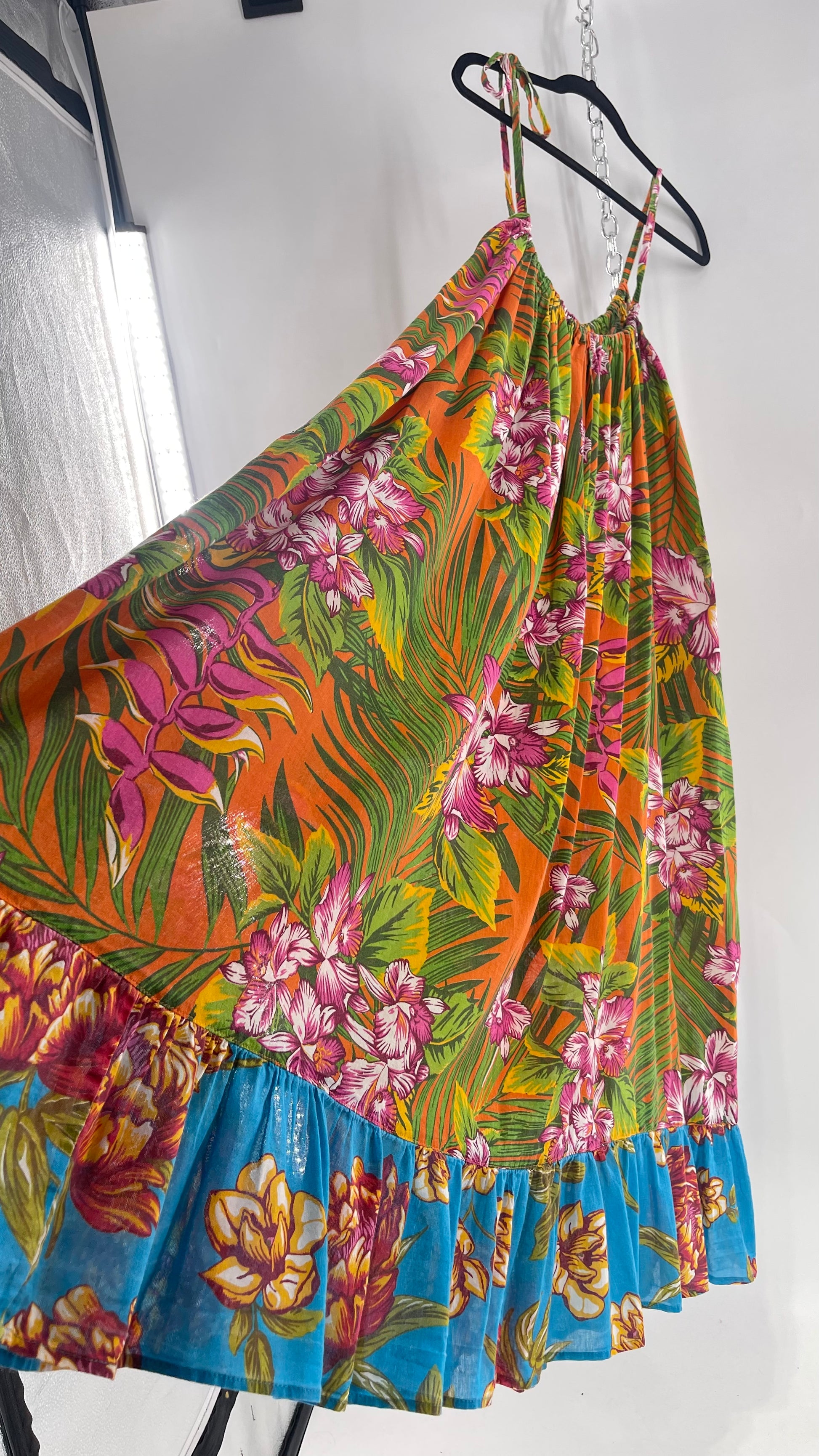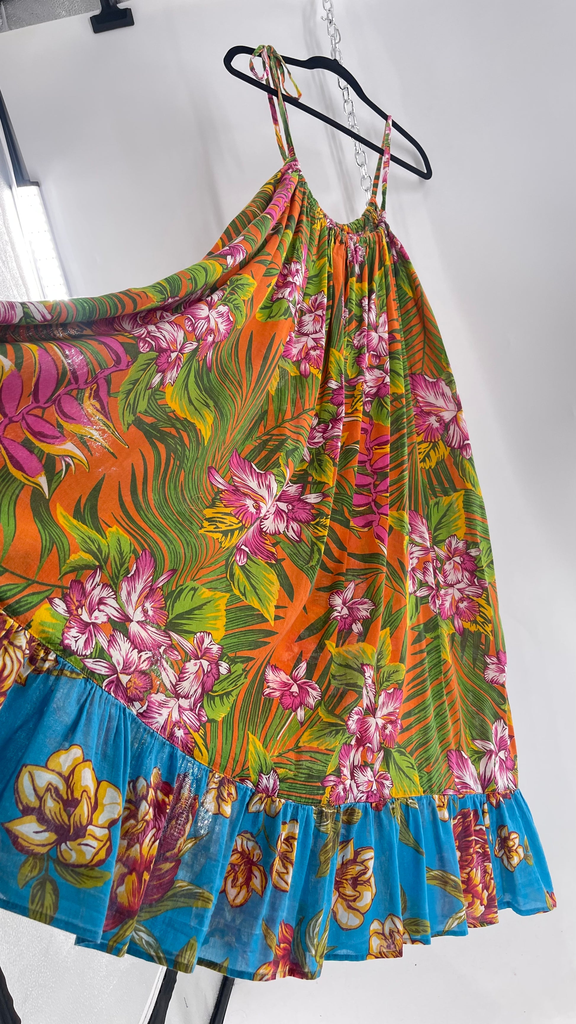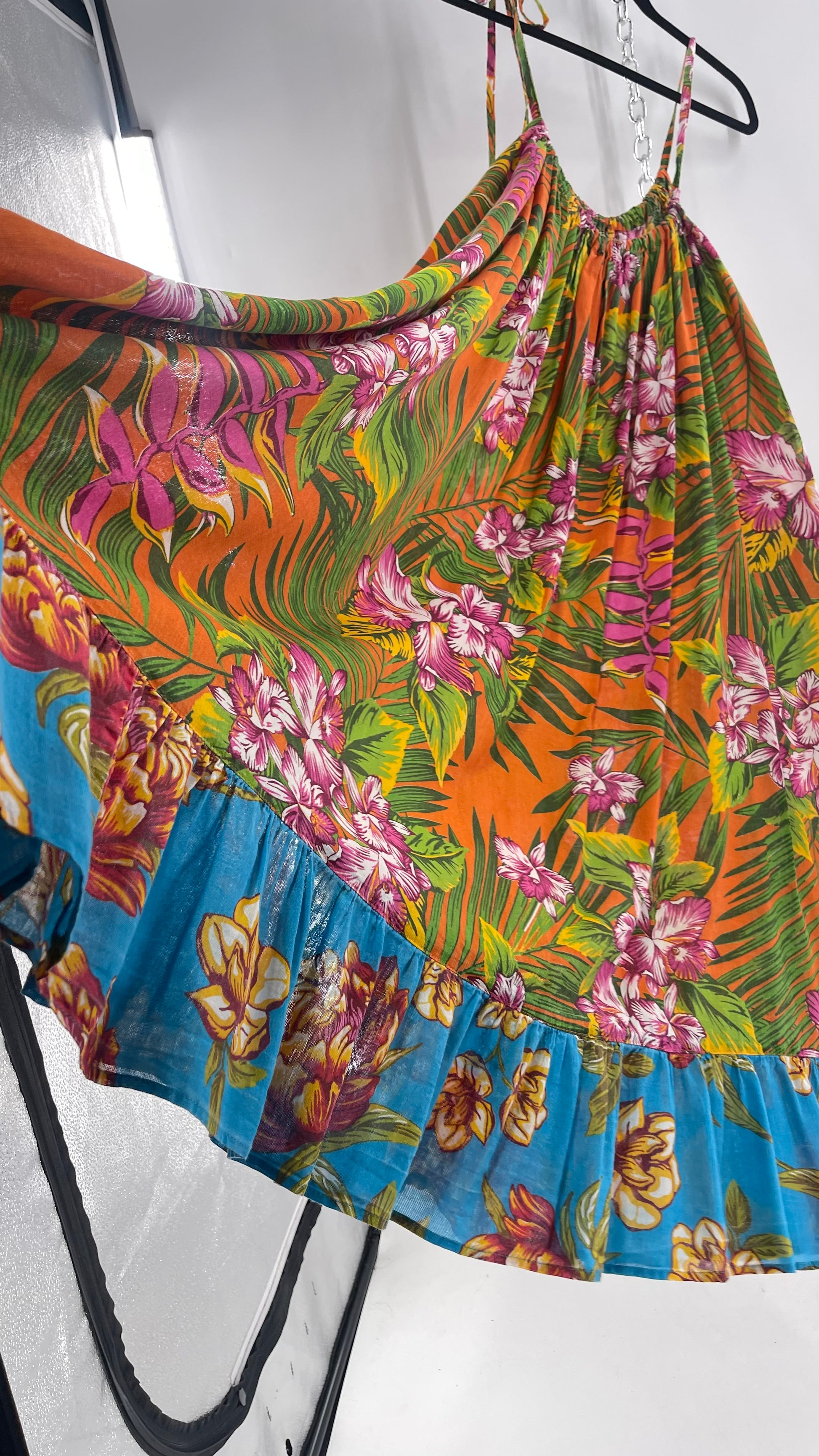 Handemade Brazilian Color Blocked Orange/Blue Floral Maxi (One Size)