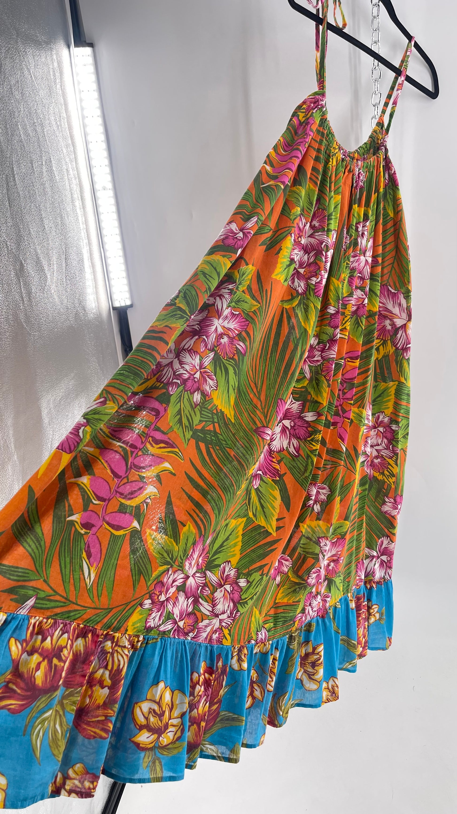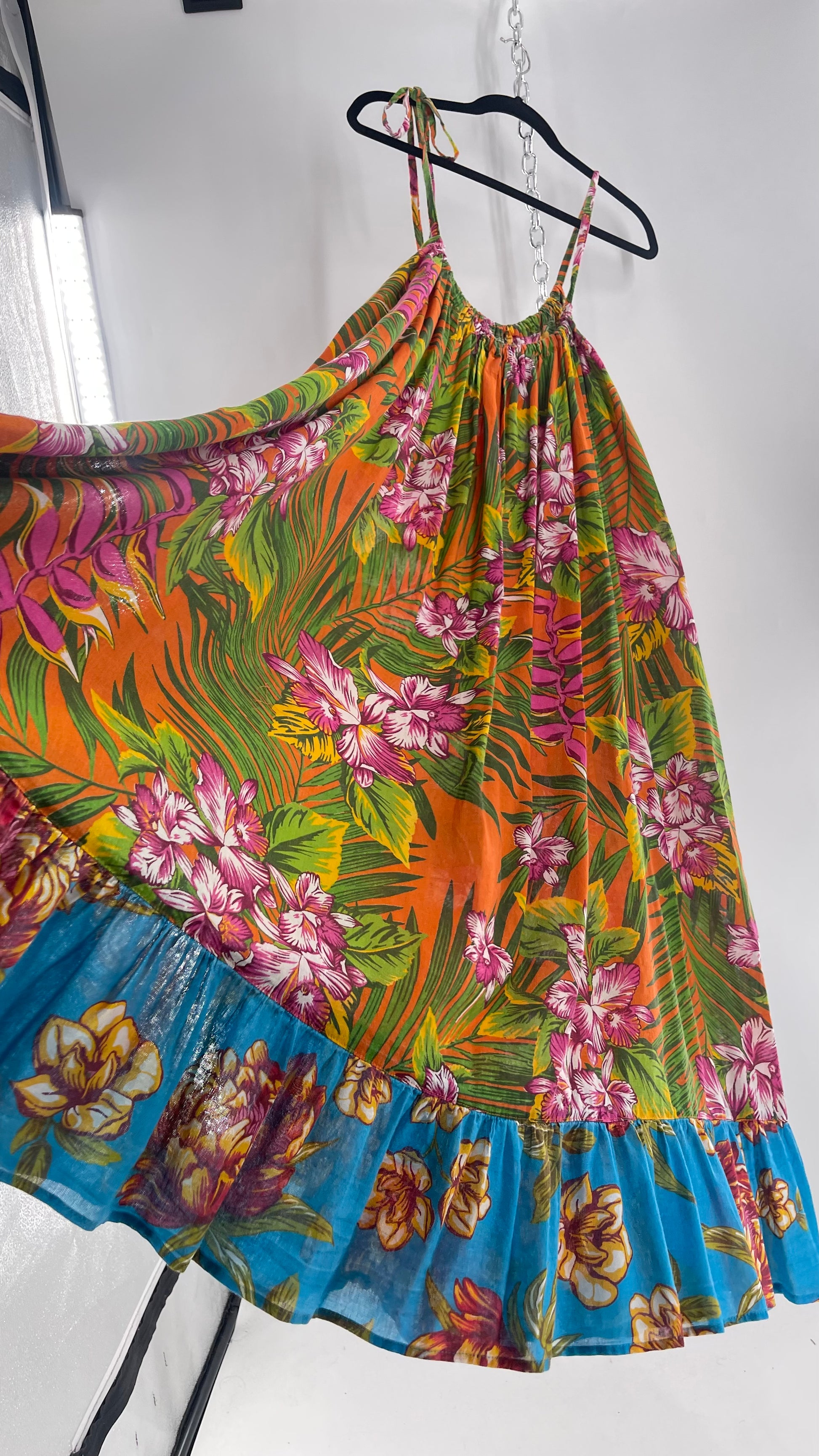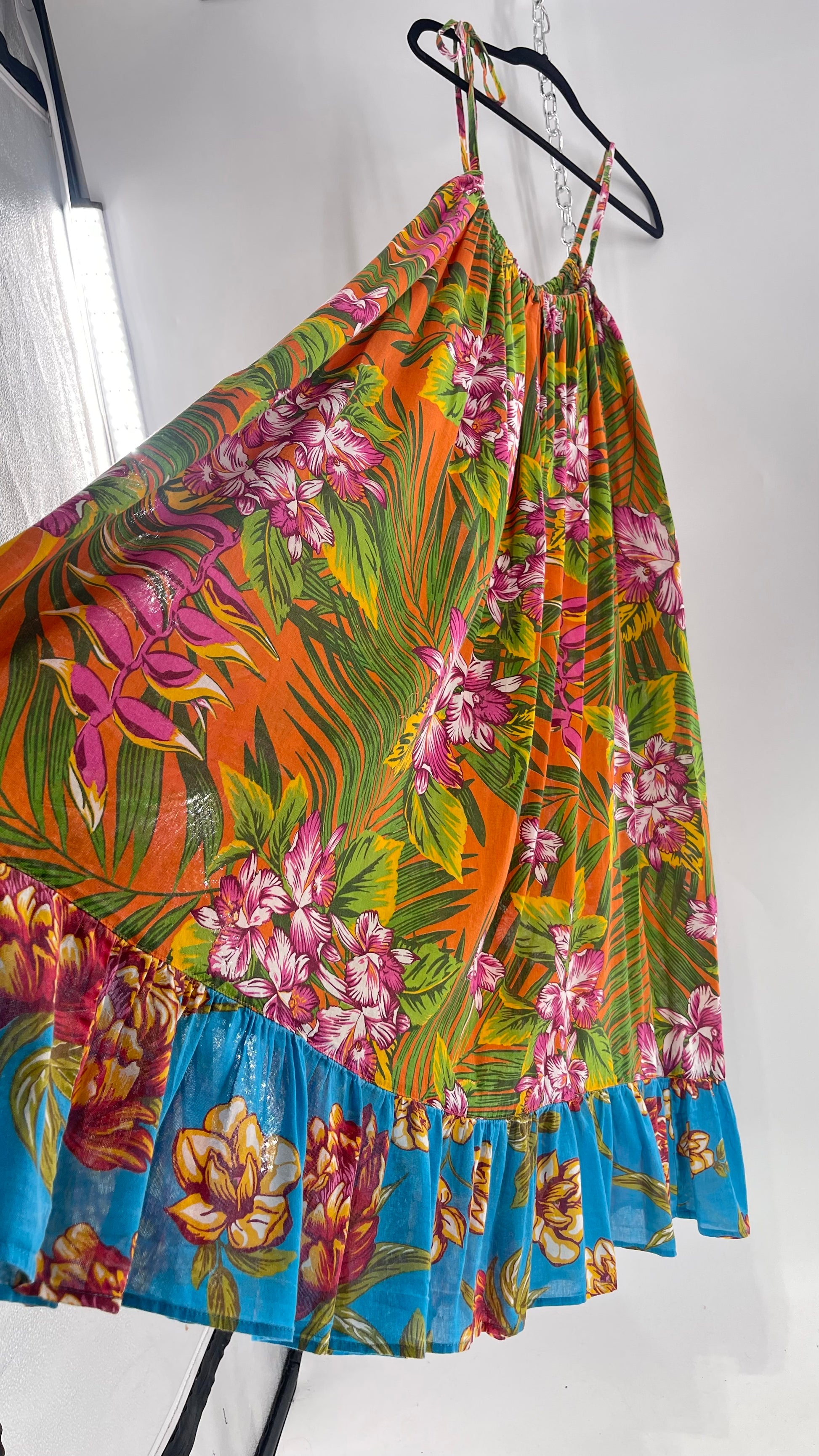Handemade Brazilian Color Blocked Orange/Blue Floral Maxi (One Size)