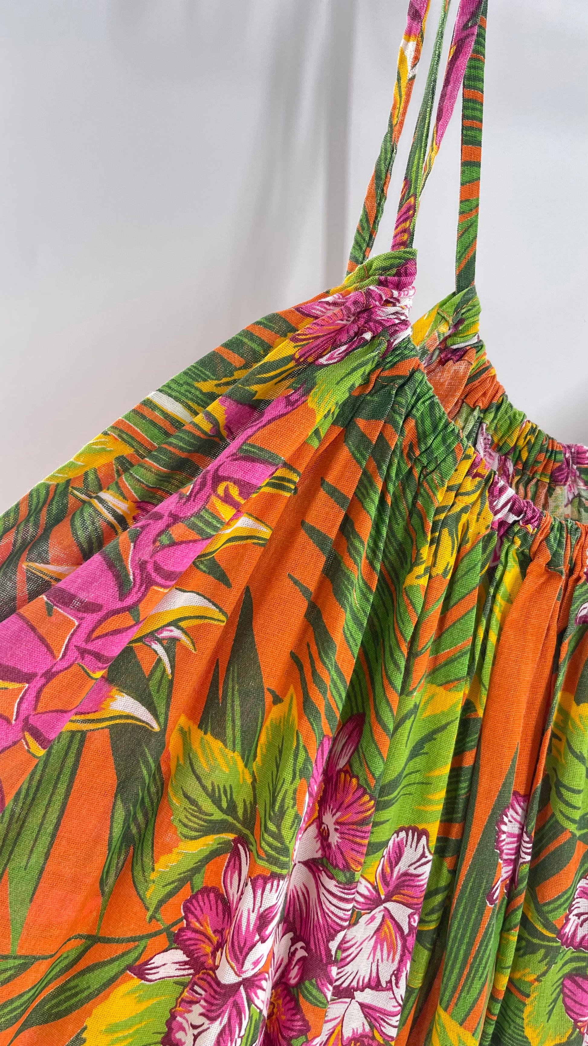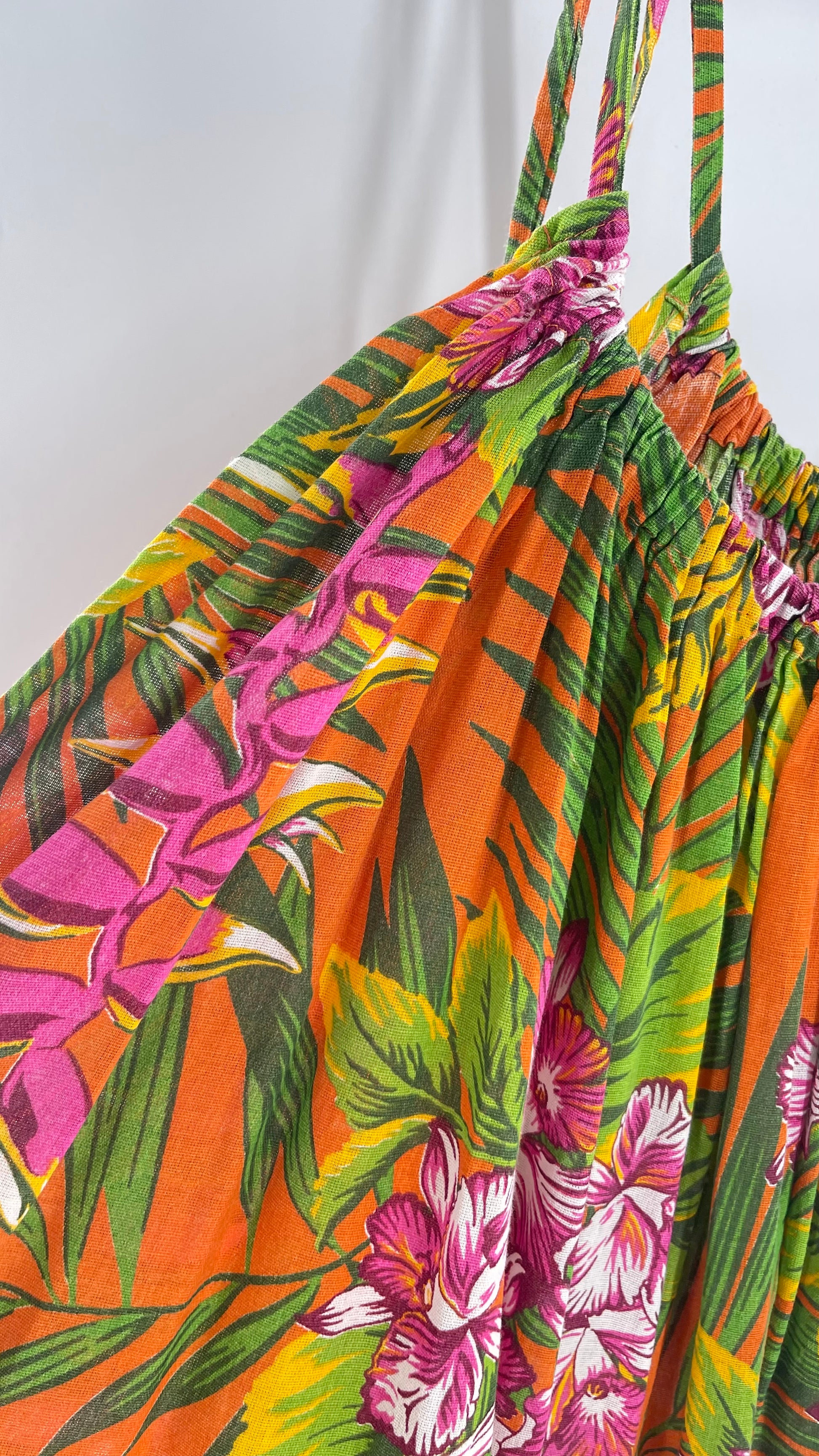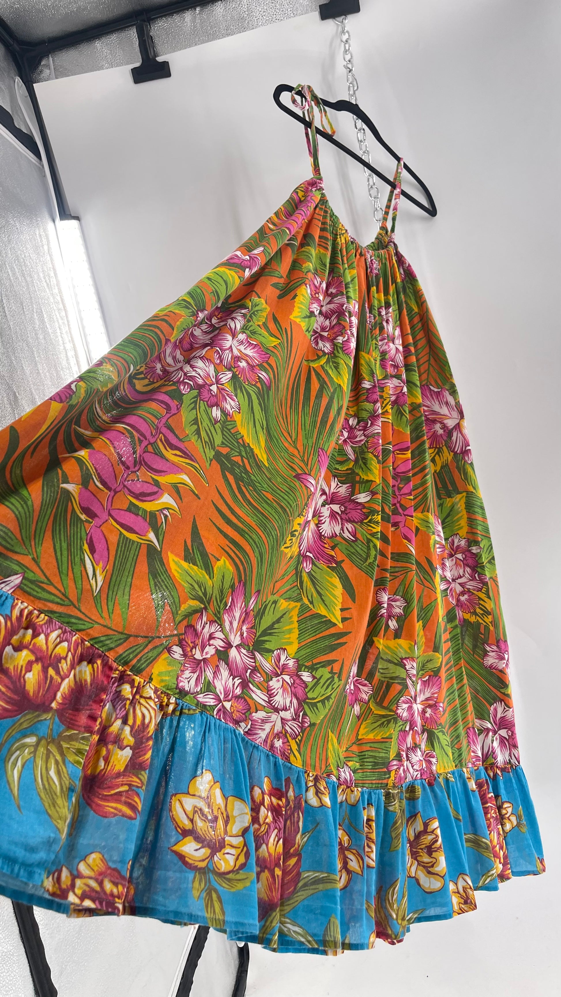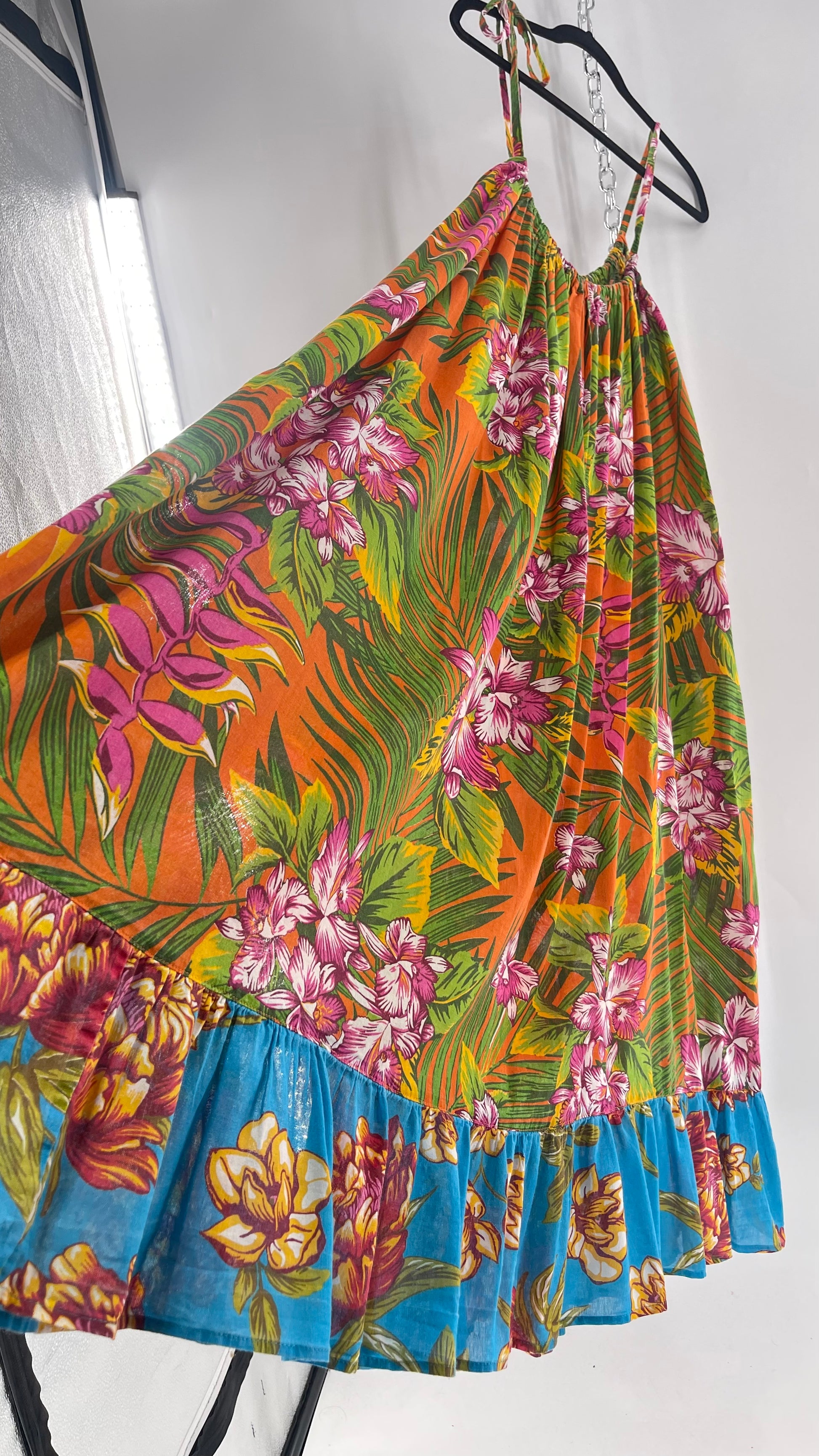 Handemade Brazilian Color Blocked Orange/Blue Floral Maxi (One Size)