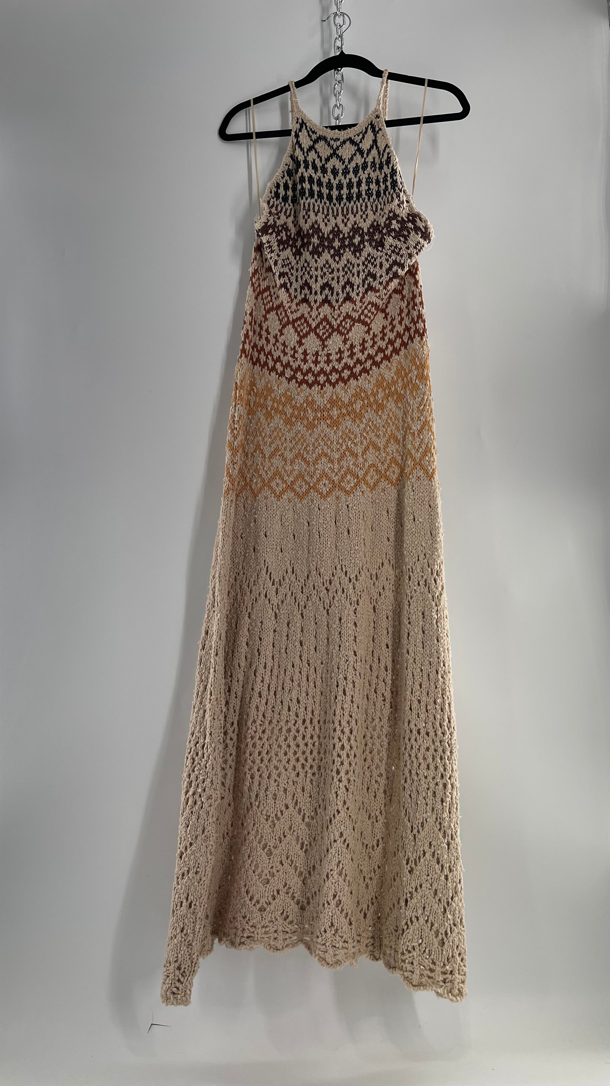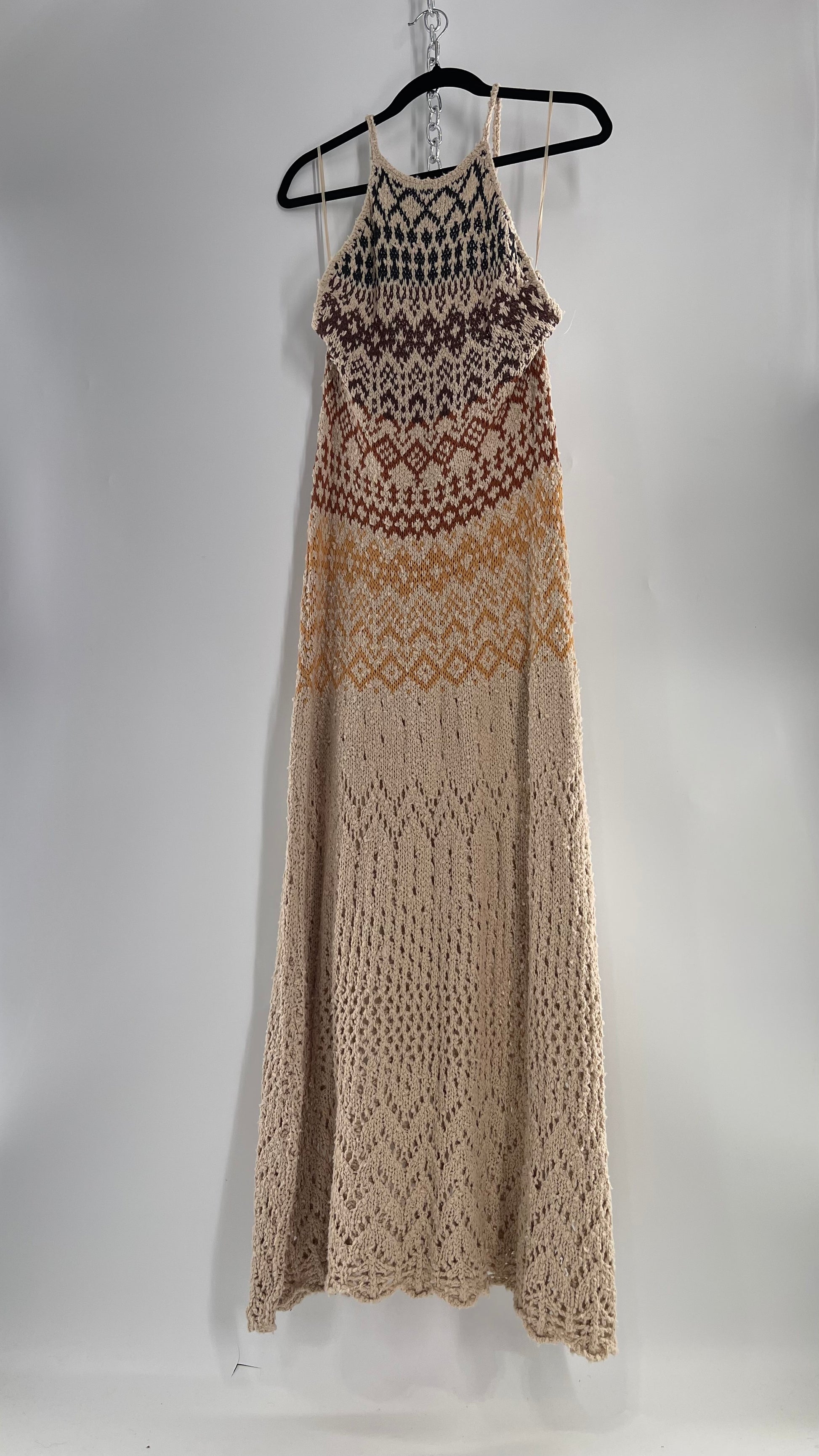Free People Beige Ikat Oasis Knit Halter Maxi Dress (Small)