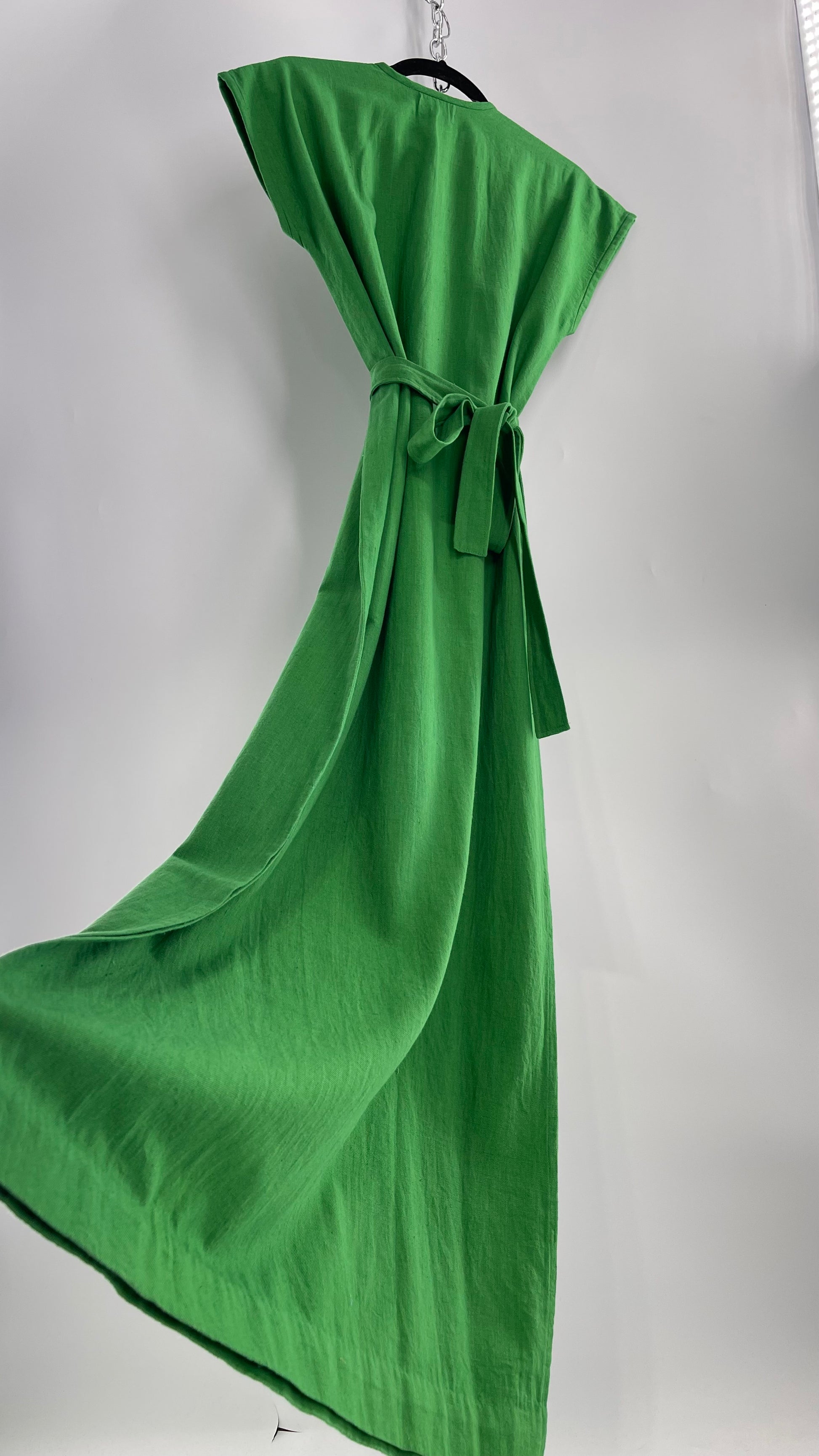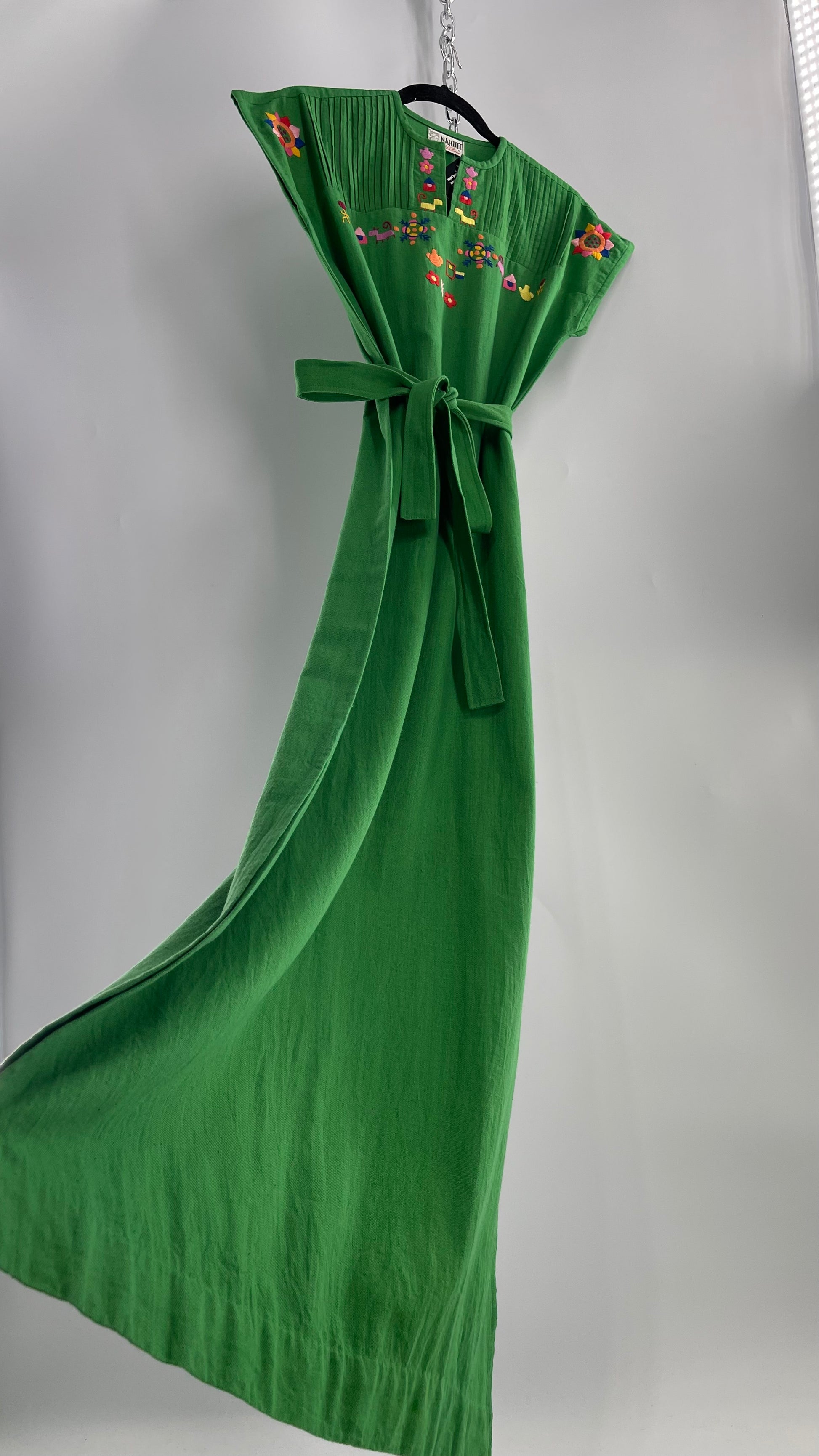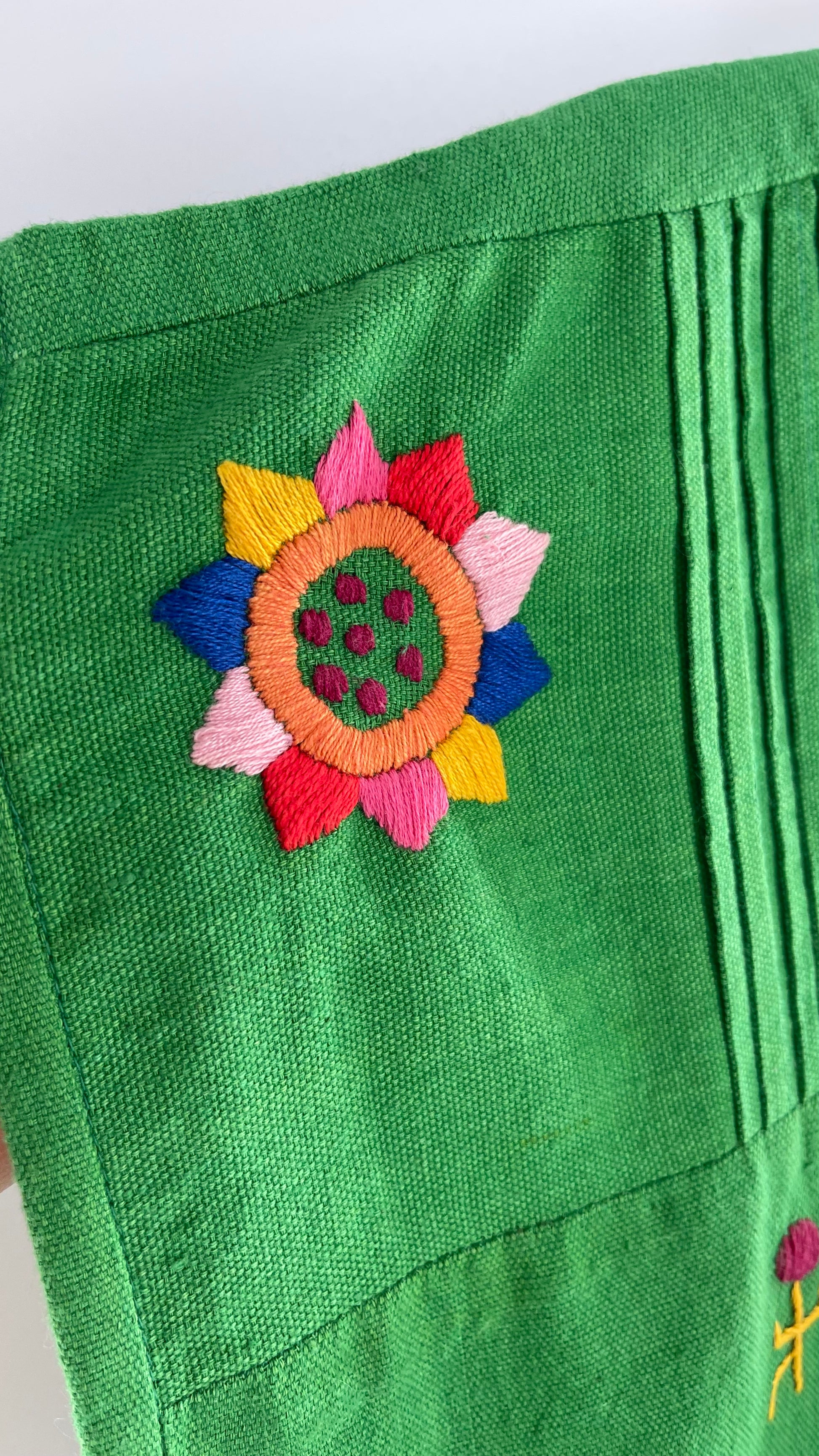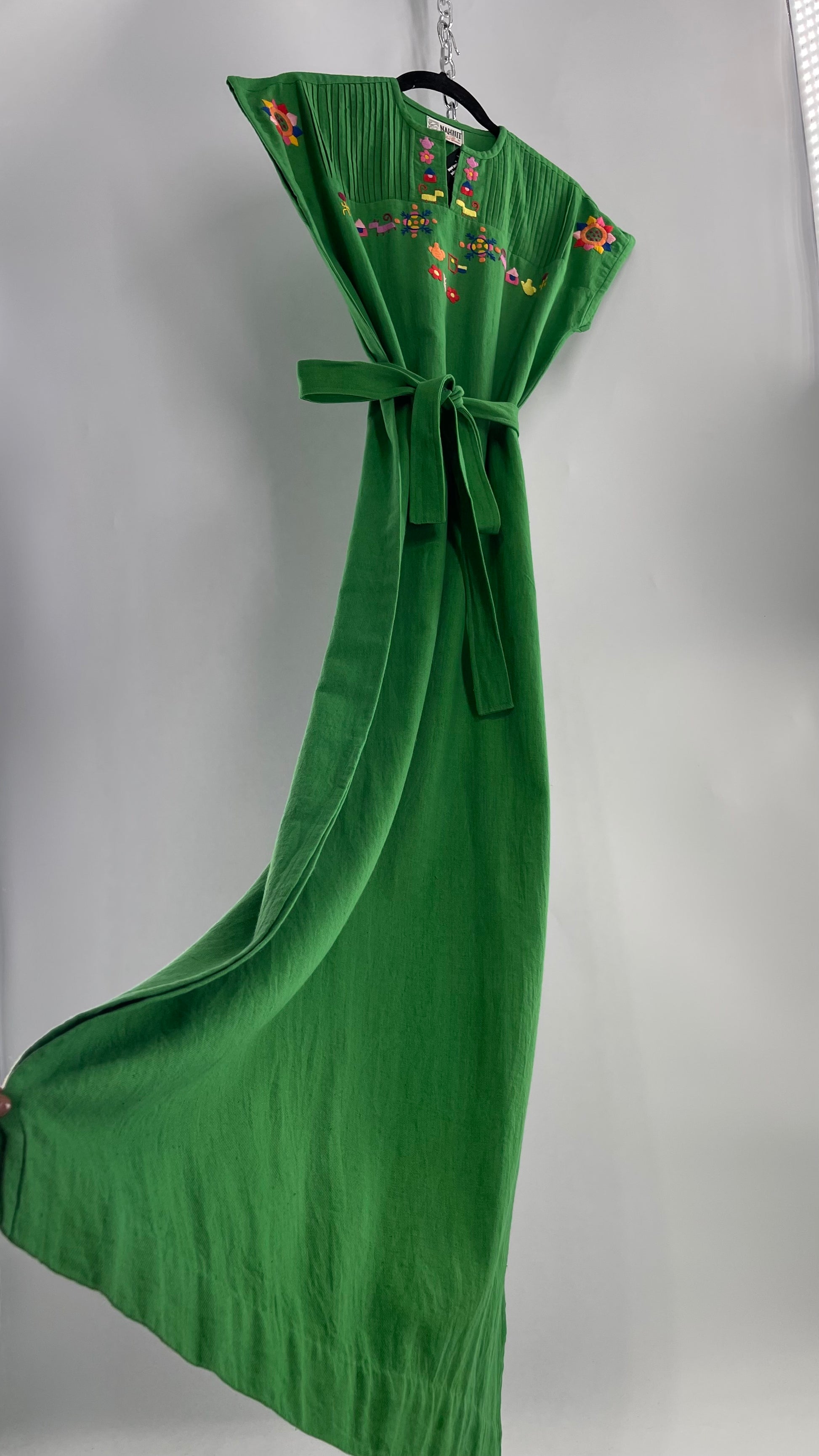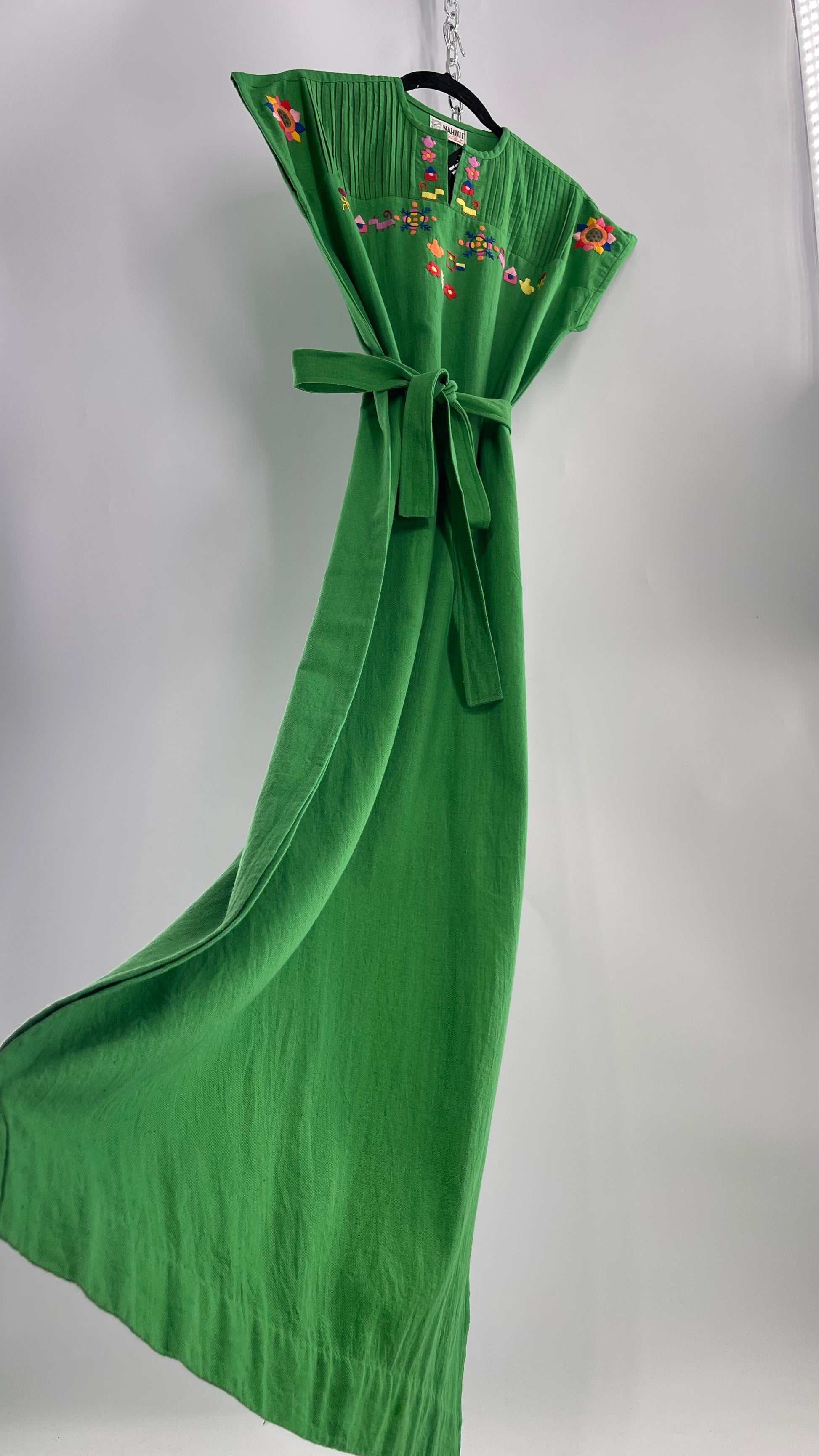 Vintage 1970s NAHUIT 100% Cotton, Hippy/Bohemian Kelly Green, Embroidered Tunic Dress Made In El Salvador (Small)