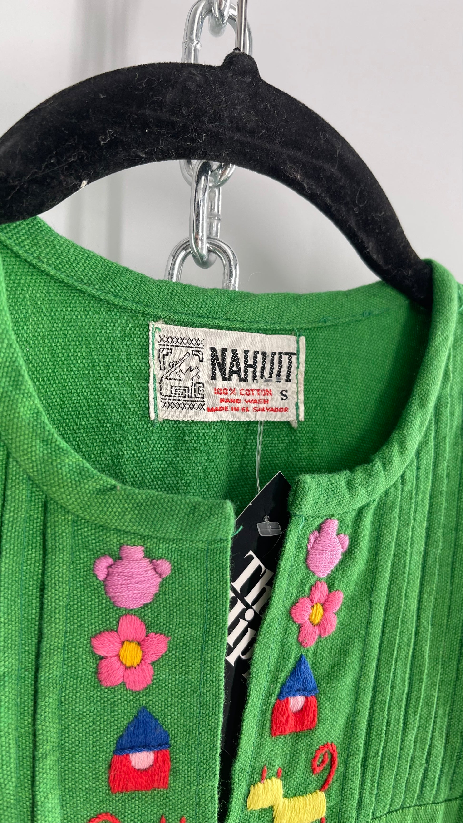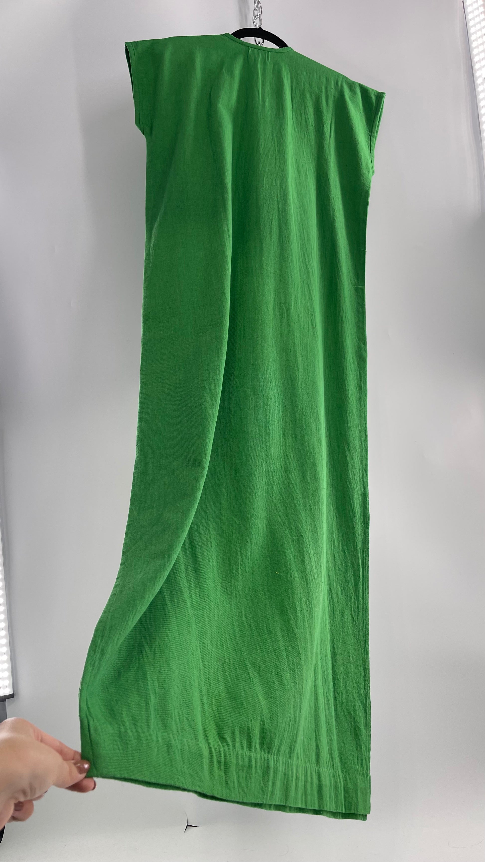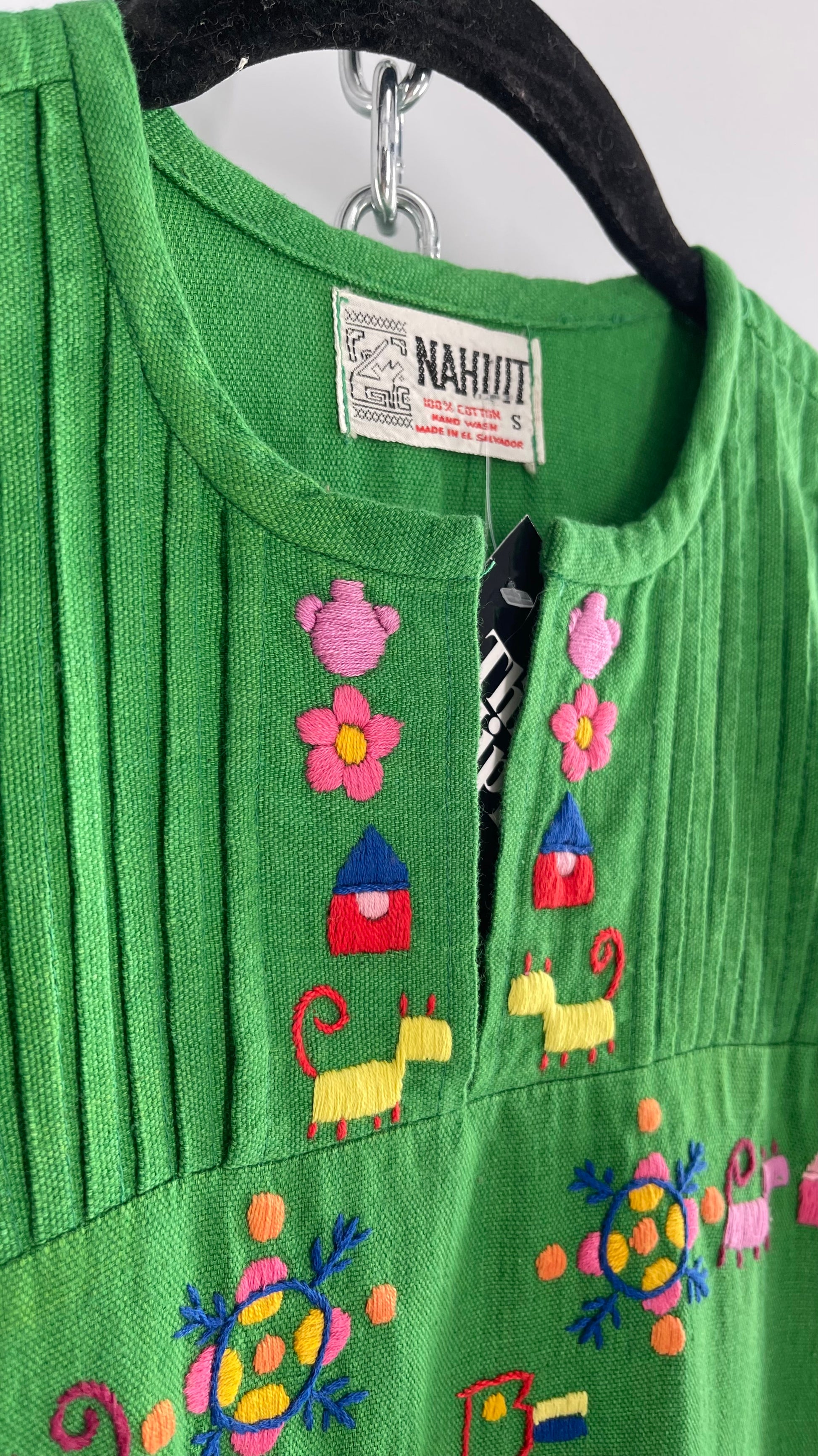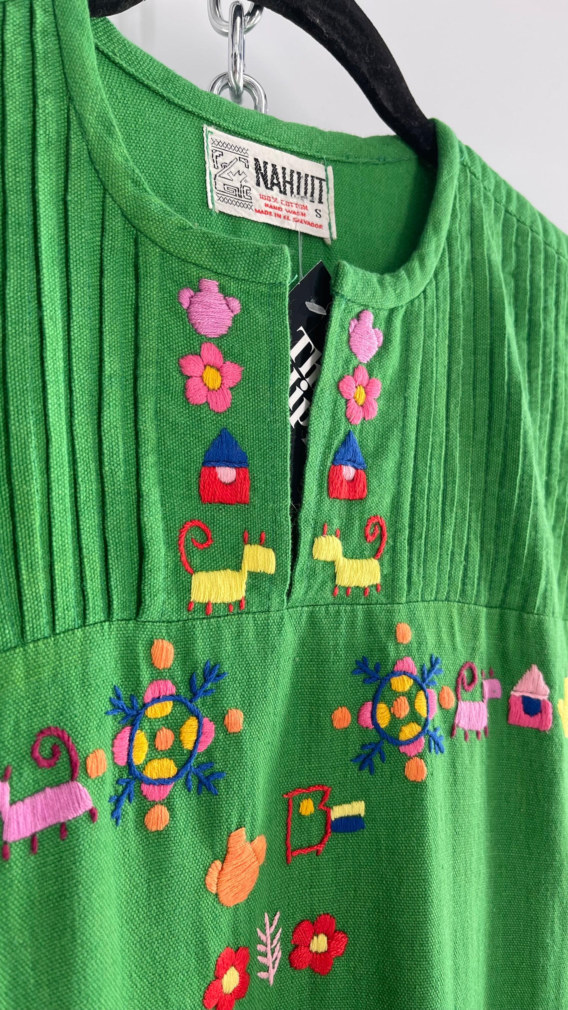 Vintage 1970s NAHUIT 100% Cotton, Kelly Green, Embroidered Tunic Dress Imported from El Salvador (Small)