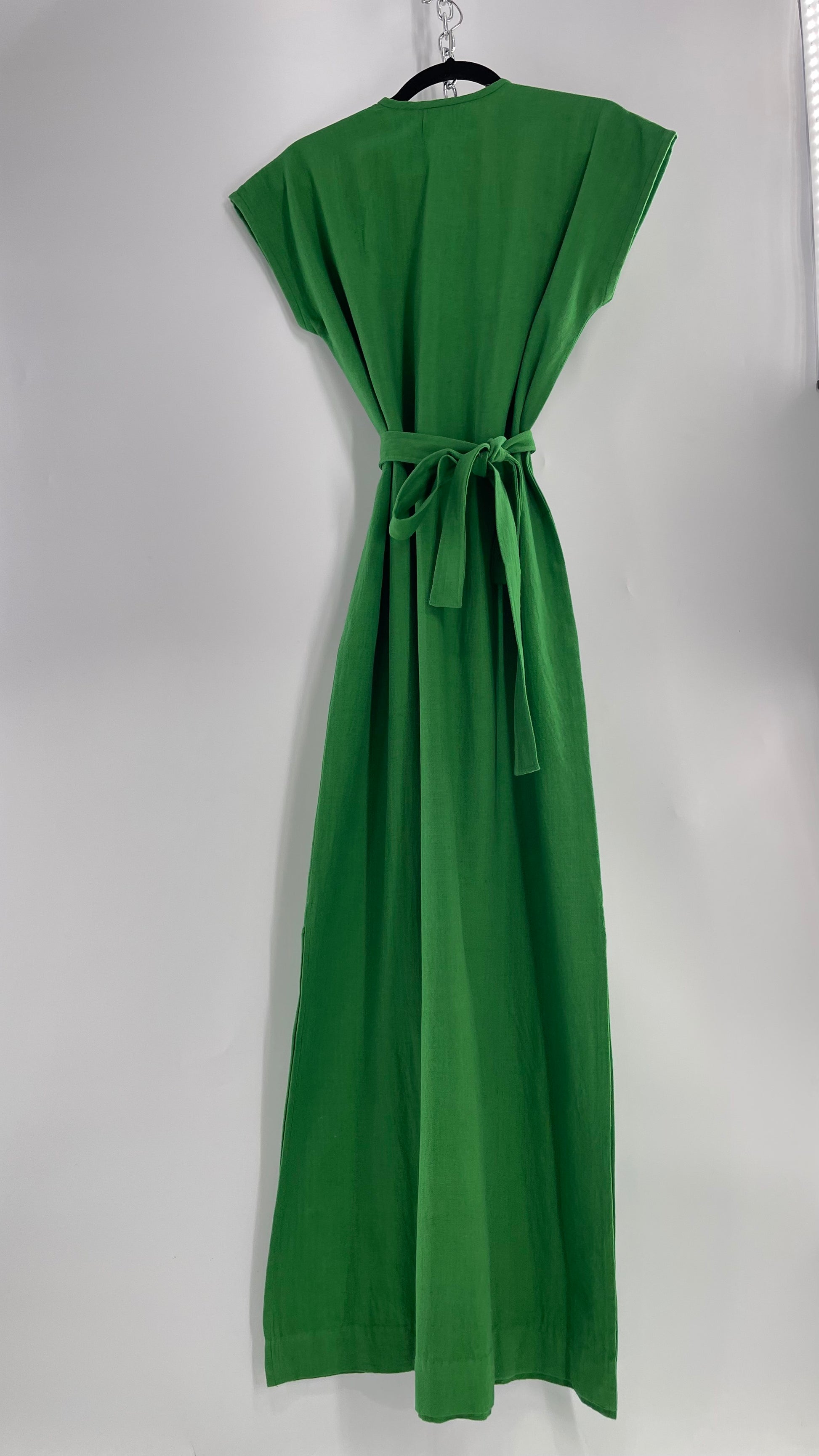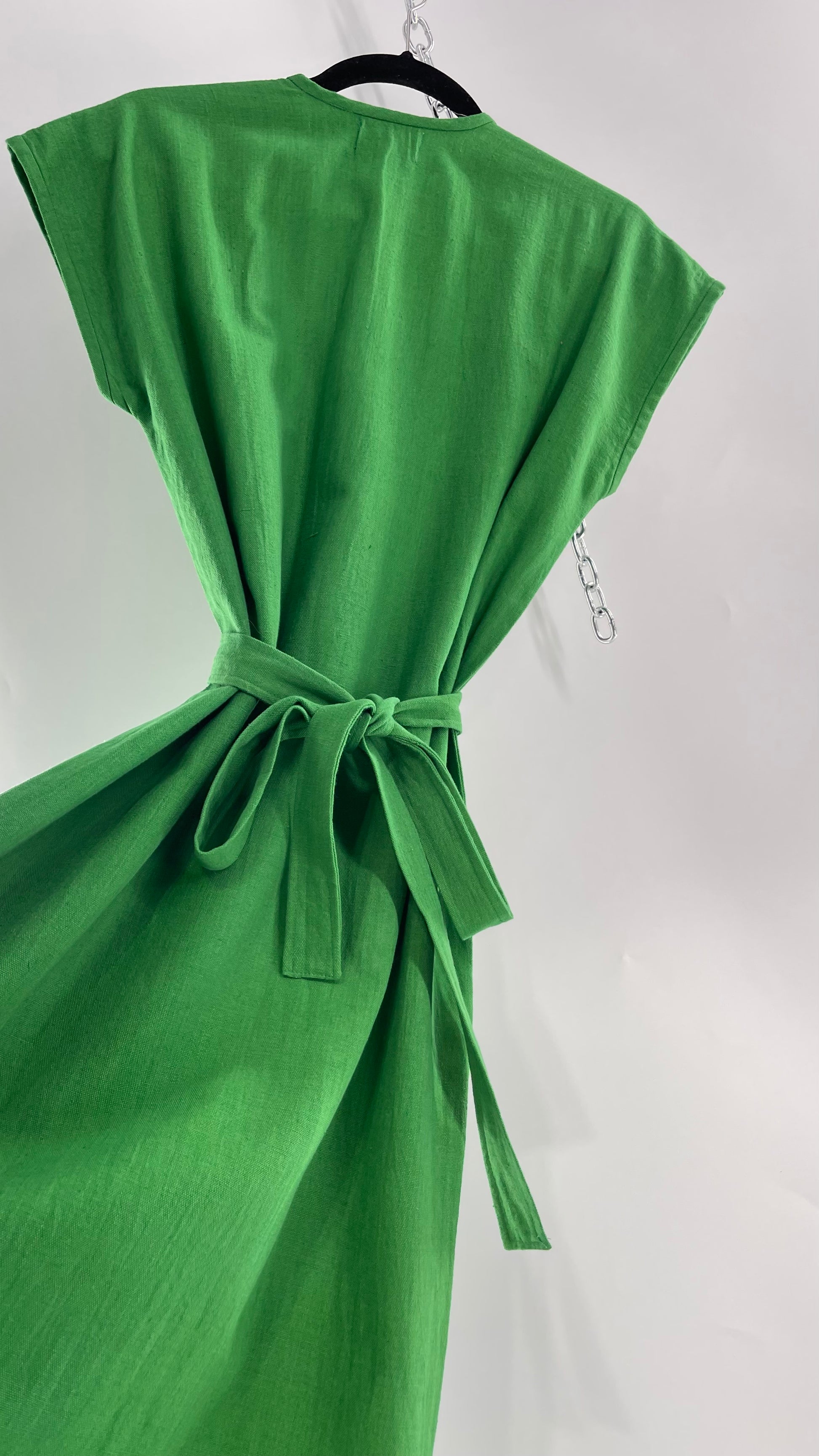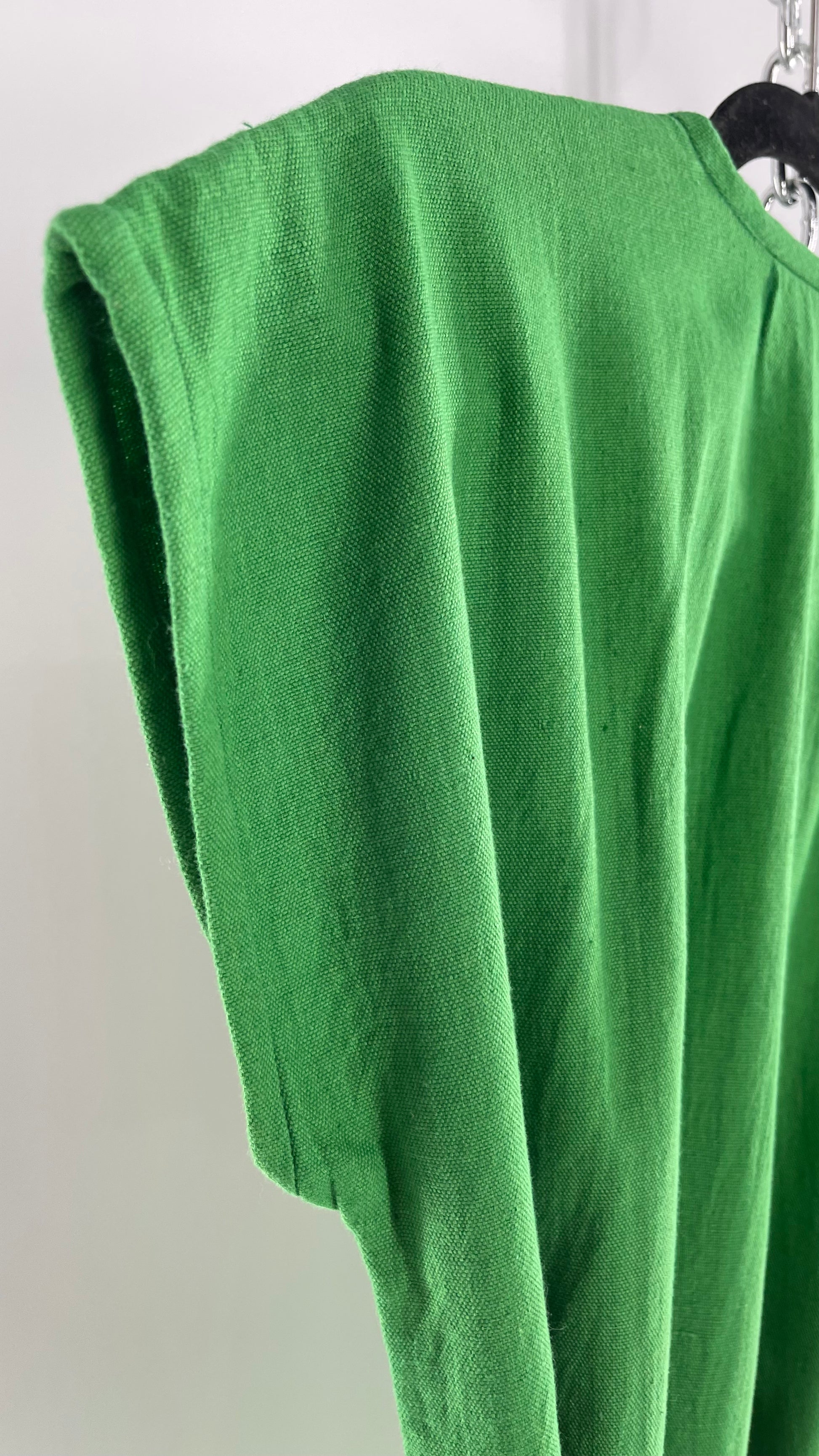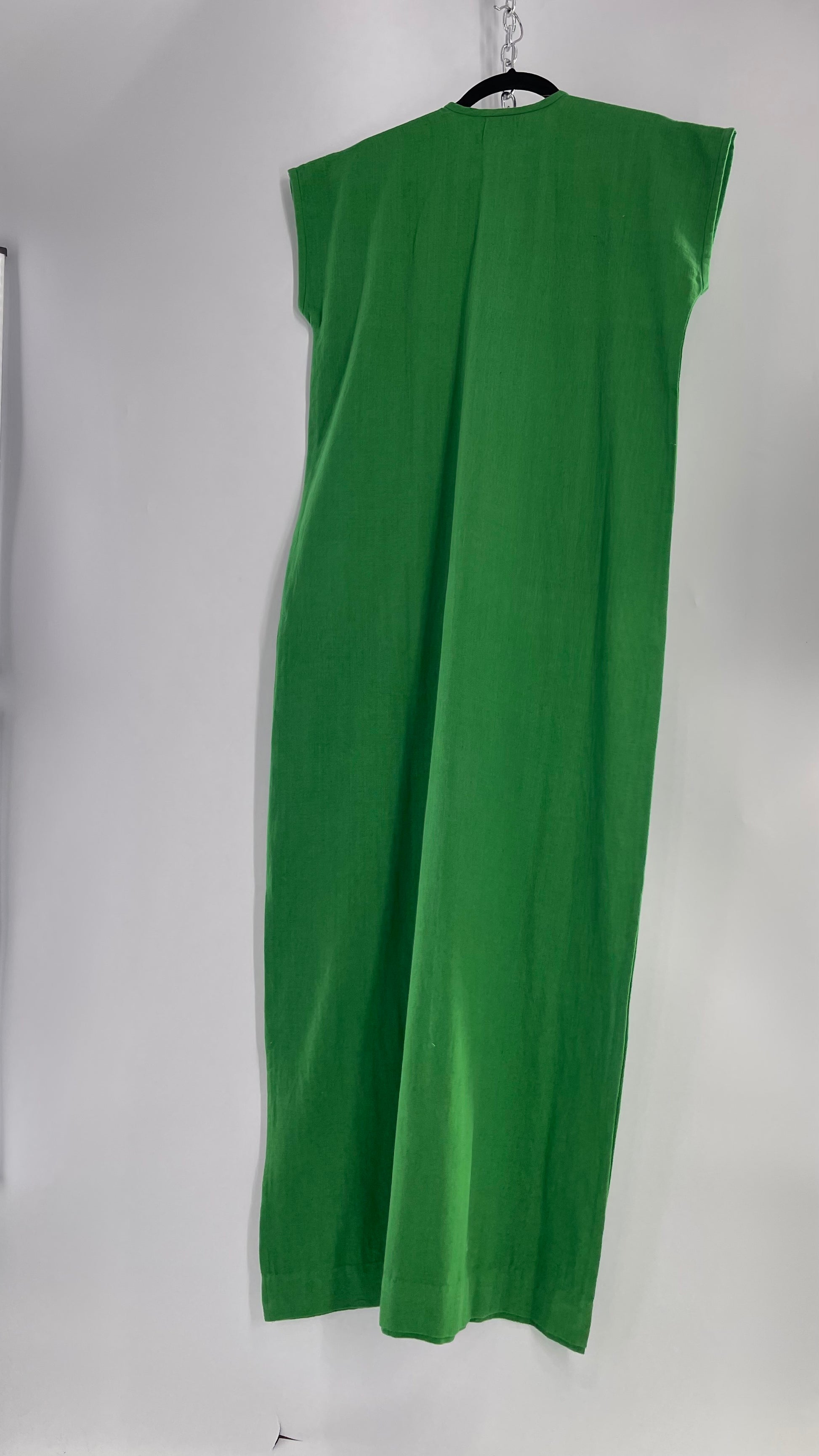 Vintage 1970s NAHUIT 100% Cotton, Kelly Green, Embroidered Tunic Dress Imported from El Salvador (Small)