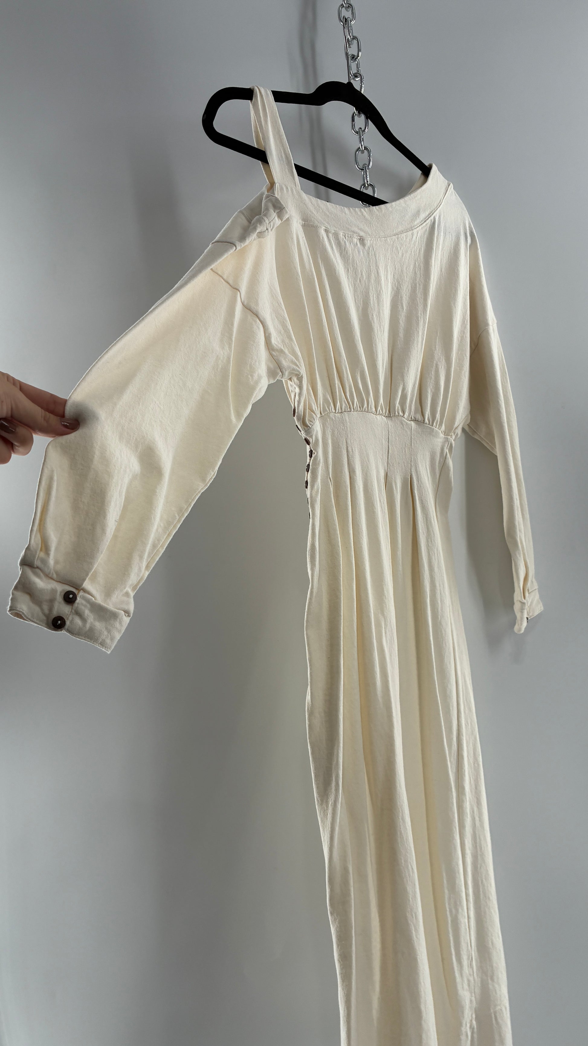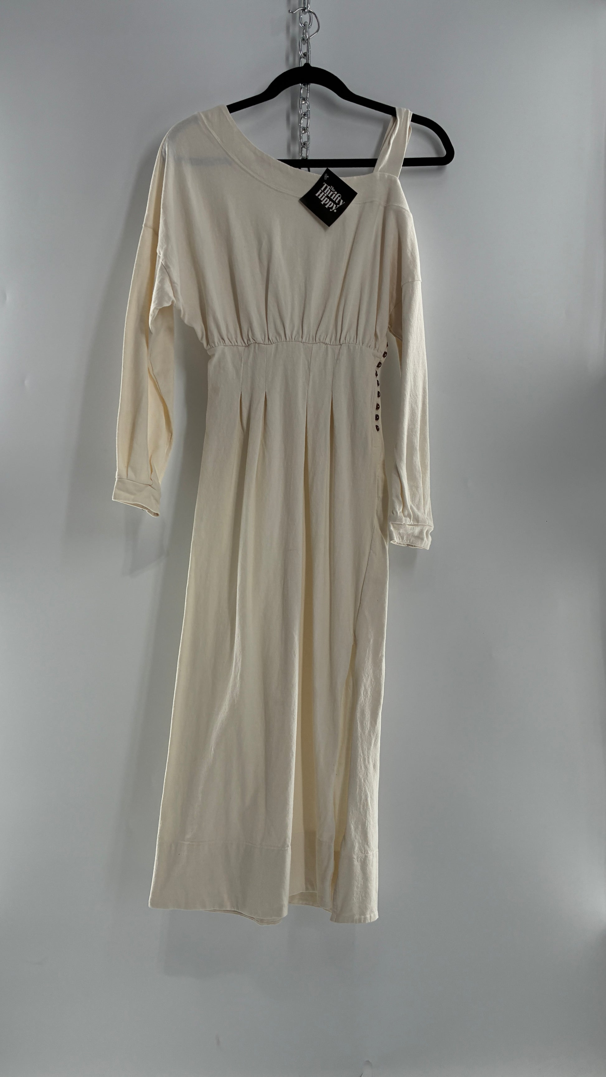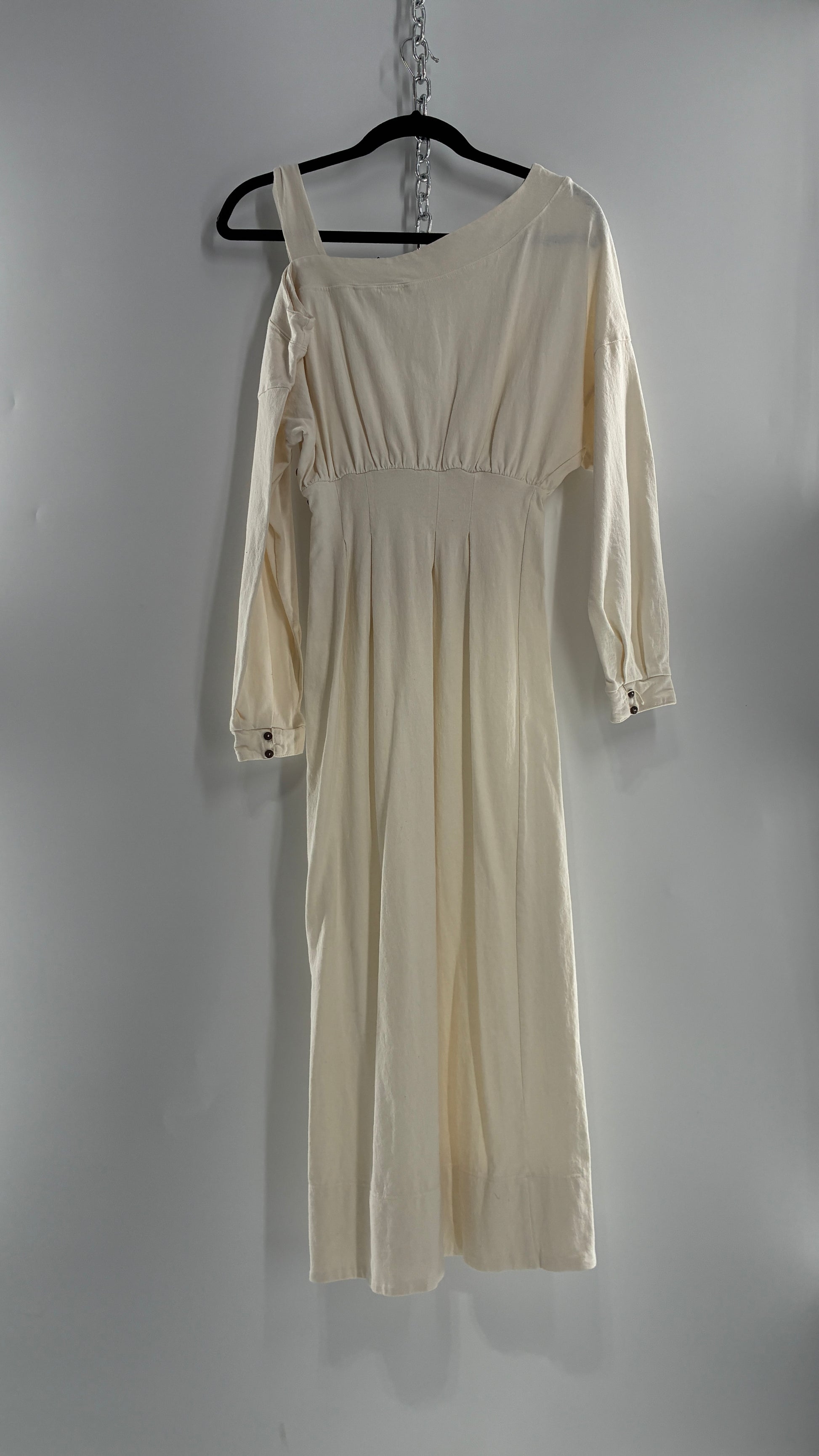 Worn -Free People Off White Long Sleeve Maxi Dress with Shoulder Strap