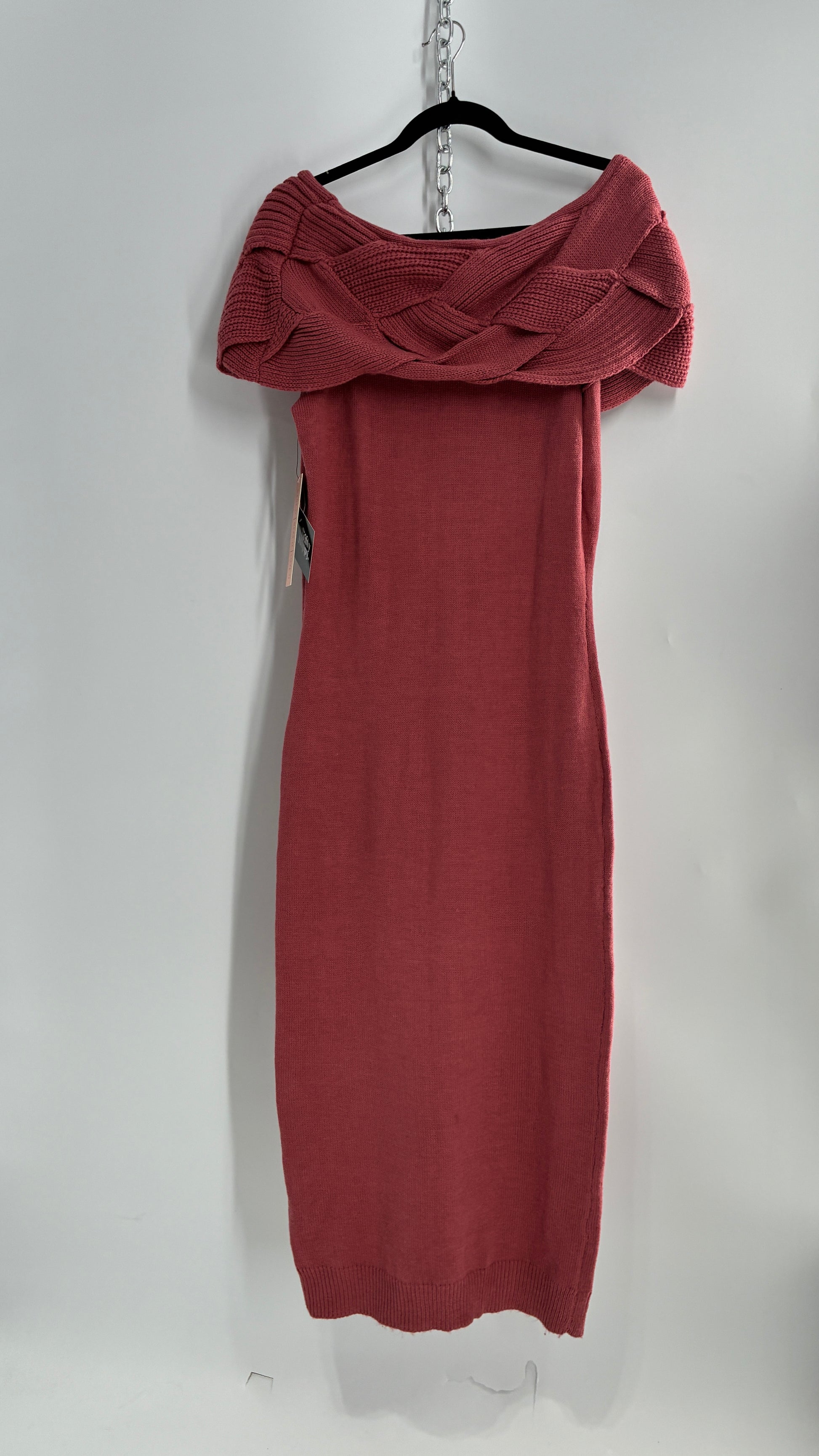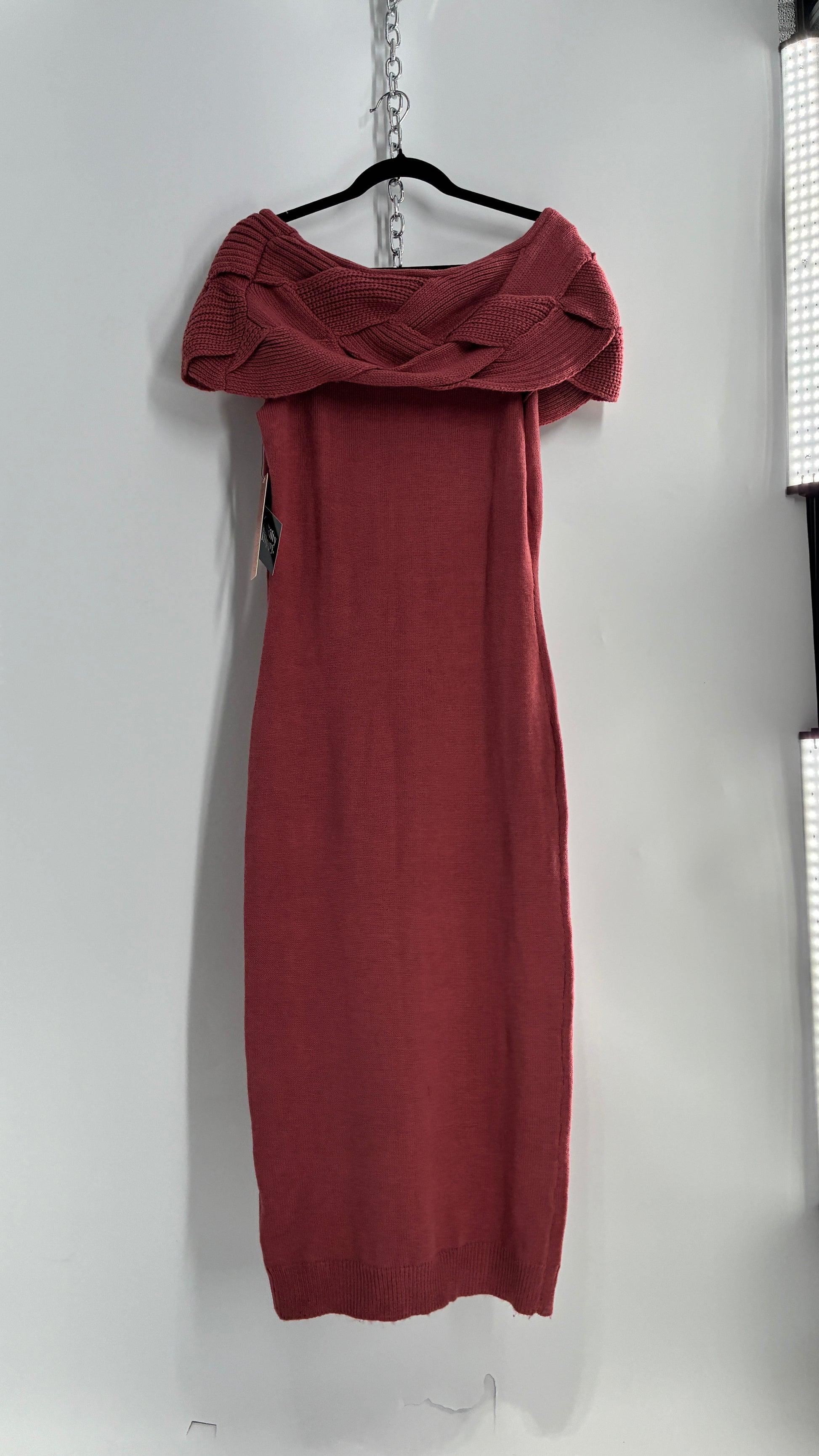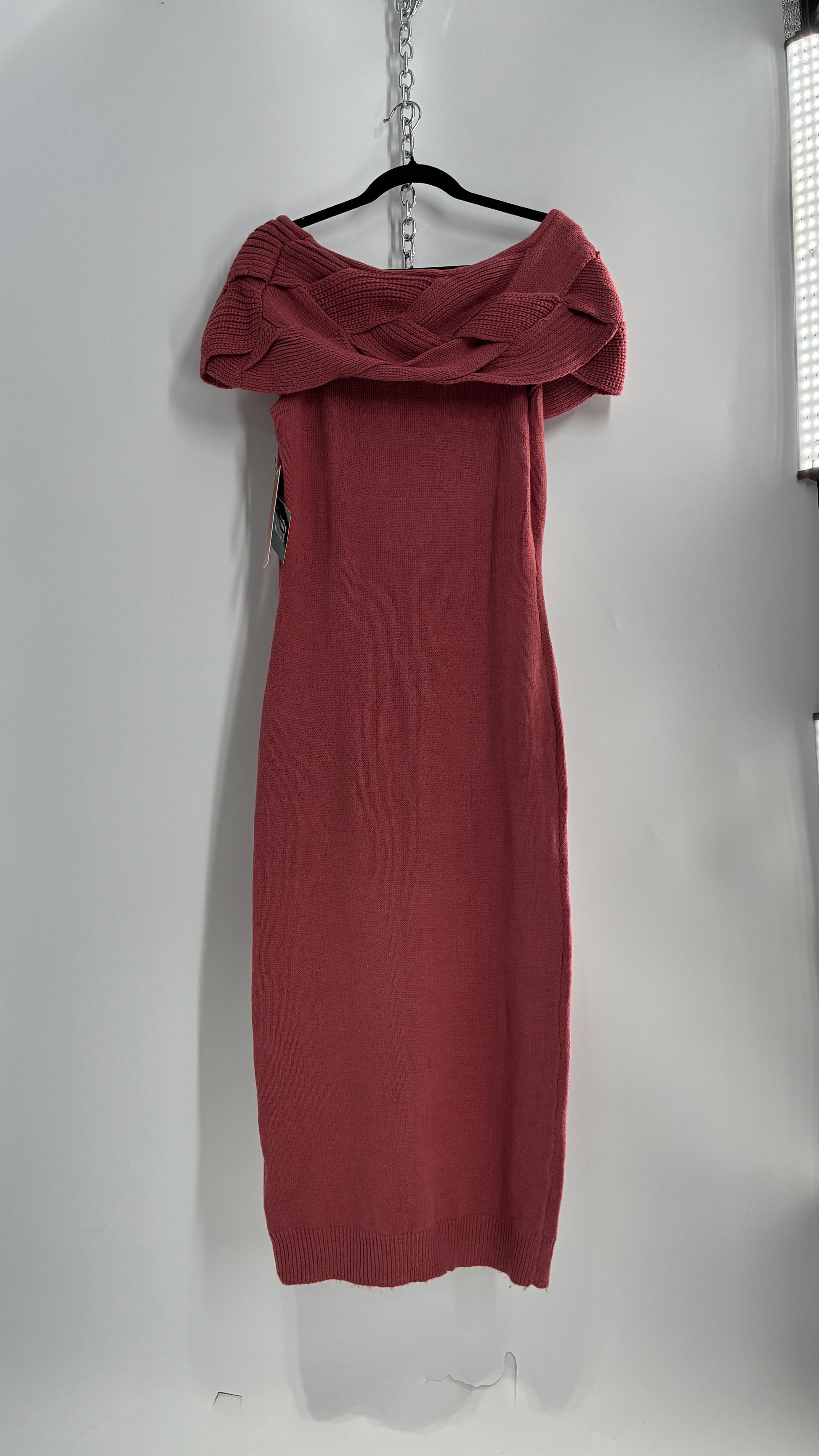 Vintage ALMOST FAMOUS Rosy Mauve Knit Dress with Woven Braided Off the Shoulder Detail and Tags Attached (Large)