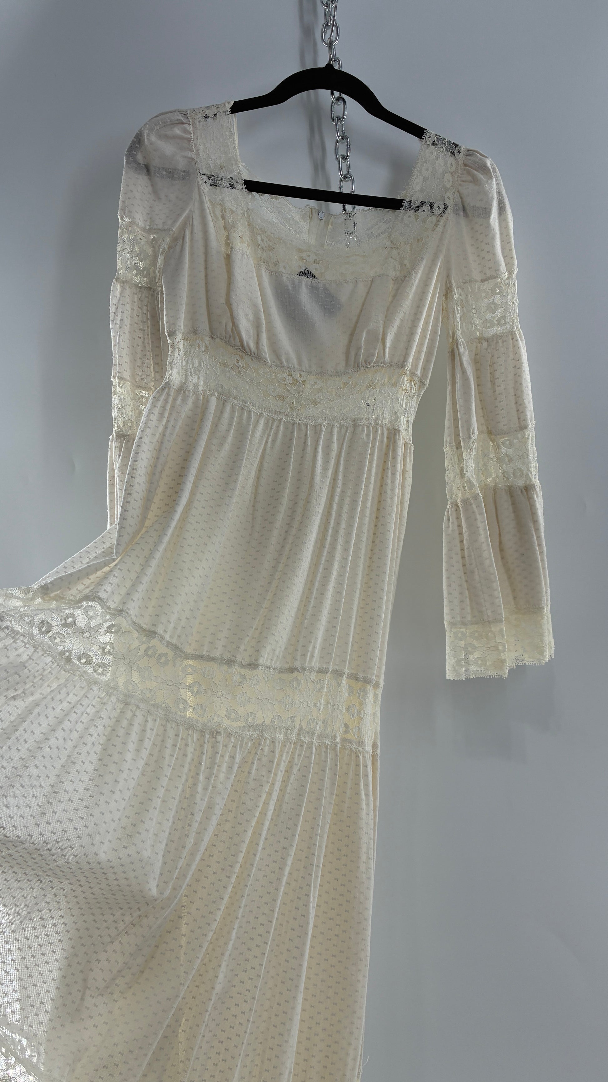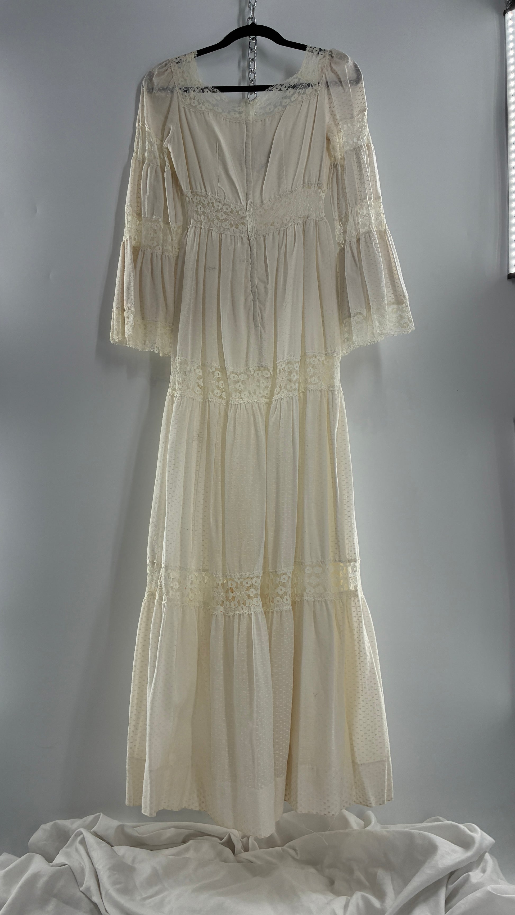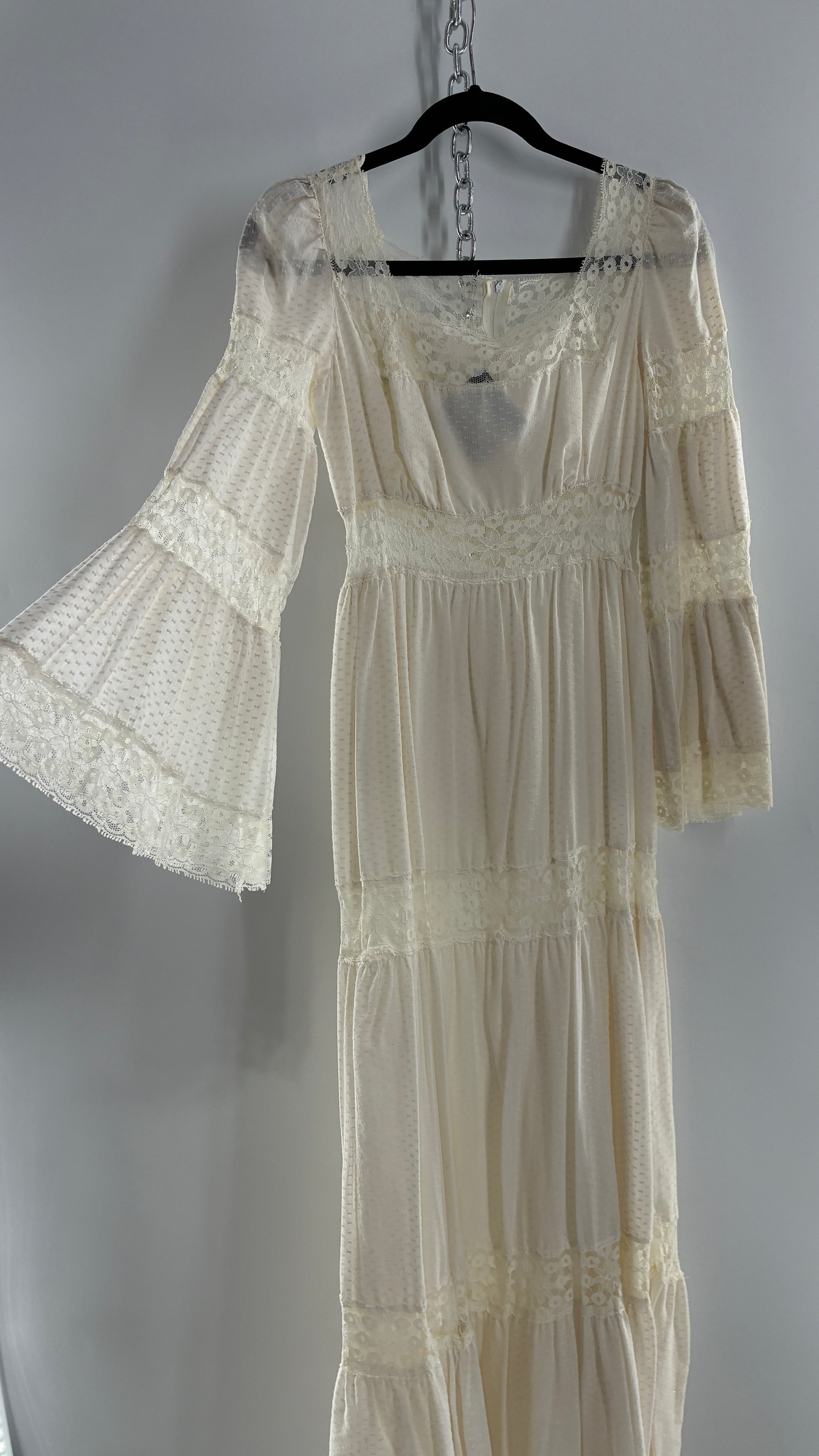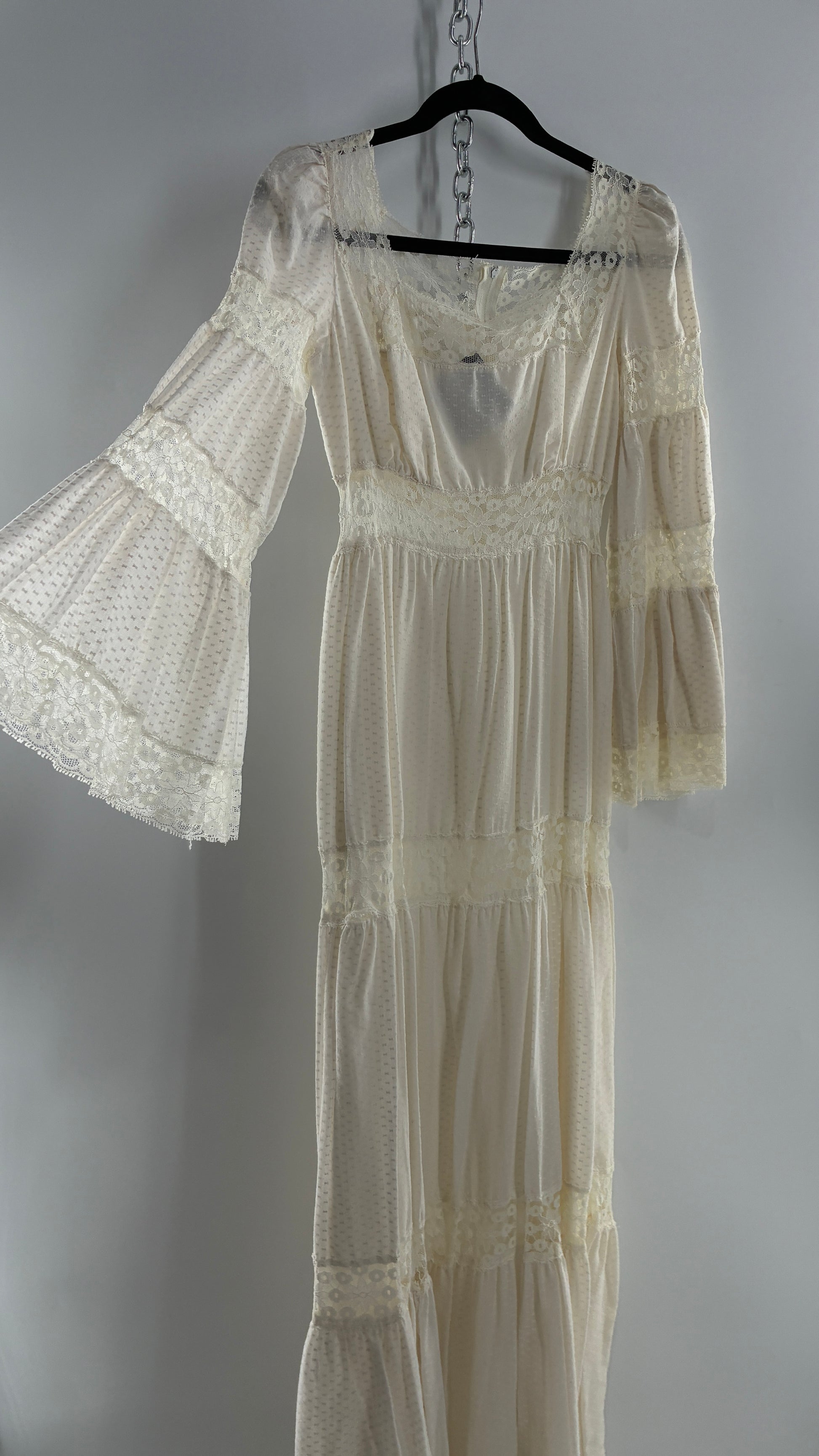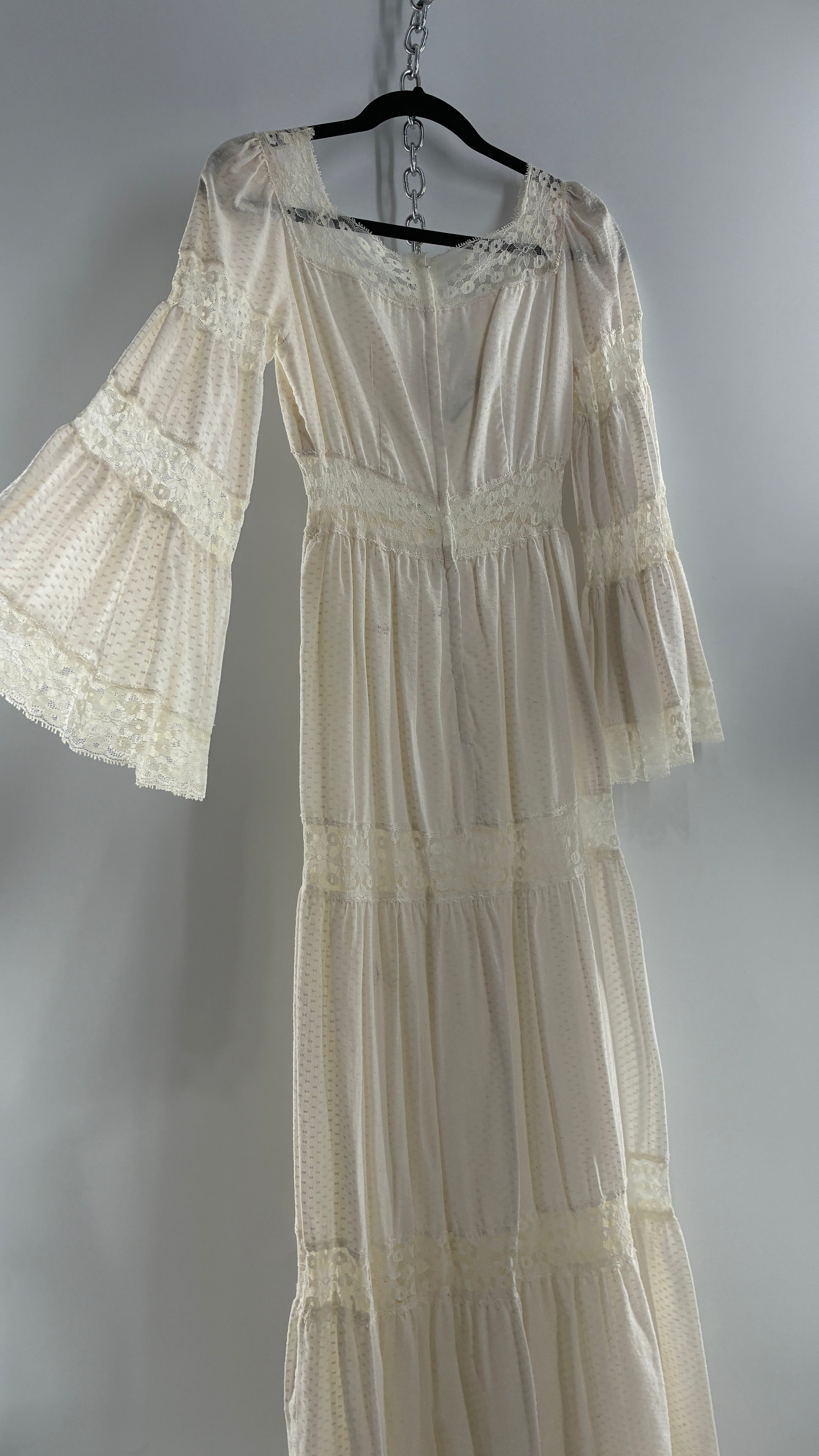 Vintage 1970s Off White Handmade Bell Sleeve Possible Wedding Gown (XS/Small)
