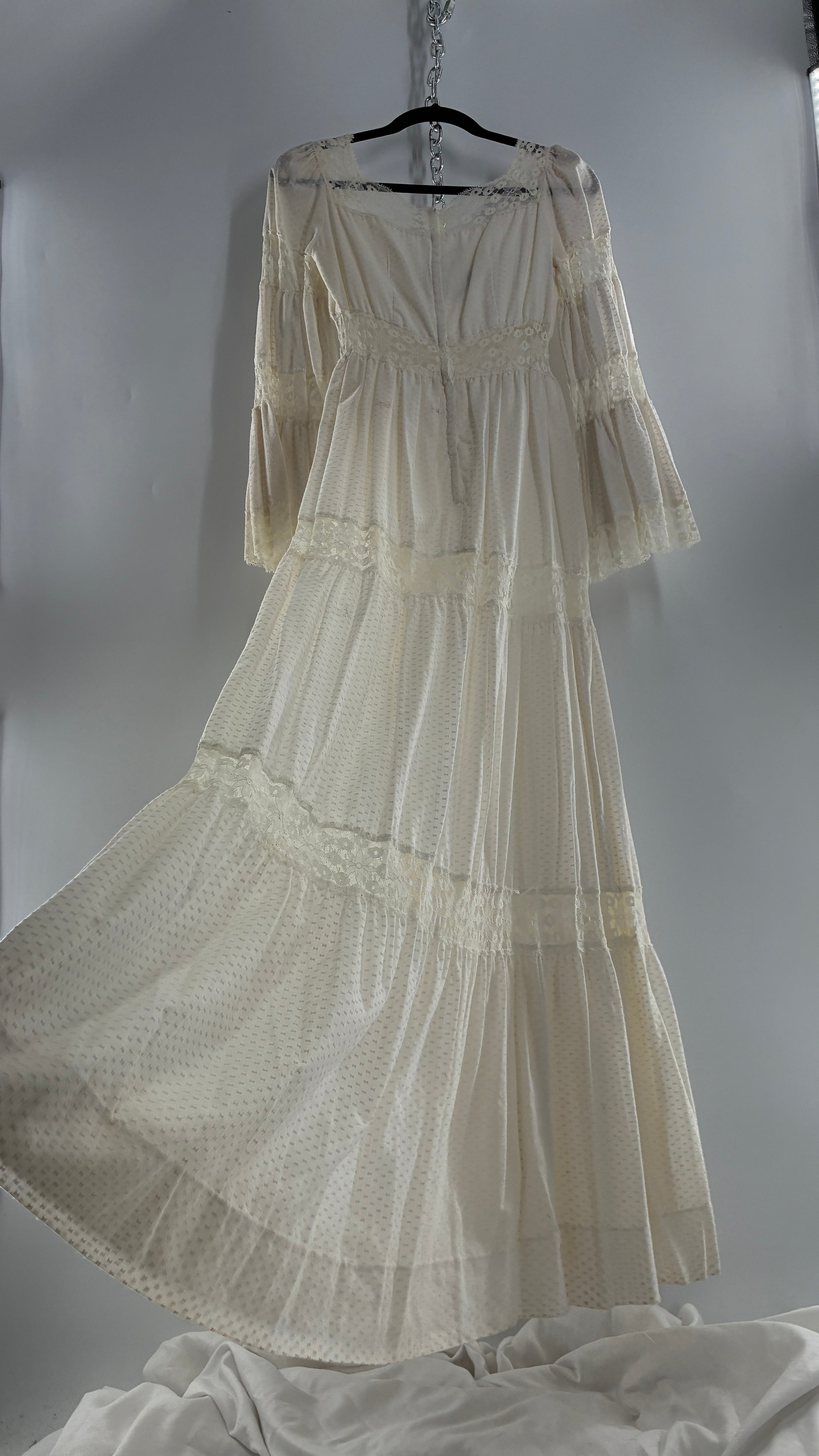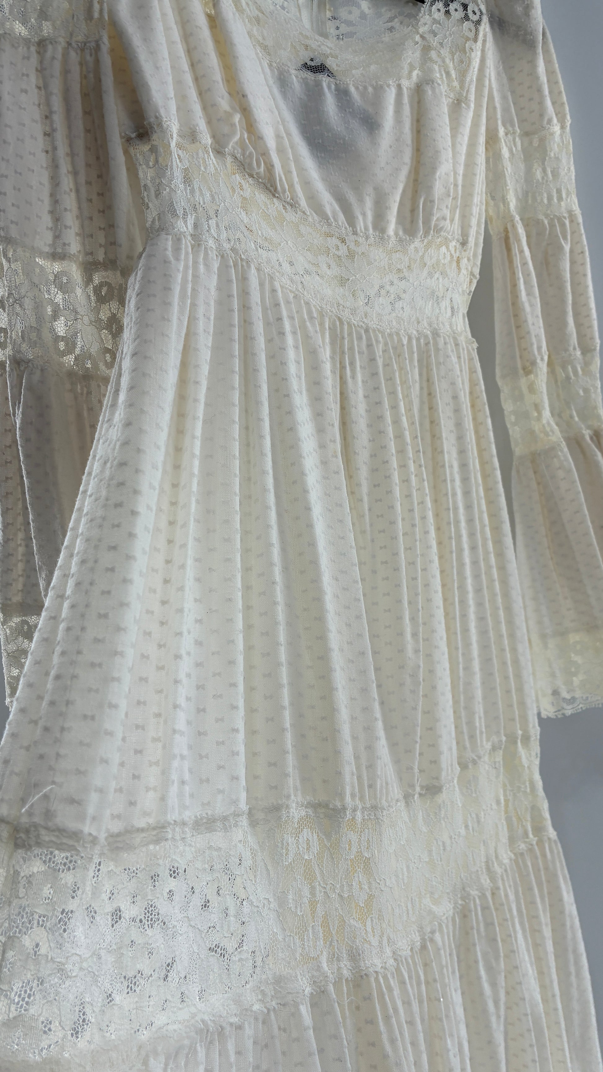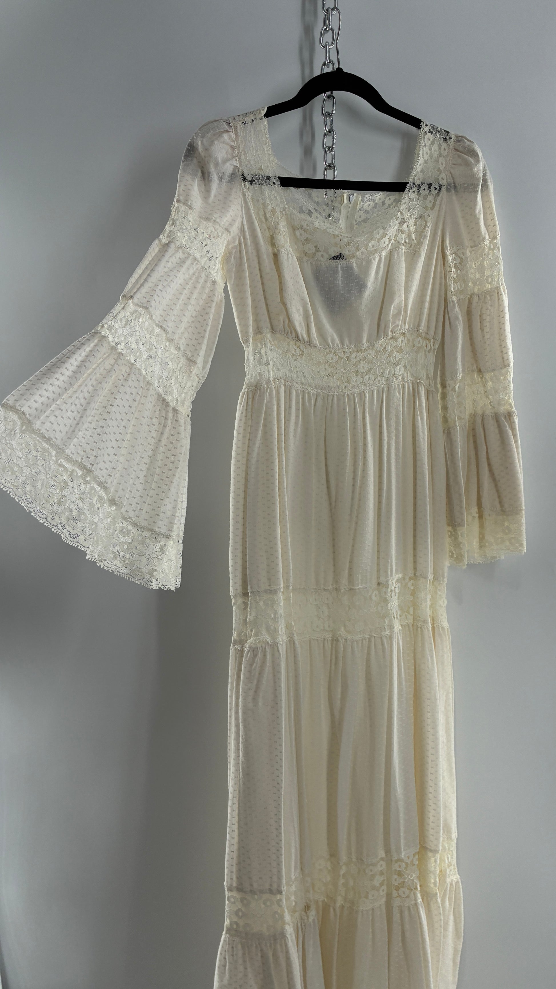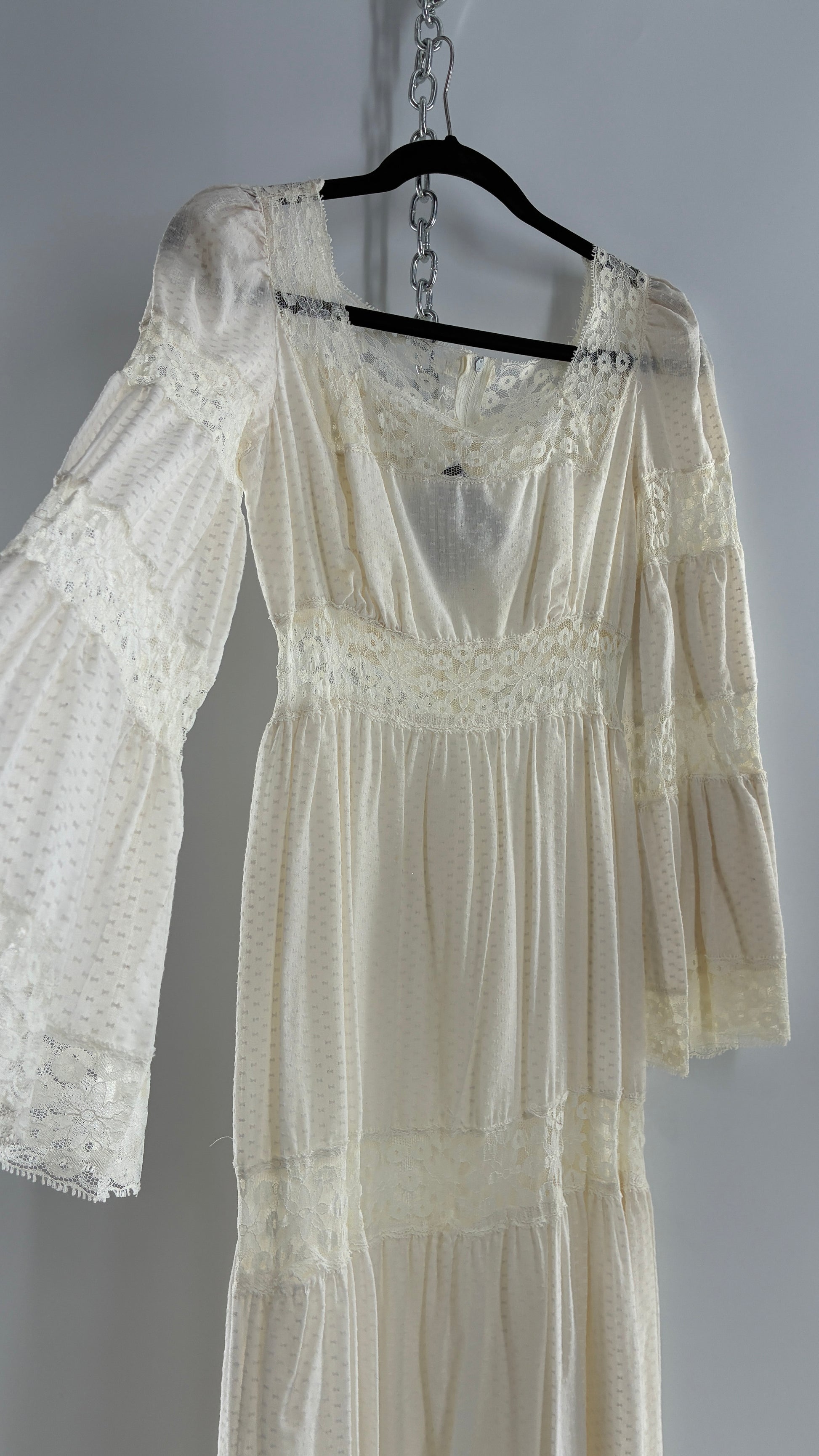 Vintage 1970s Off White Handmade Bell Sleeve Possible Wedding Gown (XS/Small)