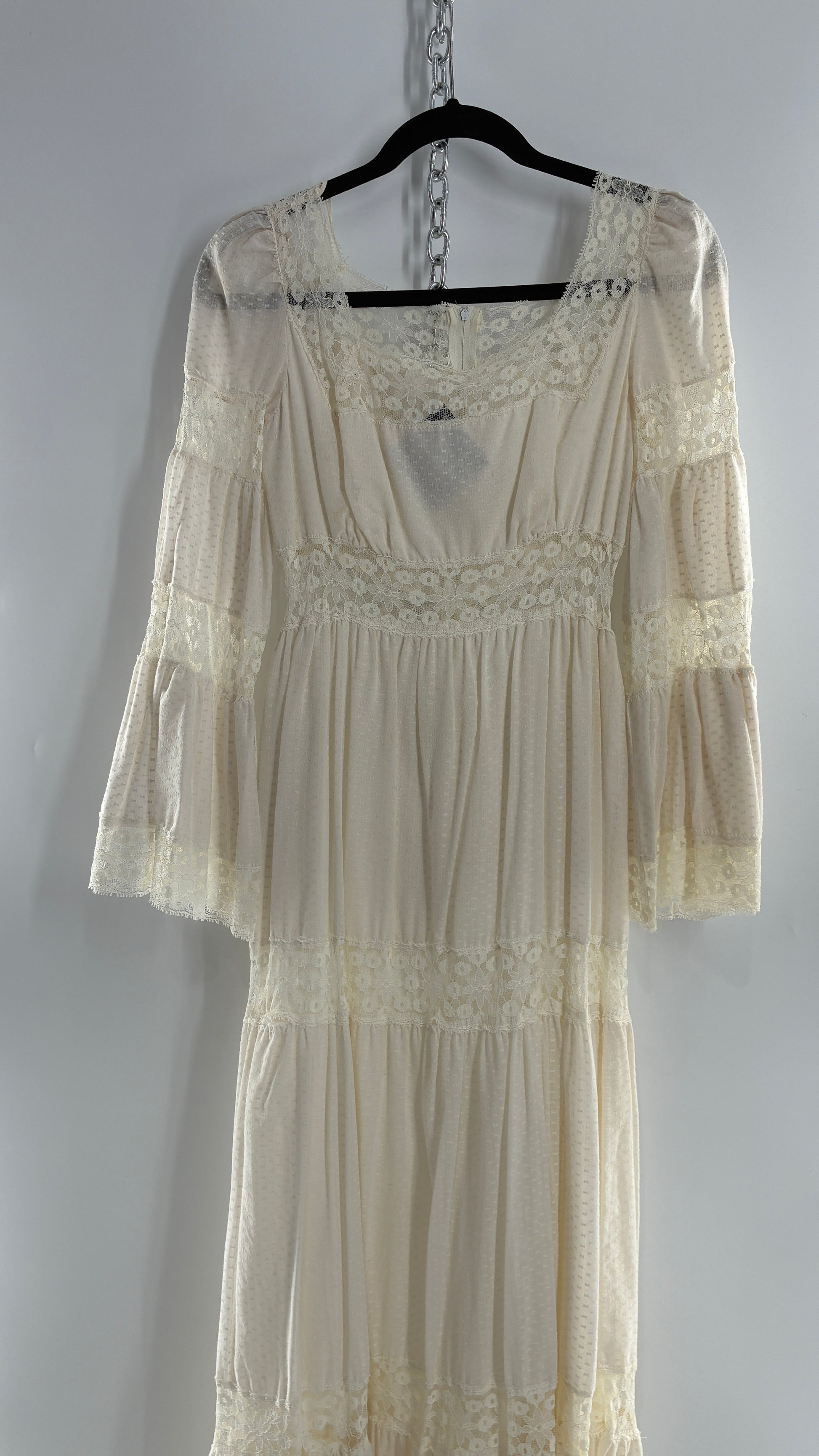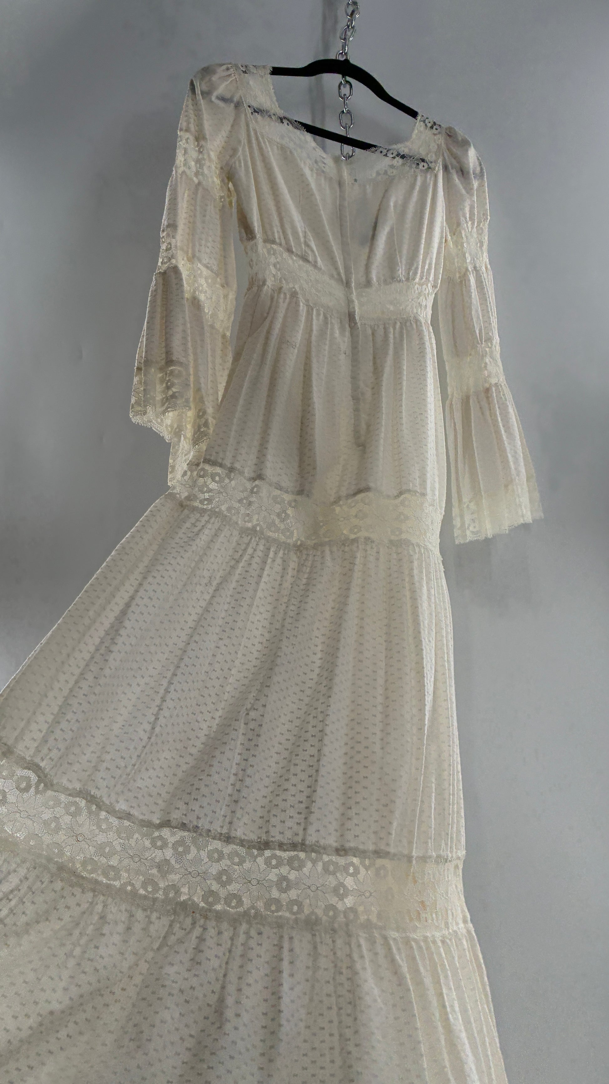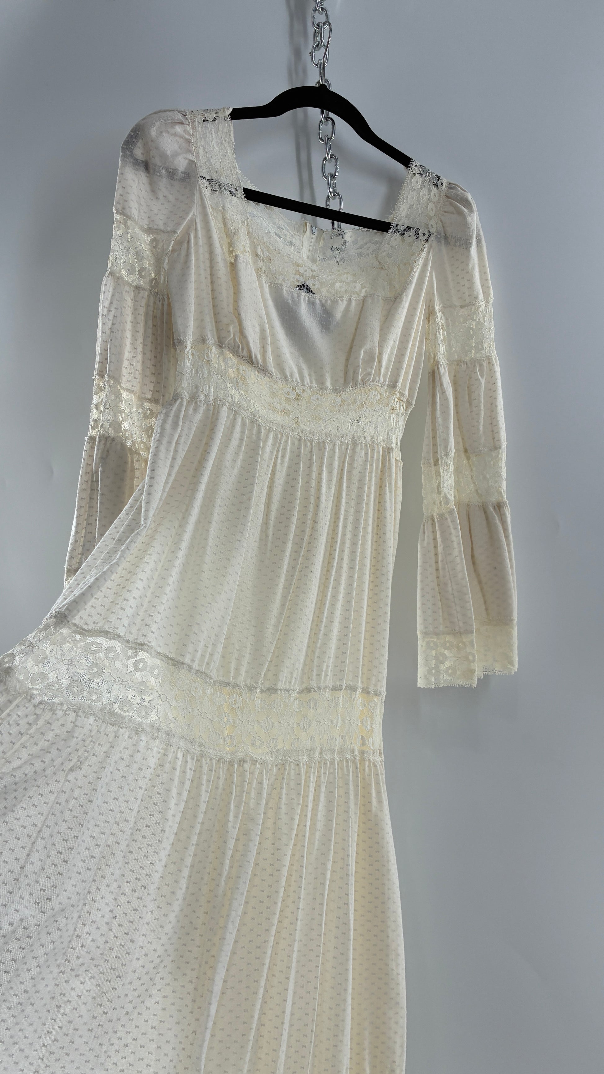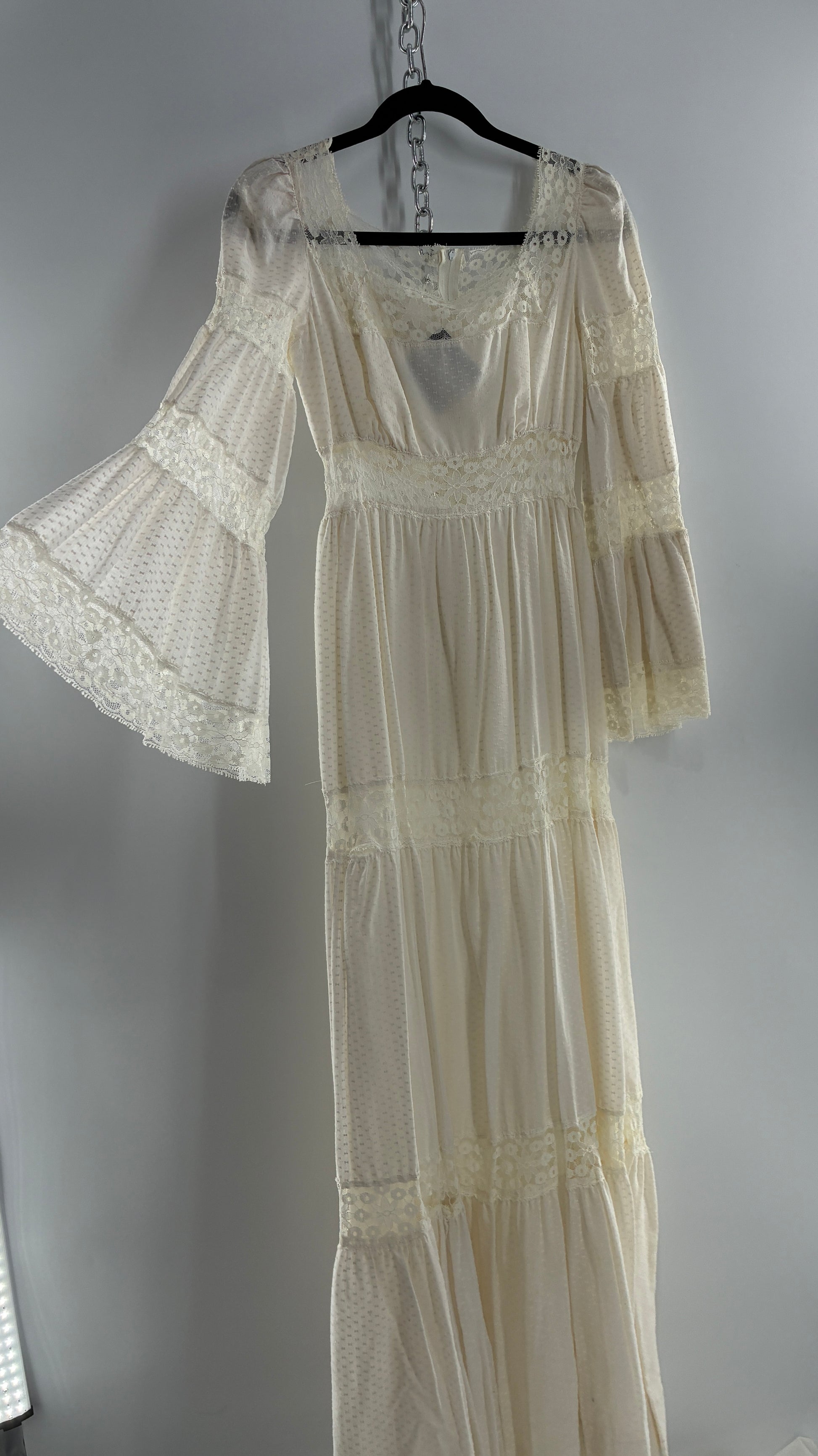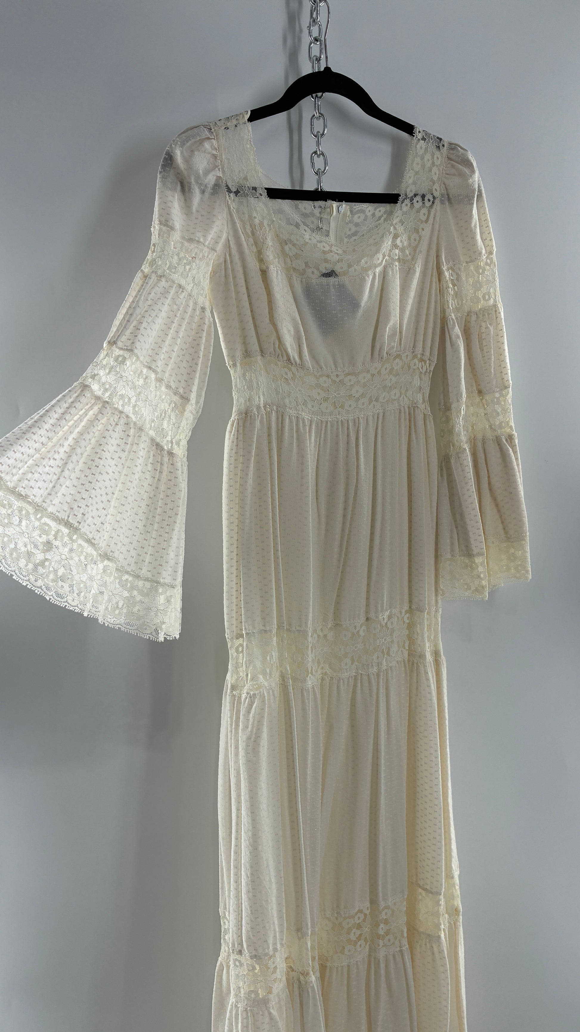 Vintage 1970s Off White Handmade Bell Sleeve Possible Wedding Gown (XS/Small)