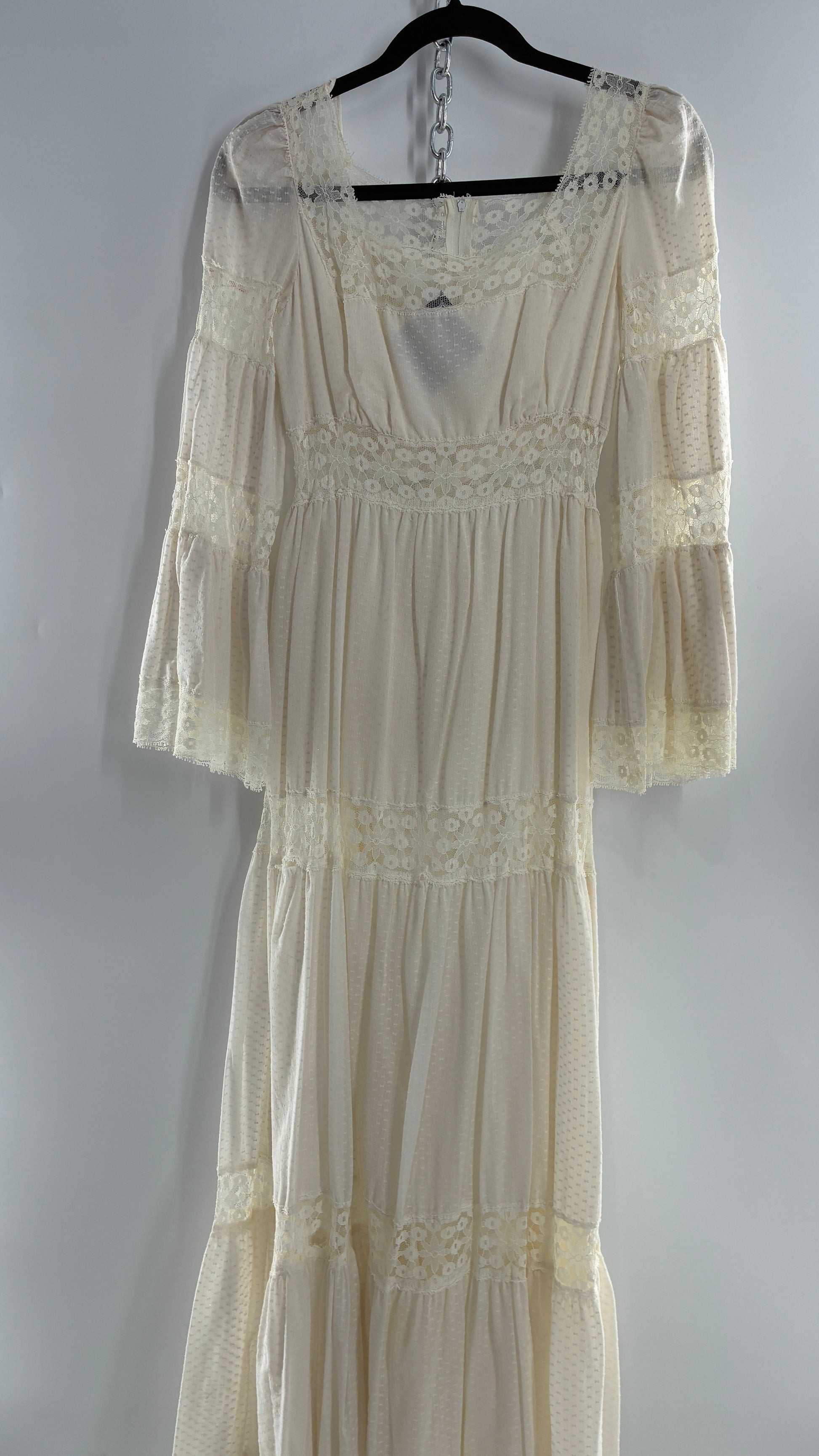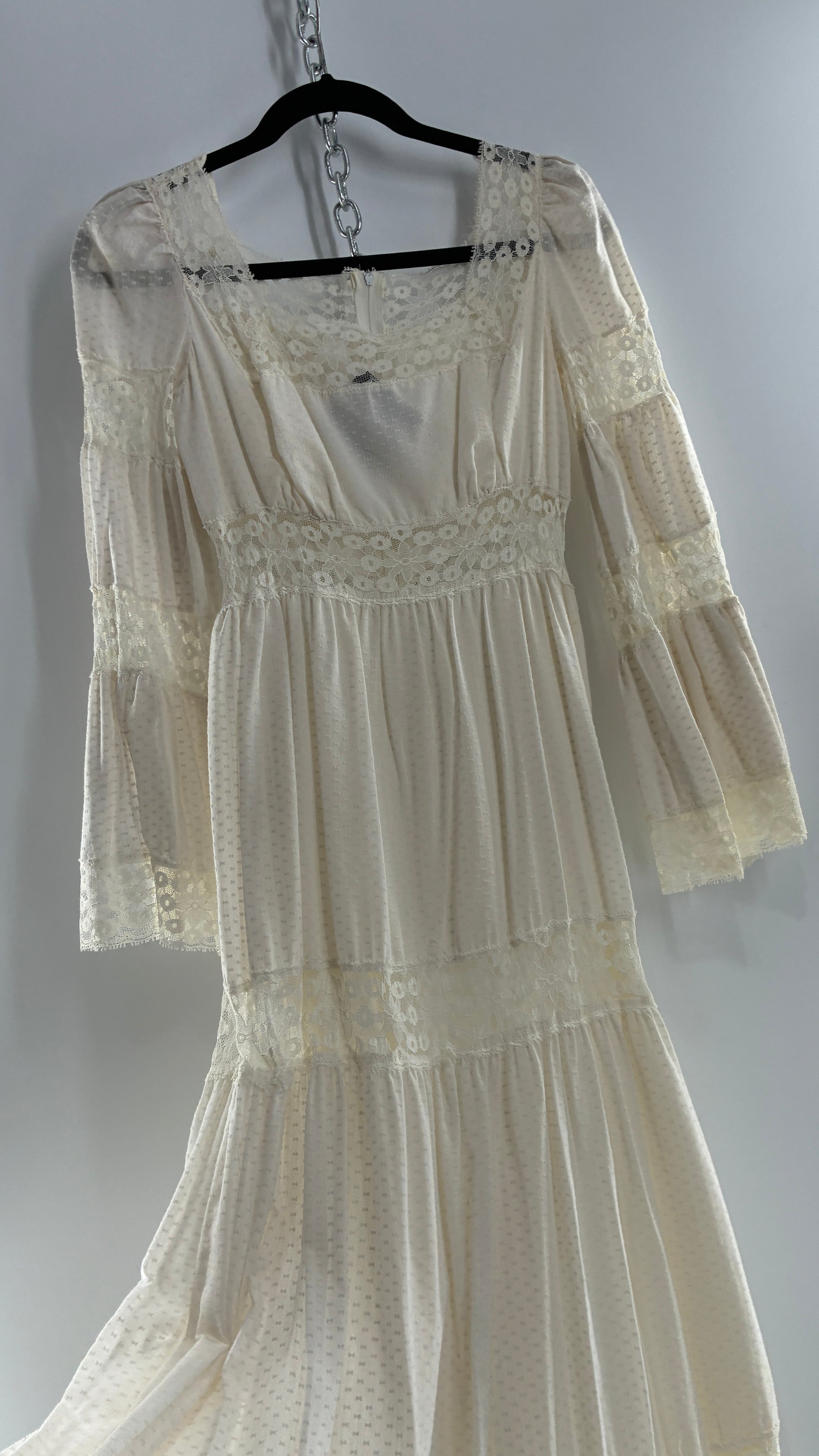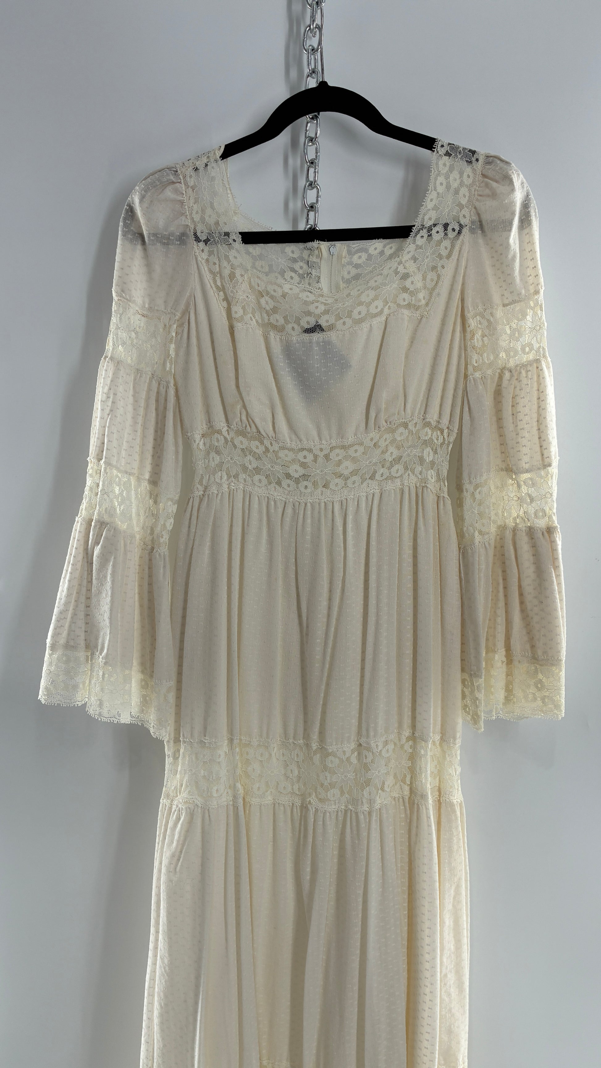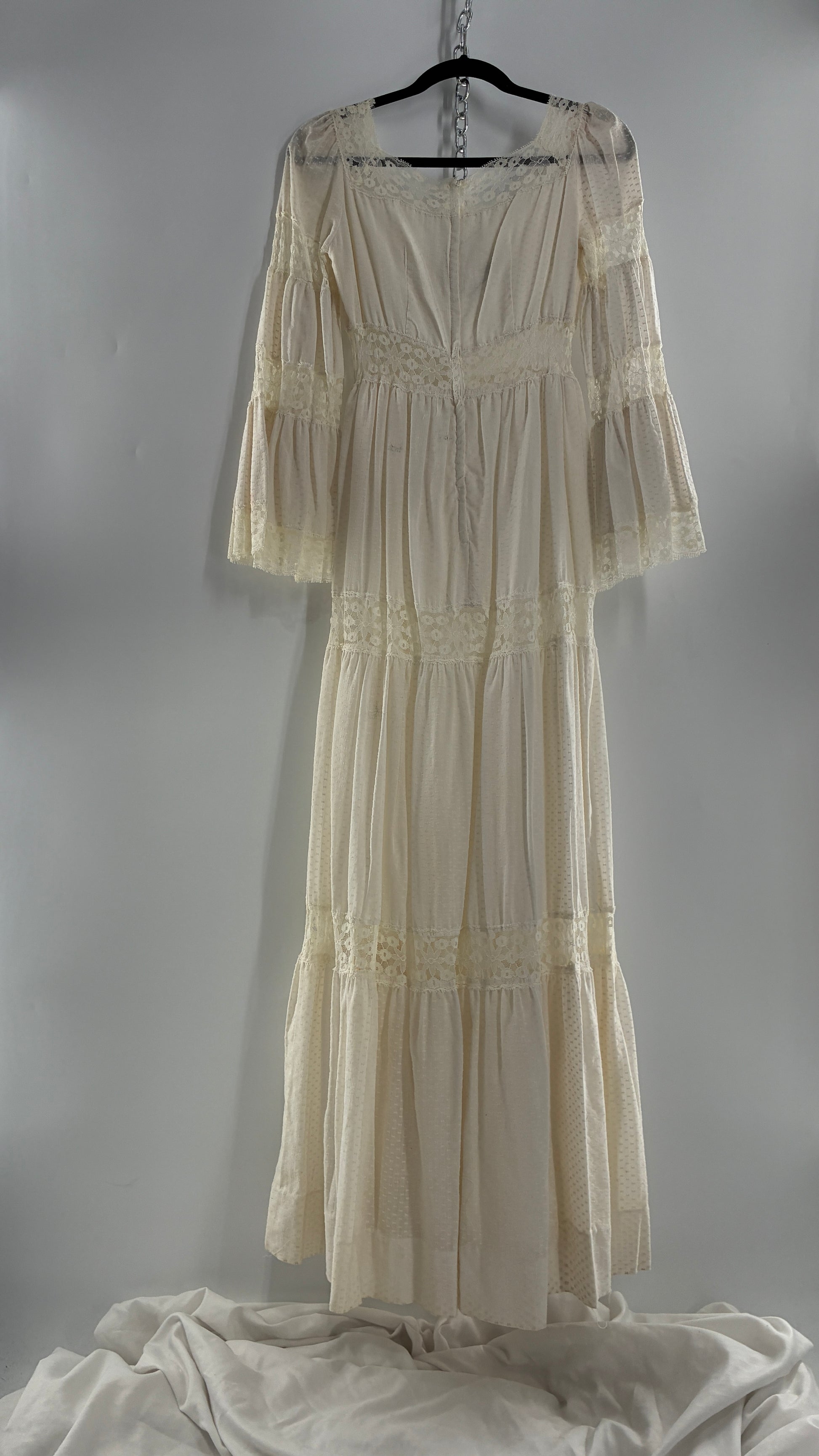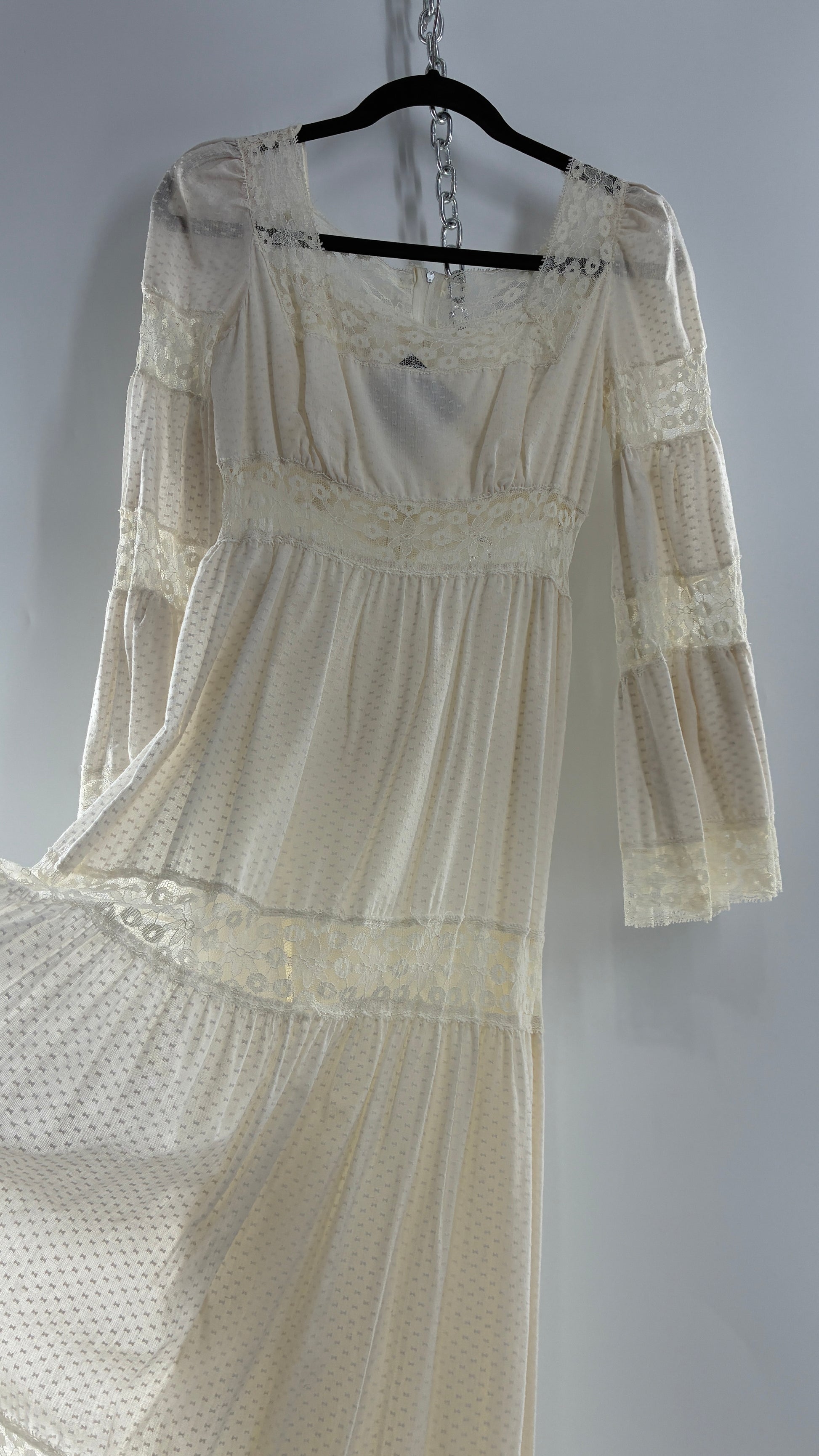 Vintage 1970s Off White Handmade Bell Sleeve Possible Wedding Gown (XS/Small)