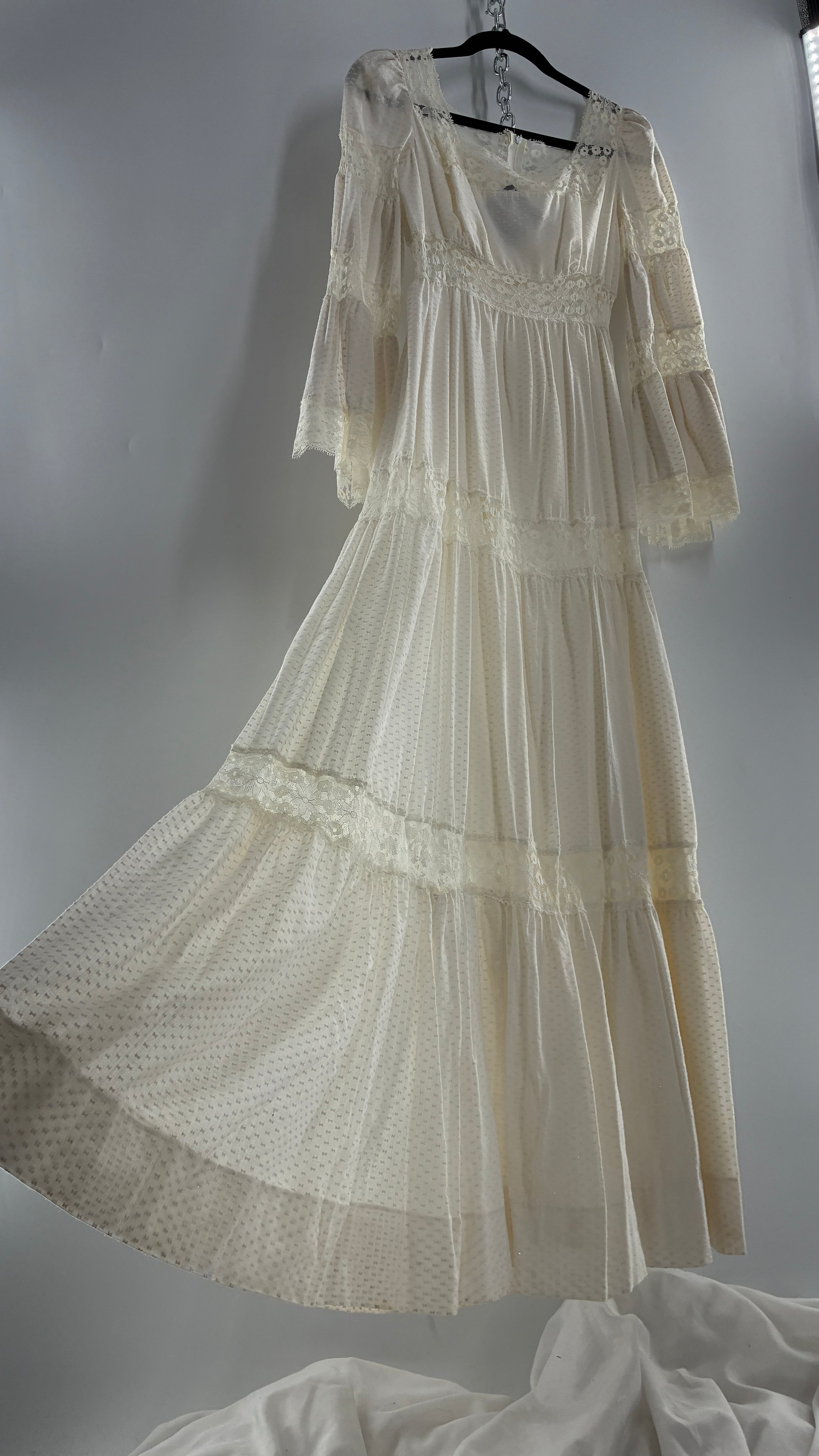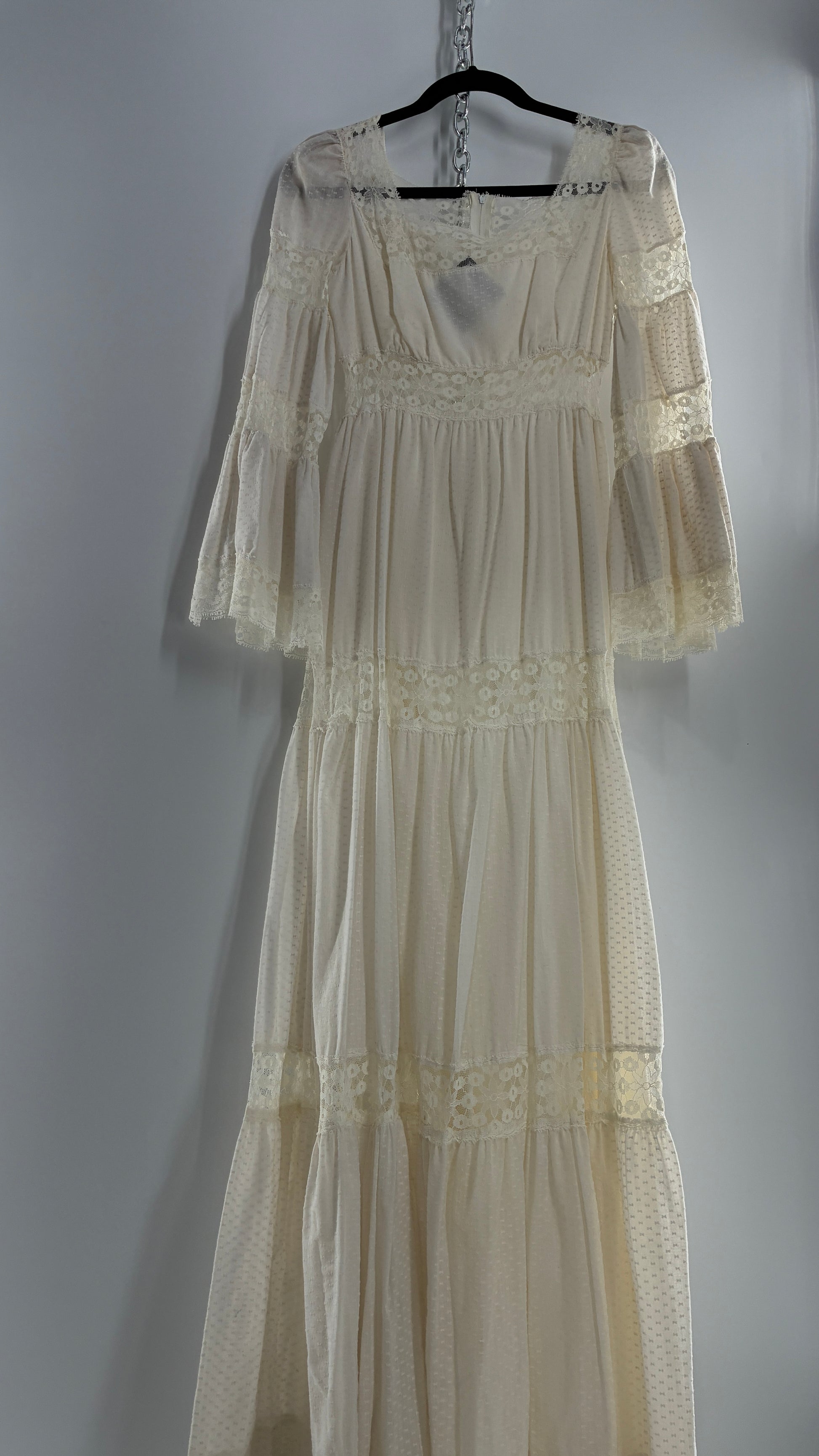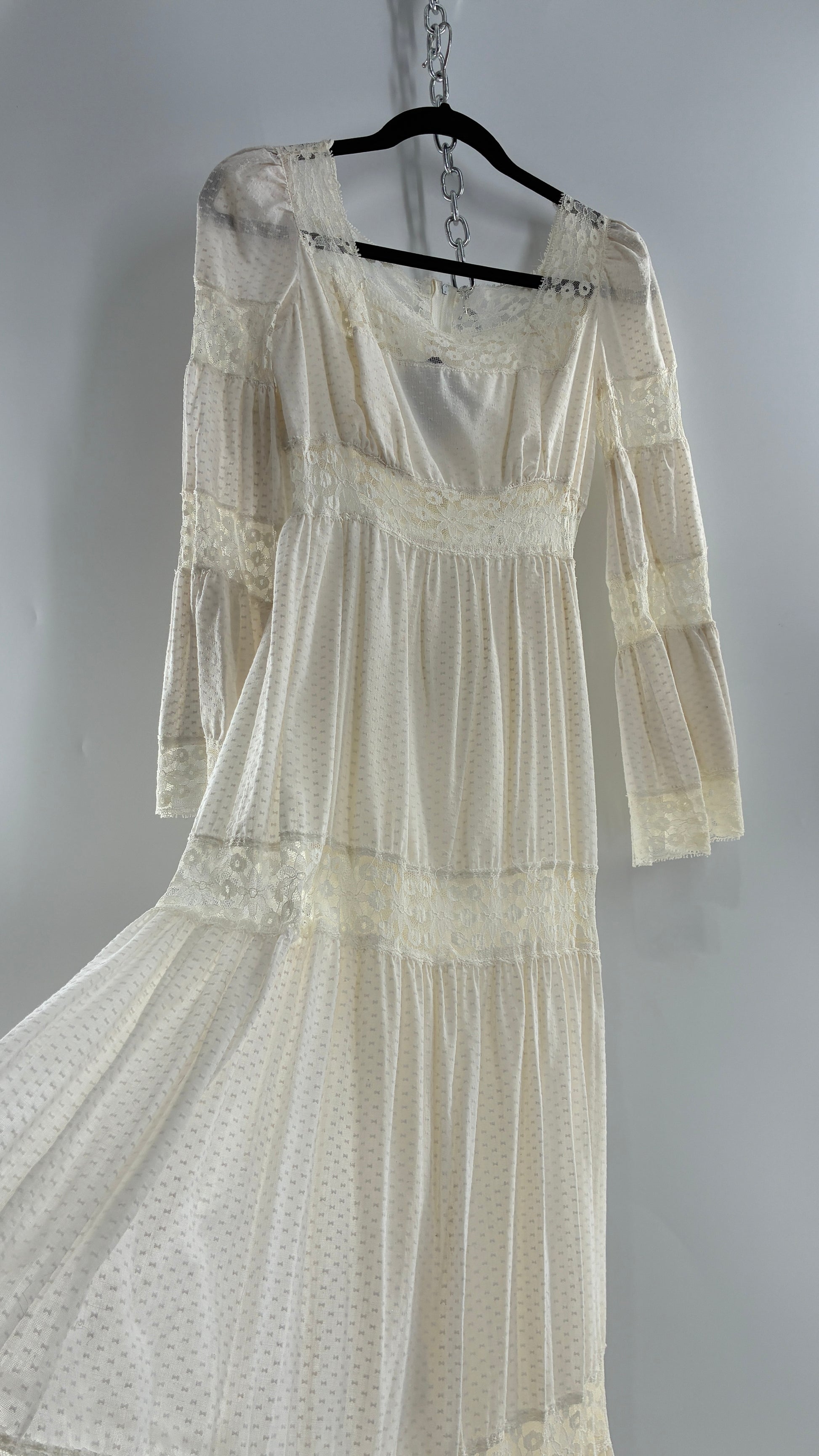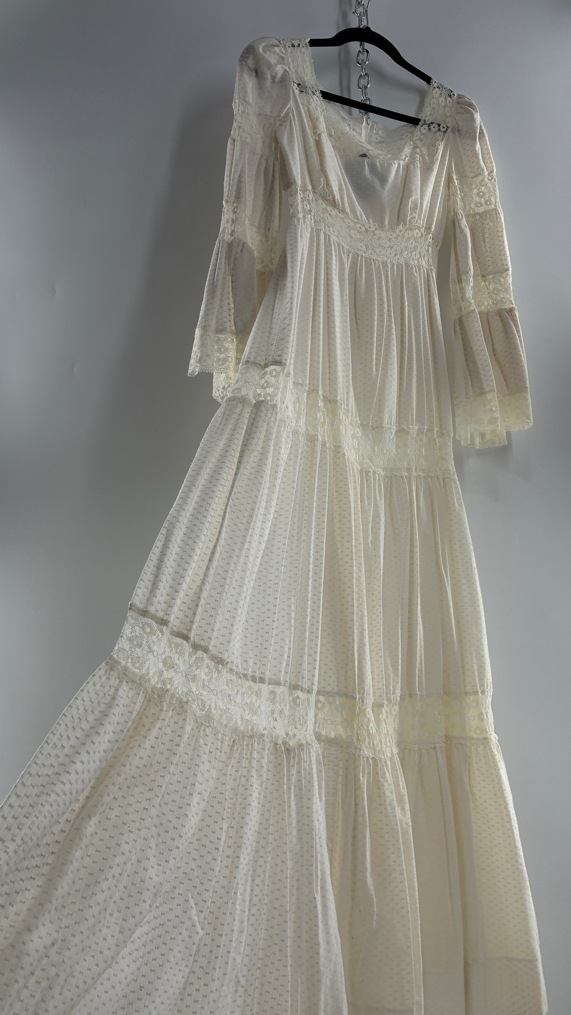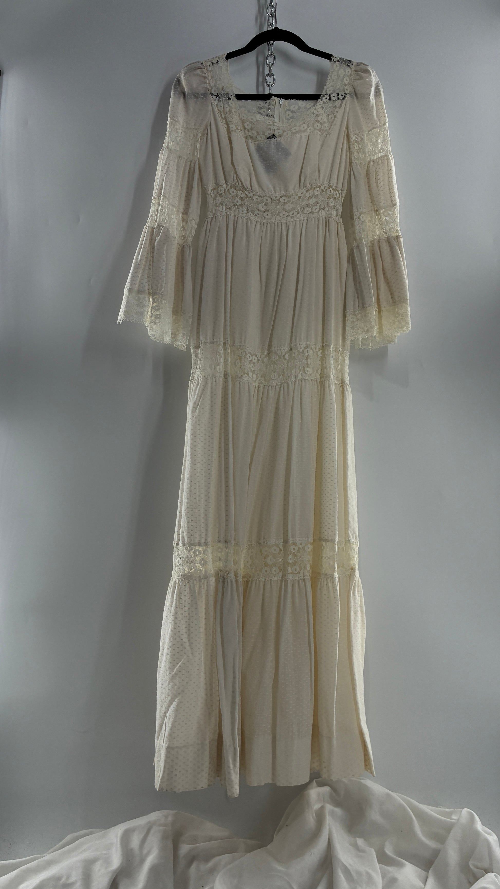 Vintage 1970s Off White Handmade Bell Sleeve Possible Wedding Gown (XS/Small)